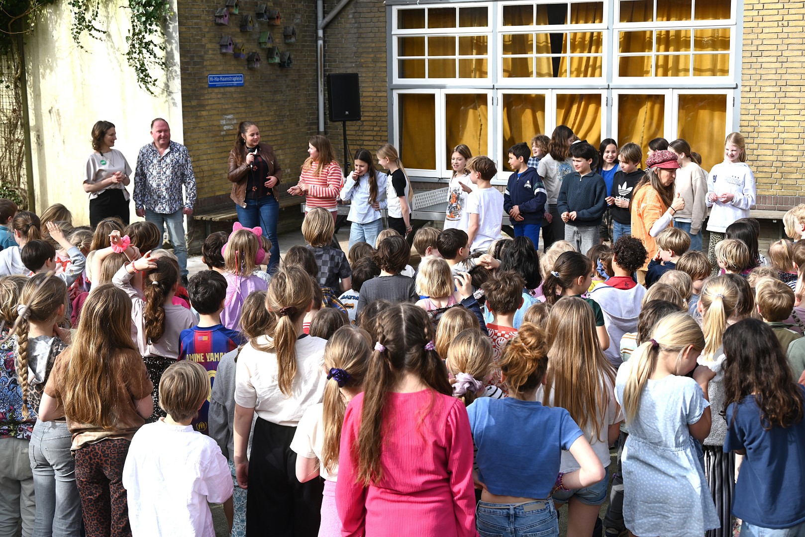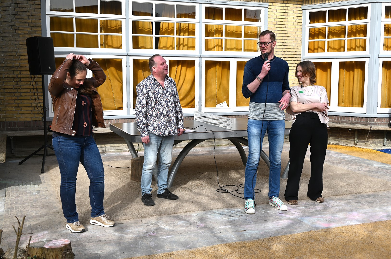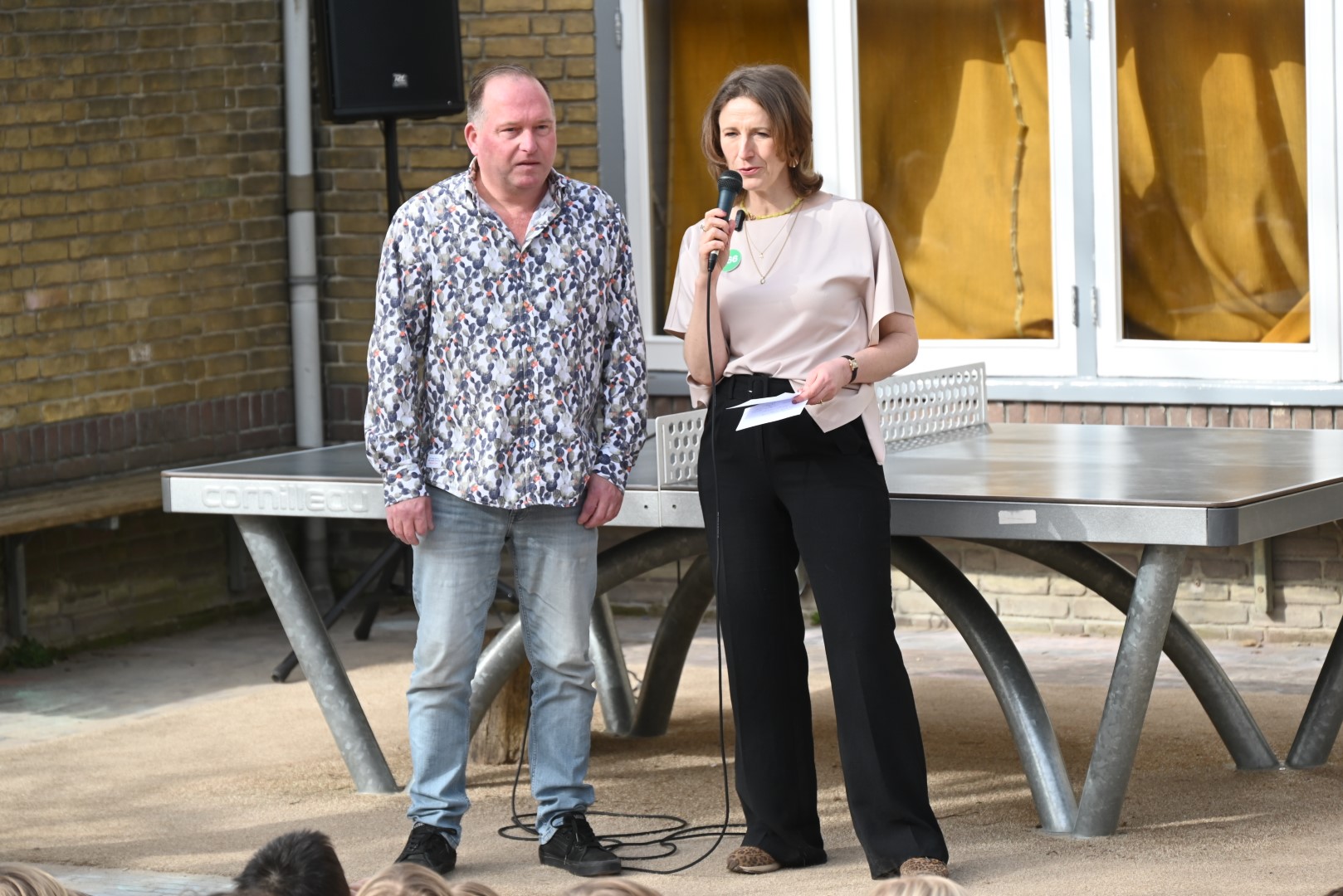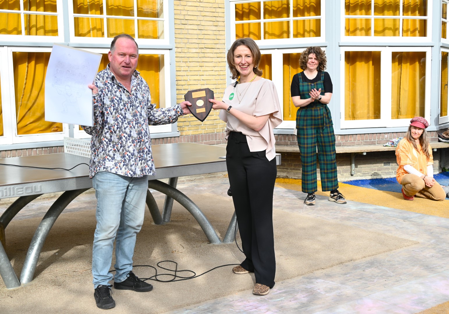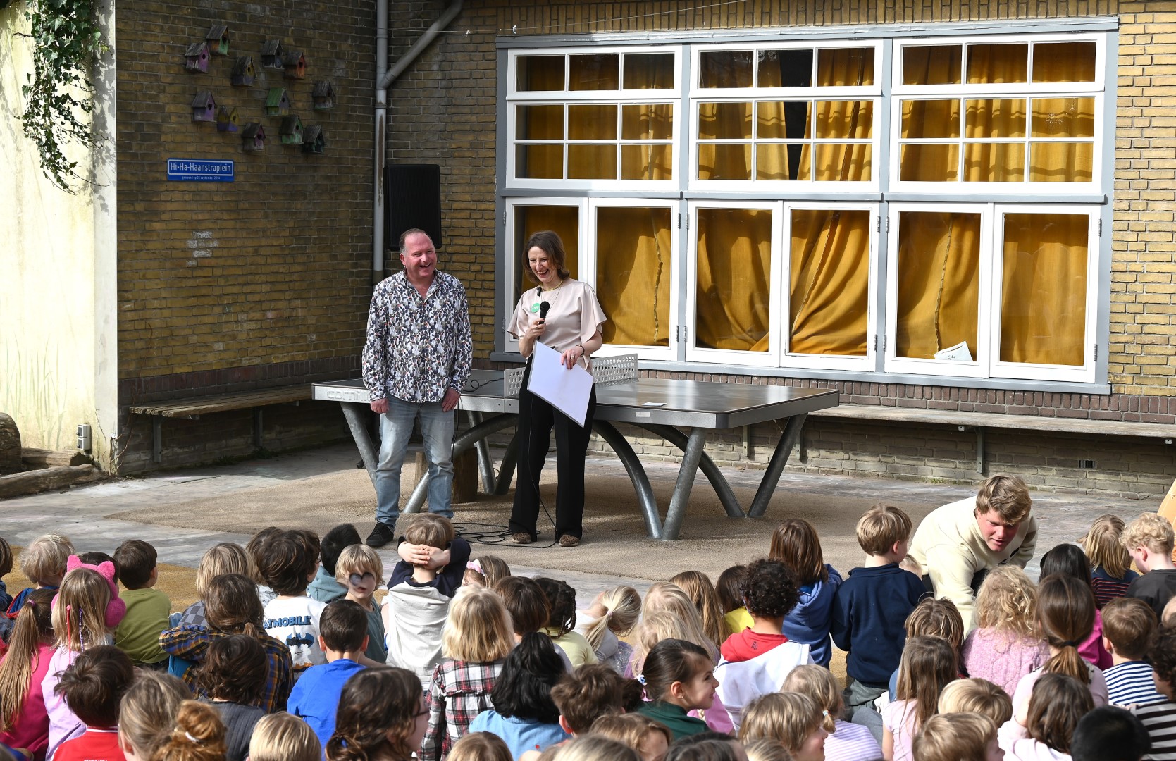 Dat er iets stond te gebeuren wist Moerkens ook wel. Maar hem was verteld dat de school een prijs kreeg voor het groenste schoolplein. Maar niets bleek minder waar, toen hij naar voren geroepen werd om een microfoon te repareren. Met die microfoon bleek niets mis, toen D66-lijsttrekker Wietske Veltman zich tot Moerkens richtte.