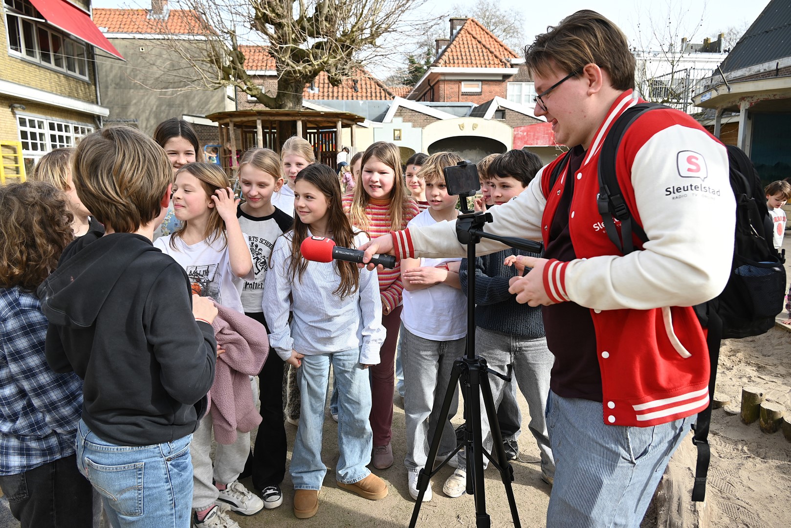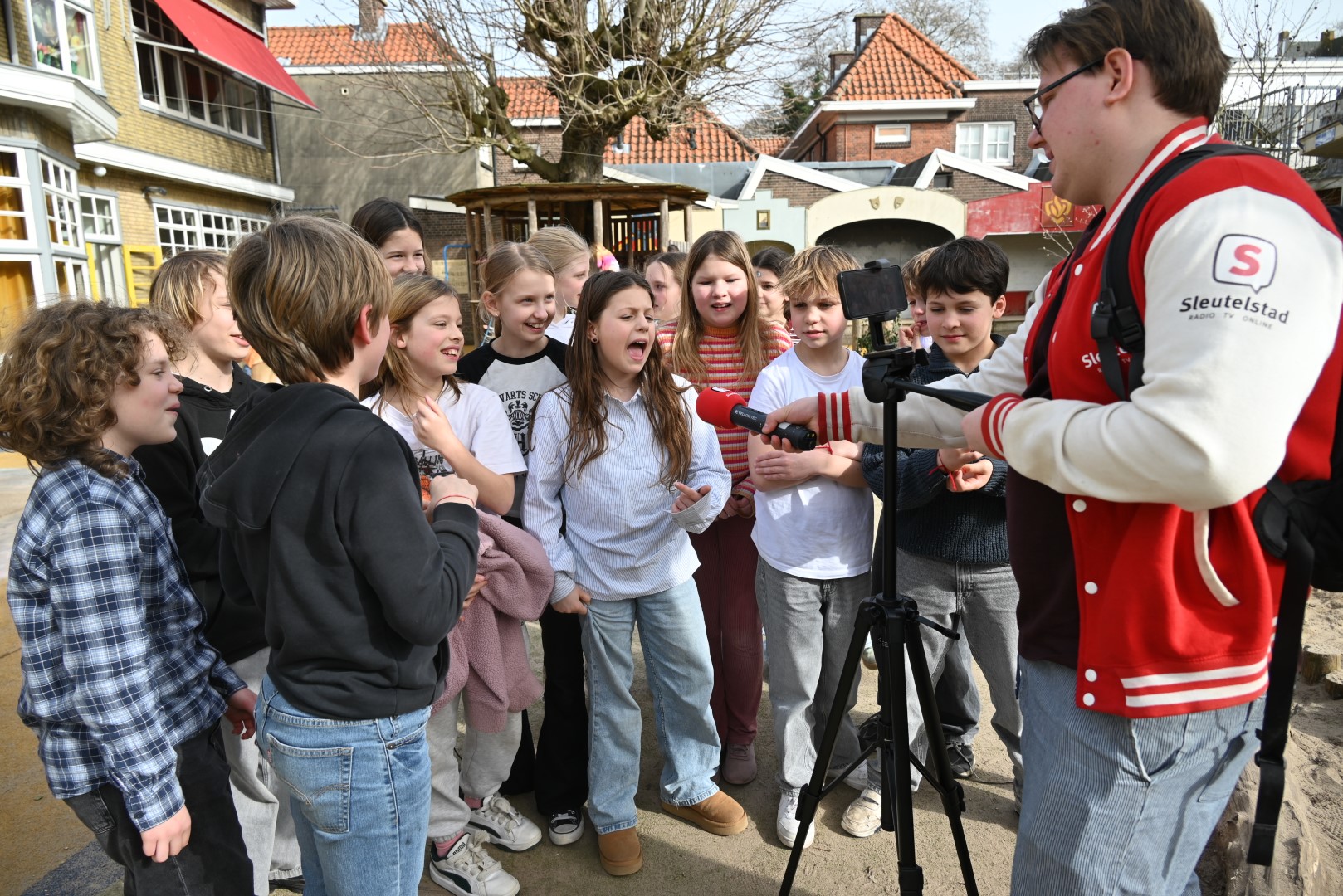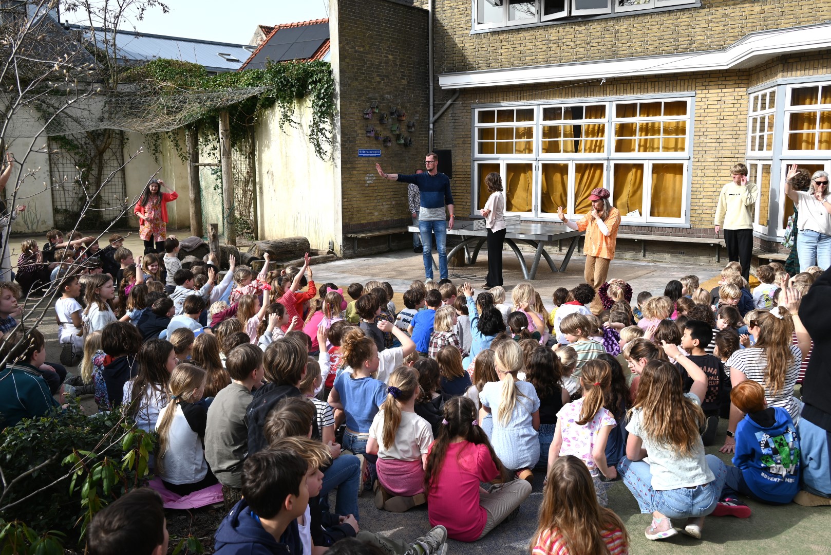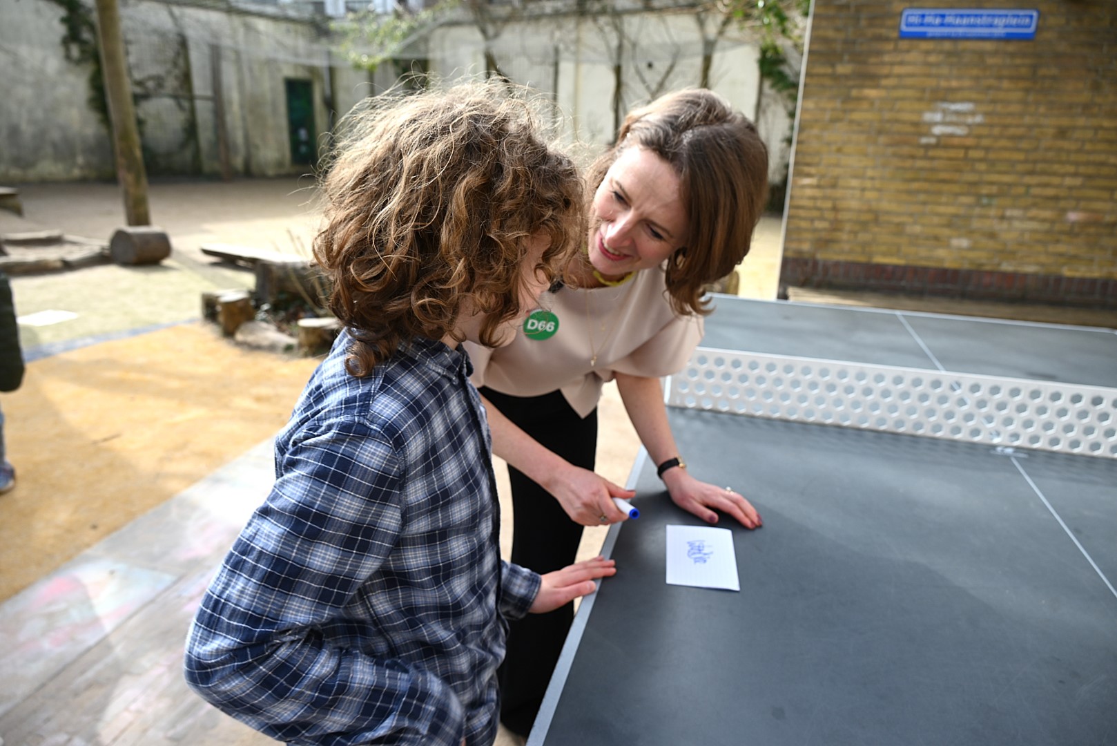 Dat er iets stond te gebeuren wist Moerkens ook wel. Maar hem was verteld dat de school een prijs kreeg voor het groenste schoolplein. Maar niets bleek minder waar, toen hij naar voren geroepen werd om een microfoon te repareren. Met die microfoon bleek niets mis, toen D66-lijsttrekker Wietske Veltman zich tot Moerkens richtte.