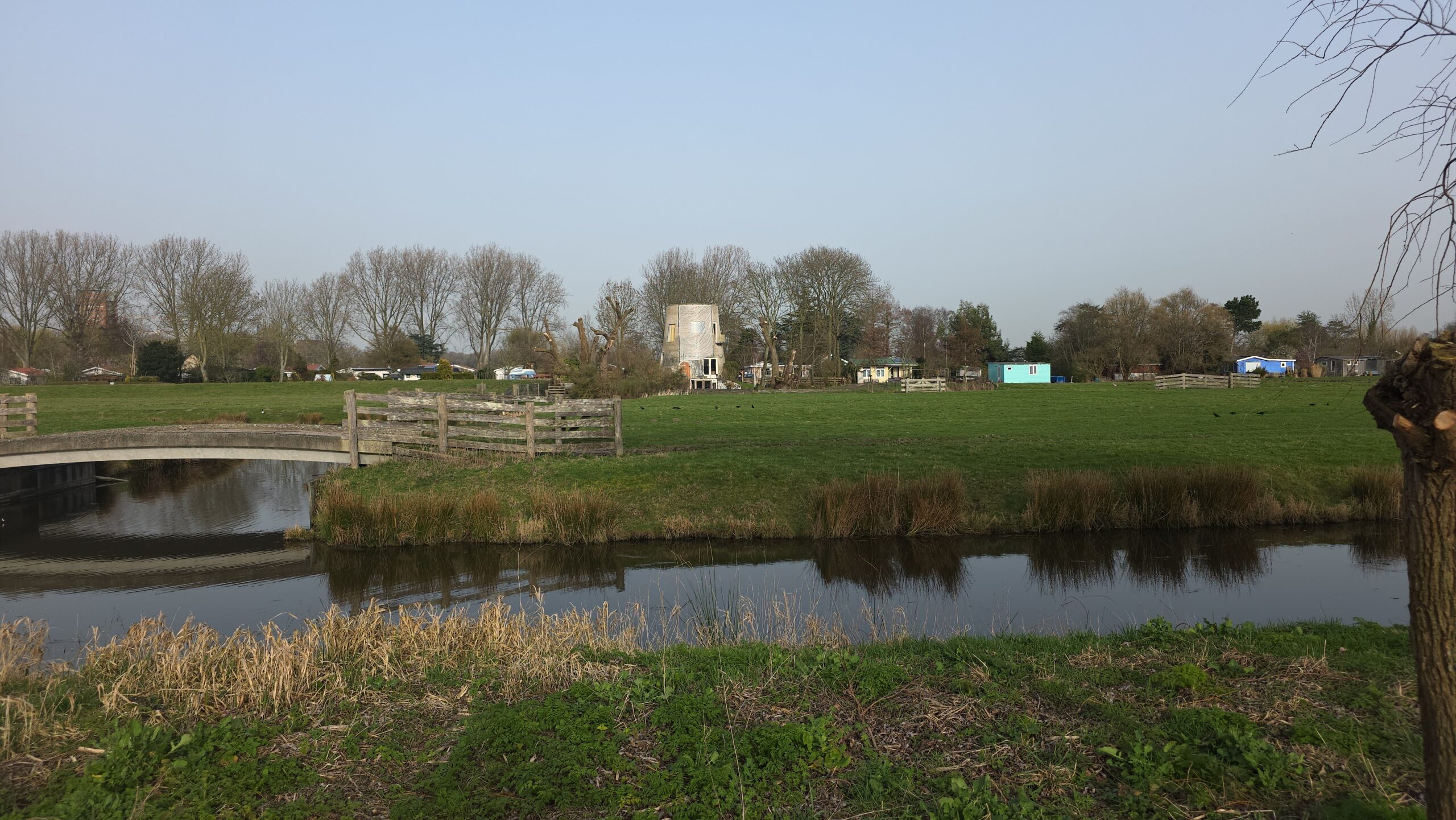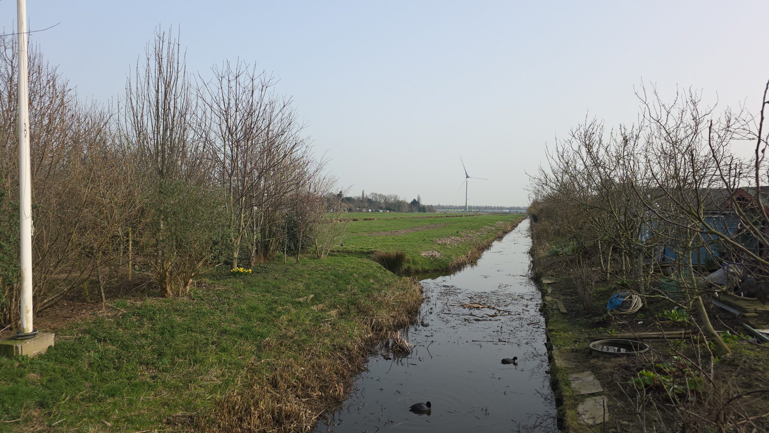 Tussen de twee nieuwe volkstuingebieden blijft een groene strook polder min of meer onaangeroerd. Daar wordt door de gemeente wel werk gemaakt van meer biodiversiteit.