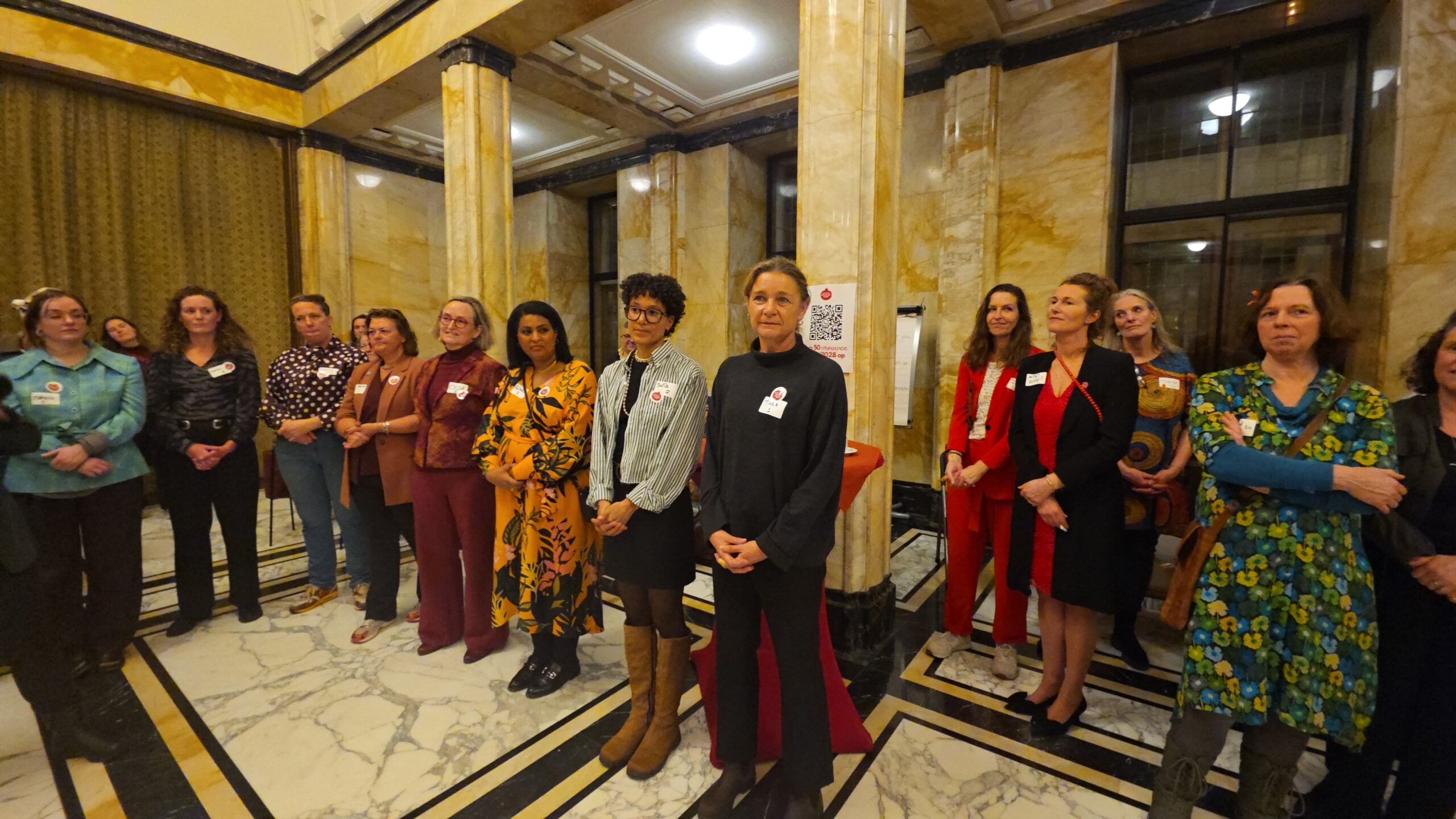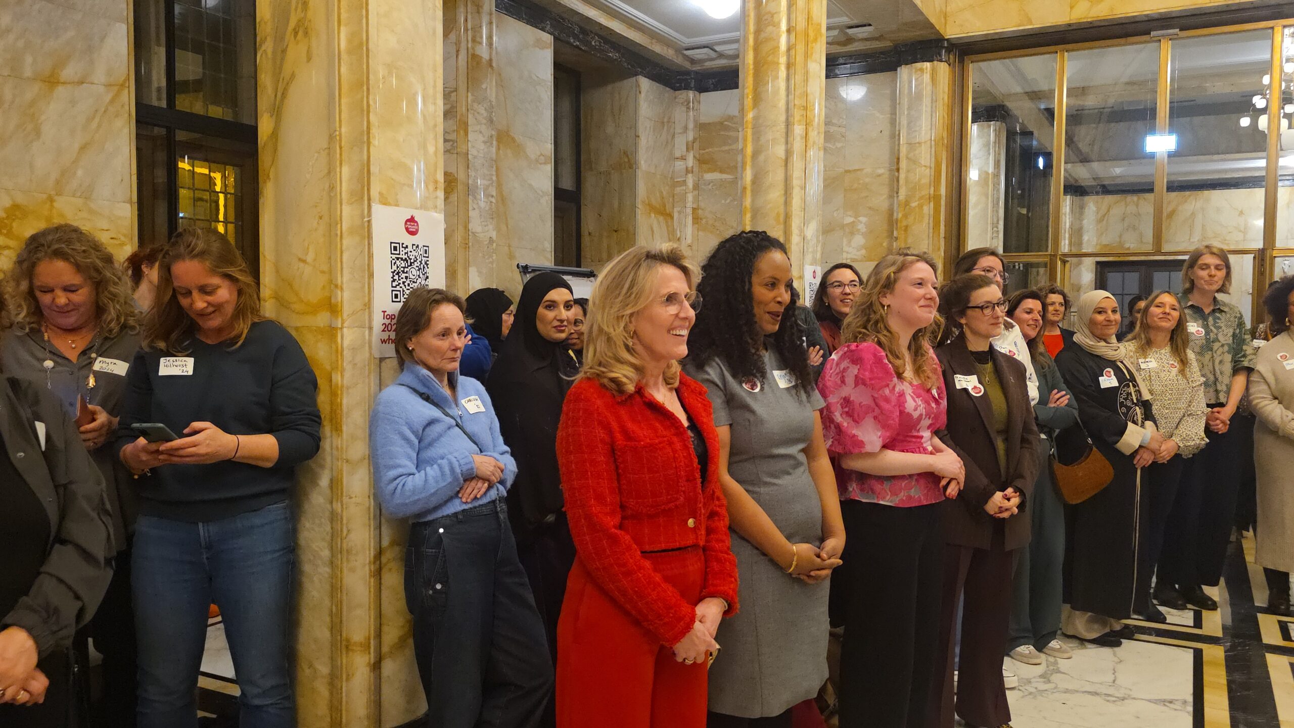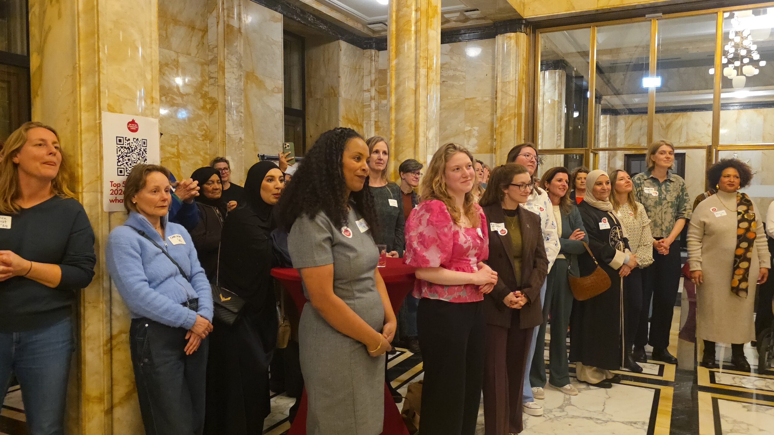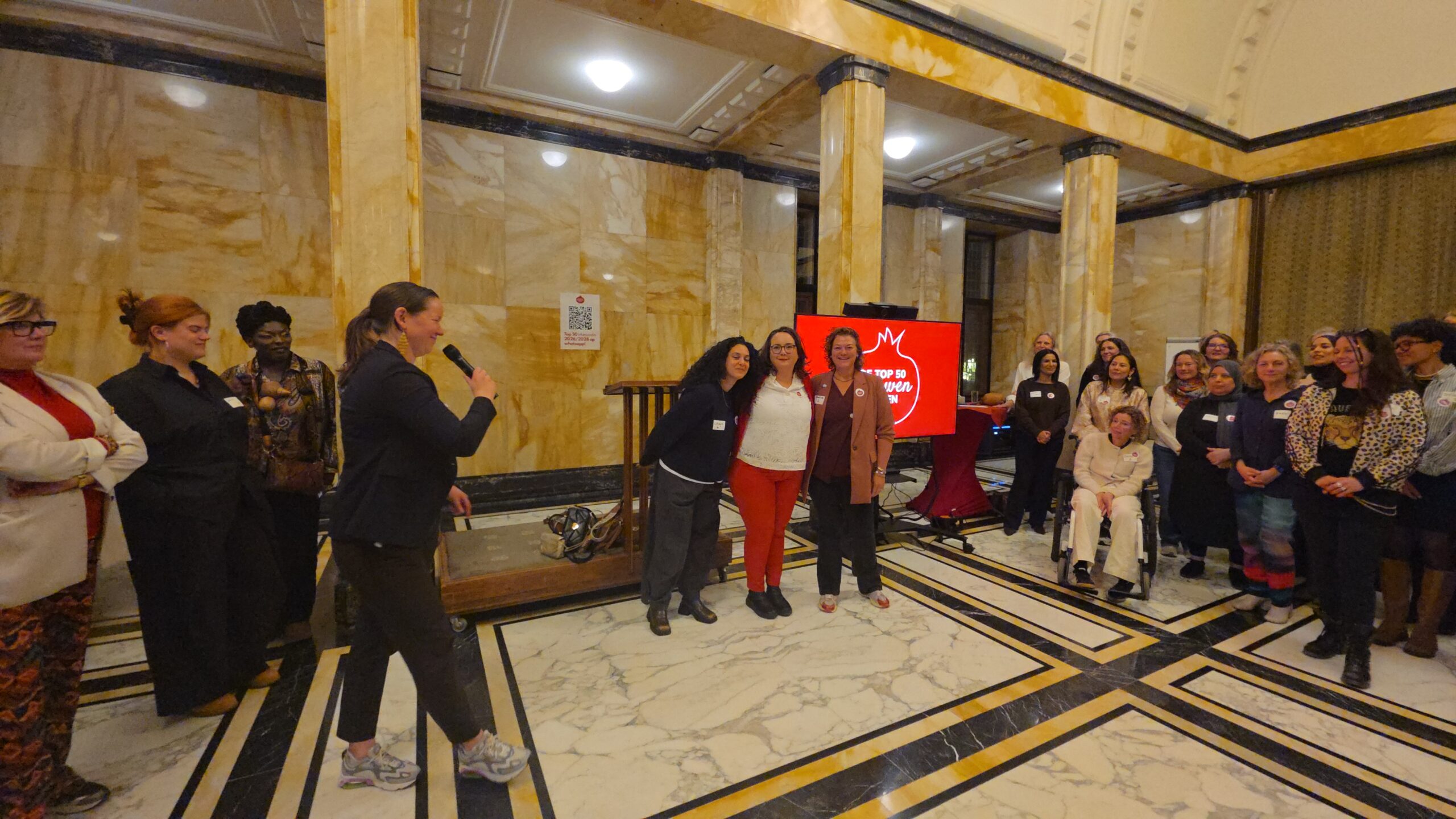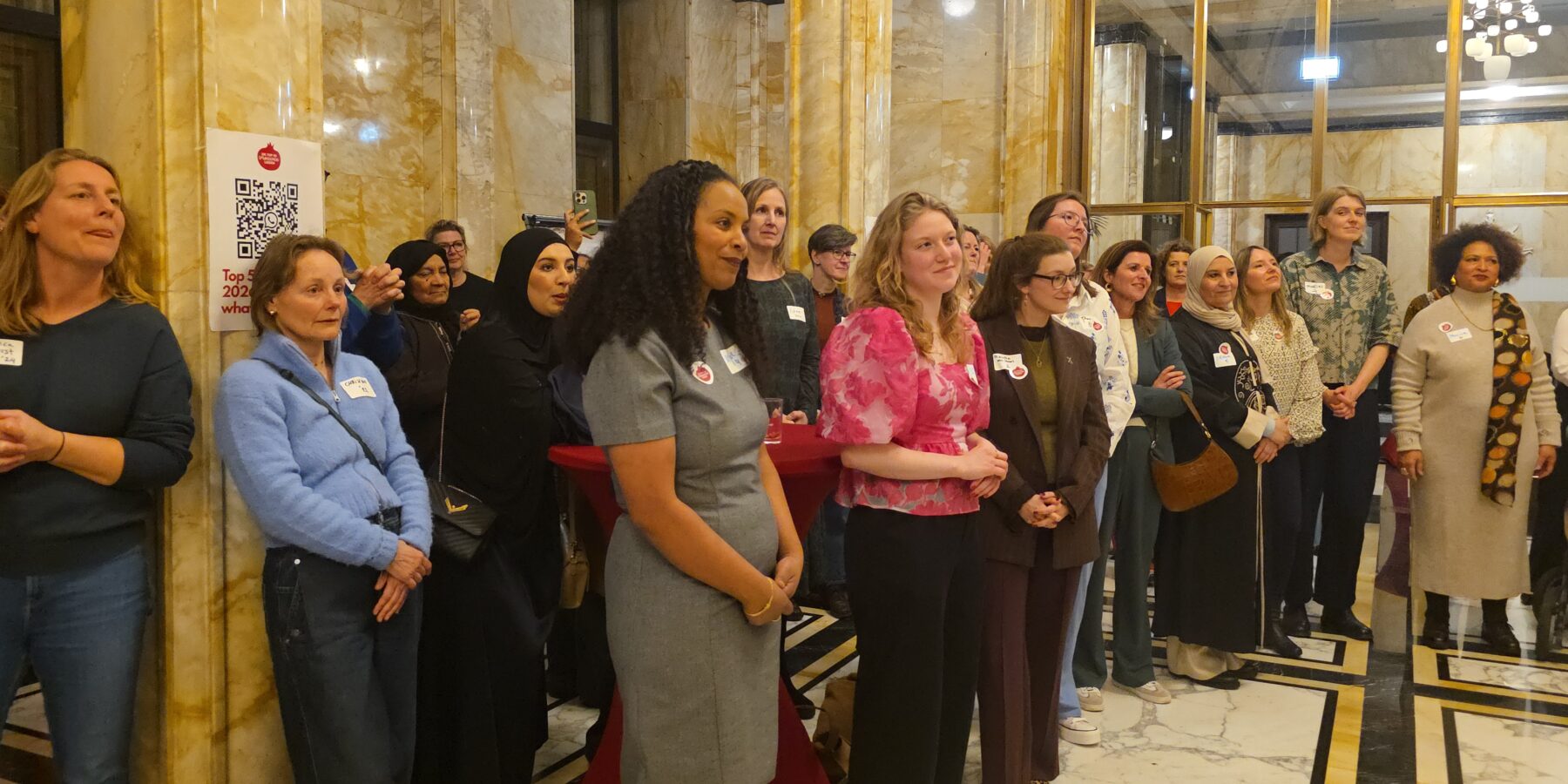 Voordat de nieuwe vijftig vrouwen een voor een naar voren werden gehaald, werd stilgestaan bij de kracht van het netwerk. “Zo wilde iemand bijvoorbeeld jassen inzamelen voor kinderen op Lesbos. Toen ze dat idee via onze appgroep deelde, werd het ineens een grote actie, waar heel veel vrouwen aan mee gingen doen”, vertelt Kirsten Zitman die vanaf het prille begin bij het Leidse vrouwennetwerk betrokken is.