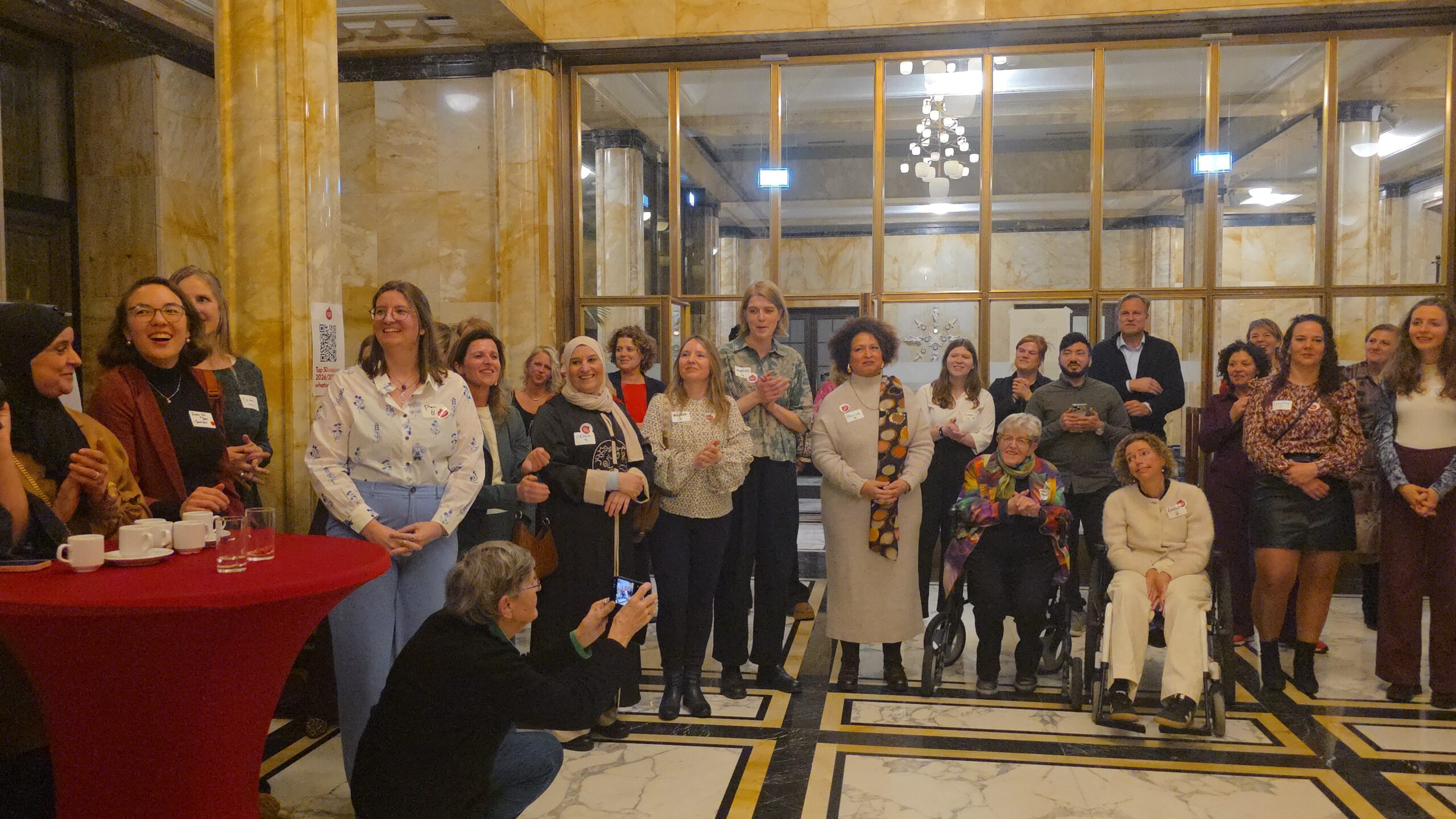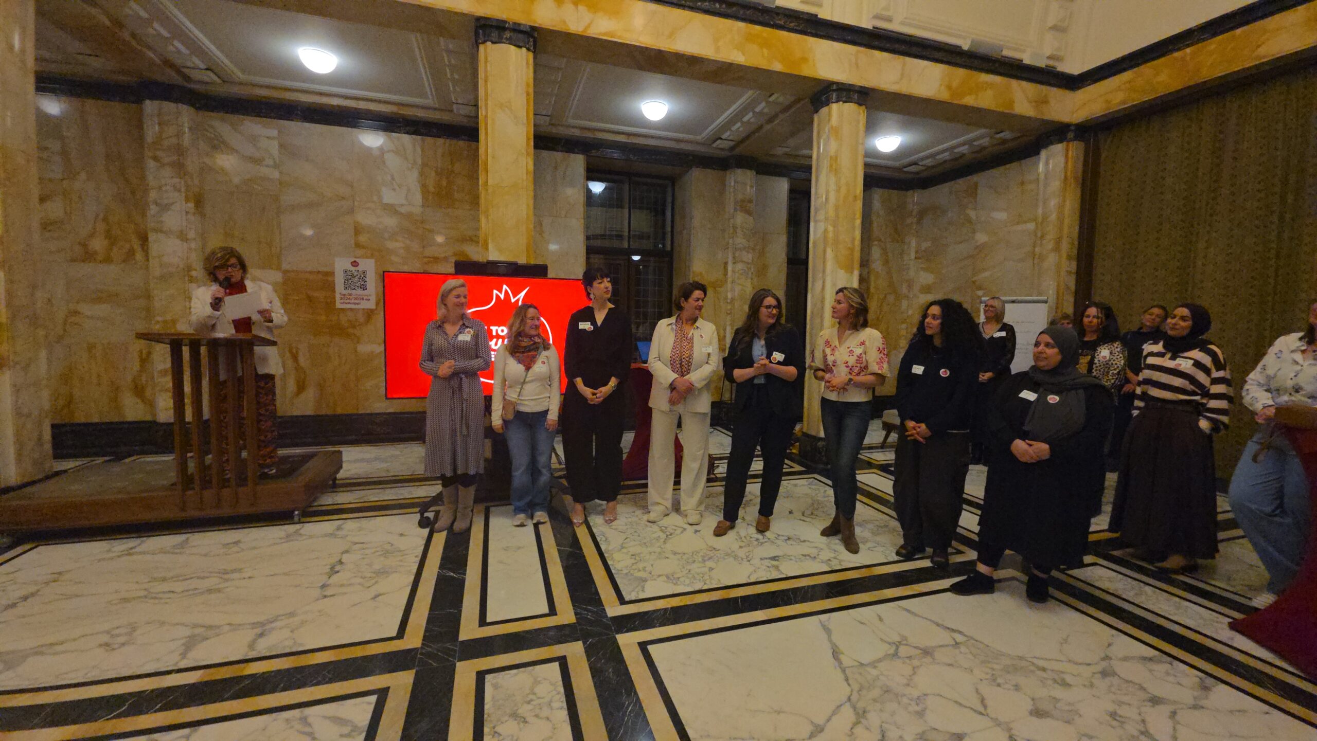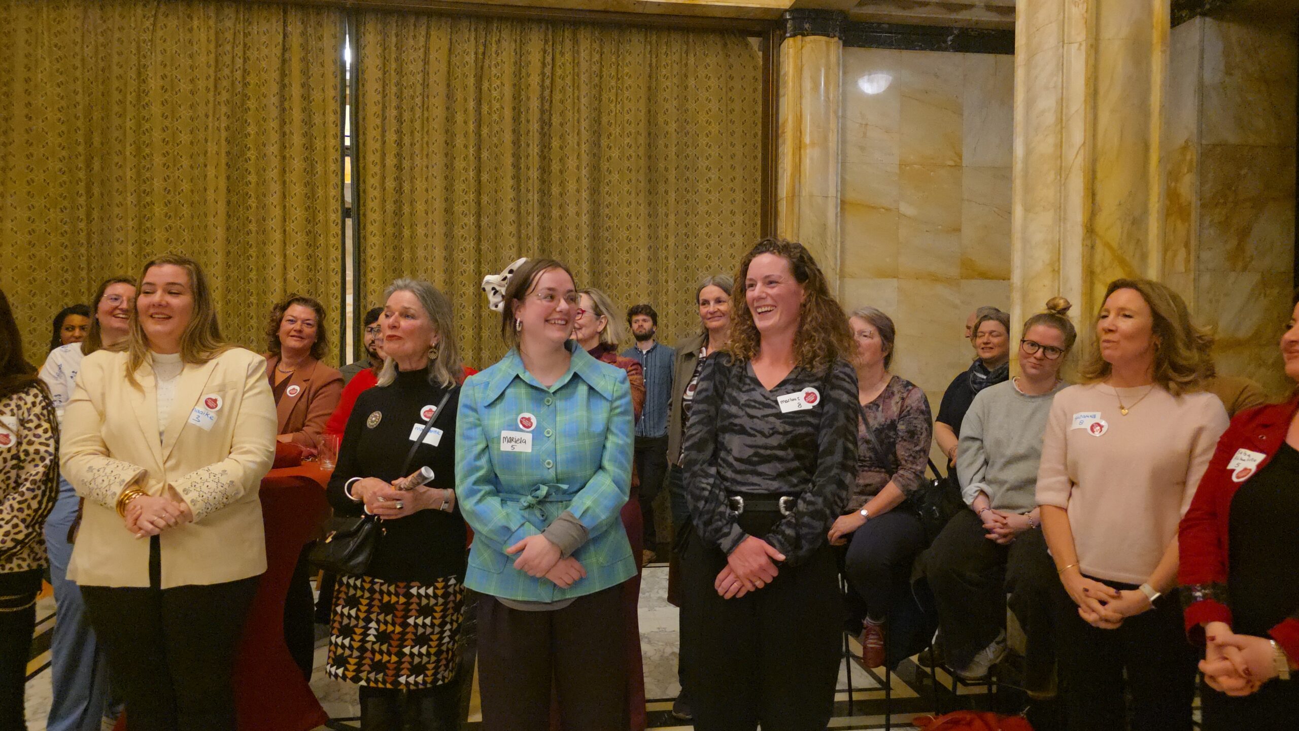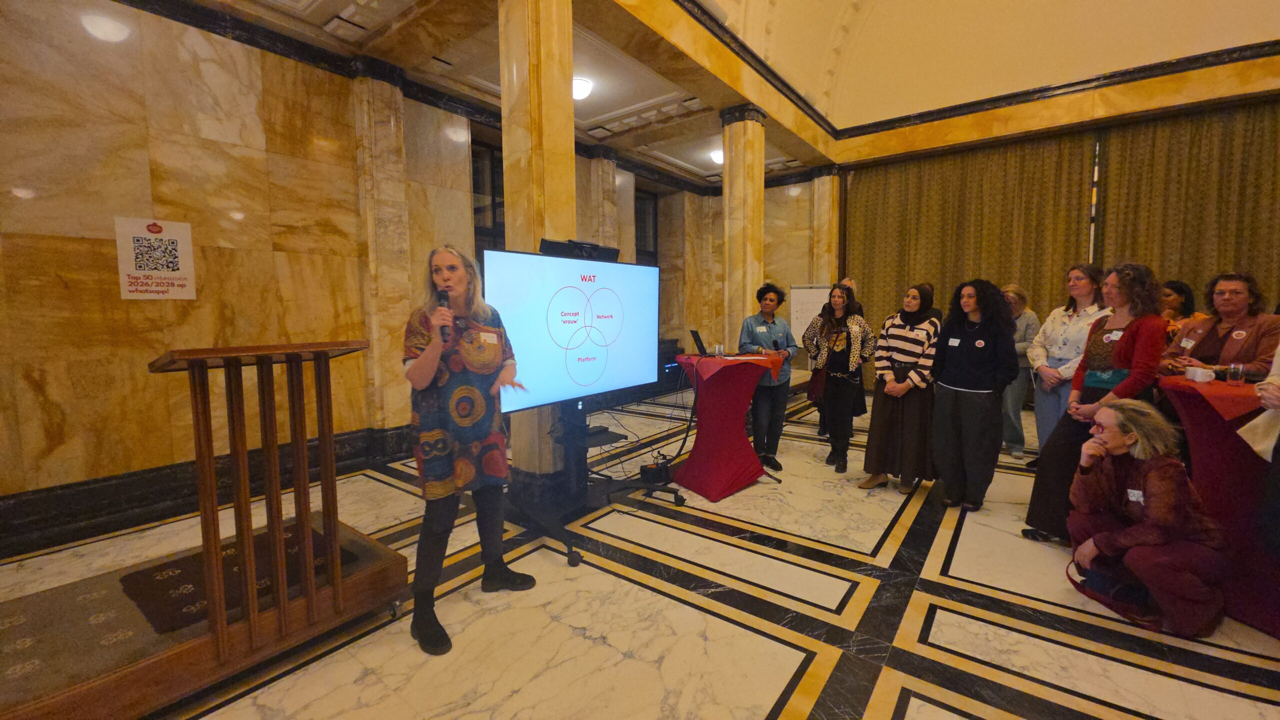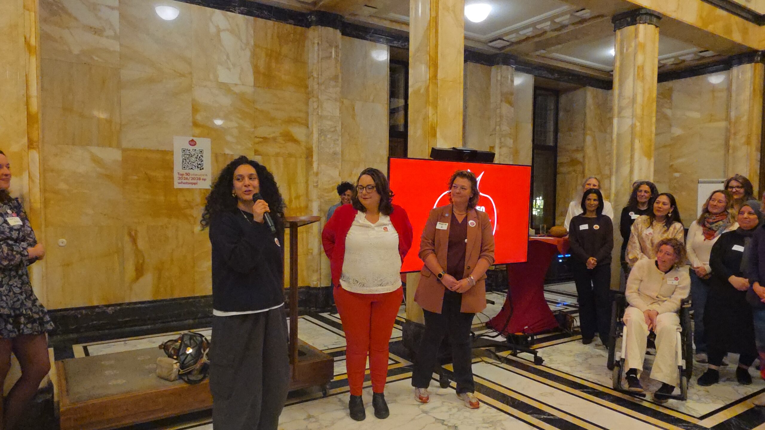 Voordat de nieuwe vijftig vrouwen een voor een naar voren werden gehaald, werd stilgestaan bij de kracht van het netwerk. “Zo wilde iemand bijvoorbeeld jassen inzamelen voor kinderen op Lesbos. Toen ze dat idee via onze appgroep deelde, werd het ineens een grote actie, waar heel veel vrouwen aan mee gingen doen”, vertelt Kirsten Zitman die vanaf het prille begin bij het Leidse vrouwennetwerk betrokken is.