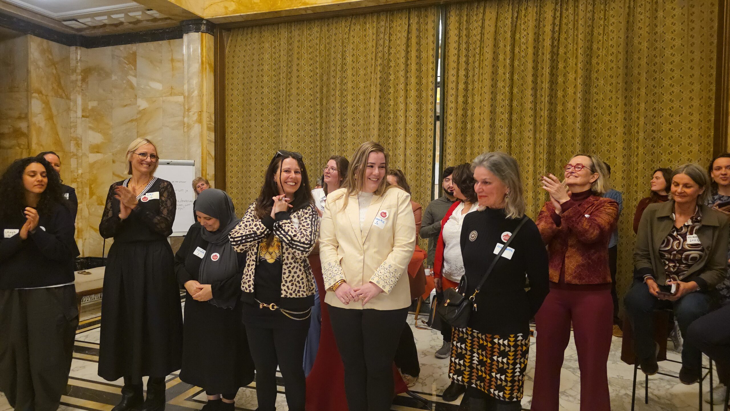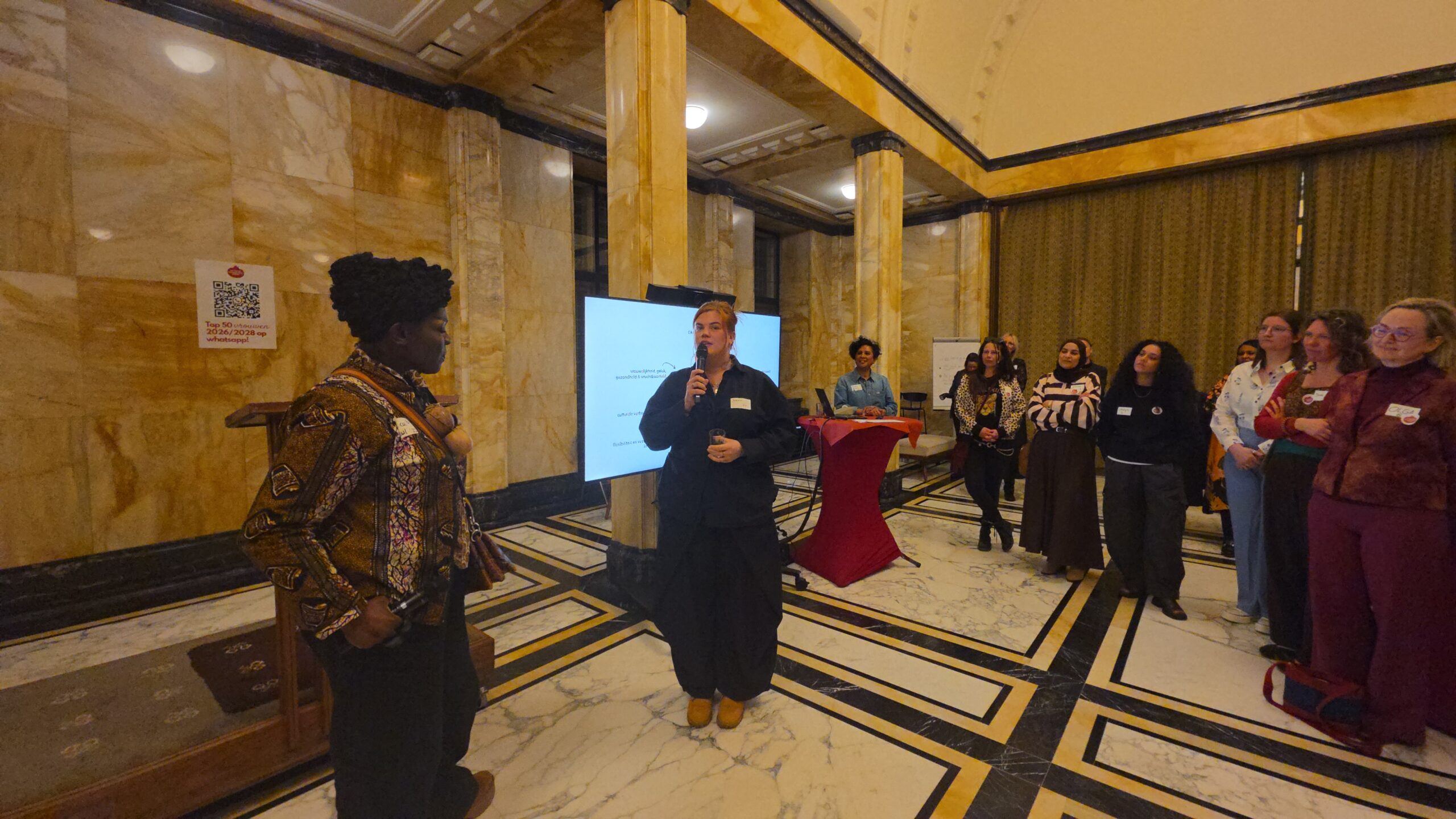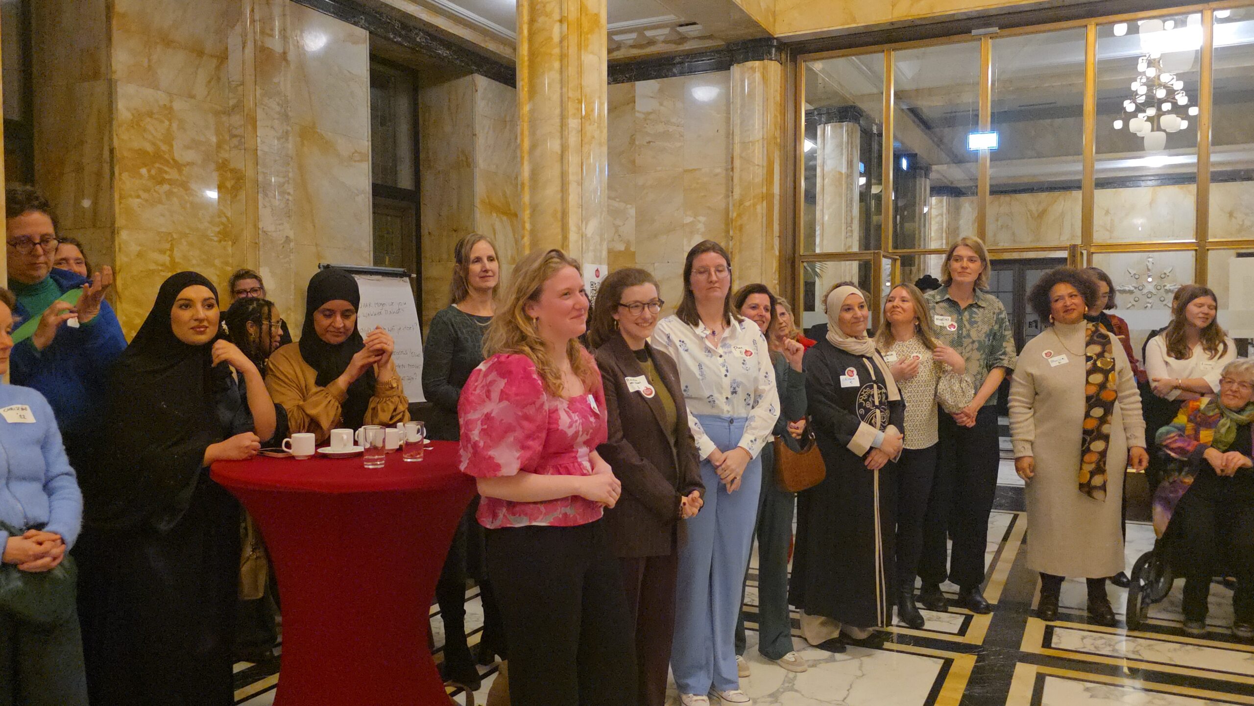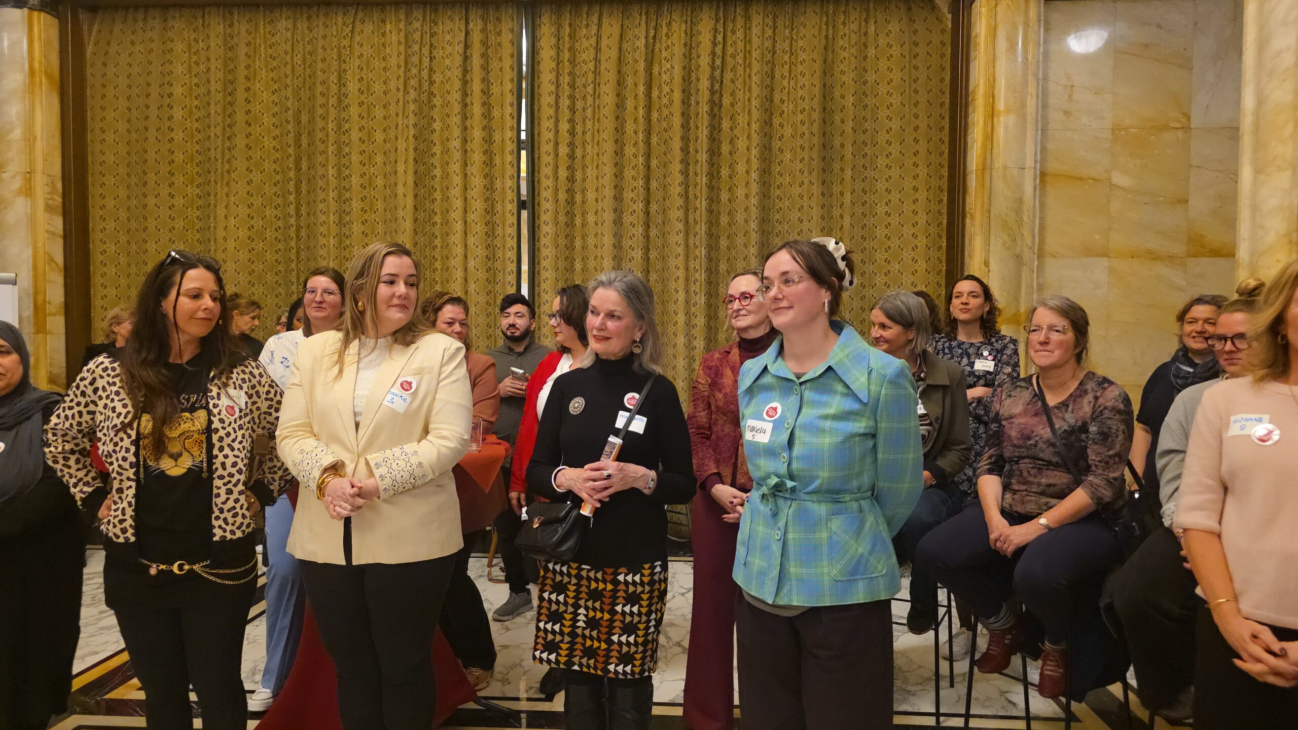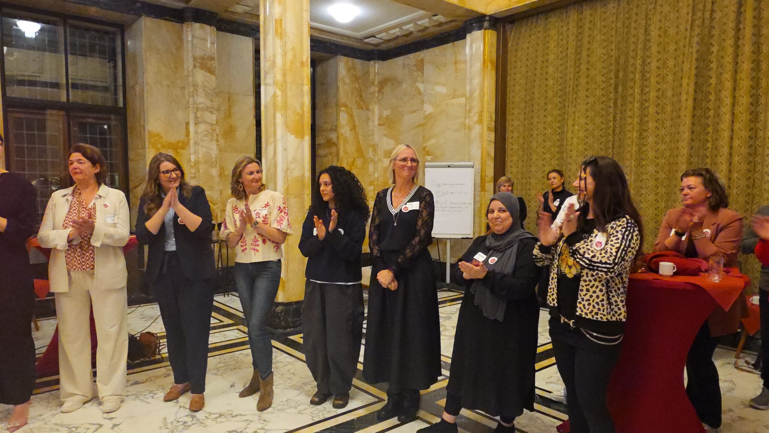 Voordat de nieuwe vijftig vrouwen een voor een naar voren werden gehaald, werd stilgestaan bij de kracht van het netwerk. “Zo wilde iemand bijvoorbeeld jassen inzamelen voor kinderen op Lesbos. Toen ze dat idee via onze appgroep deelde, werd het ineens een grote actie, waar heel veel vrouwen aan mee gingen doen”, vertelt Kirsten Zitman die vanaf het prille begin bij het Leidse vrouwennetwerk betrokken is.