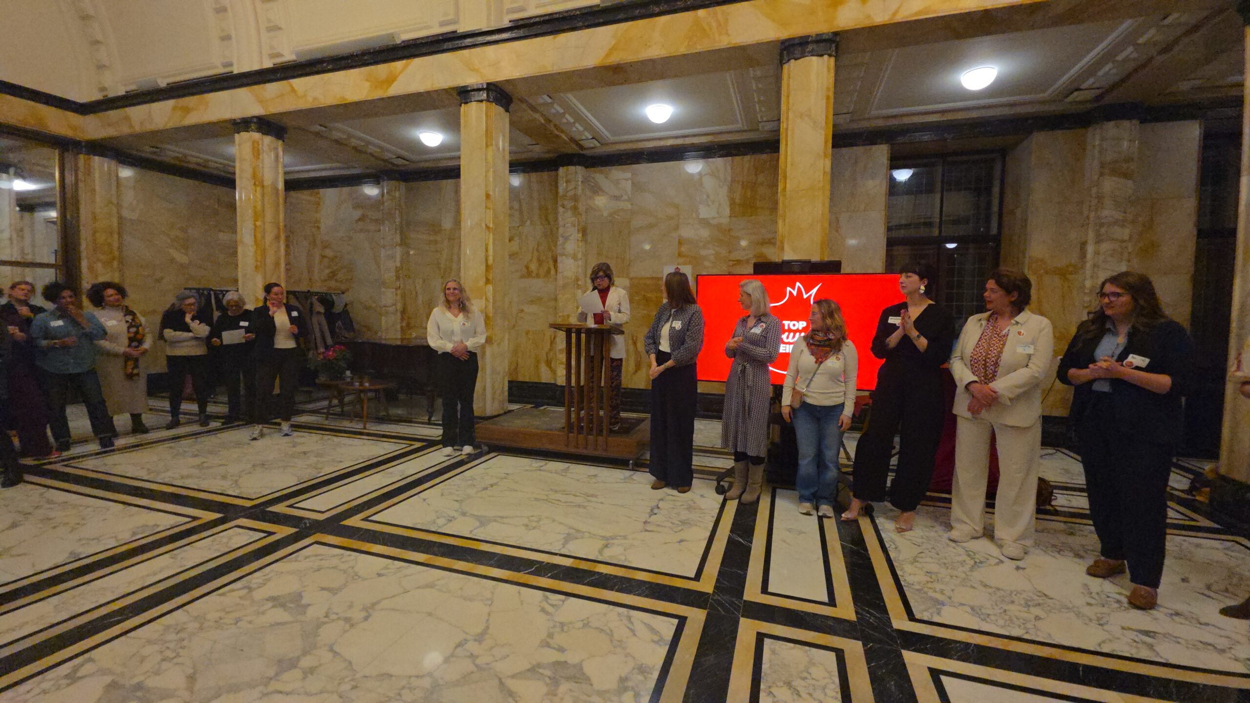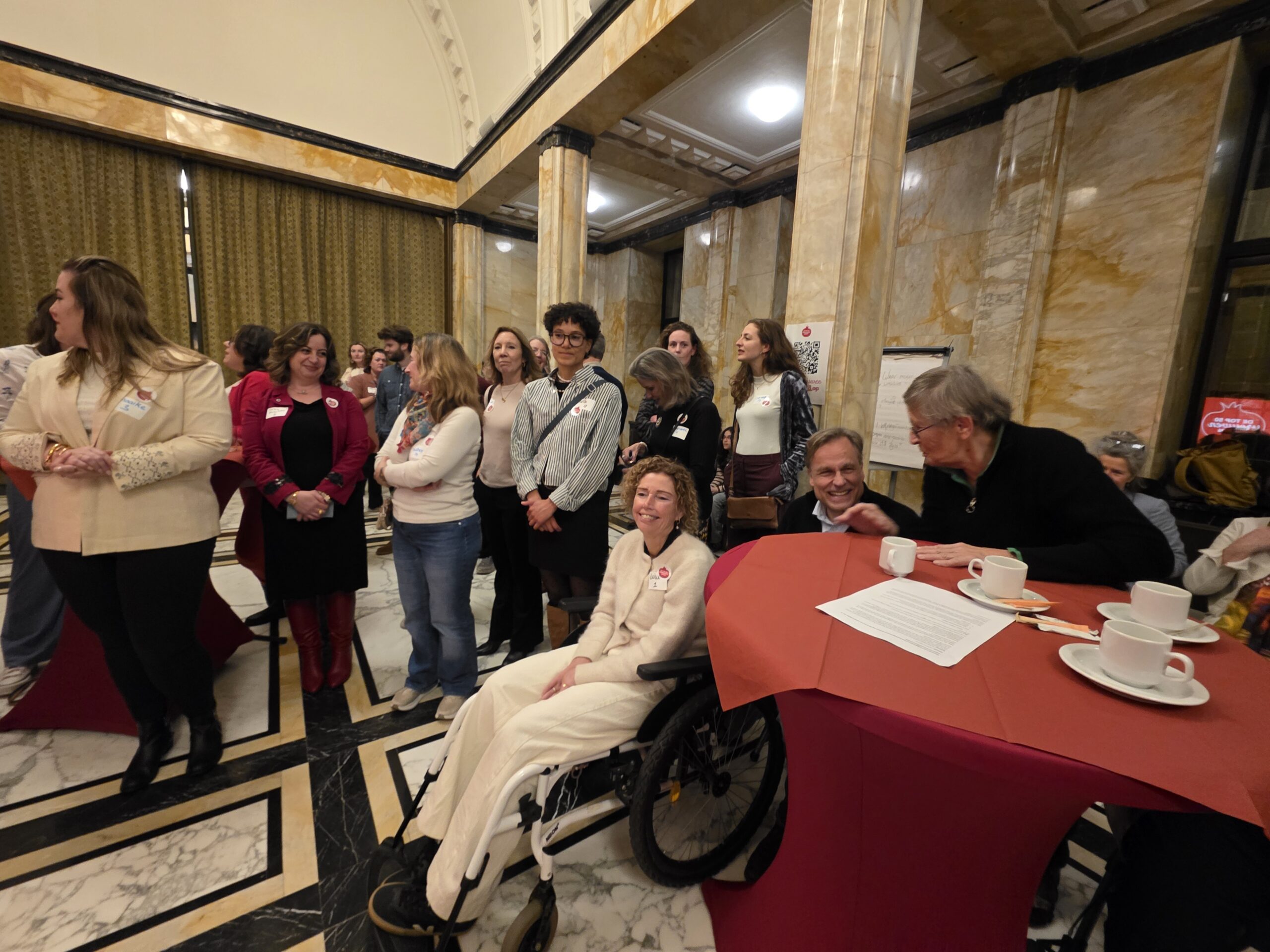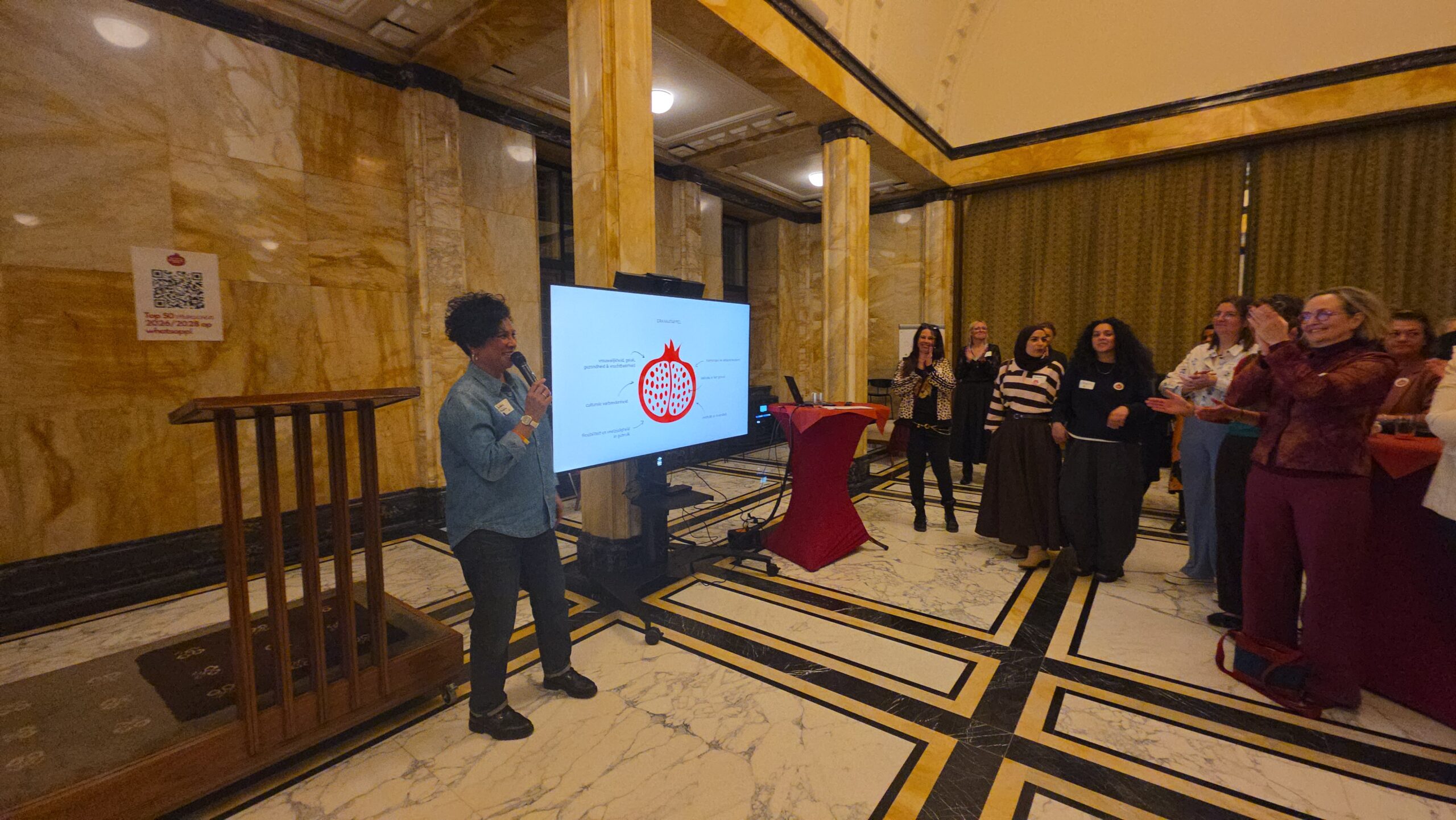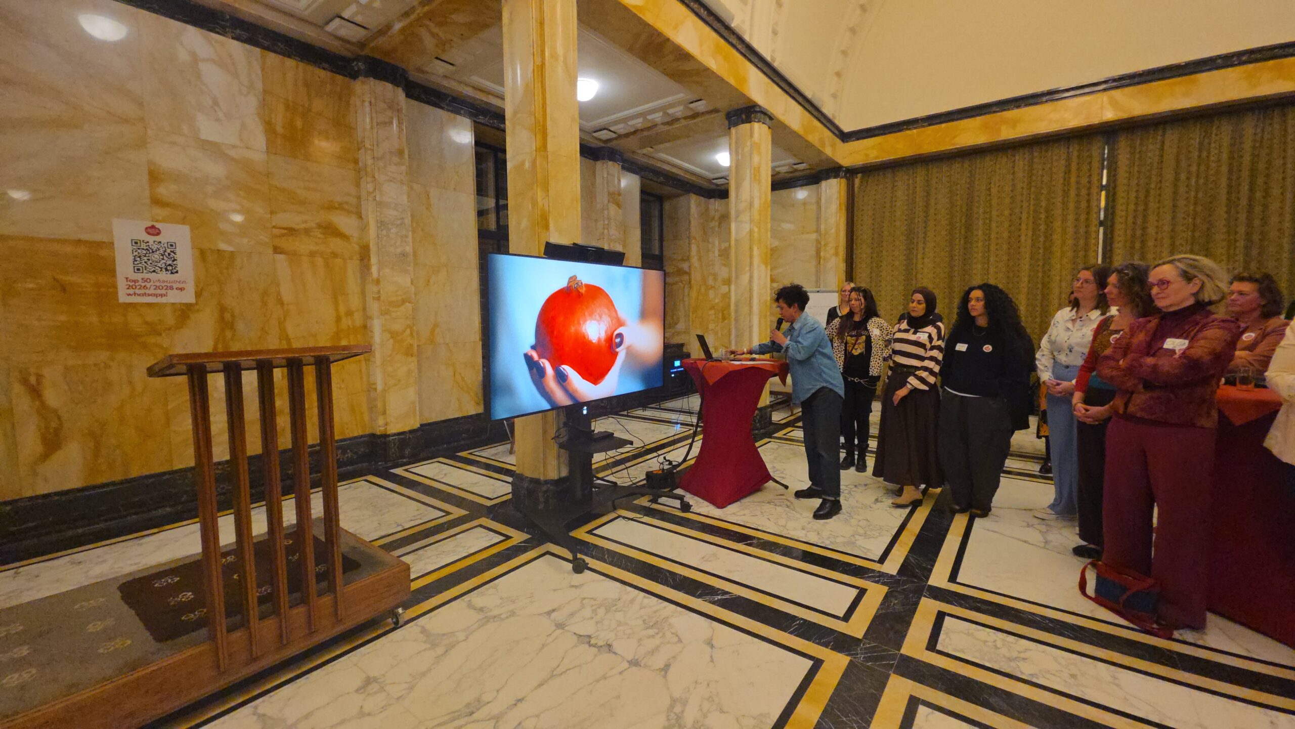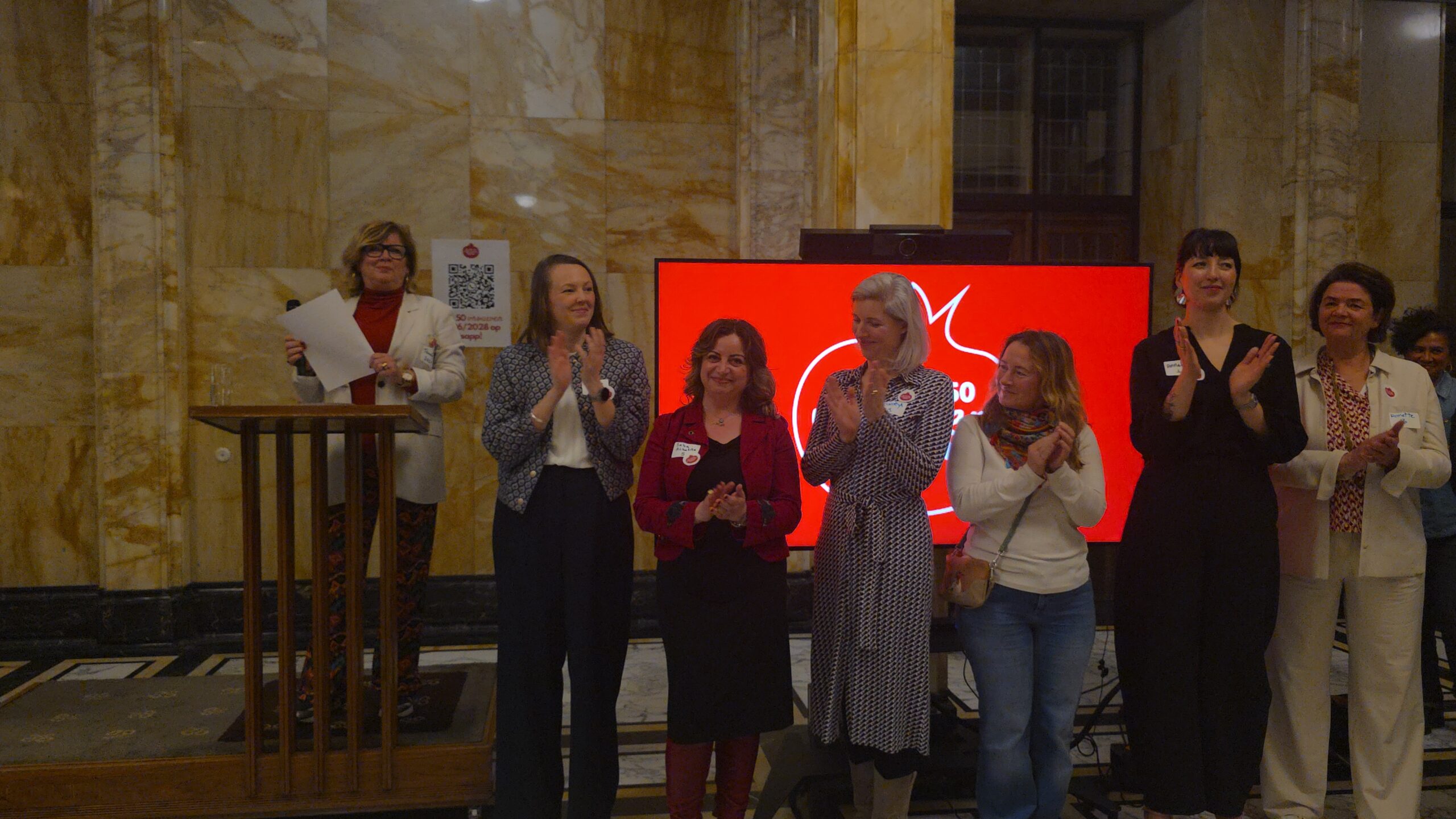 Voordat de nieuwe vijftig vrouwen een voor een naar voren werden gehaald, werd stilgestaan bij de kracht van het netwerk. “Zo wilde iemand bijvoorbeeld jassen inzamelen voor kinderen op Lesbos. Toen ze dat idee via onze appgroep deelde, werd het ineens een grote actie, waar heel veel vrouwen aan mee gingen doen”, vertelt Kirsten Zitman die vanaf het prille begin bij het Leidse vrouwennetwerk betrokken is.