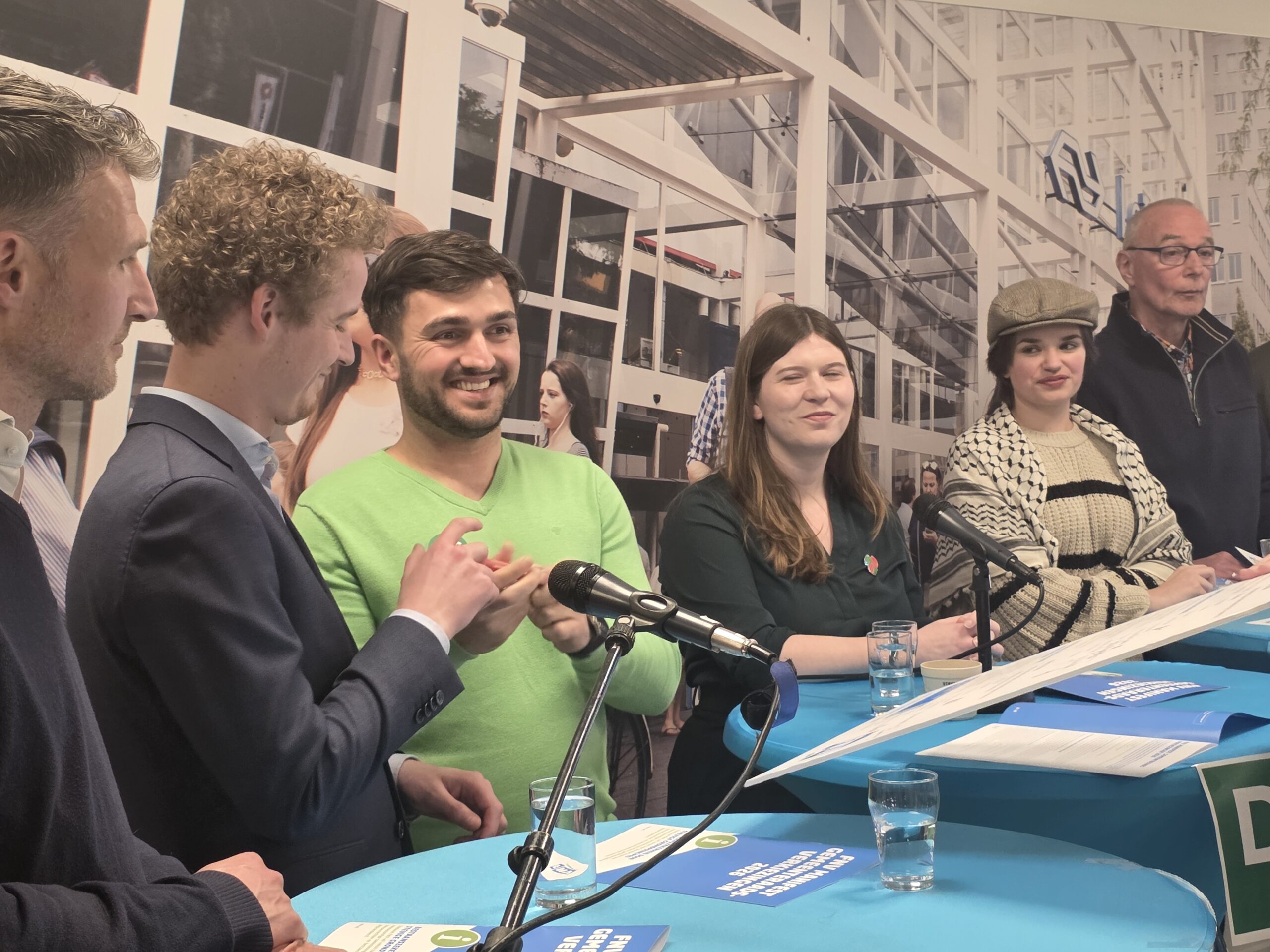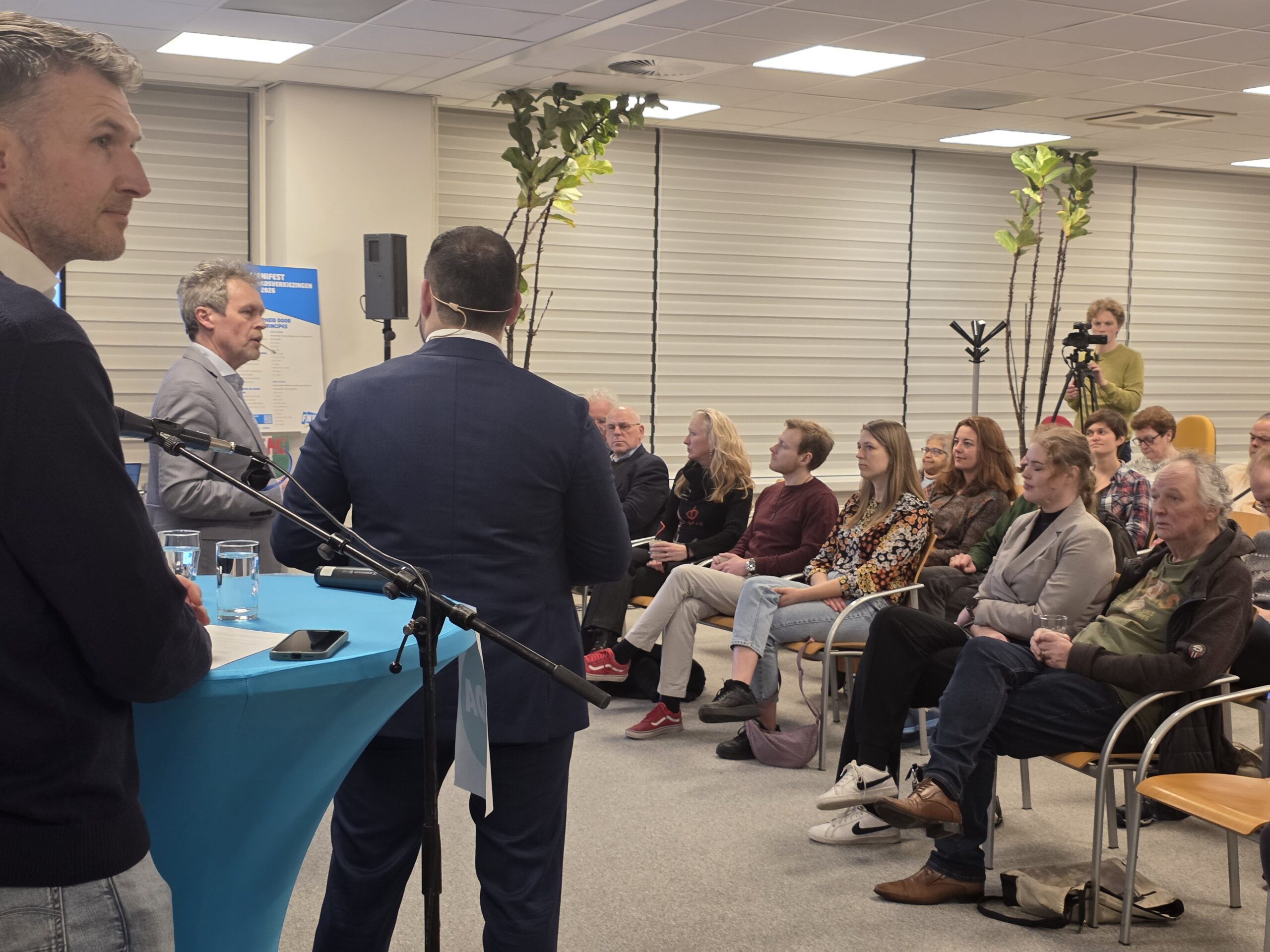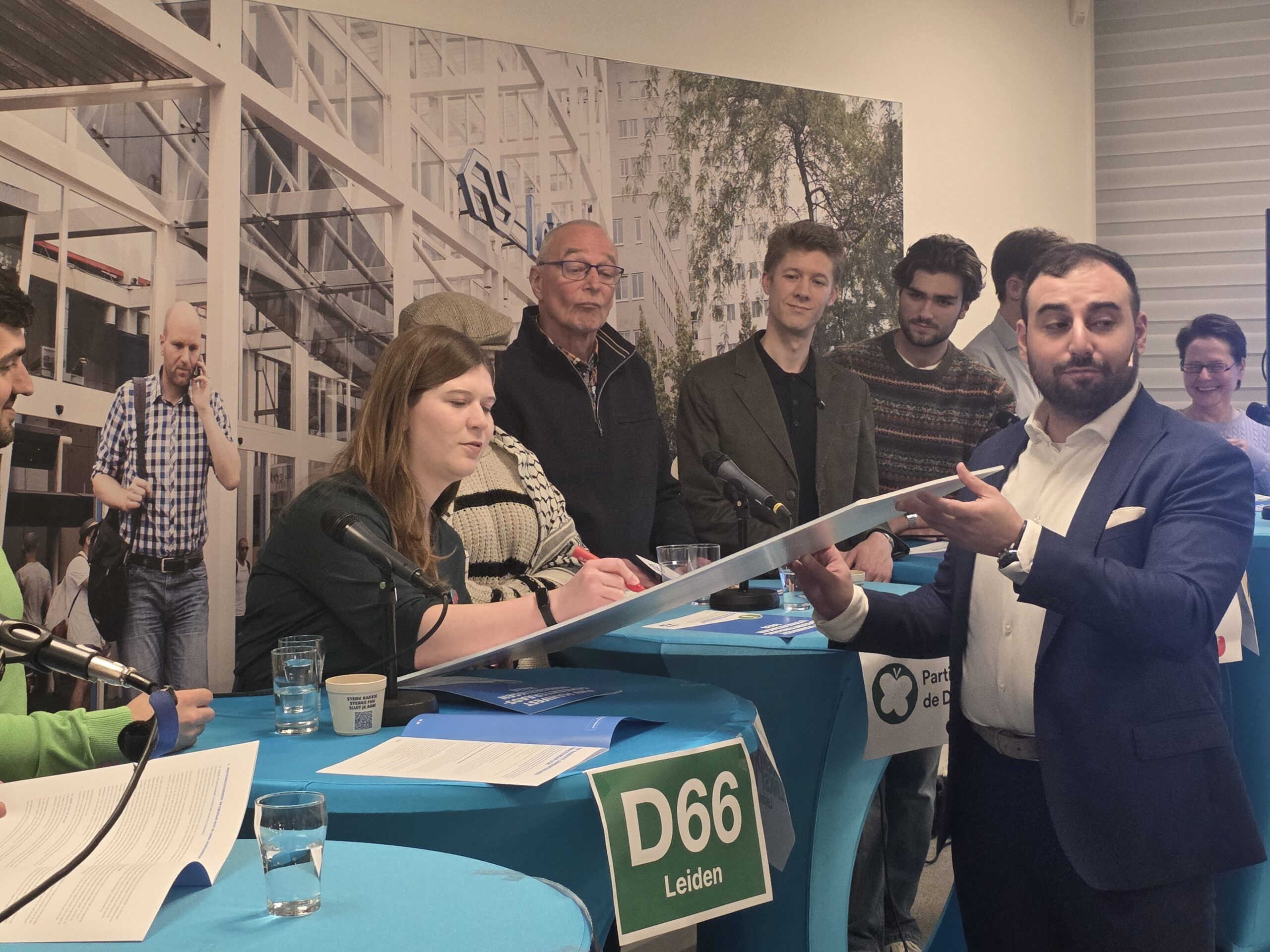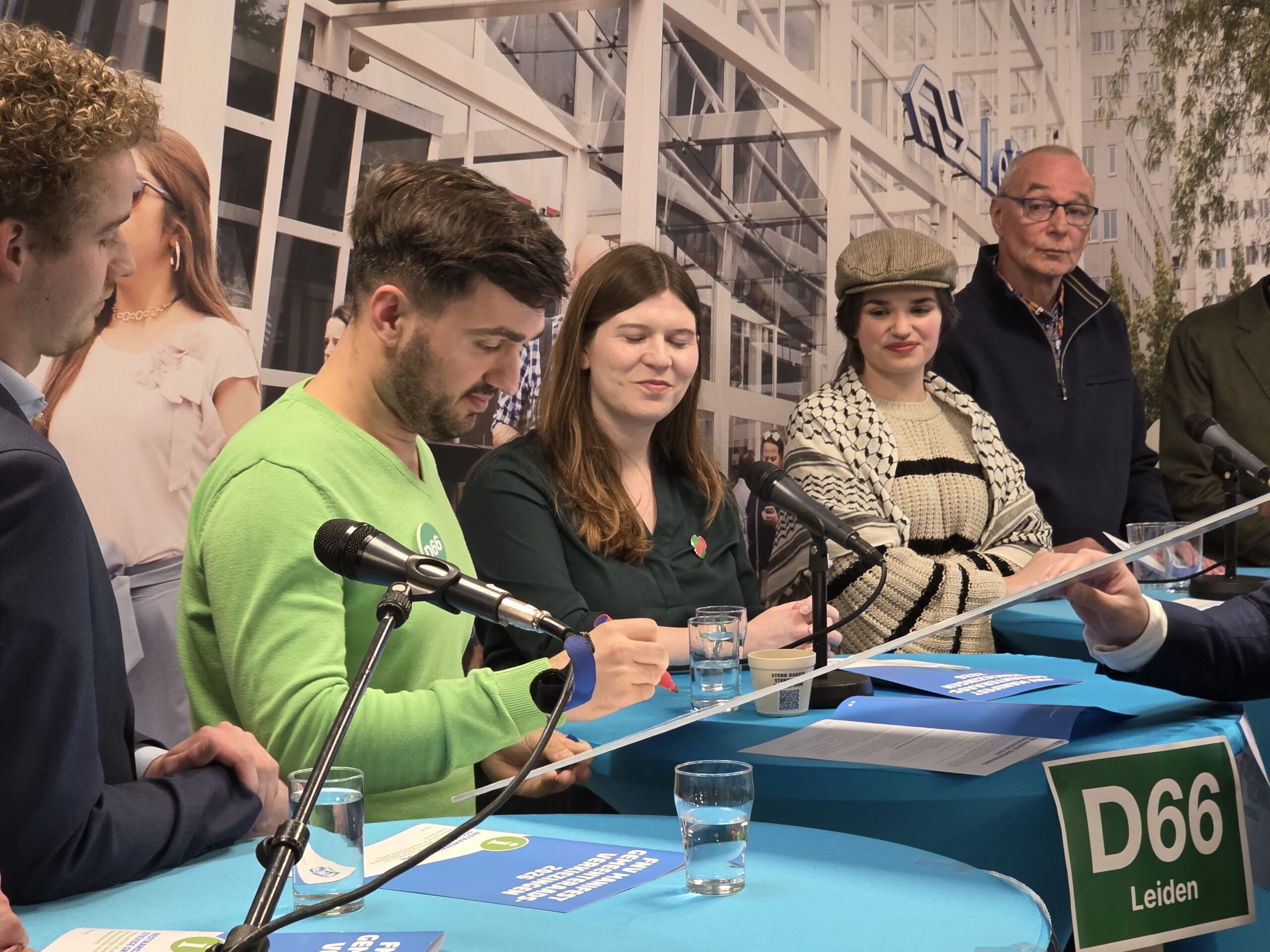 Na een introductie per partij, werd aan alle politici het zestienpuntenplan voorgelegd dat de FNV speciaal voor de gemeenteraadsverkiezingen heeft opgesteld. Veel partijen onderschrijven tenminste een deel van die punten en zetten er een handtekening onder. Alleen de VVD Leiden deed dat niet.