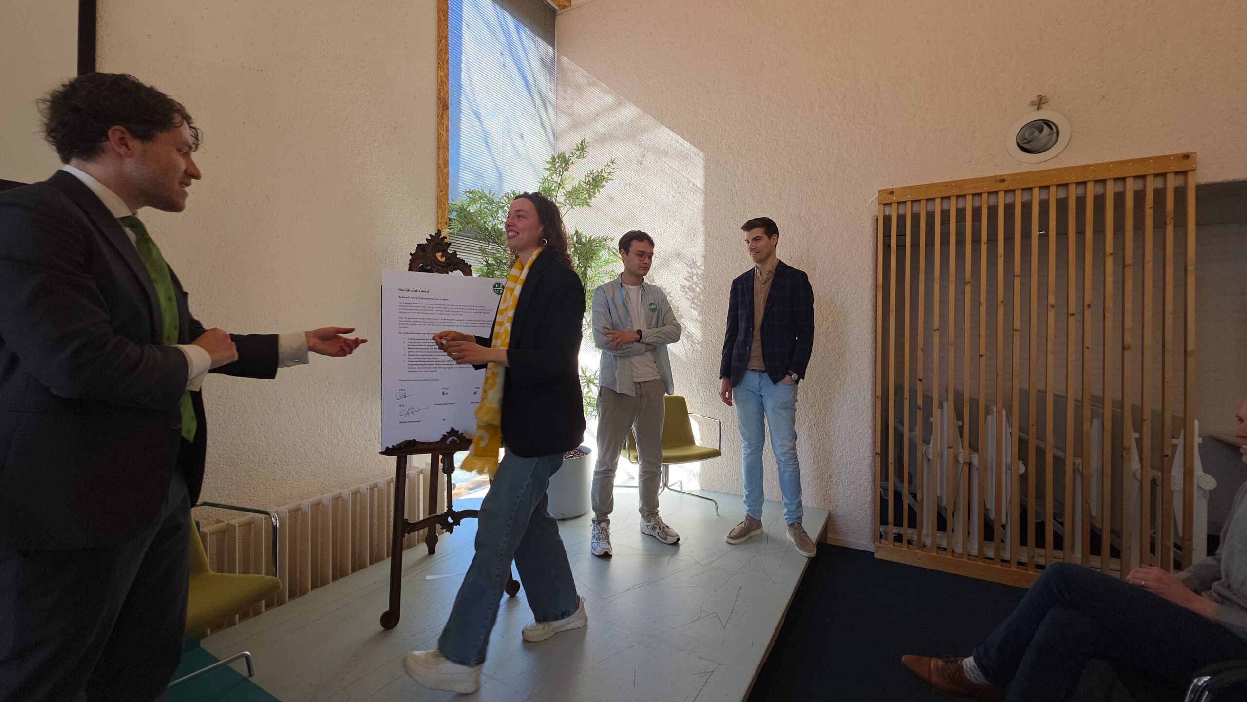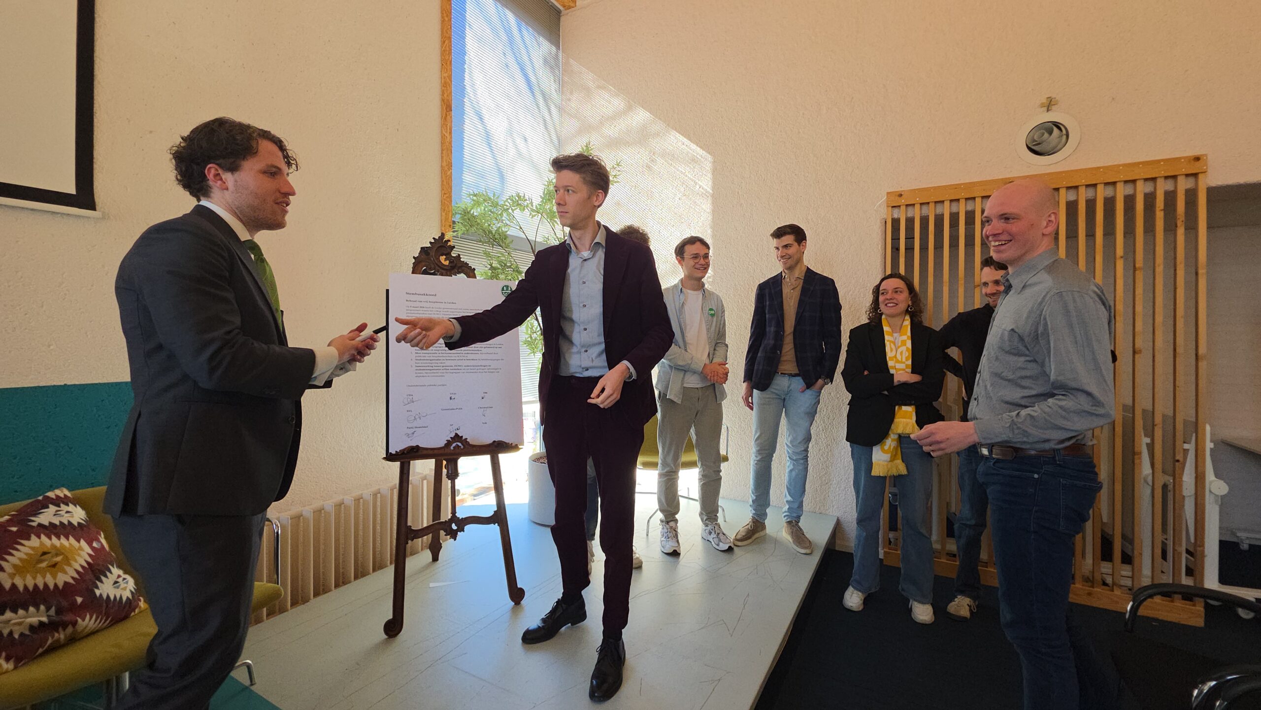 “We vonden het belangrijk om de politiek ook na de verkiezingen aan hun belofte te houden”, verklaart Praeses Pim Lammers van de PKvV het akkoord. Daarin beloven de ondertekenaars om vrij hospiteren als uitgangspunt te behouden voor studentenwoningen en ingrijpende wijzigingen alleen te steunen als daar een duidelijk probleem mee wordt opgelost. Ook meer transparantie bij het kameraanbod en het actief betrekken van studentenorganisaties bij relevante beleidswijzigingen maken deel uit van het stembusakkoord.