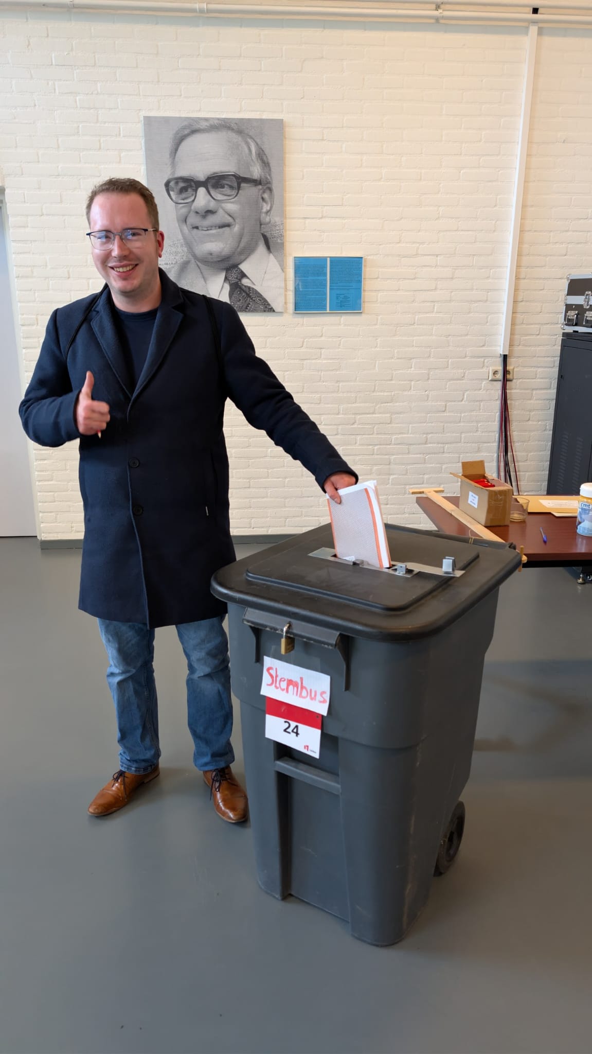 Ook de Oegstgeester burgemeester Emile Jaensch bracht zijn stem uit. Ook verwelkomde hij twee 18 jarige nieuwe stemmers. Daarnaast is hij ook trots op de organisatie Prokkel. Deze organisatie zet zich in voor mensen met een verstandelijke beperking en helpt een handje mee op de stembureaus.