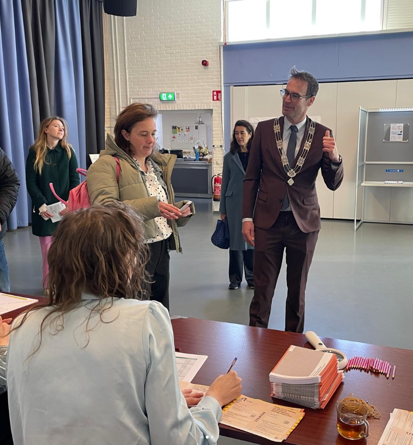 Burgemeester Heijkoop bezoekt stembureaus