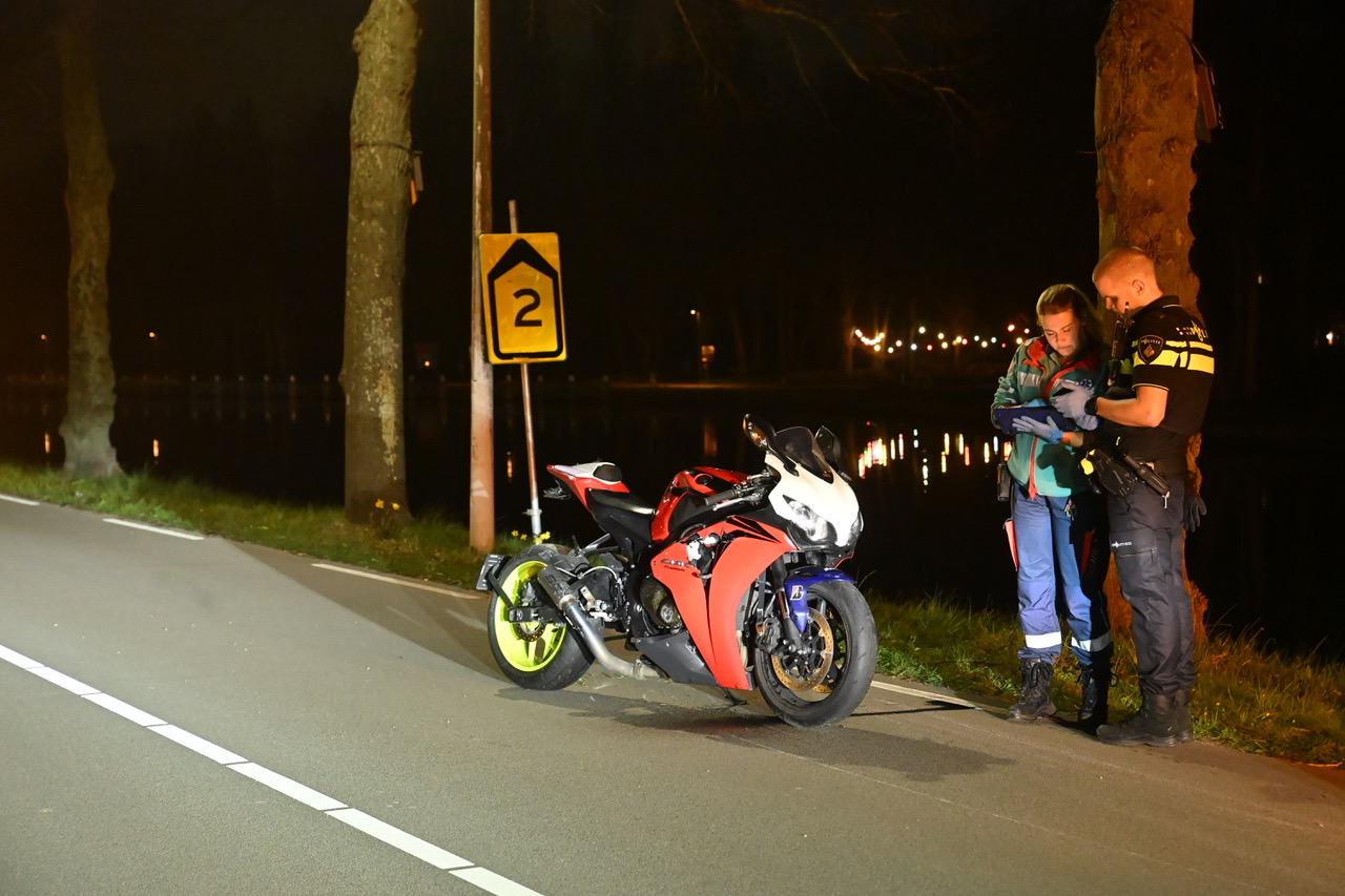 Een motorrijder is donderdagavond rond 20.15 uur gewond geraakt toen hij op de Kanaalweg in Leiden op het laatste moment uitweek voor een vrachtwagen die hij te laat had gezien.