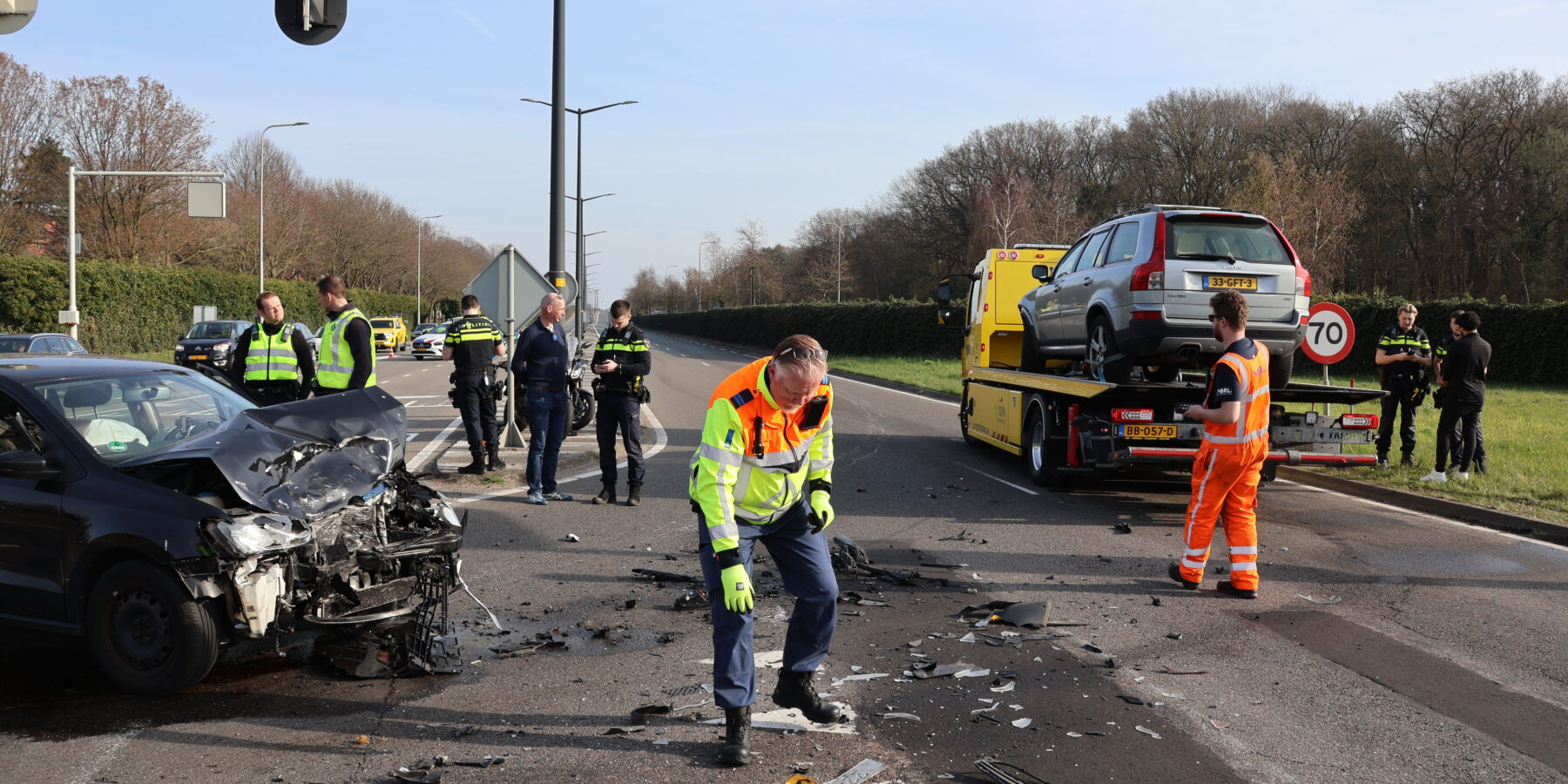 De beide voertuigen liepen veel schade op. Bij allebei de auto’s klapten ook de airbags uit.