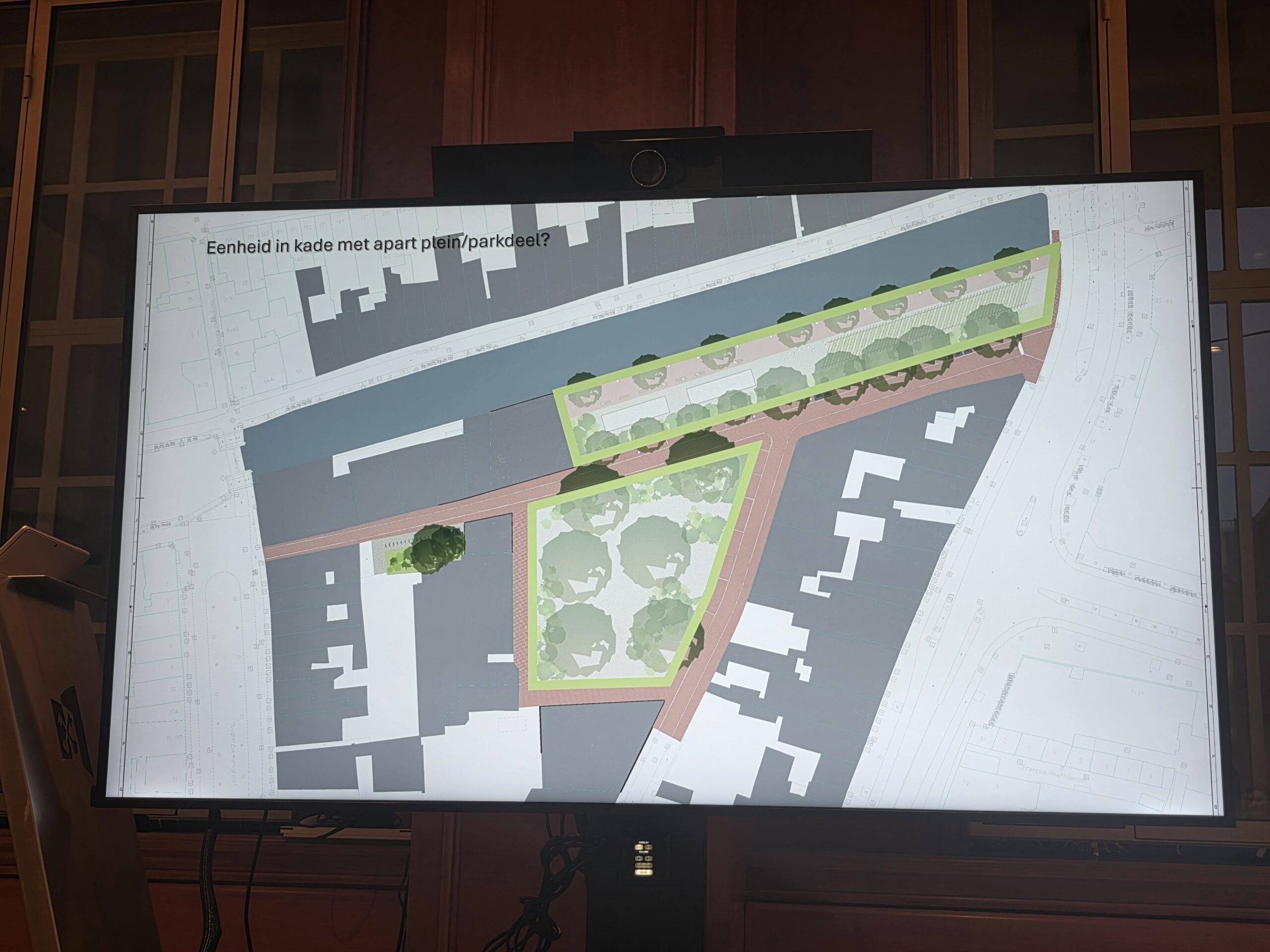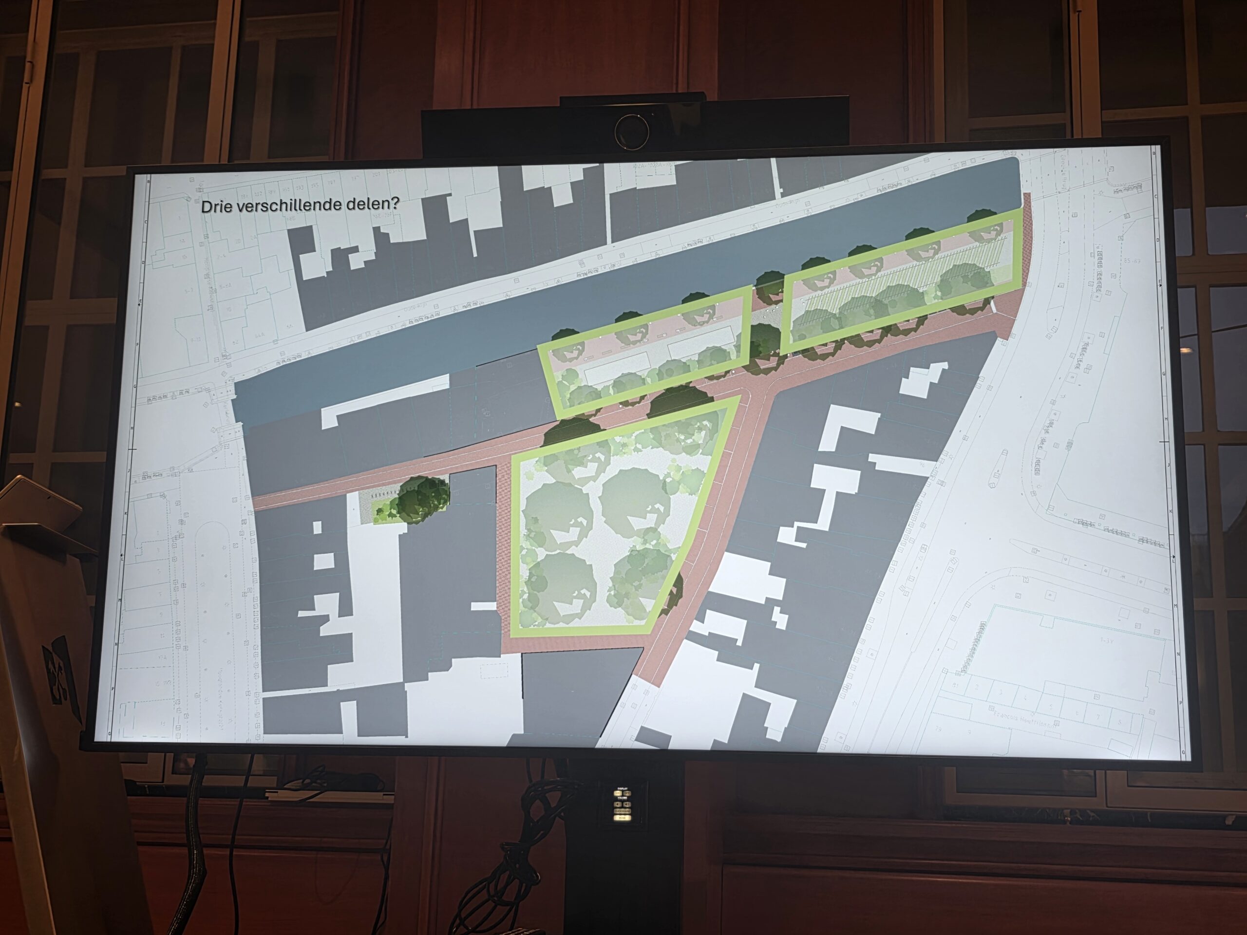 “Ik heb nu al veel geluidsoverlast van studenten die met een kratje bier buiten gaan zitten en dat wordt dan nog veel erger”, denkt Linda die vanuit haar woning uitkijkt op de plek waar het plein moet uitmonden in een aflopende oever vol bankjes en andere zitjes. “Als ik naar een park wil, heb ik genoeg keus. Ik hoef dat niet voor m’n deur.”