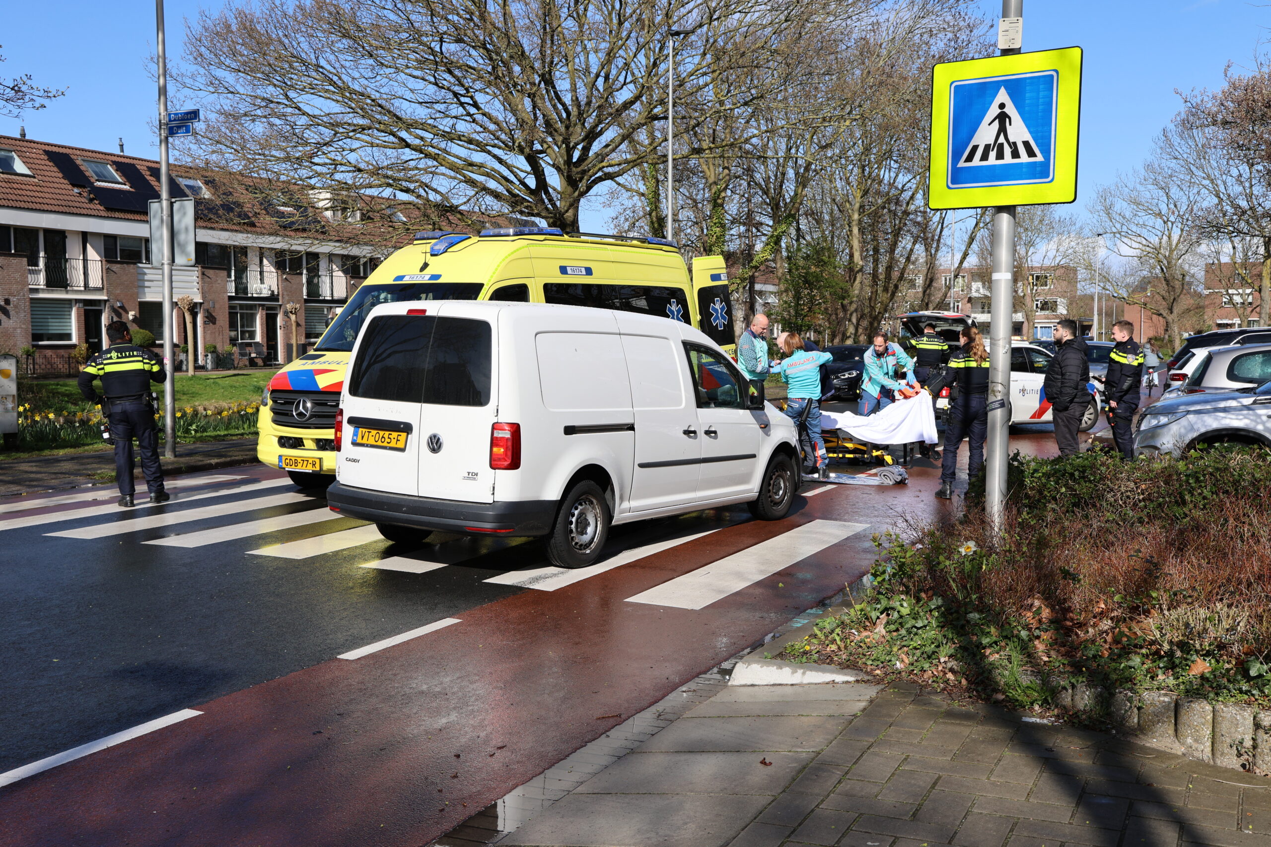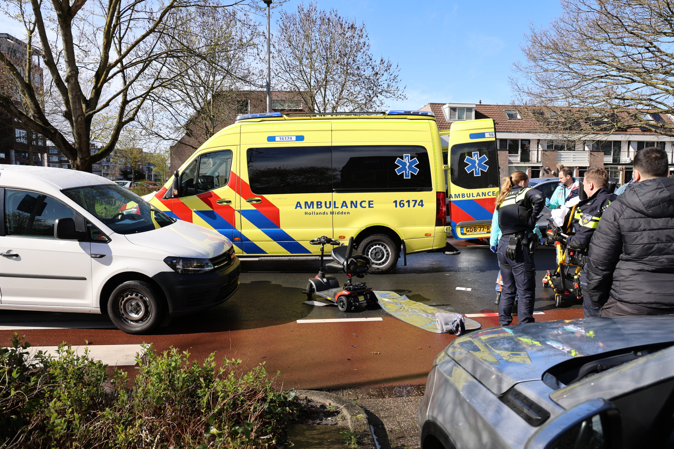 Een oudere man in een scootmobiel is donderdagmiddag rond 14.30 uur gewond geraakt nadat hij op een oversteekplaats werd aangereden door een busje. Dat gebeurde op de Heinsiuslaan ter hoogte van de Dubloen in Leiderdorp.
