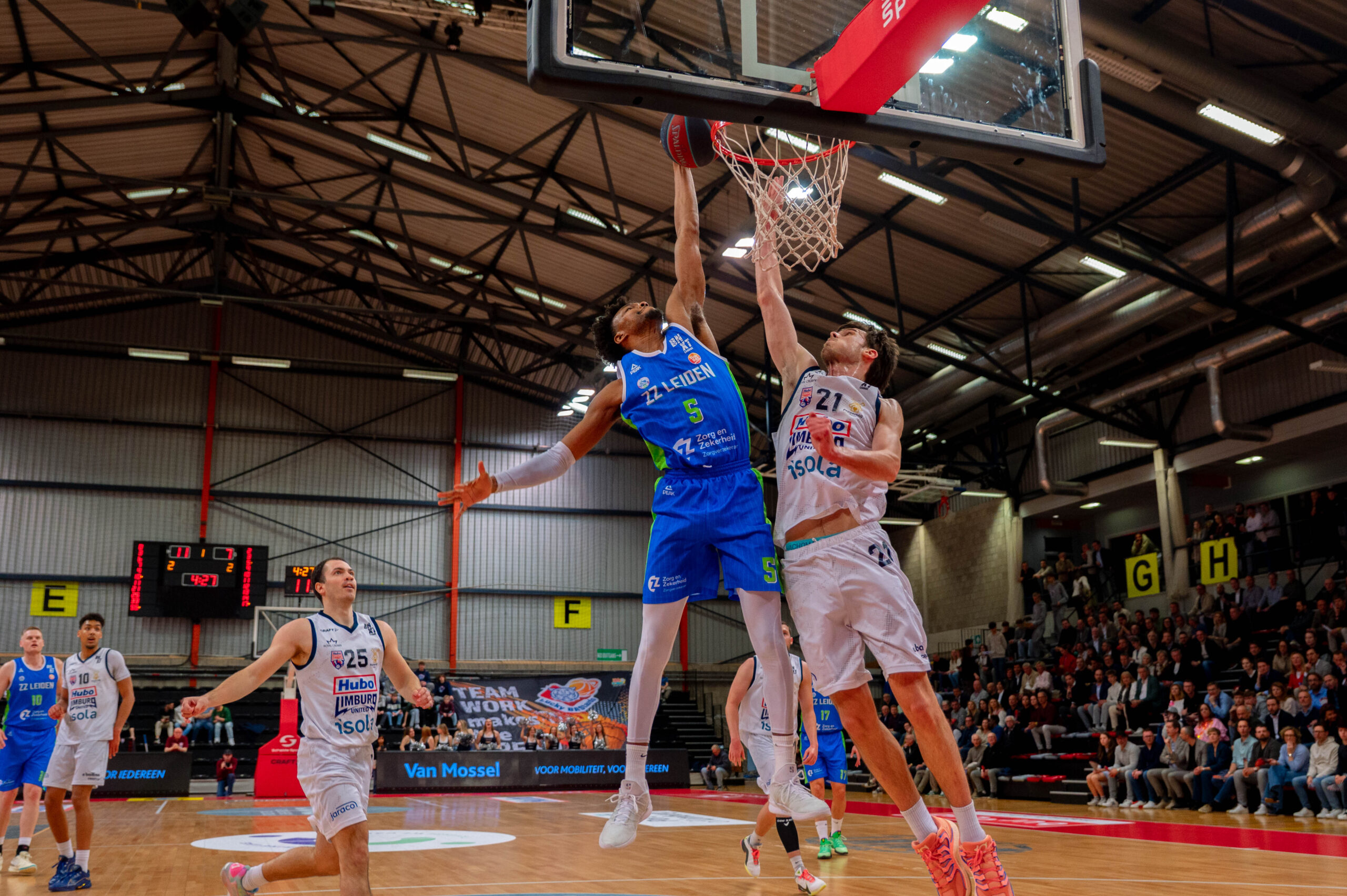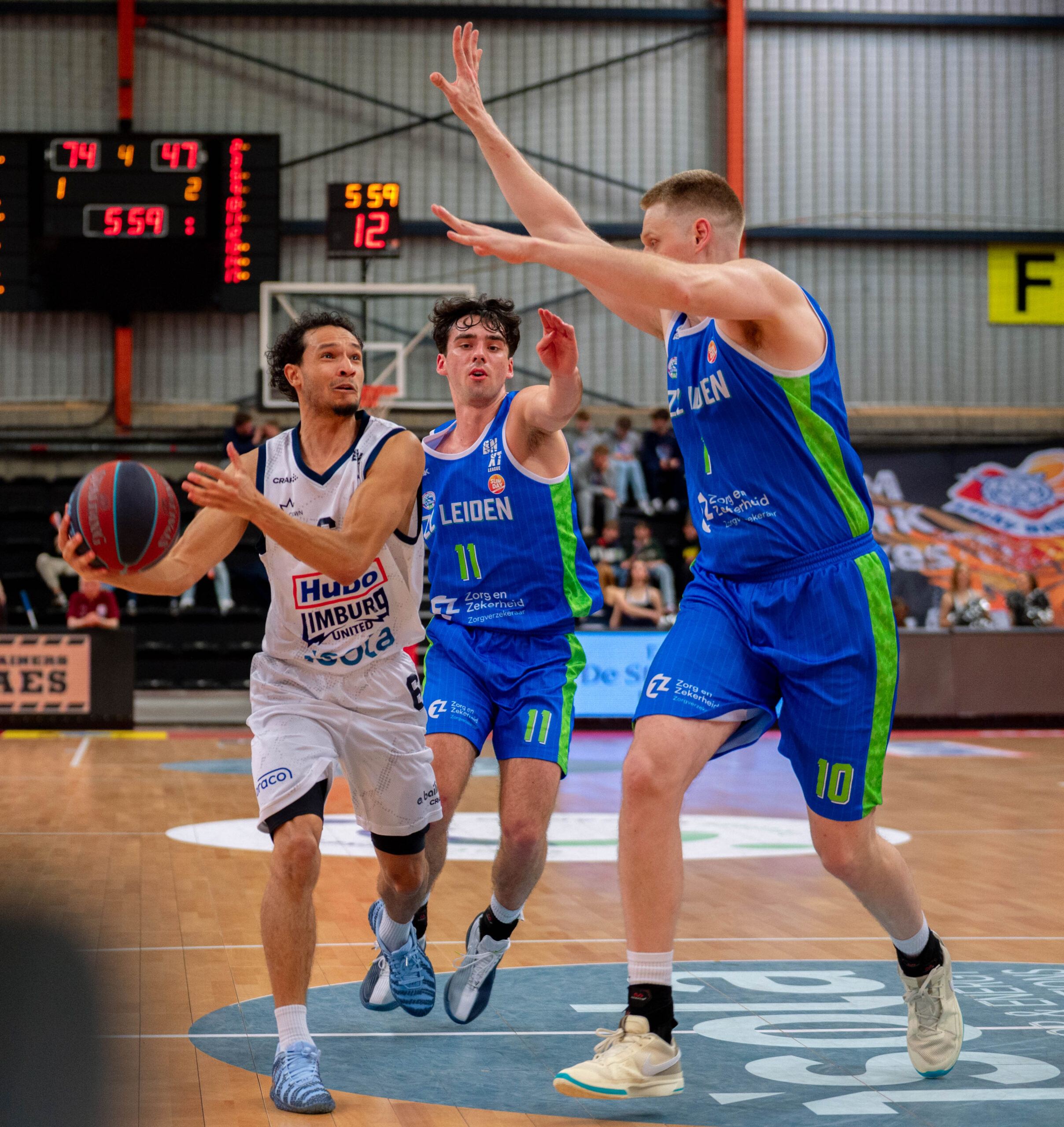 Daarnaast bleek de thuisploeg inside sterk en effectief, wat het voor Leiden lastig maakte om controle te krijgen op de wedstrijd. Limburg combineerde dat met een goed schot van afstand (9 driepunters uit 20 pogingen), waardoor het verschil verder opliep. Een spectaculaire alley-oop, blocked shots en meerdere sterke acties onder het bord onderstreepten het overwicht van de thuisploeg in de tweede helft.