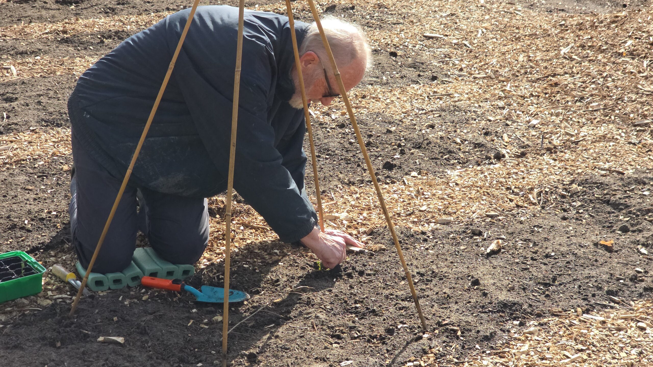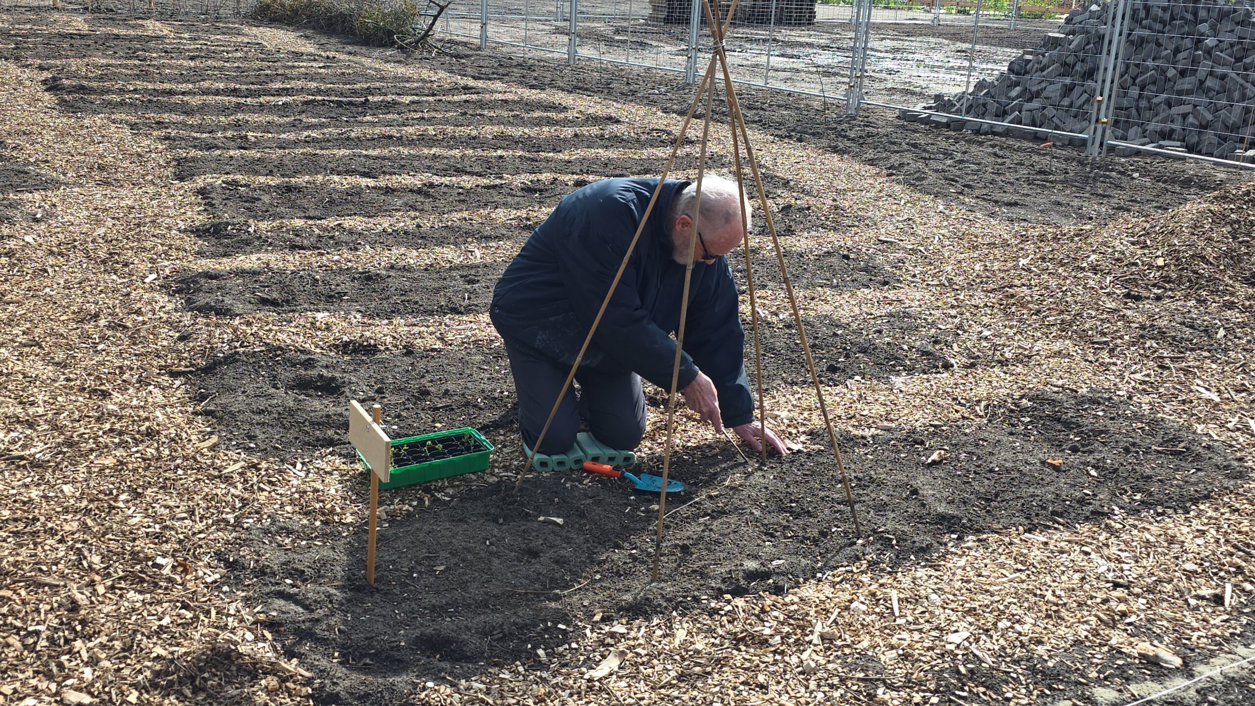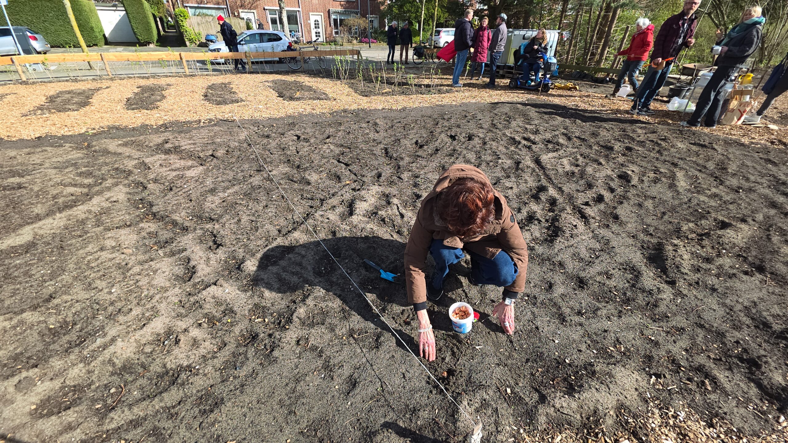 Een van de grotere tuindelen heeft een bijzondere bestemming gekregen wen wordt gemeenschappelijk onderhouden. “Dat is onze hutspottuin, waar nu uien en aardappelen zijn gepoot. We gaan er ook nog wortelen inzaaien en dan in september hopen we op een mooie oogst”, zegt Van der Steen.