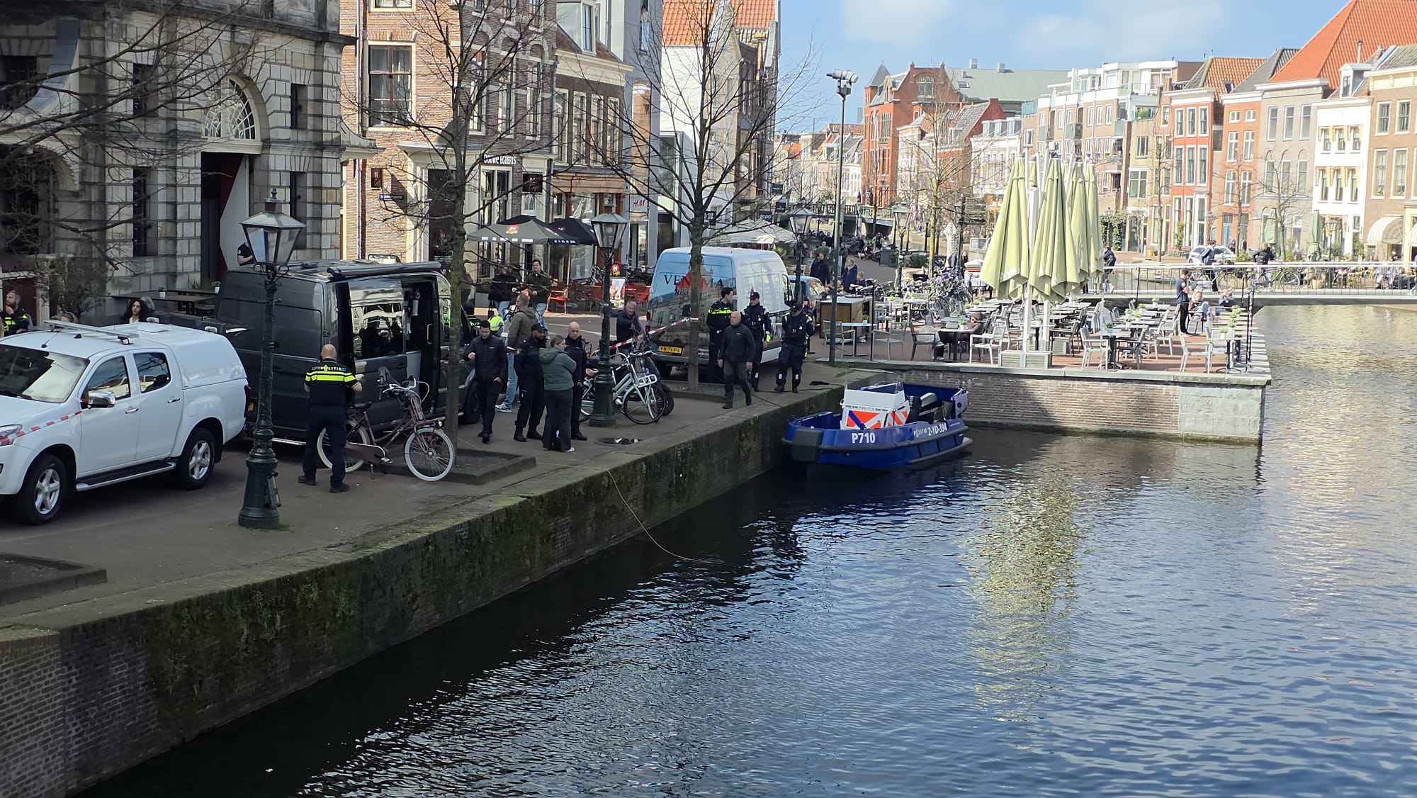 De politie is al de hele dinsdag aanwezig rond het water van de Stille Rijn in Leiden. Er wordt rekening gehouden met het aantreffen van de twintigjarige Cuinn van Keulen die zondagnacht na een avondje stappen niet thuis kwam.
