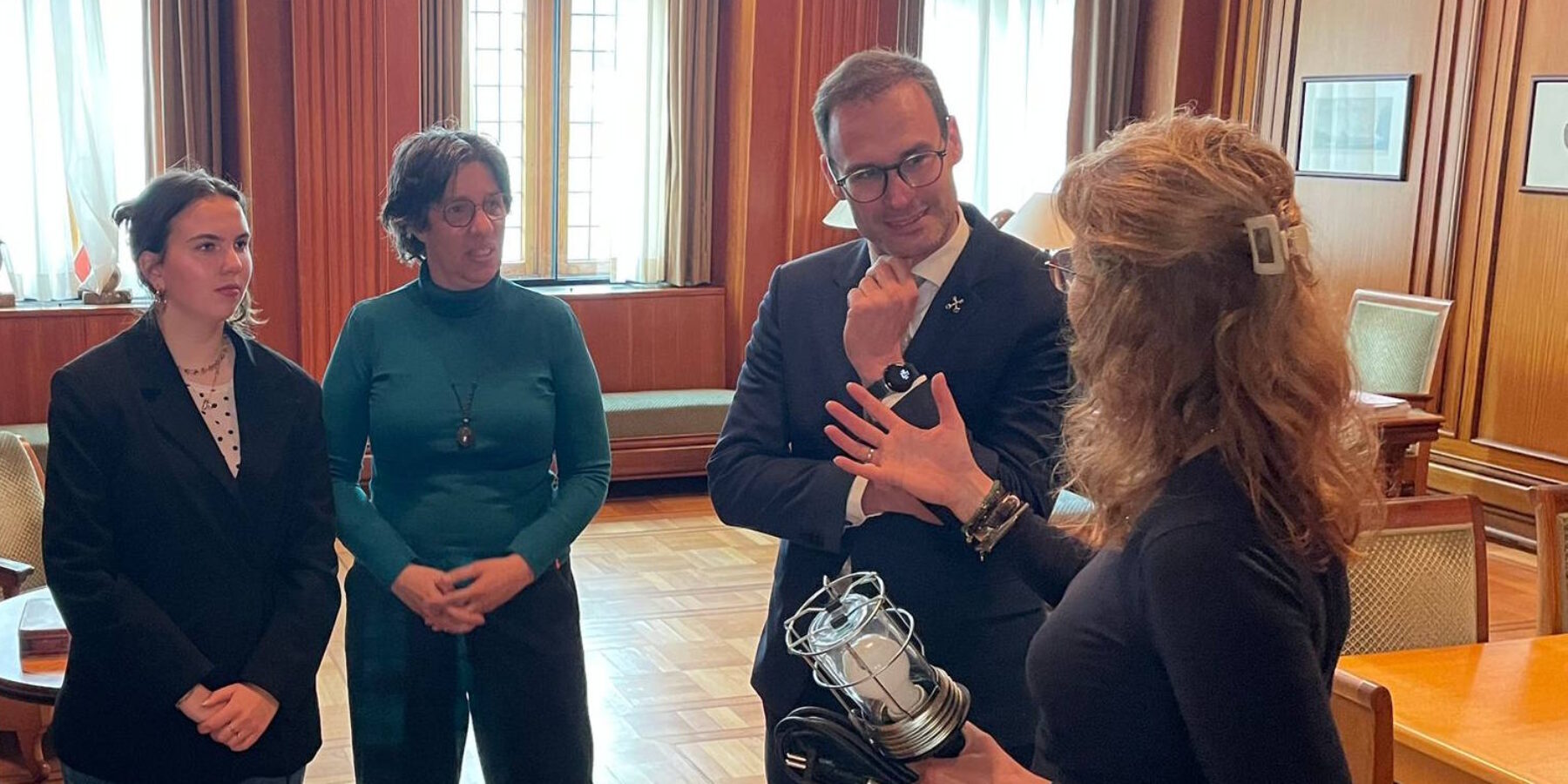 Burgemeester Heijkoop kreeg woensdag uit handen van de studentes Madelief ter Meer en Aloe Otten niet alleen de stapel handtekeningen aangeboden, maar daarbij ook een looplamp. Zo’n bouwlamp wordt gebruikt bij werkzaamheden om tijdelijk verlichting te hebben en dat is wel het minste waar de initiatiefnemers om vragen. De burgemeester beloofde er nog eens goed naar te kijken, maar waarschuwt wel voor schijnveiligheid. Ook met verlichting kunnen er immers nare dingen voorvallen.