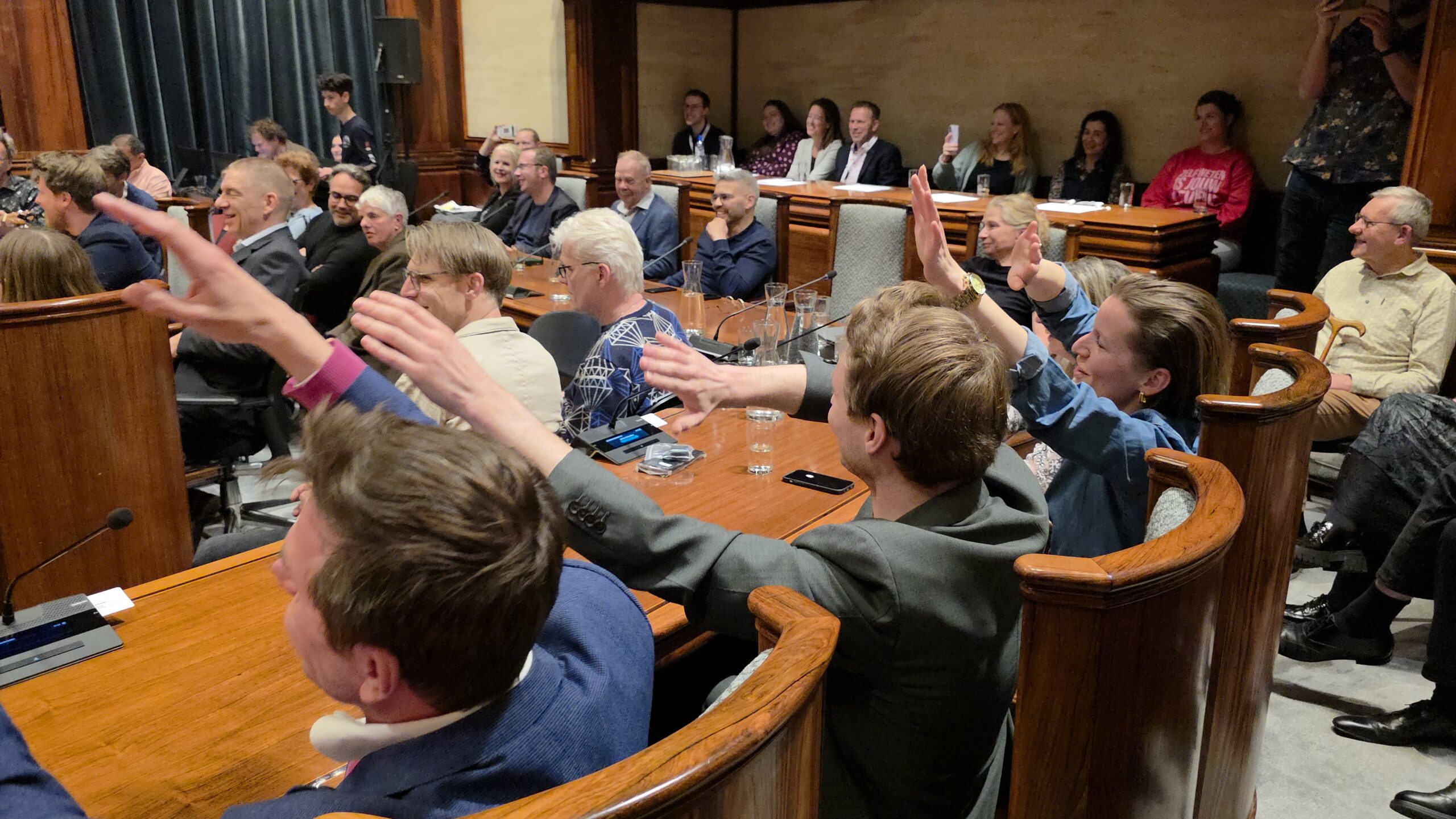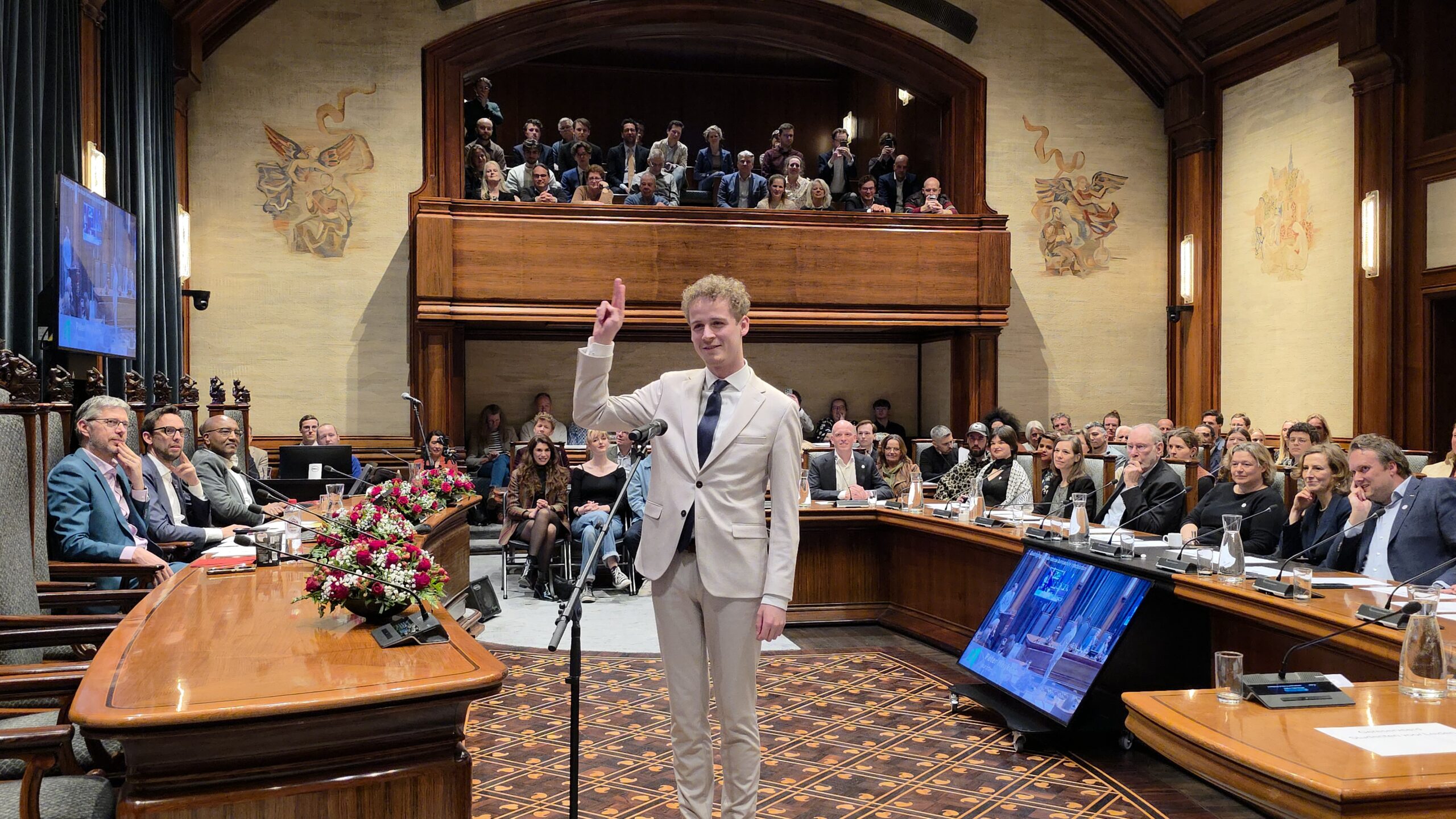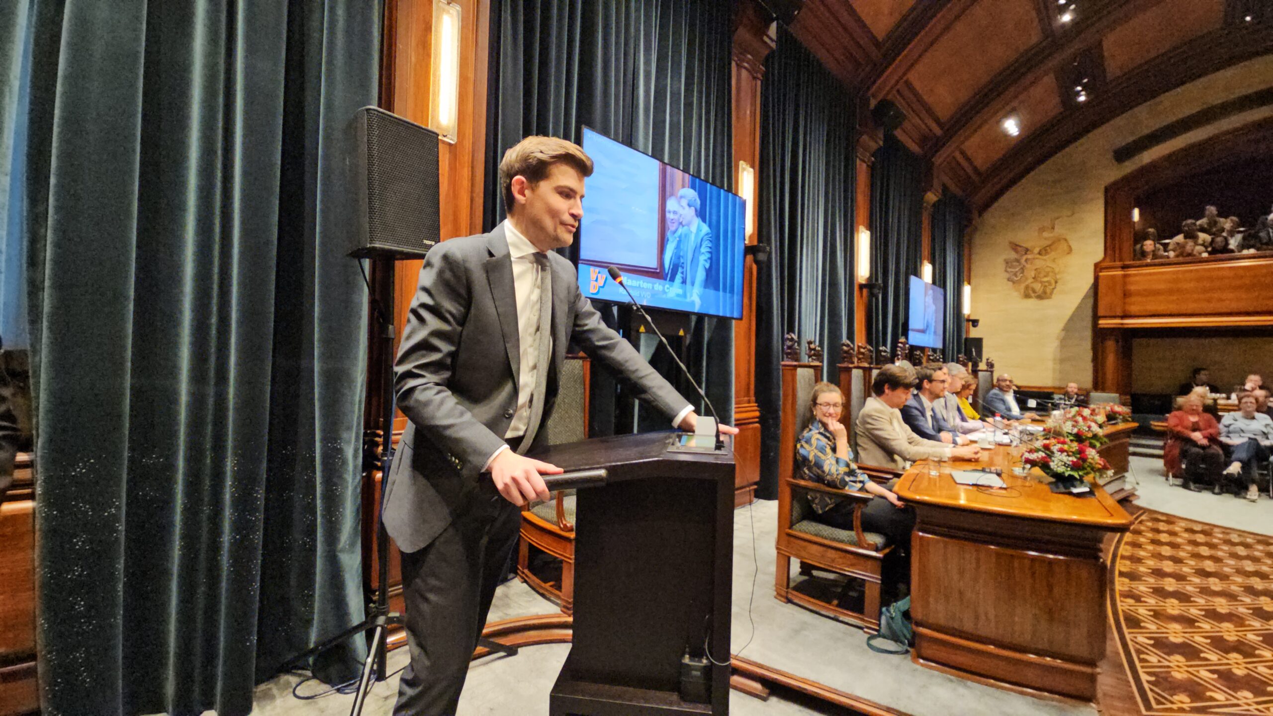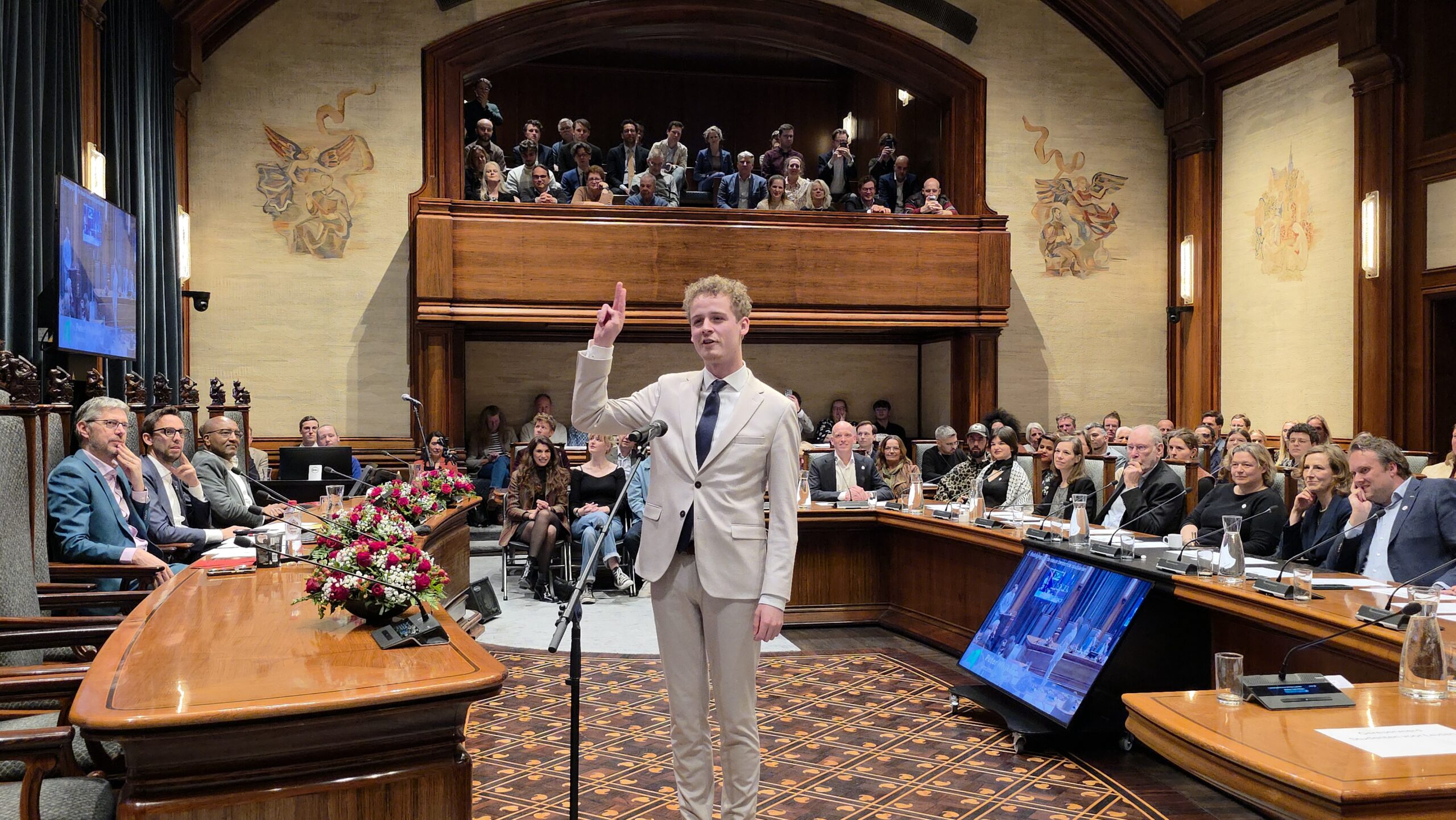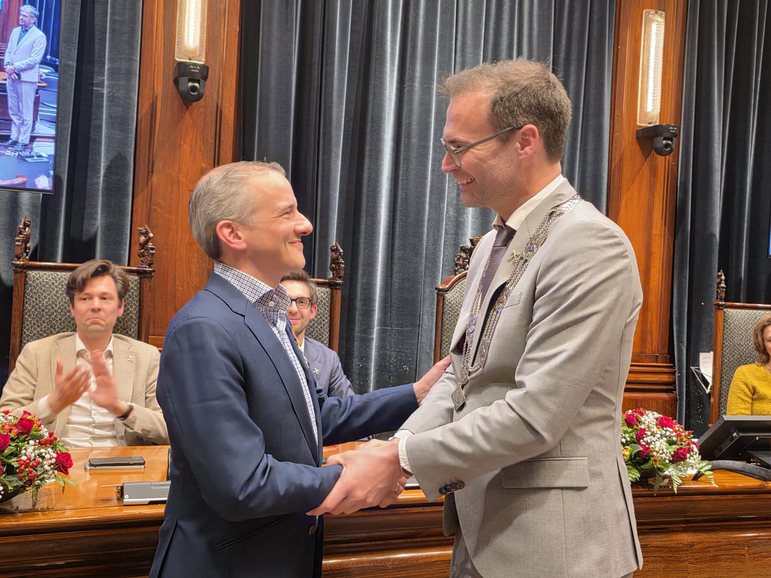 De nieuwe raad telt twee nieuwe fracties. Volt Leiden heeft op 18 maart een zetel gehaald en Forum voor Democratie haalde twee zetels. Die laatste partij roept nogal wat weerstand op en dat bleek ook wel tijdens de beëdiging. Waar 37 nieuwe raadsleden konden rekenen op applaus, gingen er bij FVD’ers Seppe Bakker en Chris Jetten heel wat minder handen op elkaar. Ook bij het handen schudden na afloop vingen de twee regelmatig bot. “Ik vind dat politiek onvolwassen”, zei Bakker daar na afloop over.