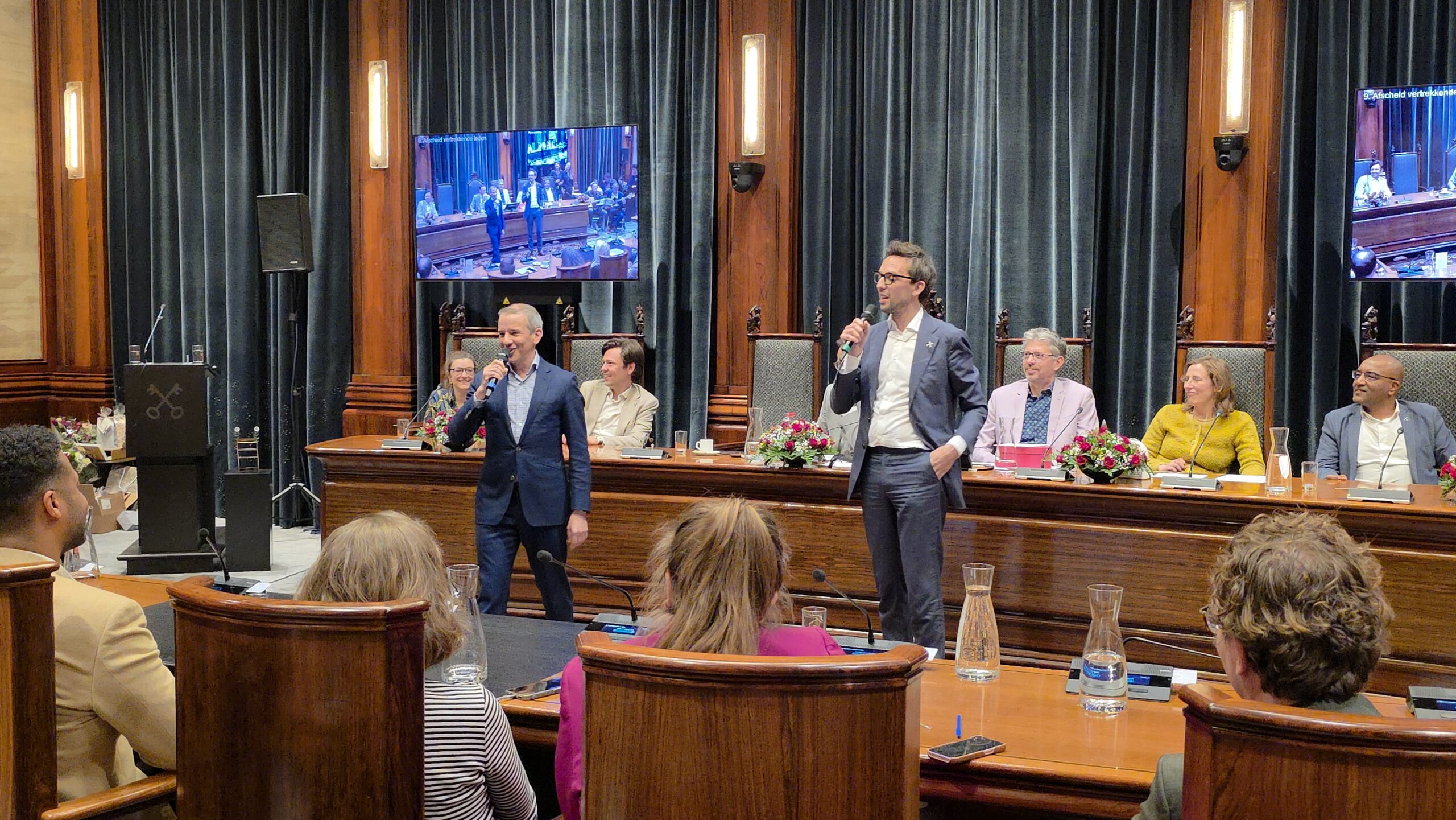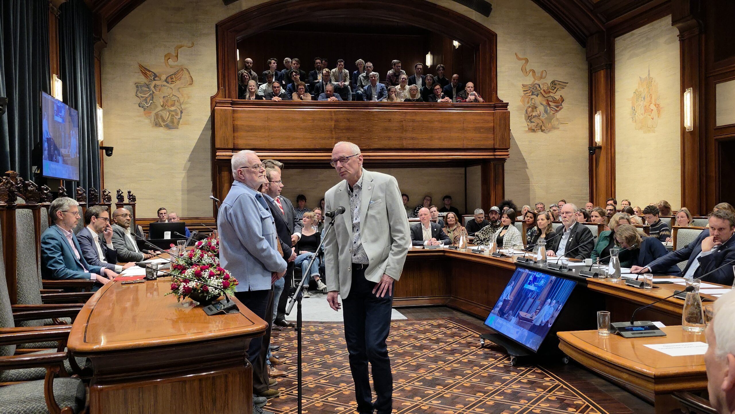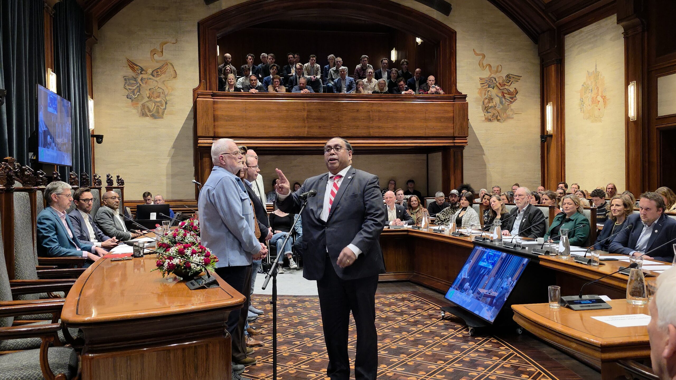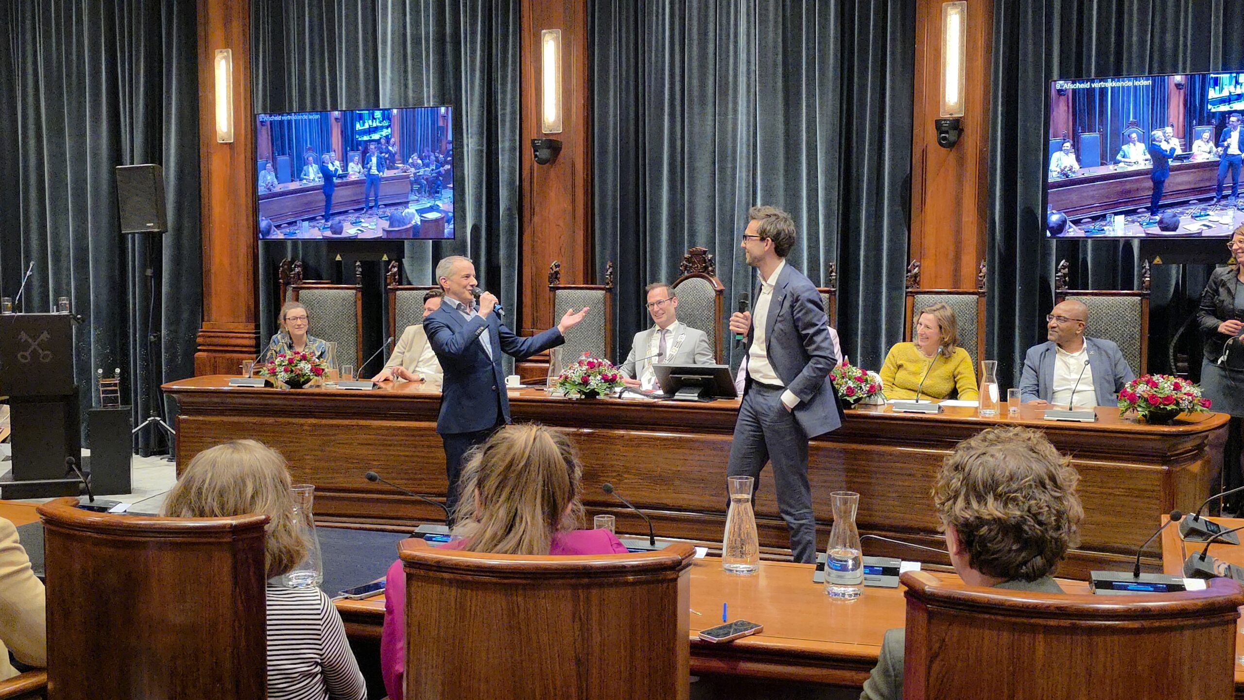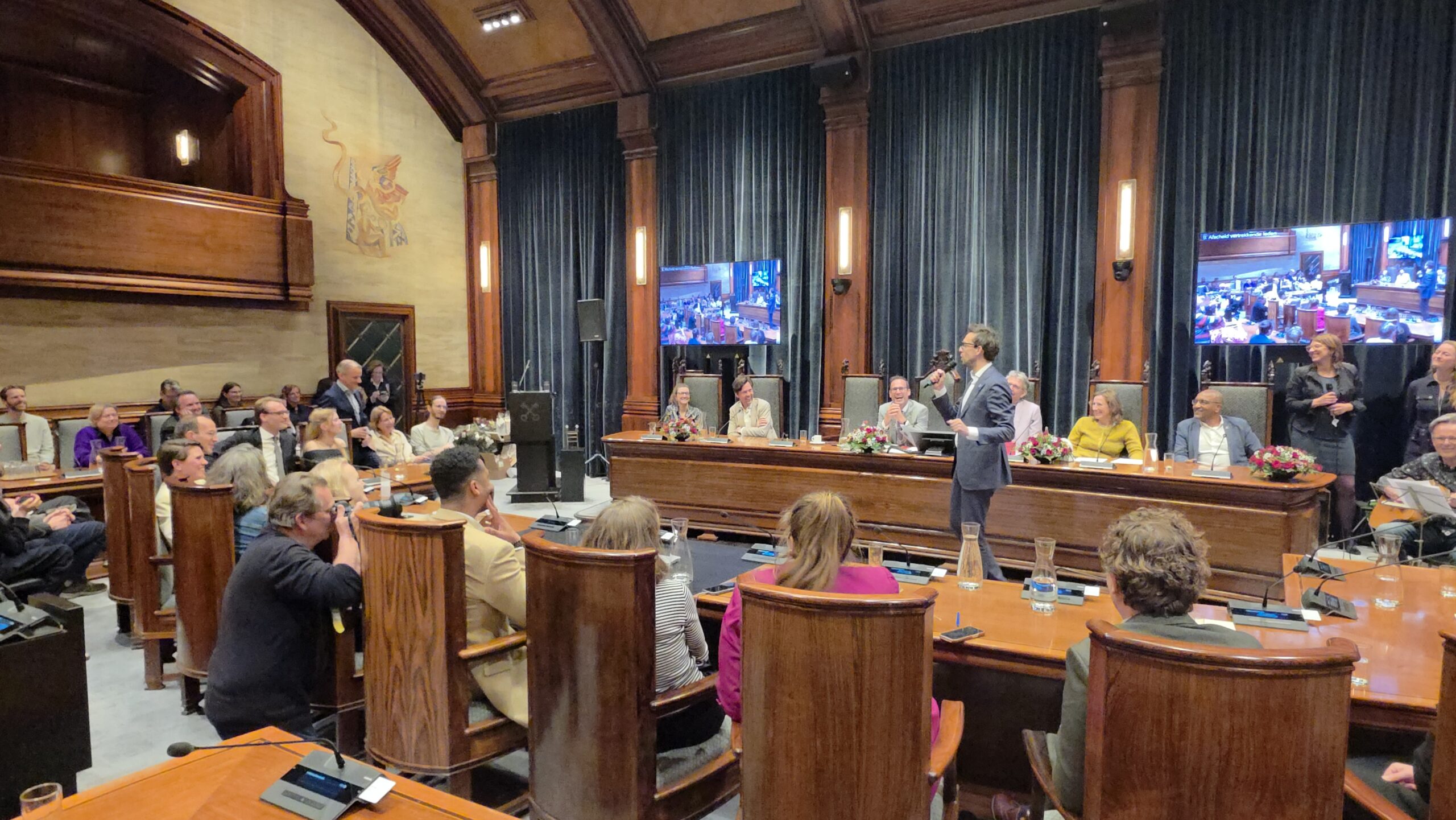 Twee avonden stond de raadzaal van het stadhuis in Leiden in het teken van afscheid nemen en verwelkomen. Woensdagavond namen maar liefst 27 raadsleden afscheid en donderdag werden alle 39 leden van de nieuwe gemeenteraad beëdigd.