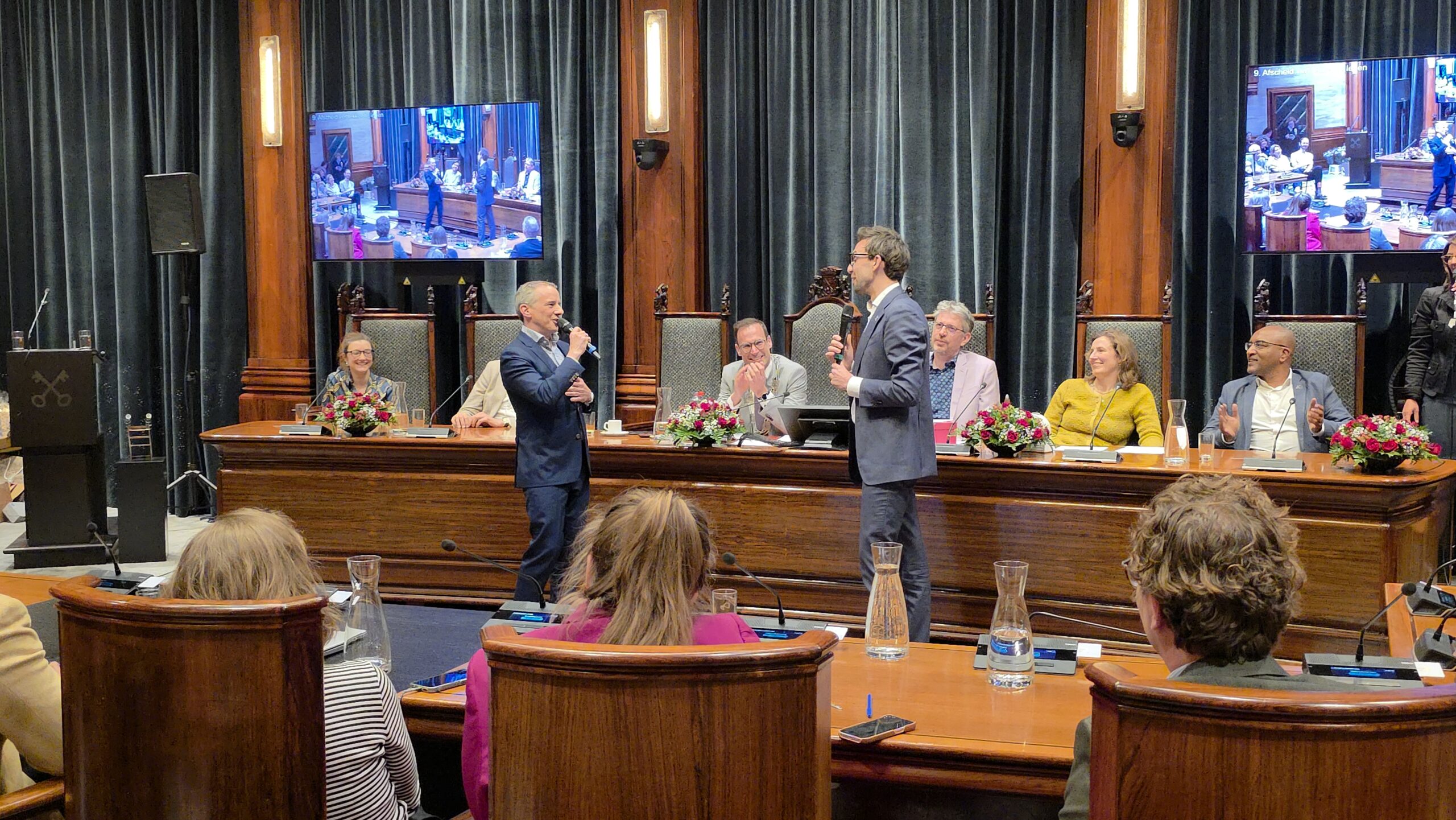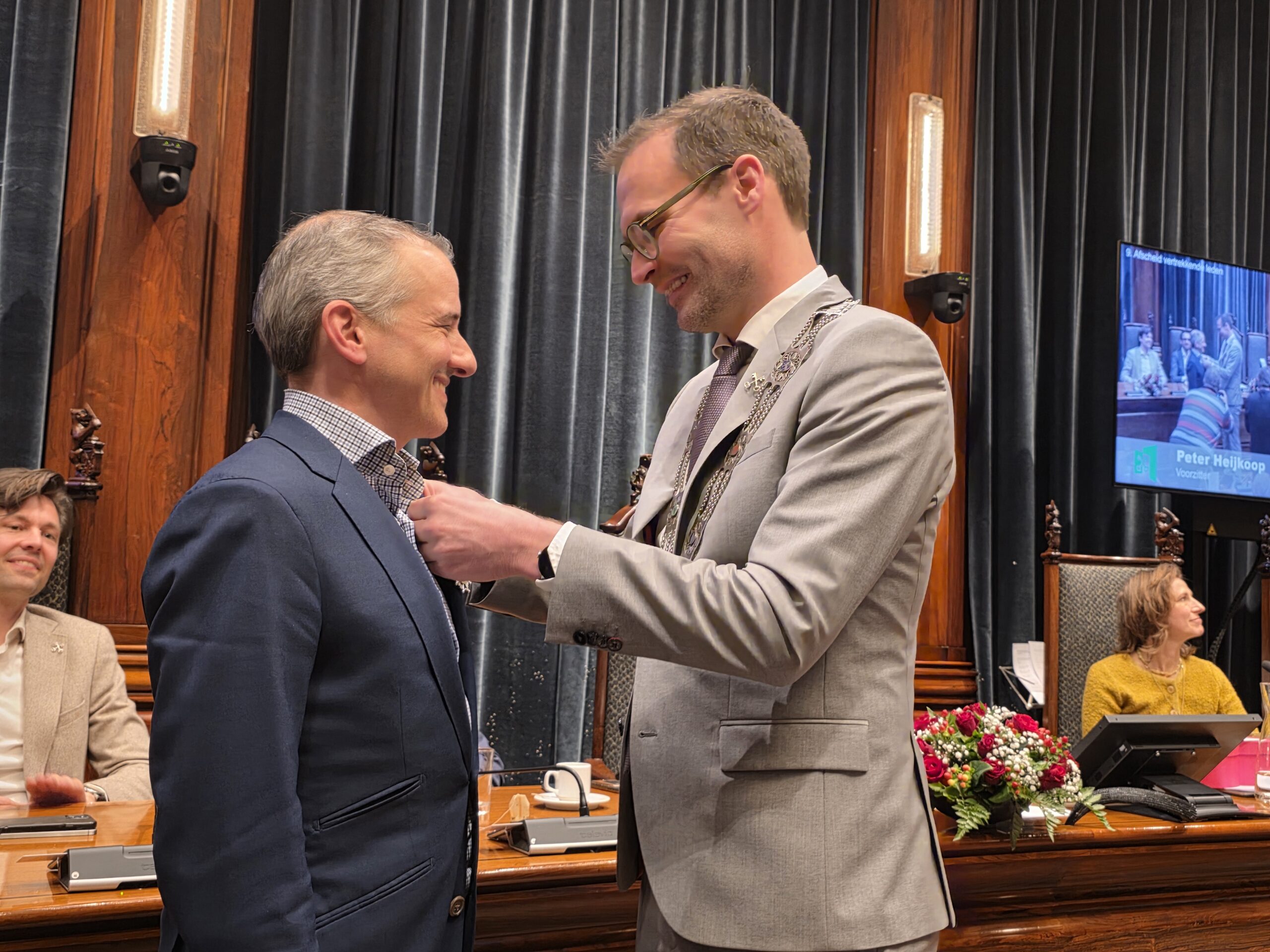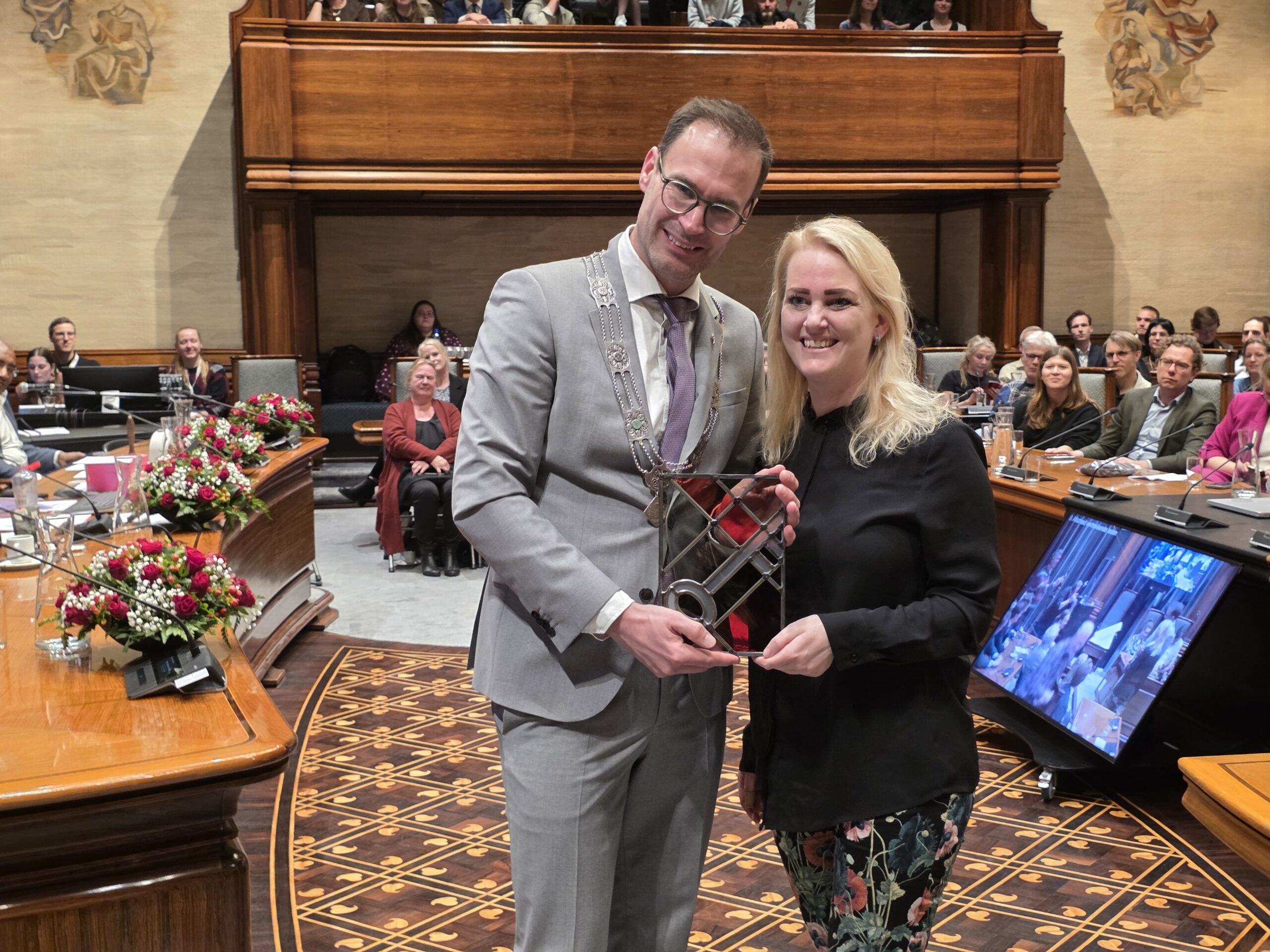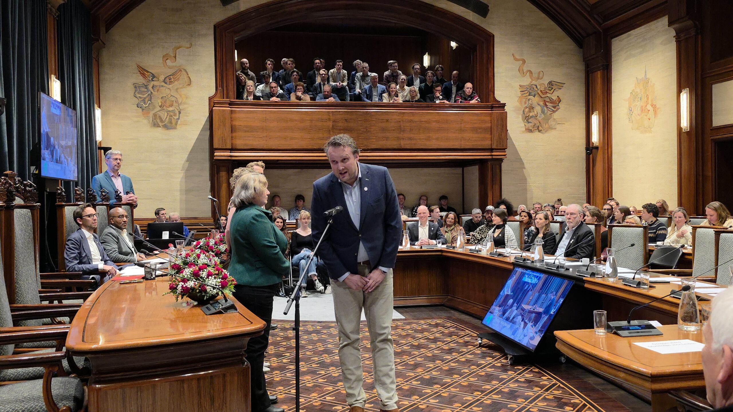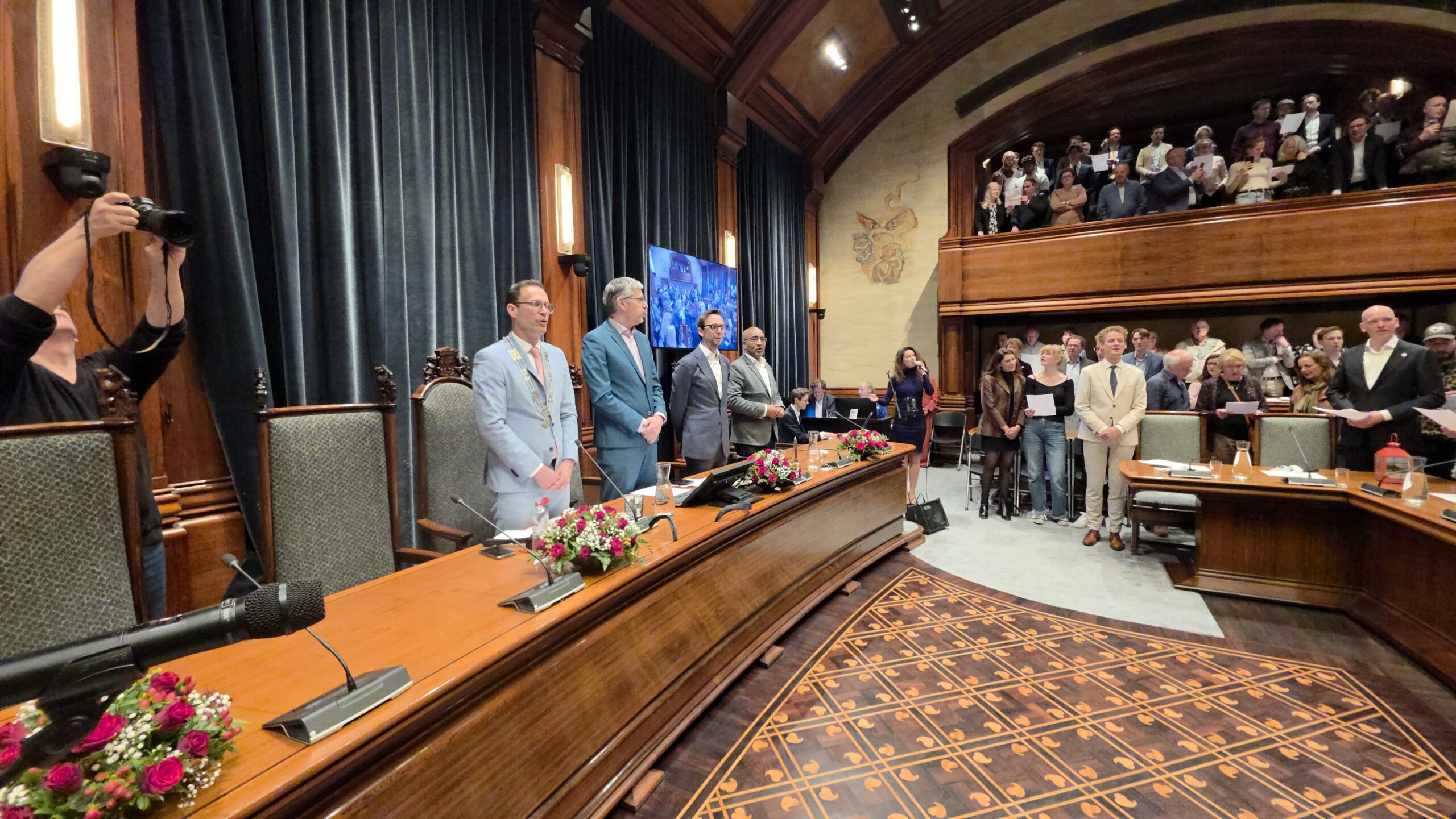 Twee avonden stond de raadzaal van het stadhuis in Leiden in het teken van afscheid nemen en verwelkomen. Woensdagavond namen maar liefst 27 raadsleden afscheid en donderdag werden alle 39 leden van de nieuwe gemeenteraad beëdigd.
