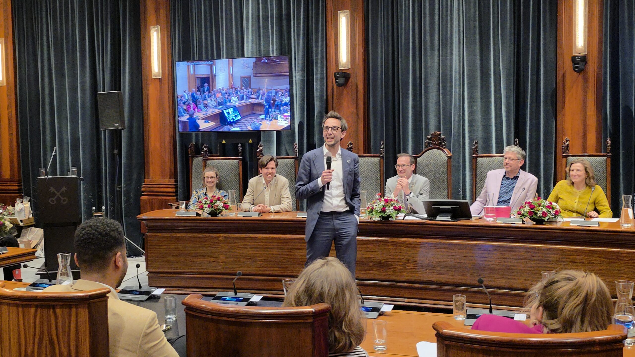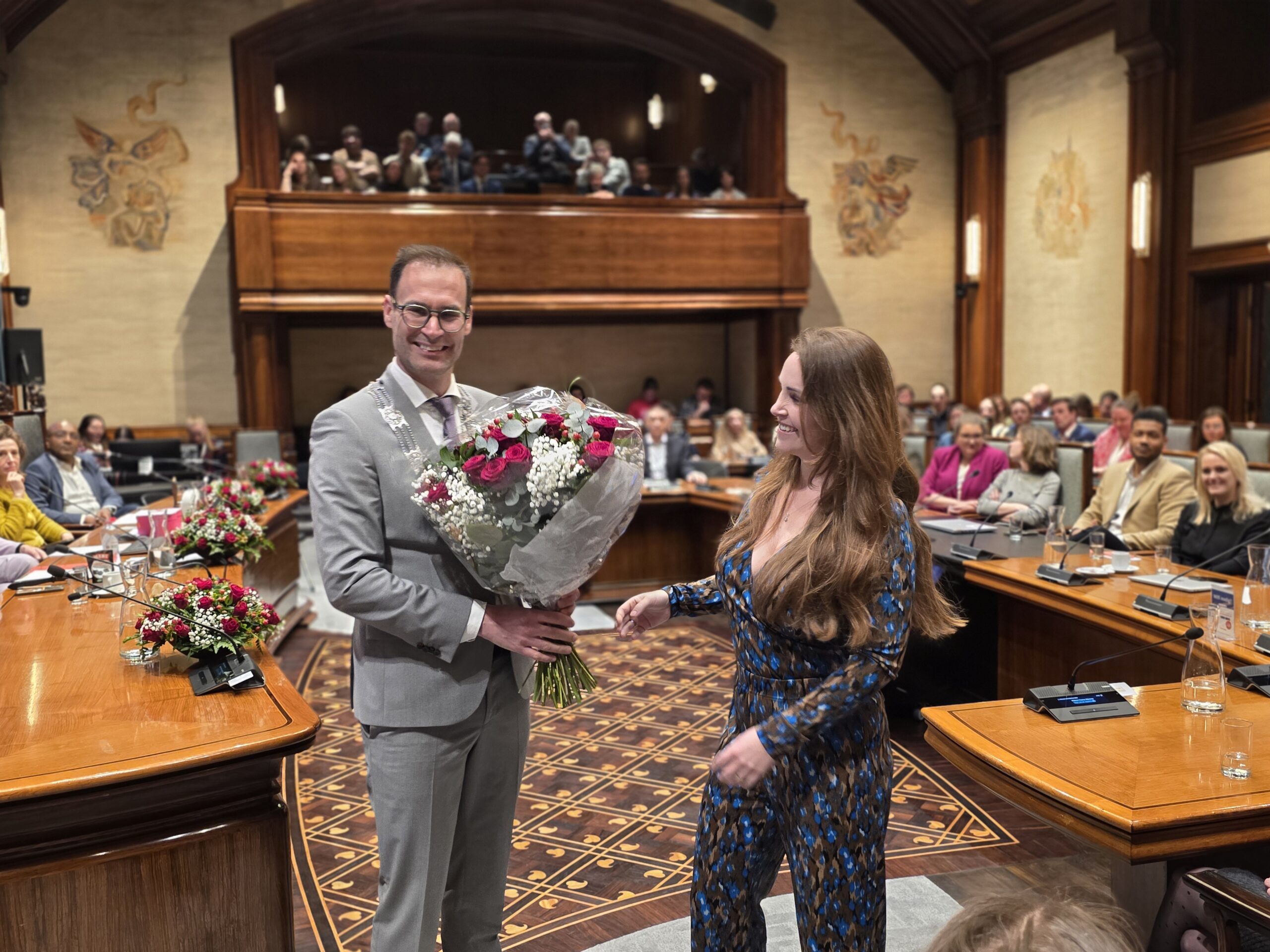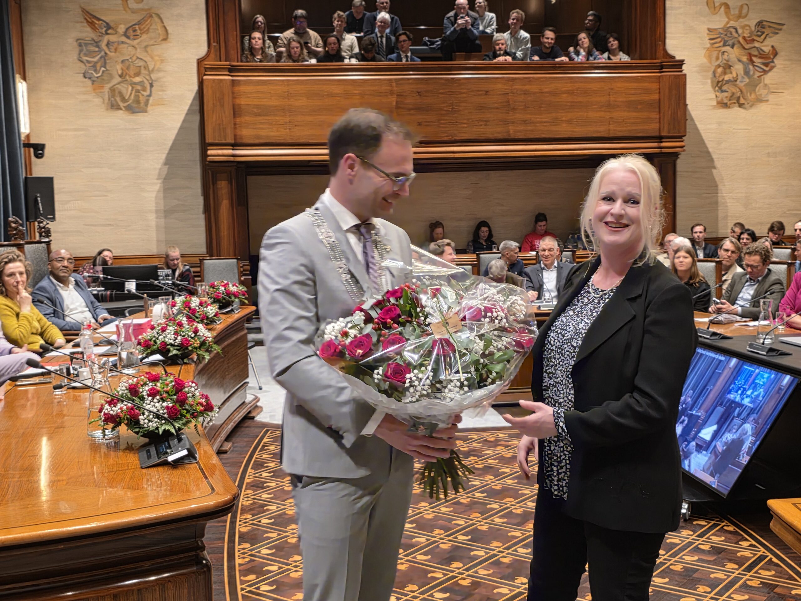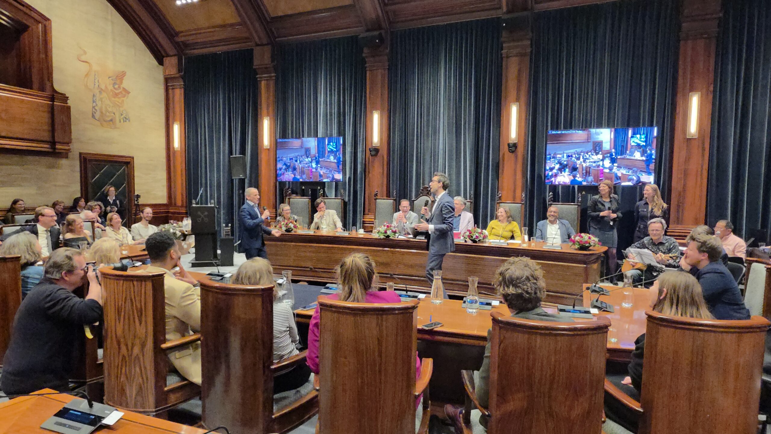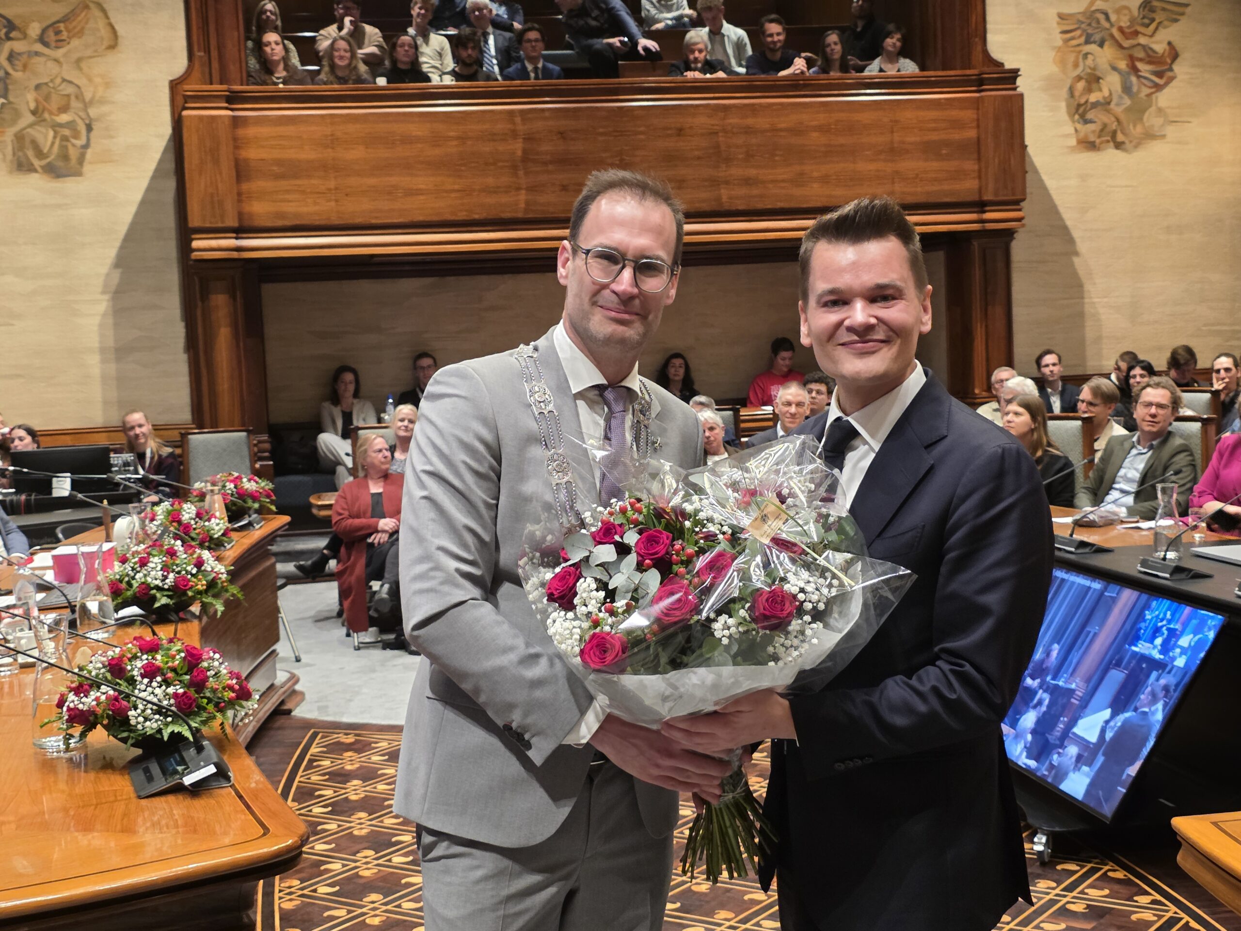 Twee avonden stond de raadzaal van het stadhuis in Leiden in het teken van afscheid nemen en verwelkomen. Woensdagavond namen maar liefst 27 raadsleden afscheid en donderdag werden alle 39 leden van de nieuwe gemeenteraad beëdigd.