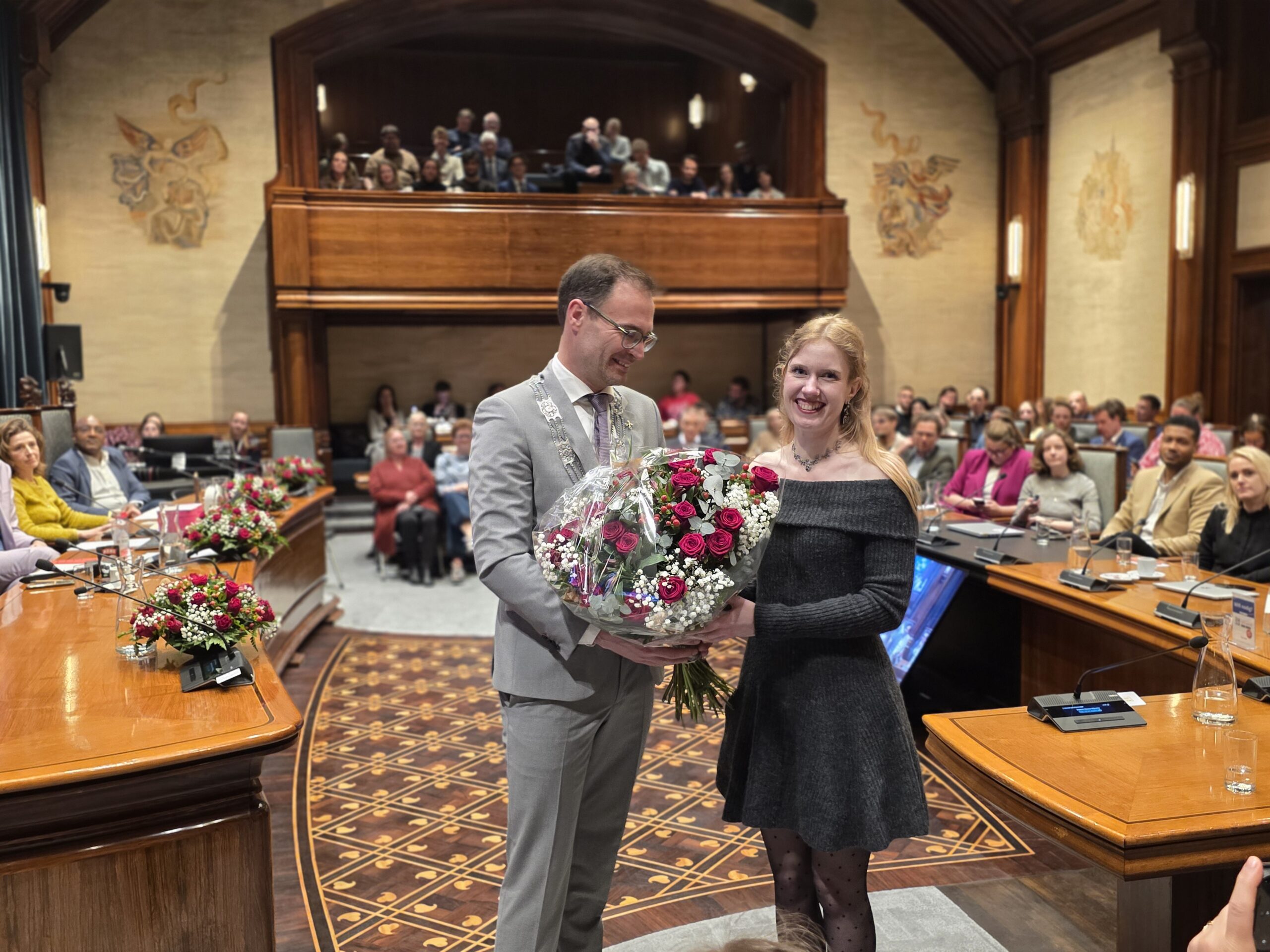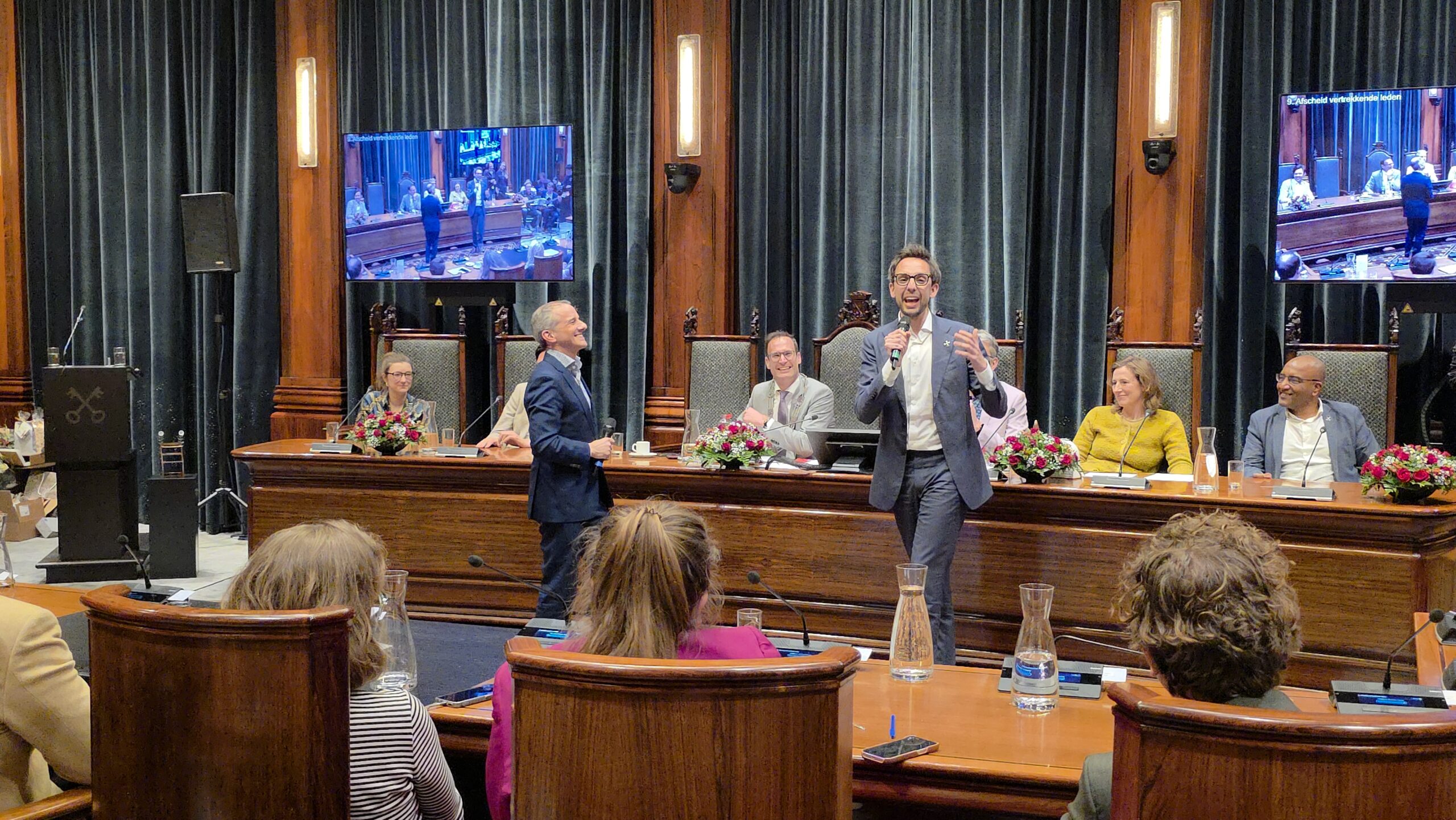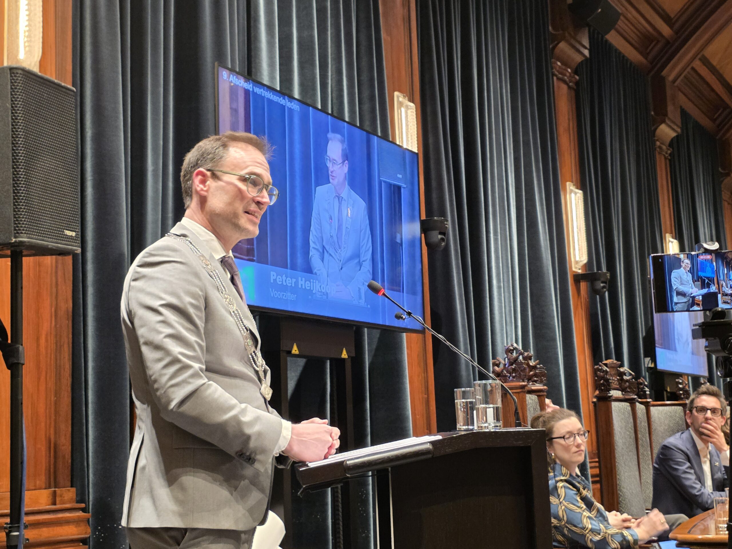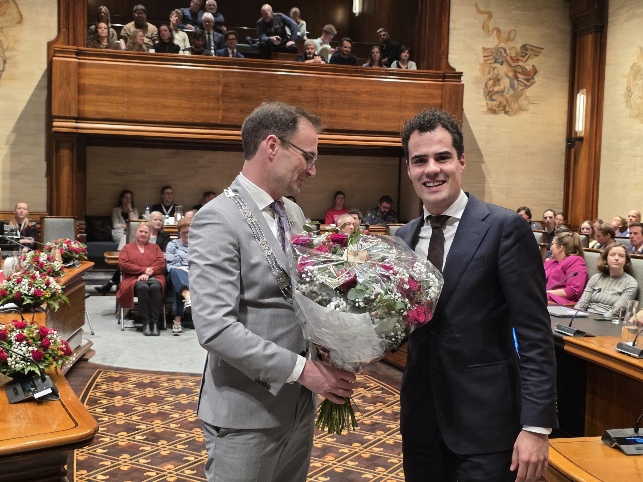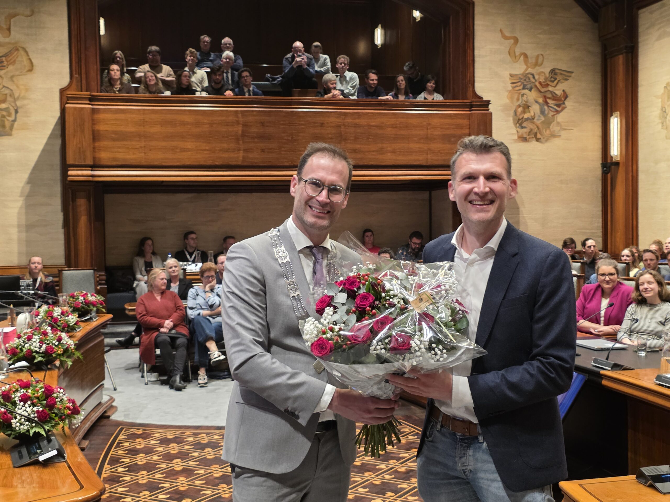 Twee avonden stond de raadzaal van het stadhuis in Leiden in het teken van afscheid nemen en verwelkomen. Woensdagavond namen maar liefst 27 raadsleden afscheid en donderdag werden alle 39 leden van de nieuwe gemeenteraad beëdigd.