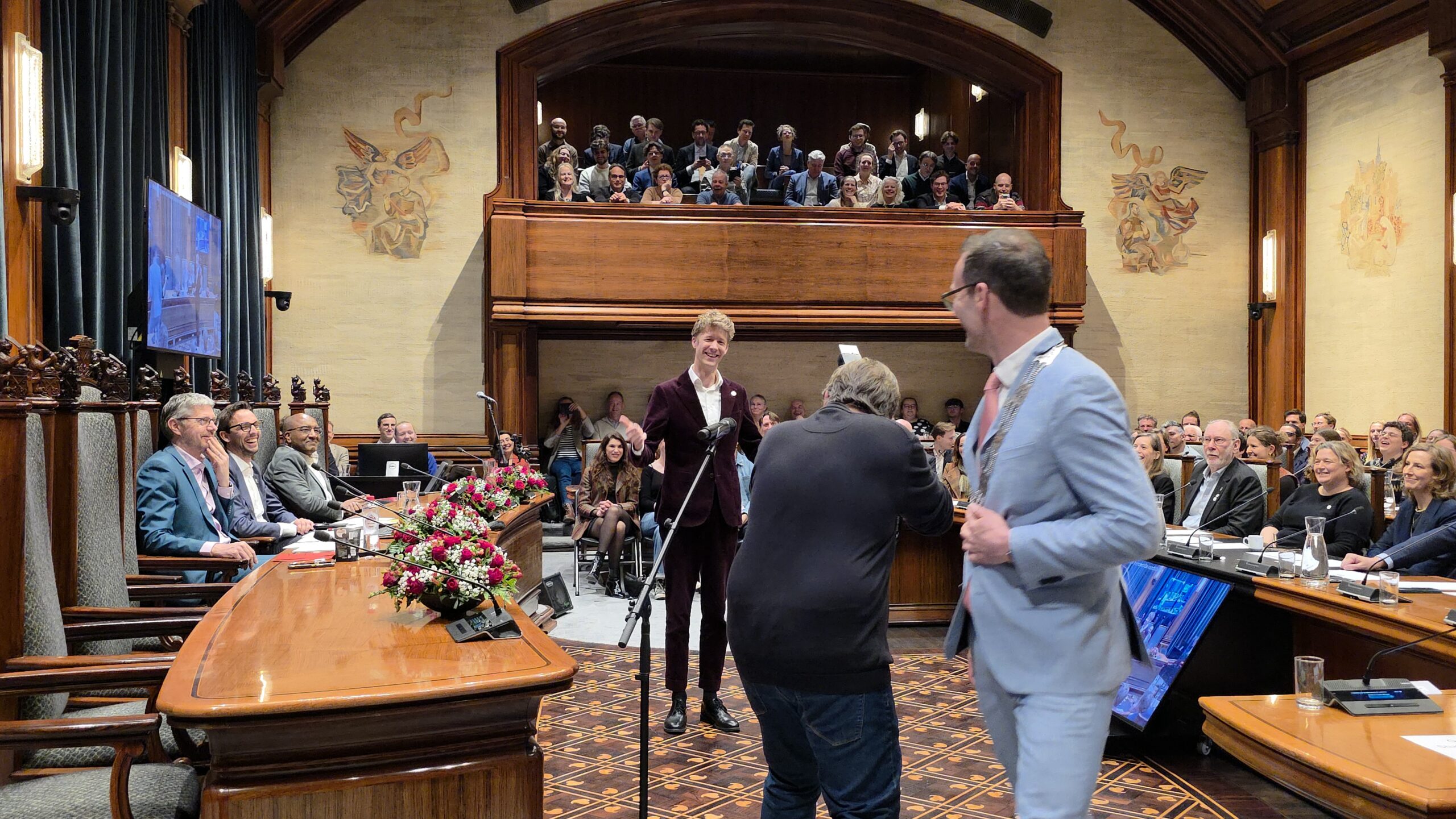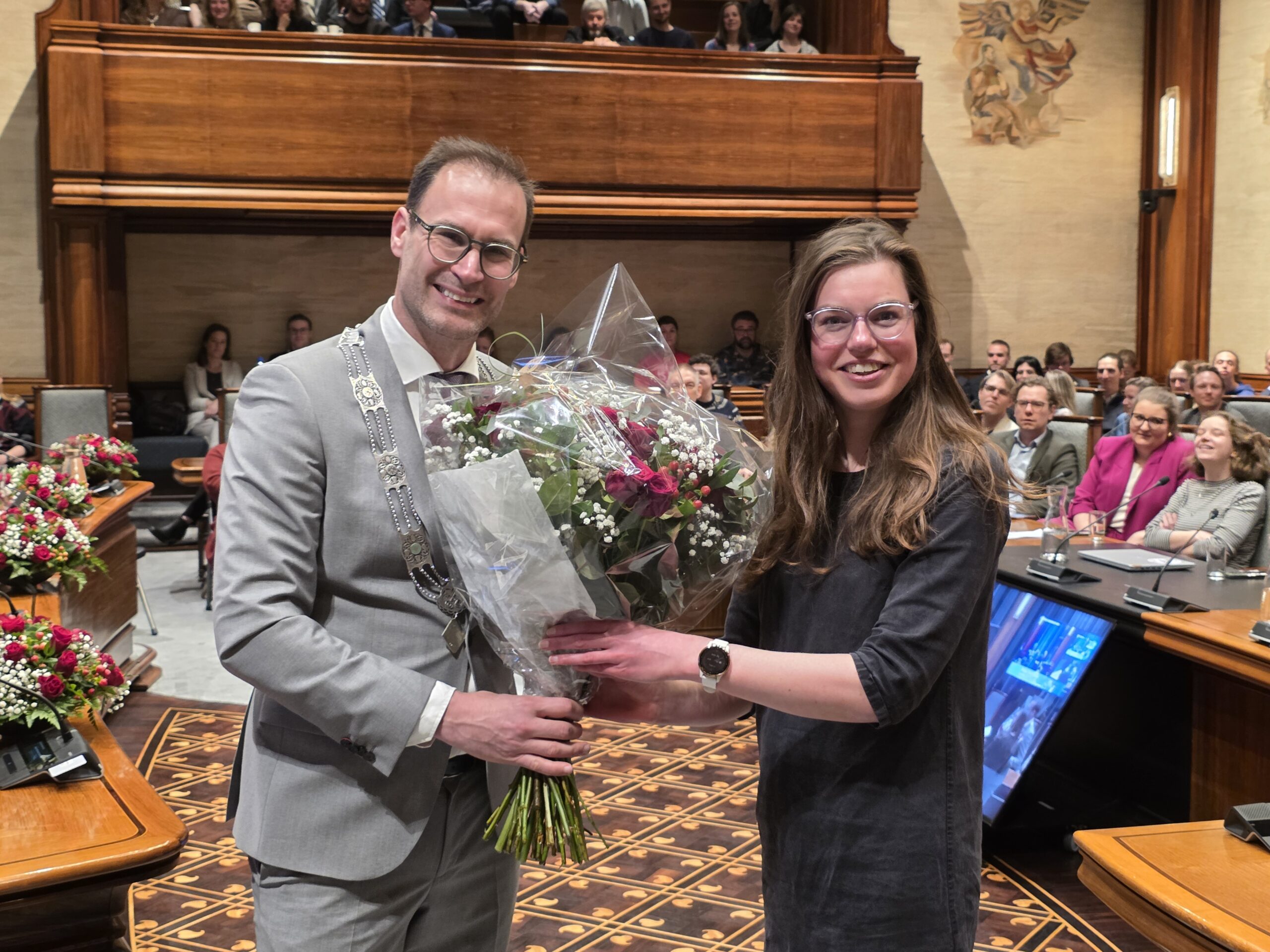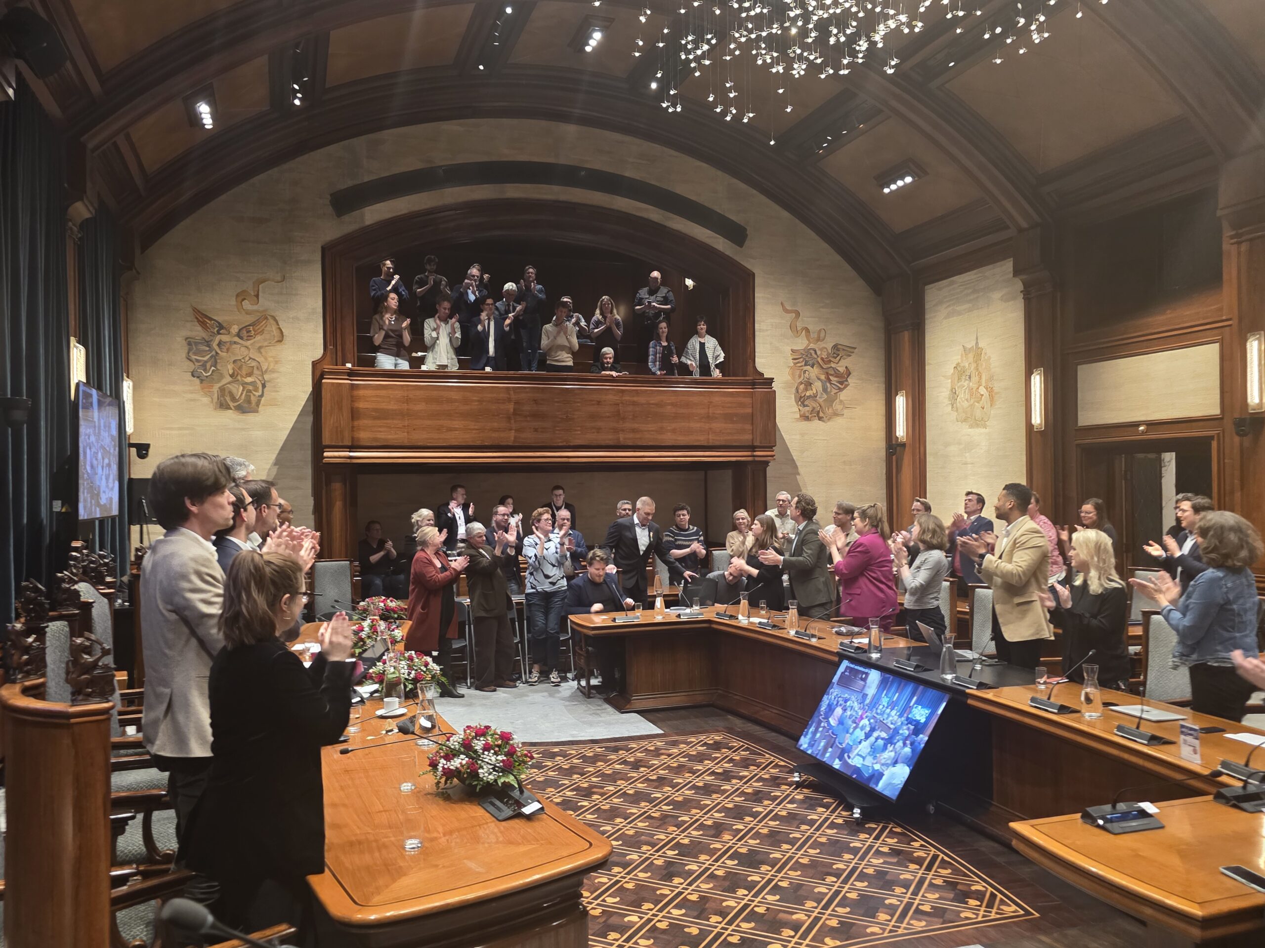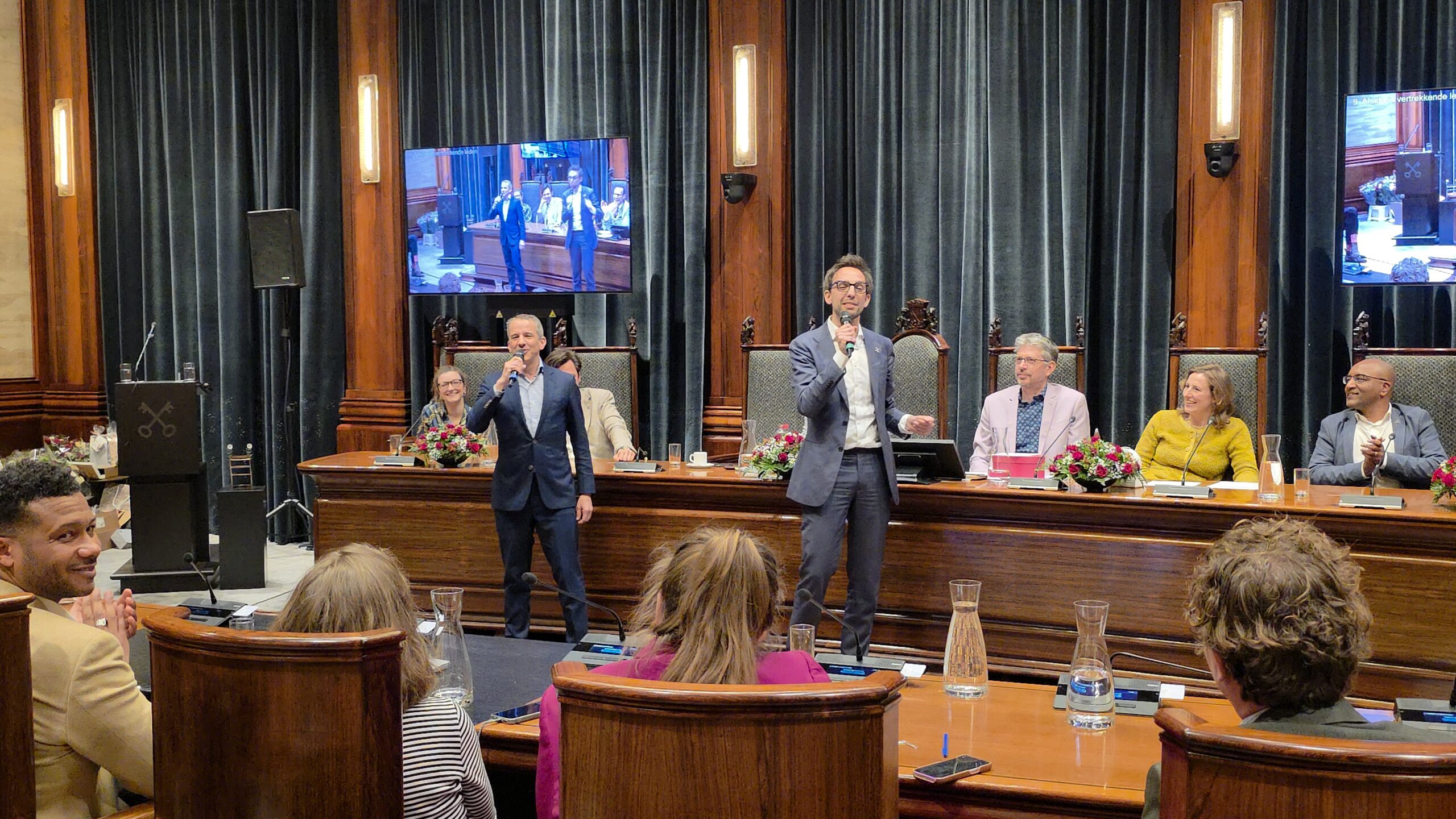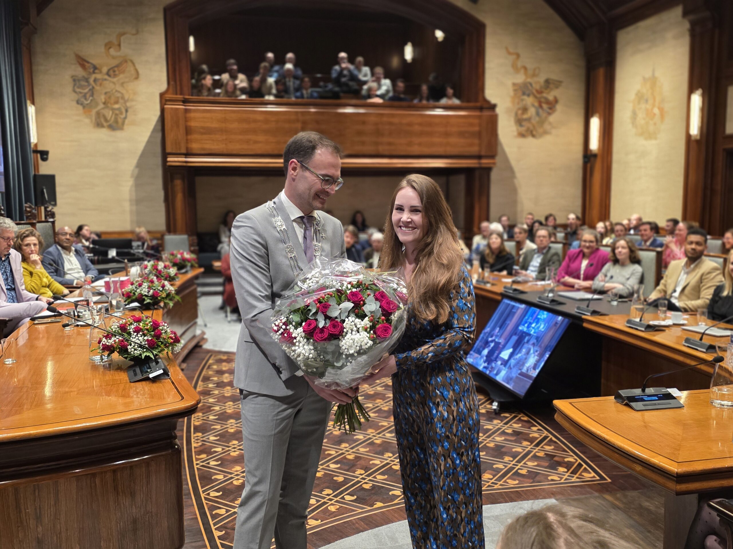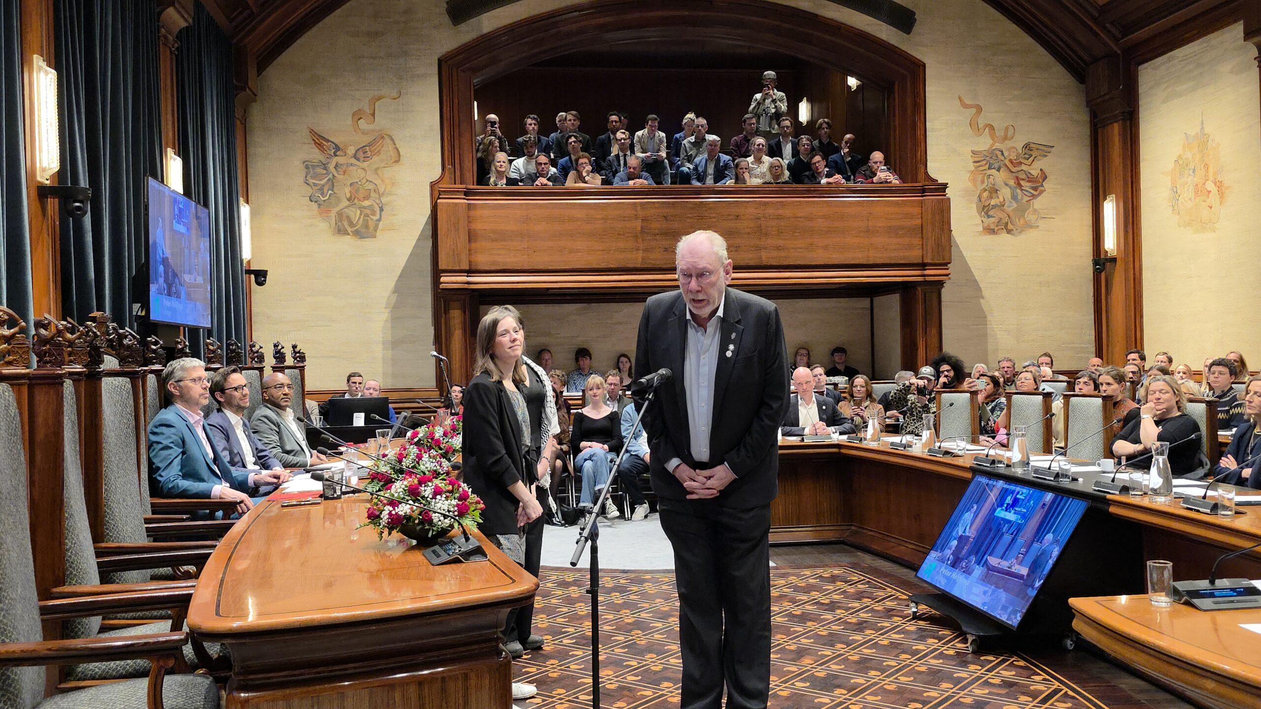 Twee avonden stond de raadzaal van het stadhuis in Leiden in het teken van afscheid nemen en verwelkomen. Woensdagavond namen maar liefst 27 raadsleden afscheid en donderdag werden alle 39 leden van de nieuwe gemeenteraad beëdigd.