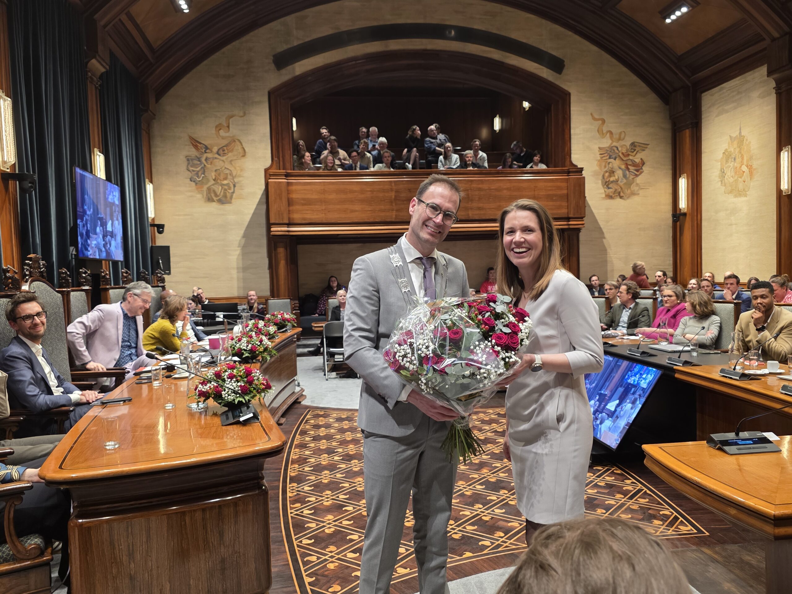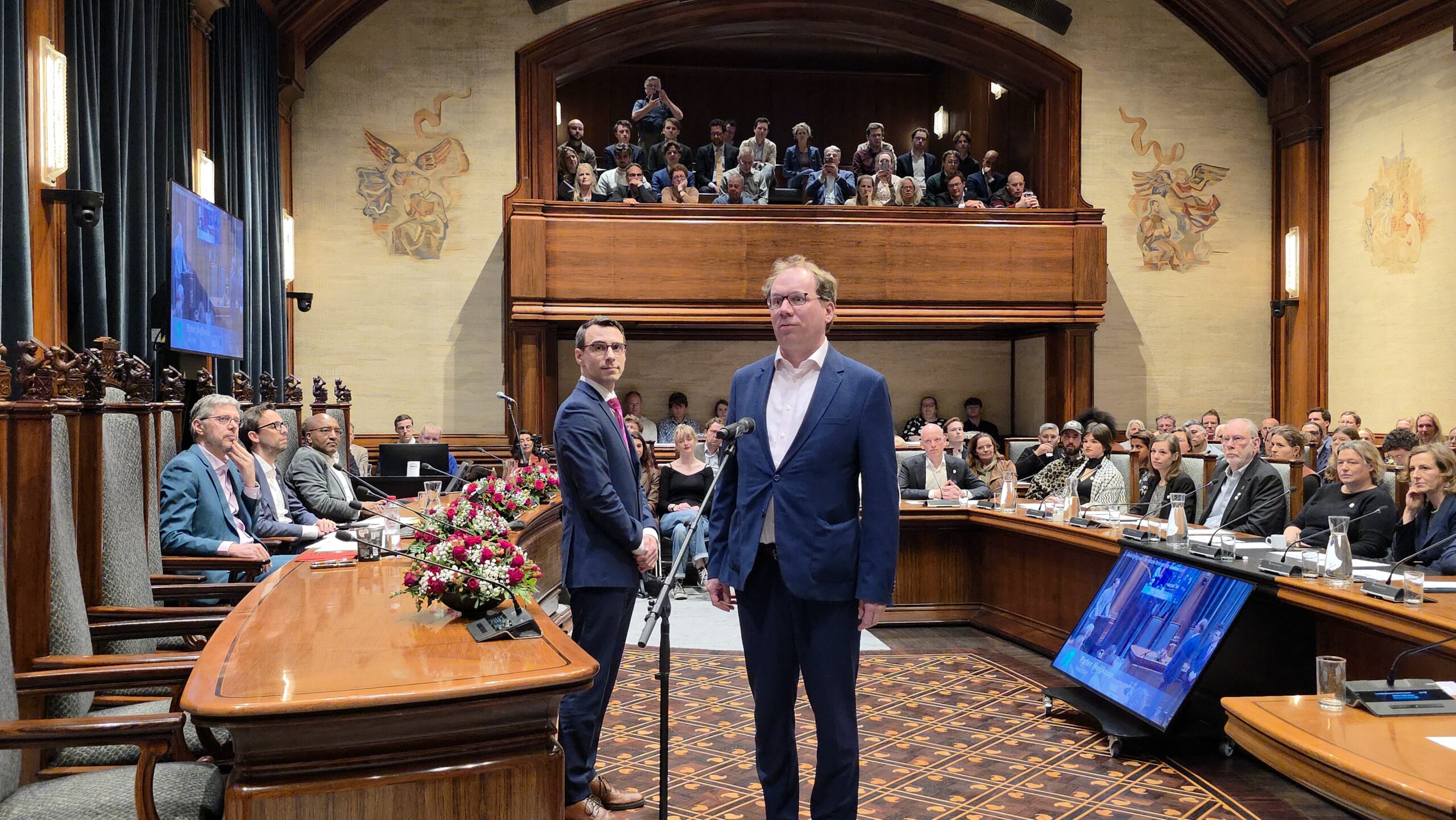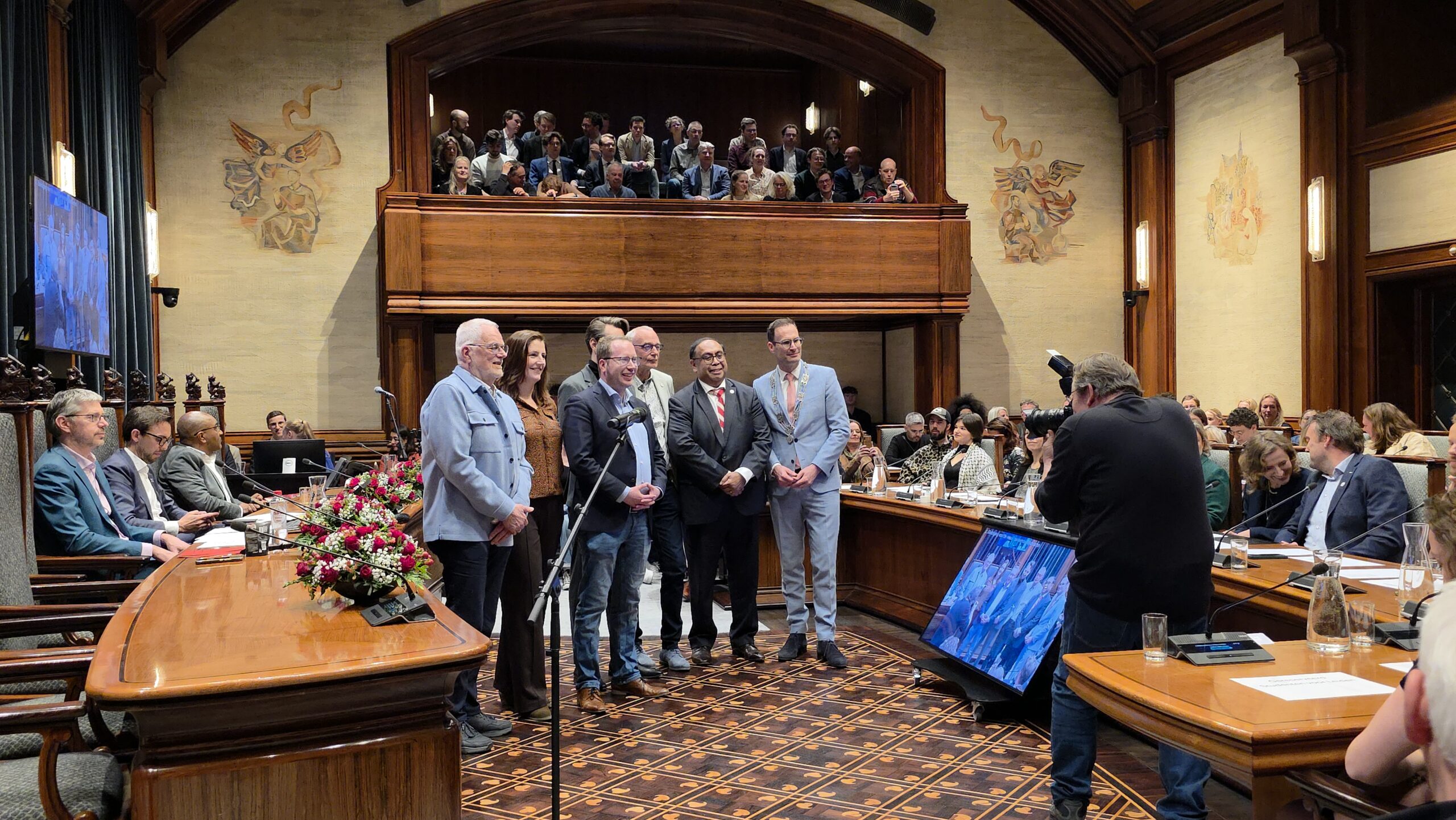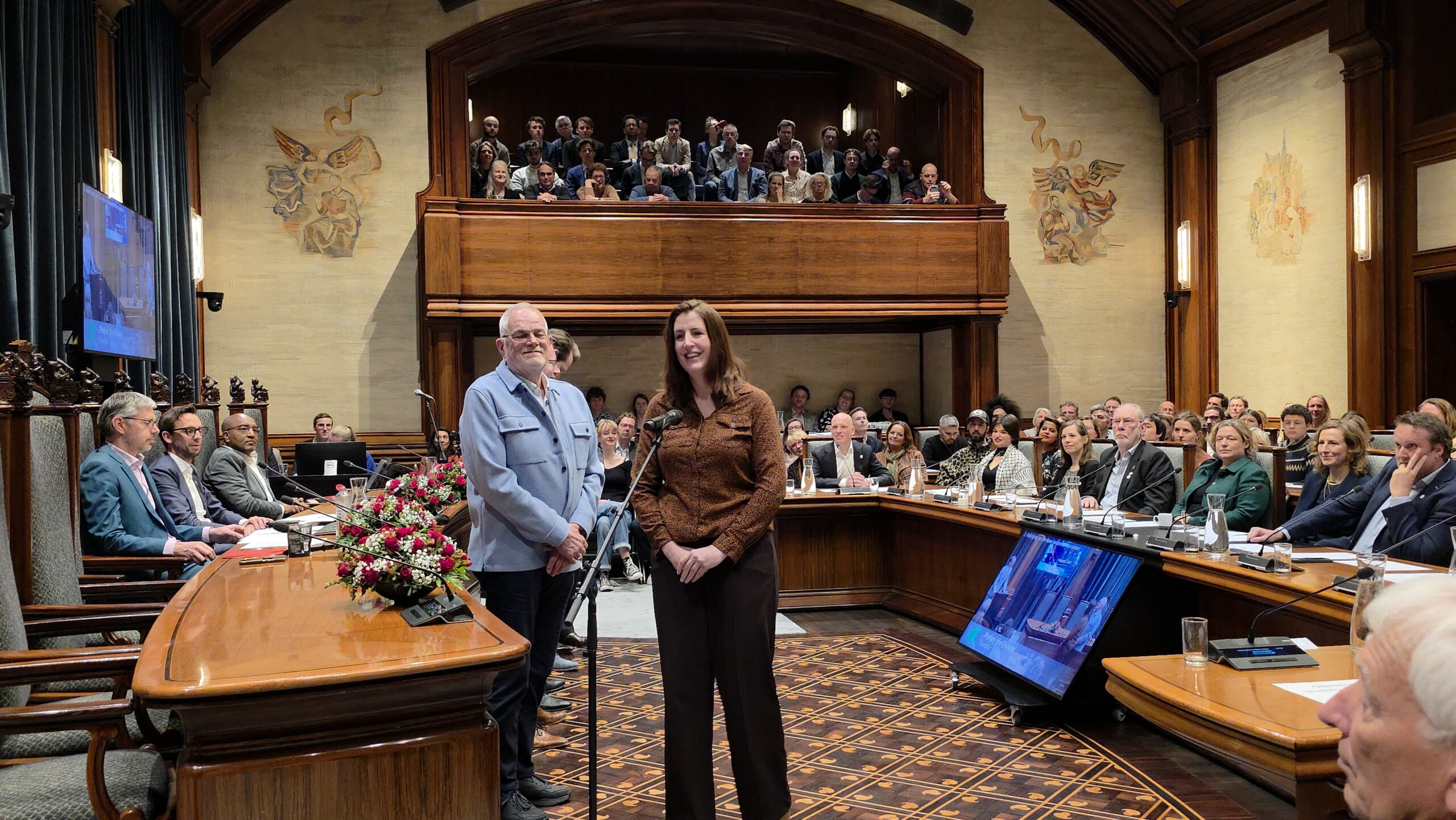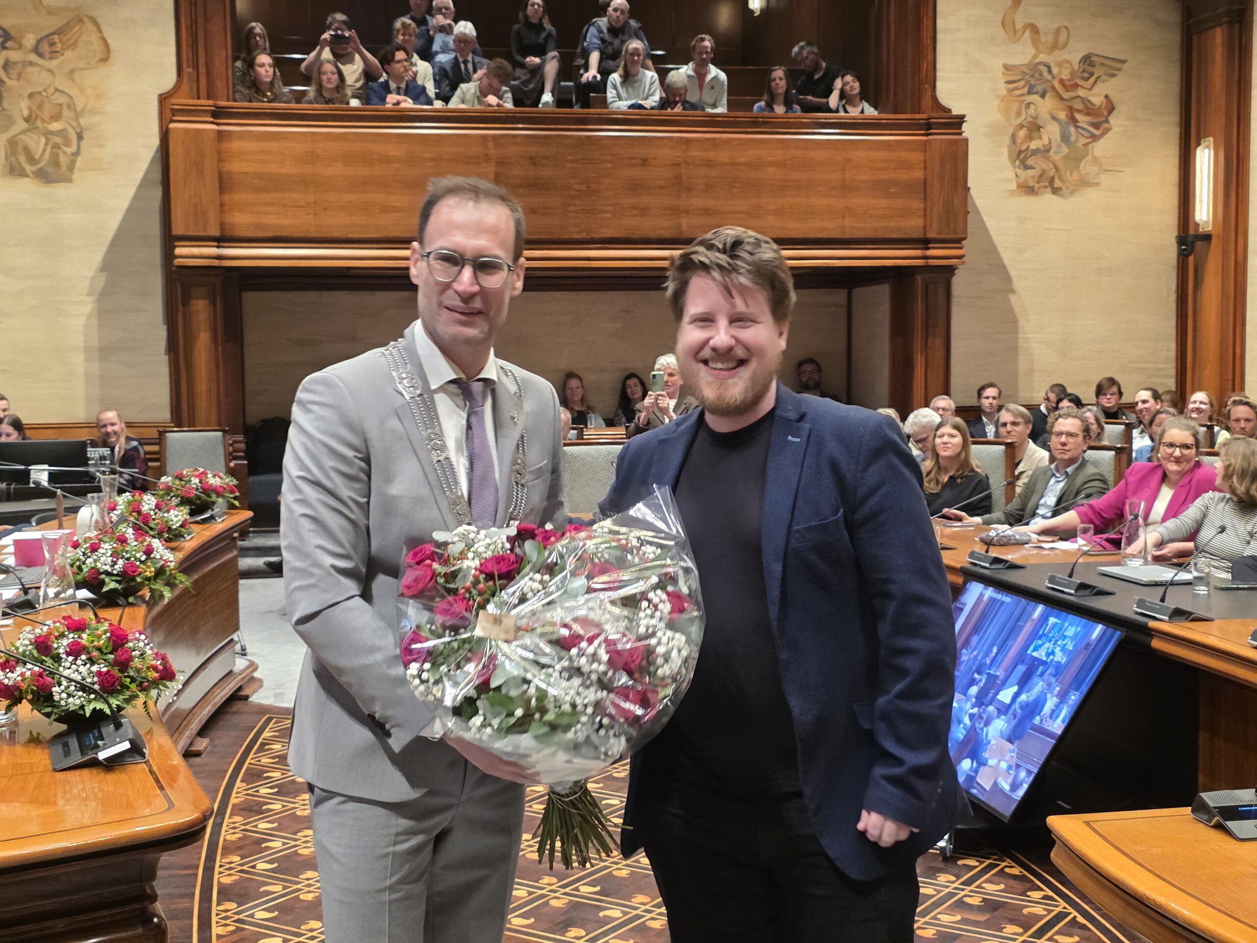 Twee avonden stond de raadzaal van het stadhuis in Leiden in het teken van afscheid nemen en verwelkomen. Woensdagavond namen maar liefst 27 raadsleden afscheid en donderdag werden alle 39 leden van de nieuwe gemeenteraad beëdigd.