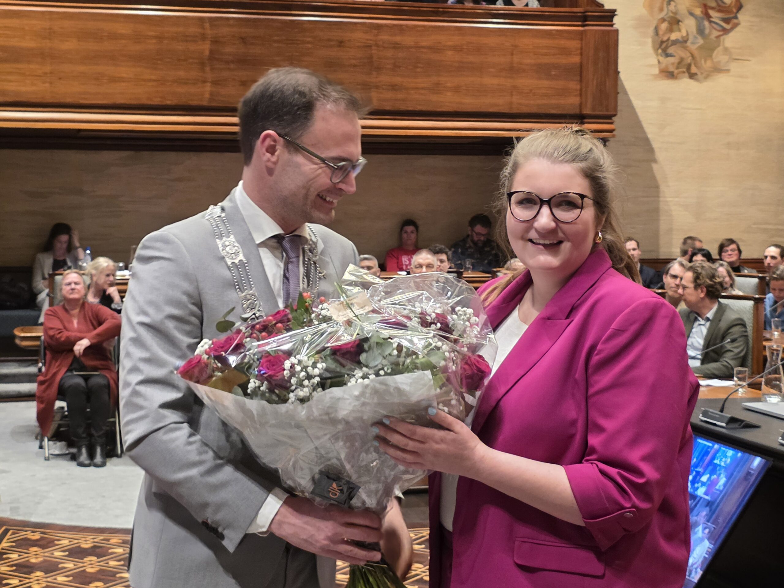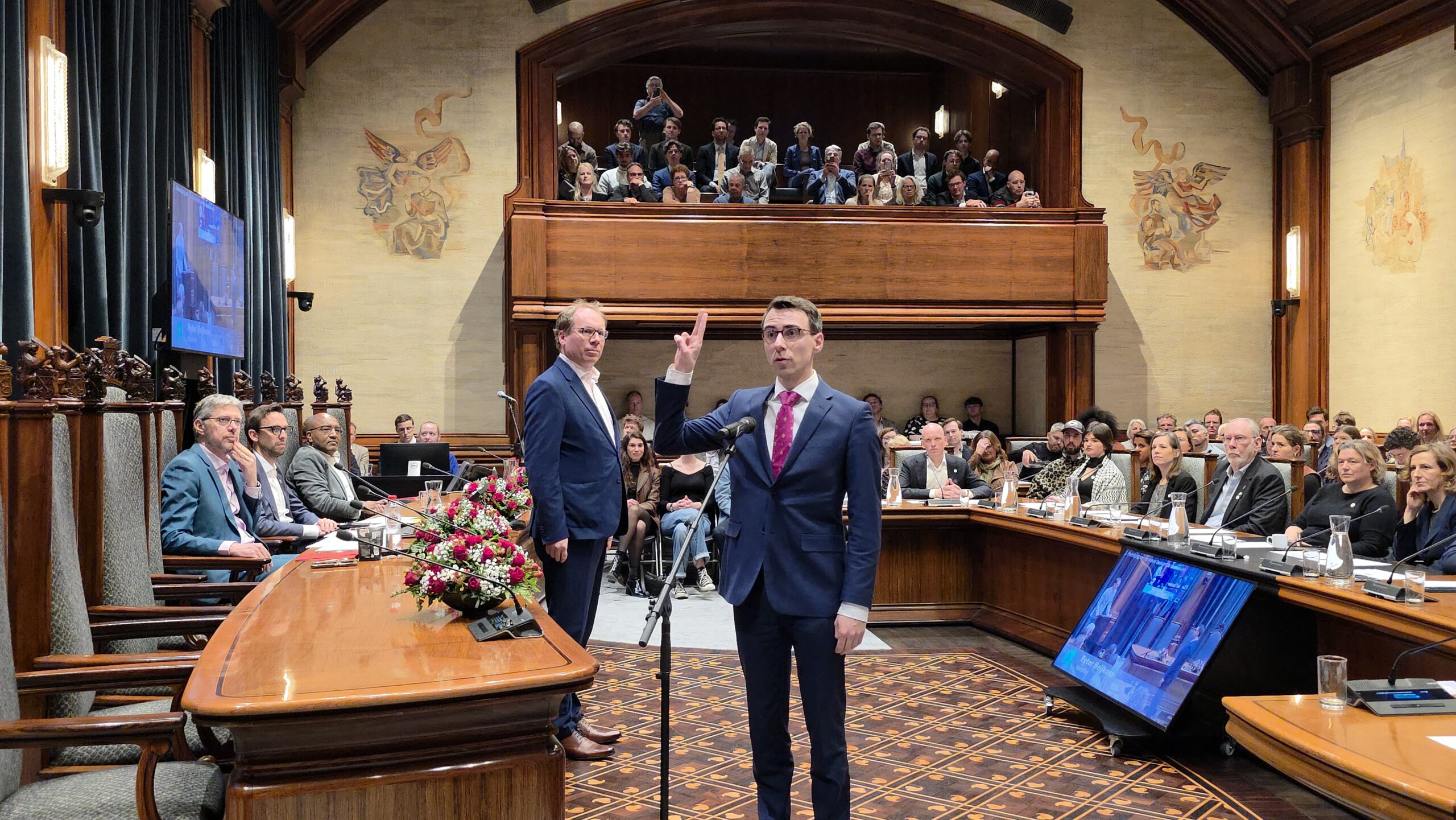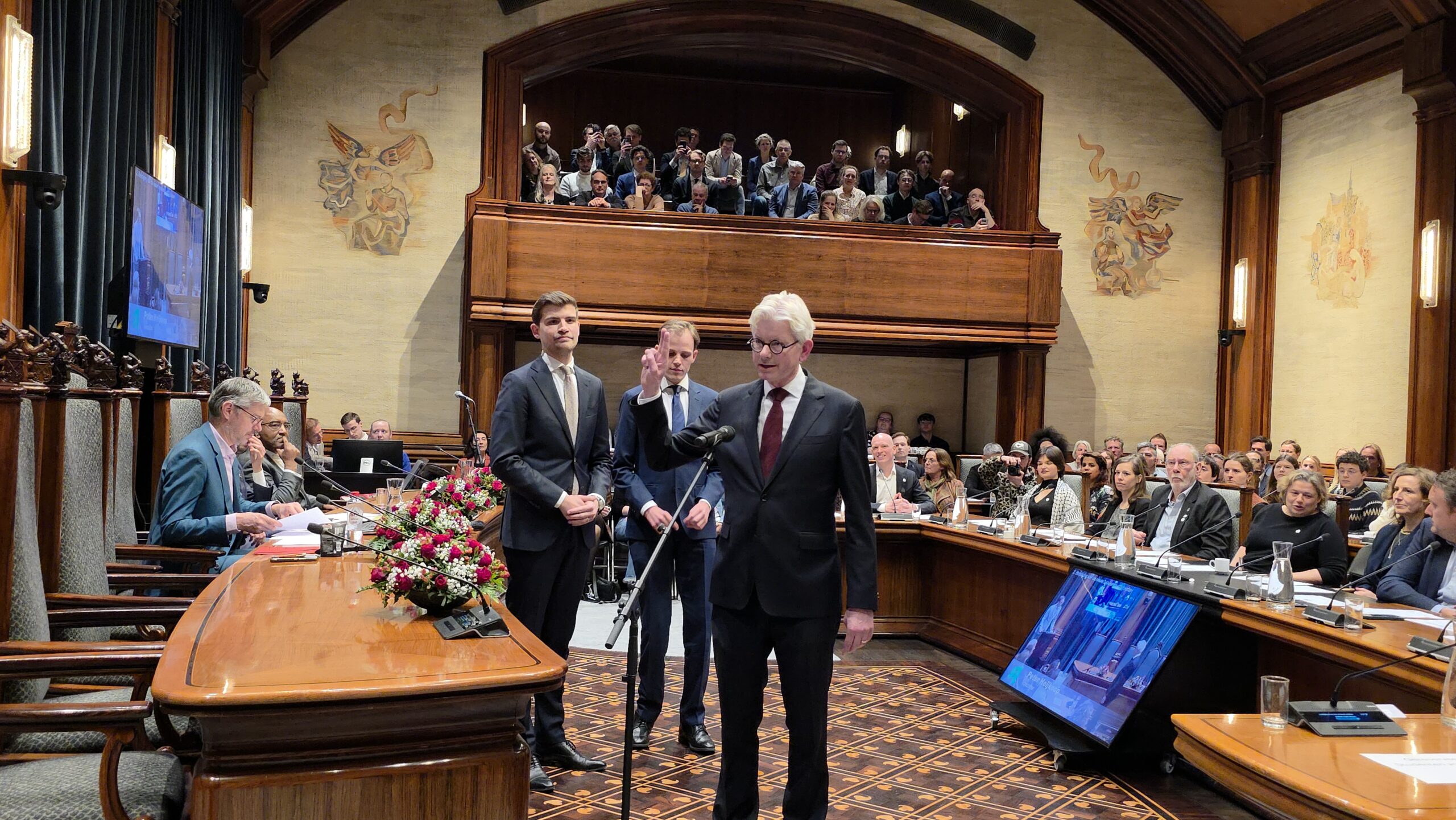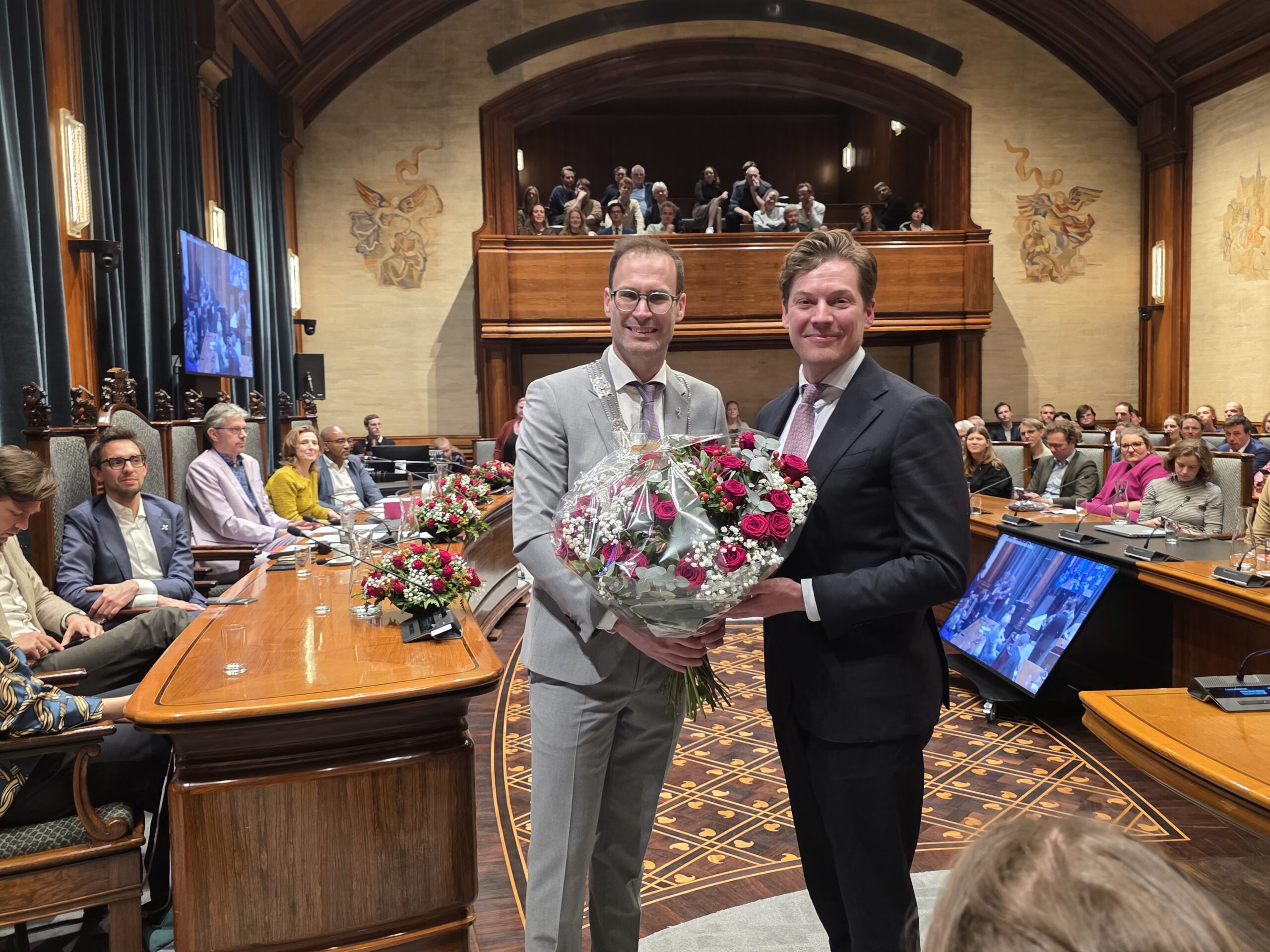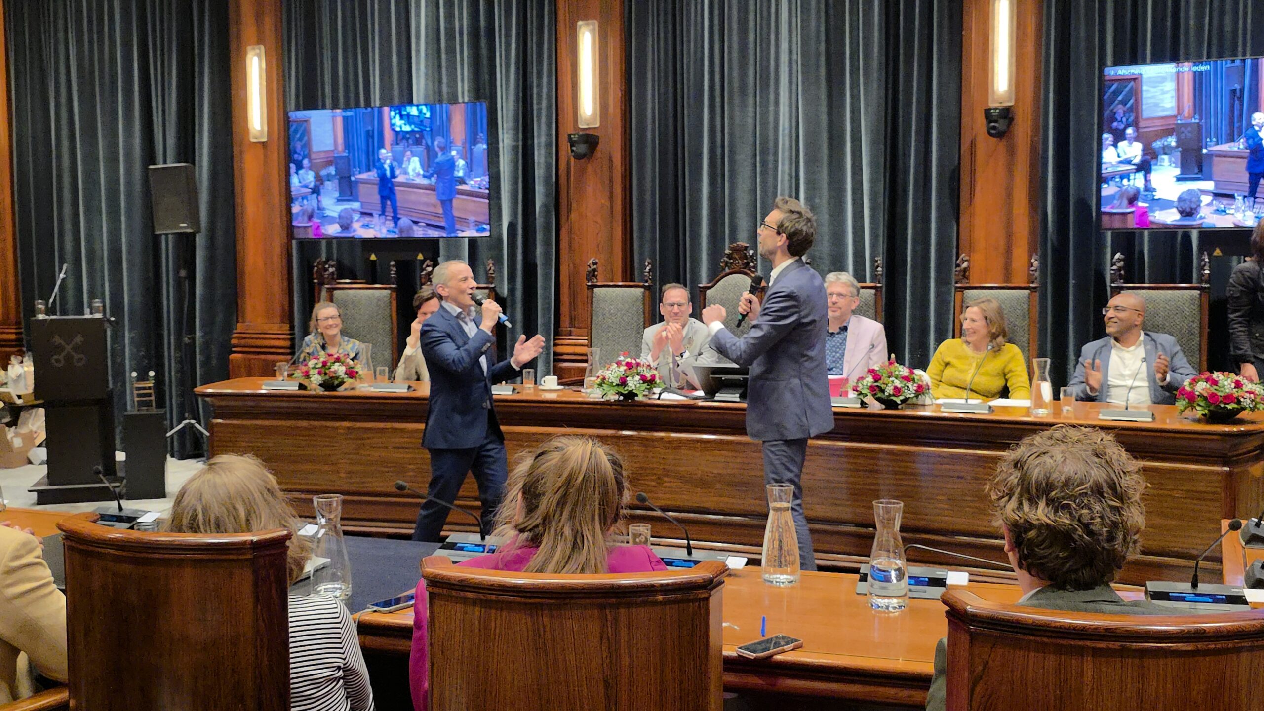 Twee avonden stond de raadzaal van het stadhuis in Leiden in het teken van afscheid nemen en verwelkomen. Woensdagavond namen maar liefst 27 raadsleden afscheid en donderdag werden alle 39 leden van de nieuwe gemeenteraad beëdigd.