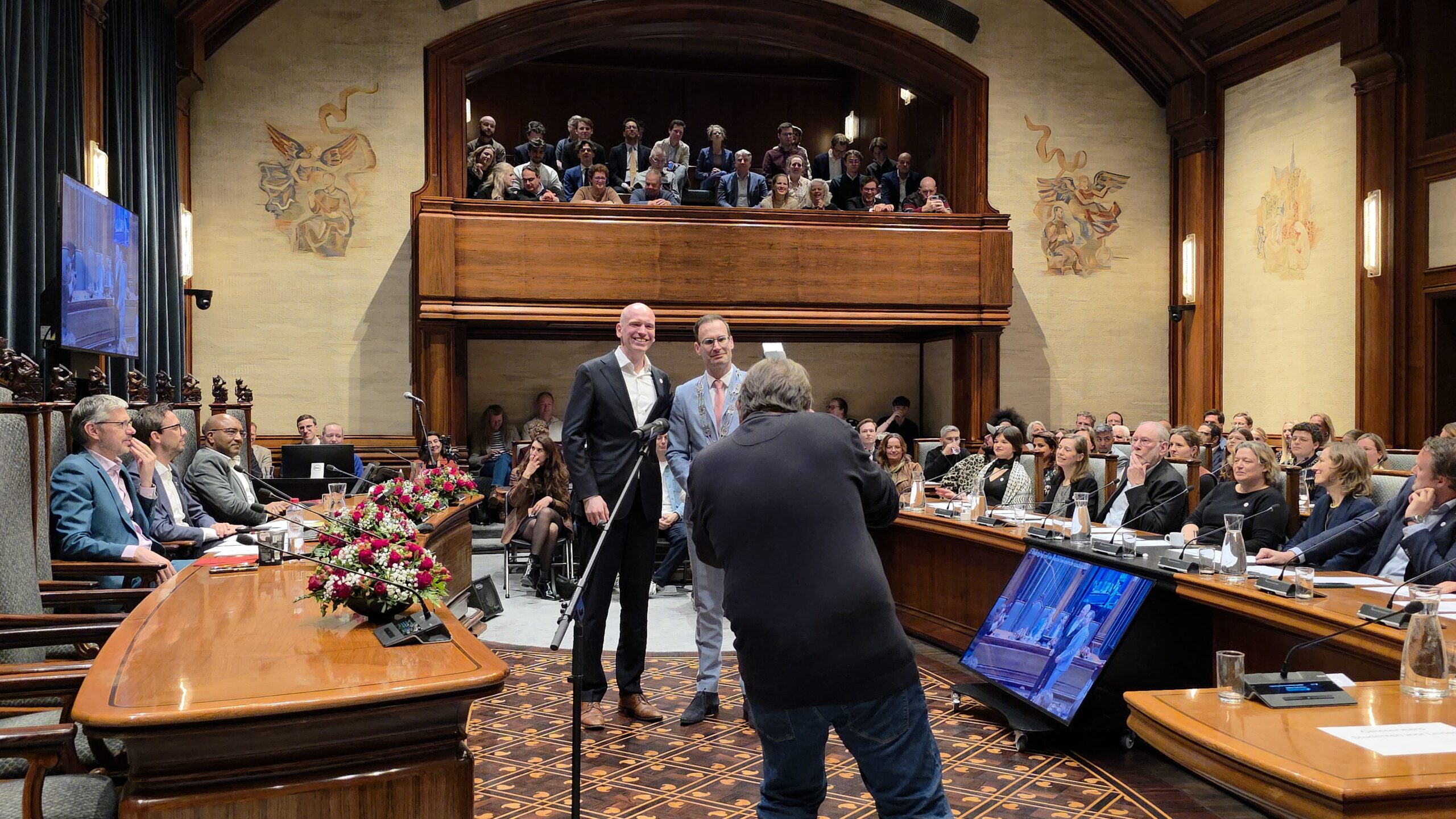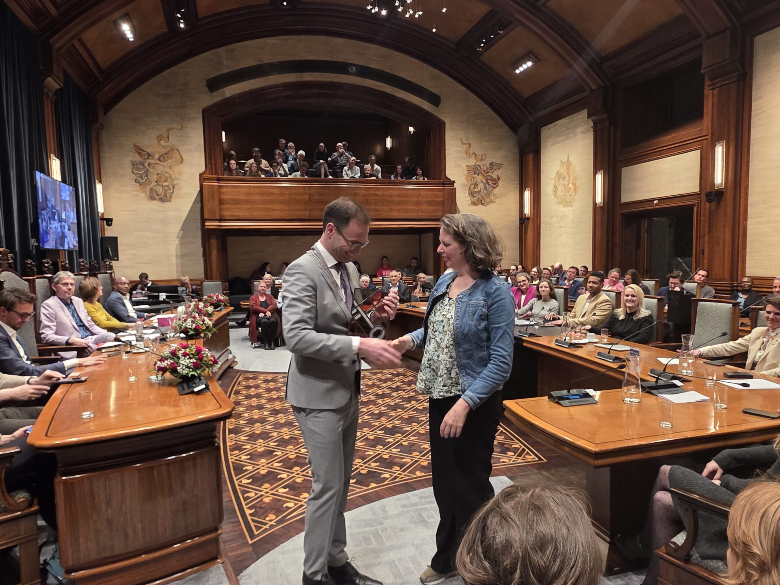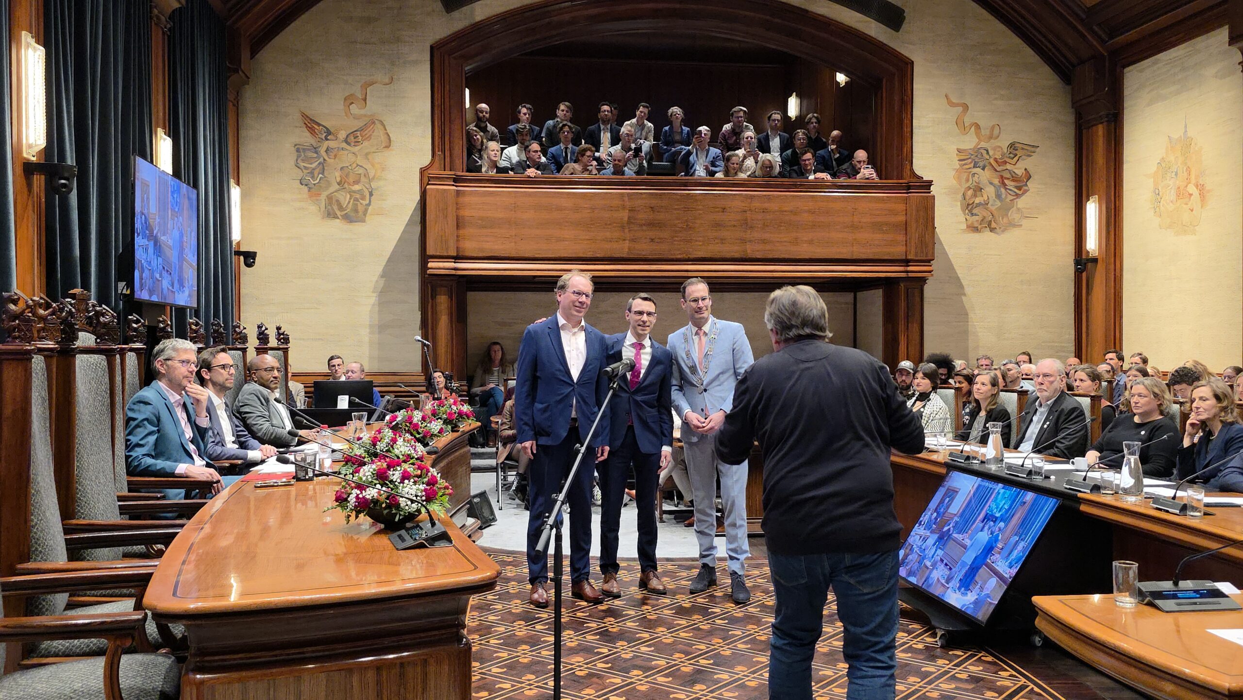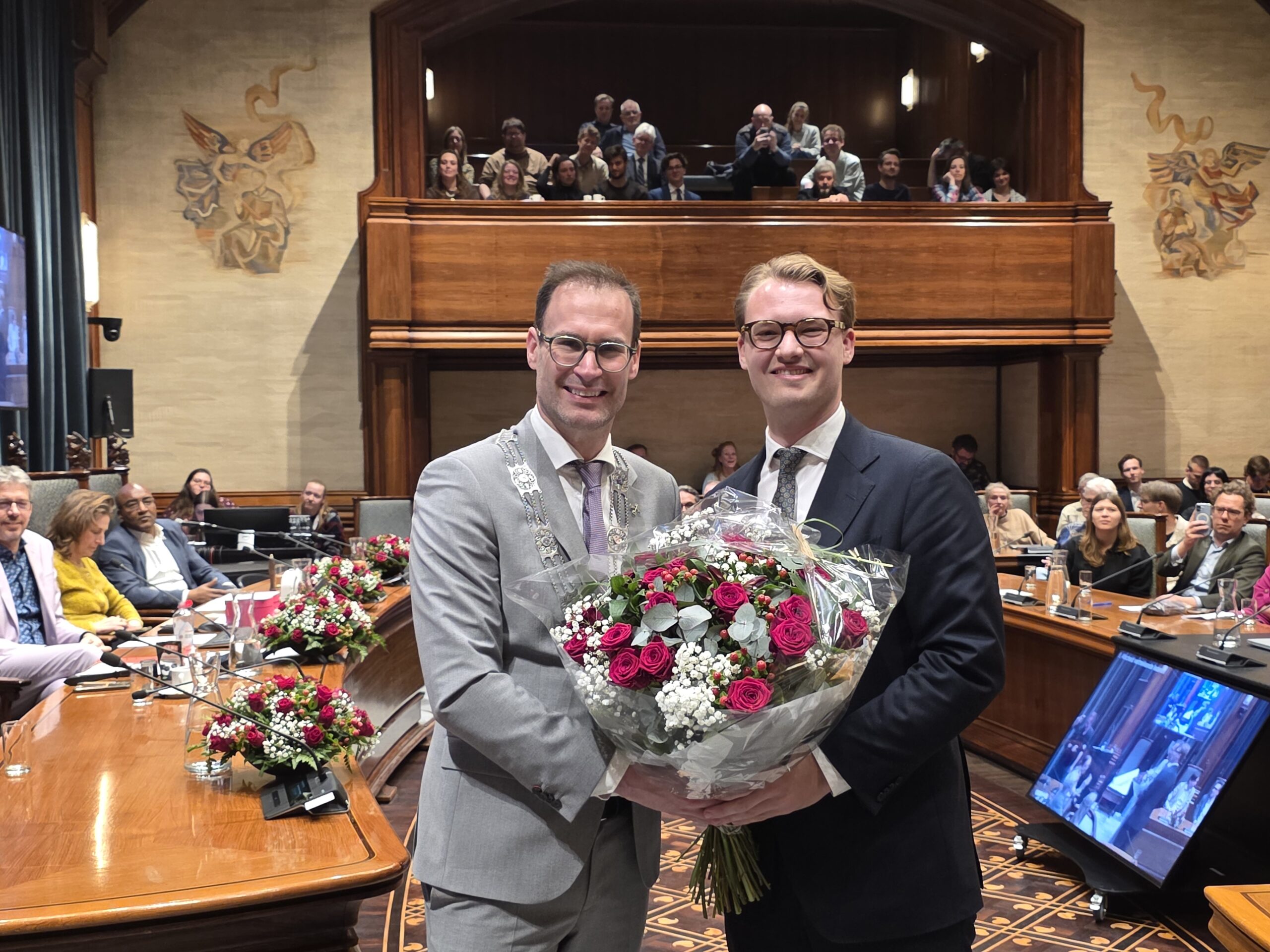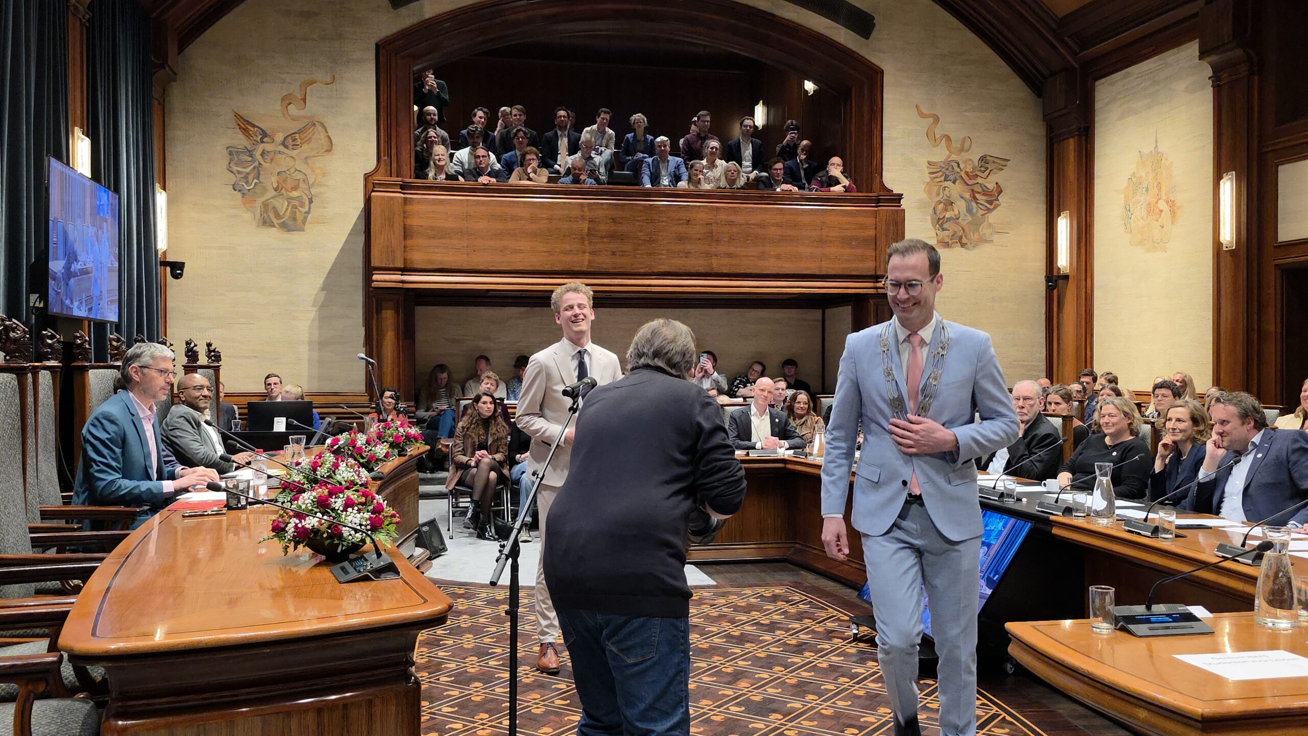 Twee avonden stond de raadzaal van het stadhuis in Leiden in het teken van afscheid nemen en verwelkomen. Woensdagavond namen maar liefst 27 raadsleden afscheid en donderdag werden alle 39 leden van de nieuwe gemeenteraad beëdigd.