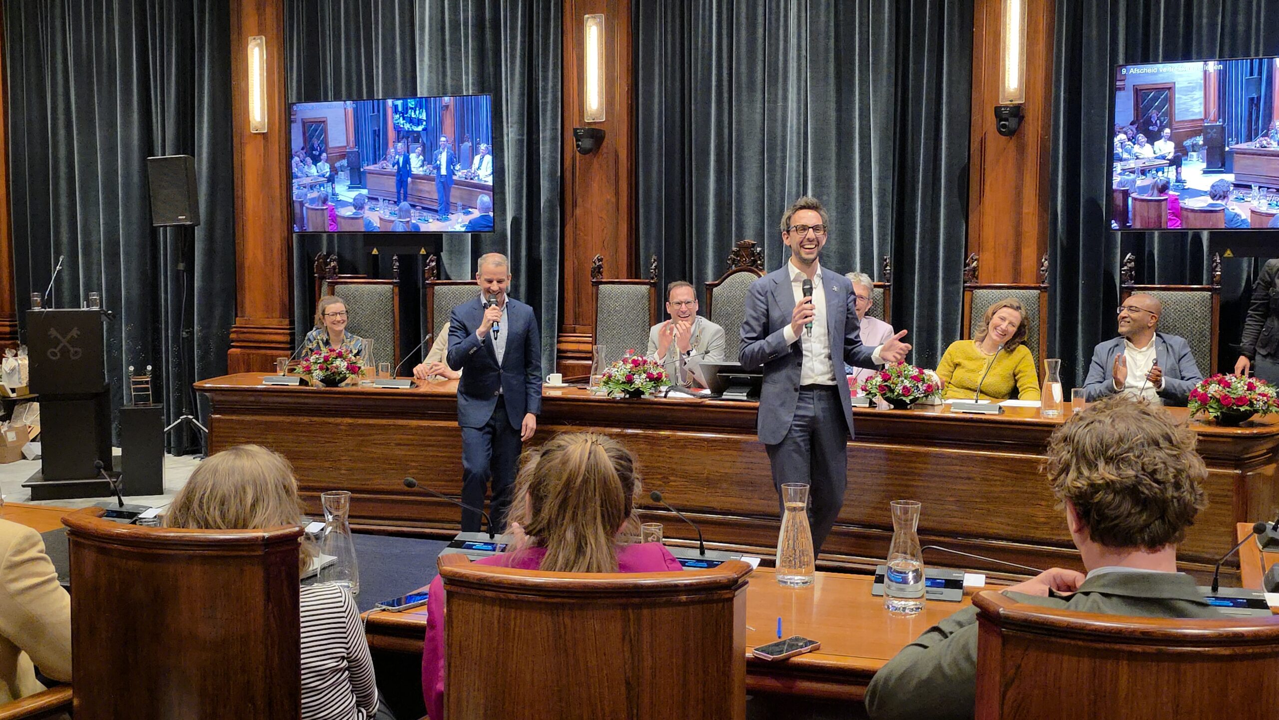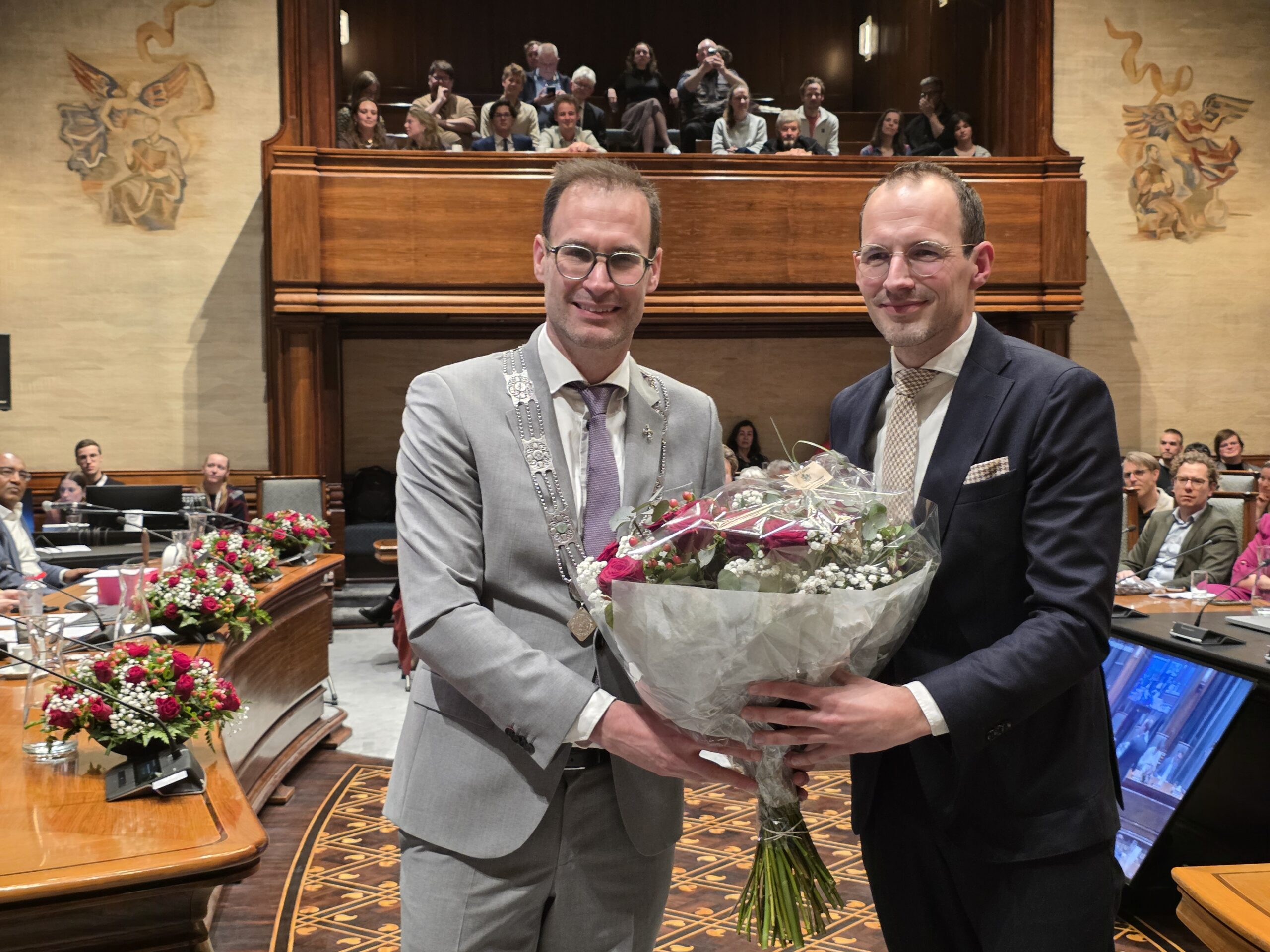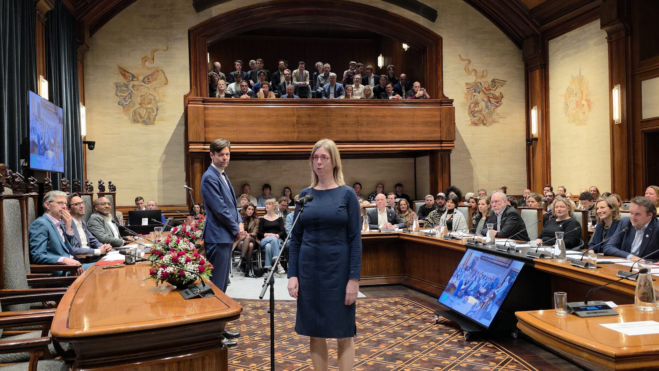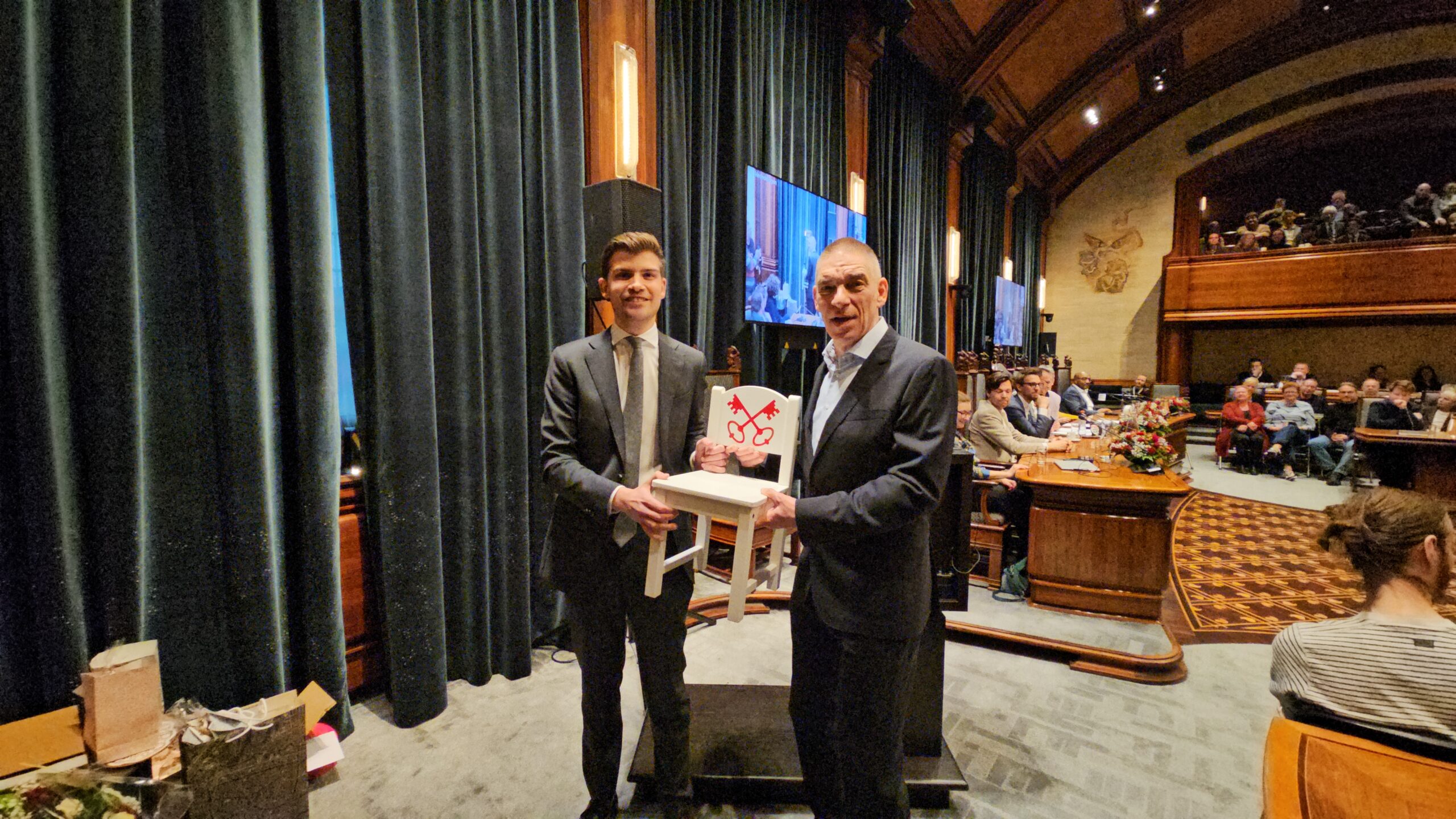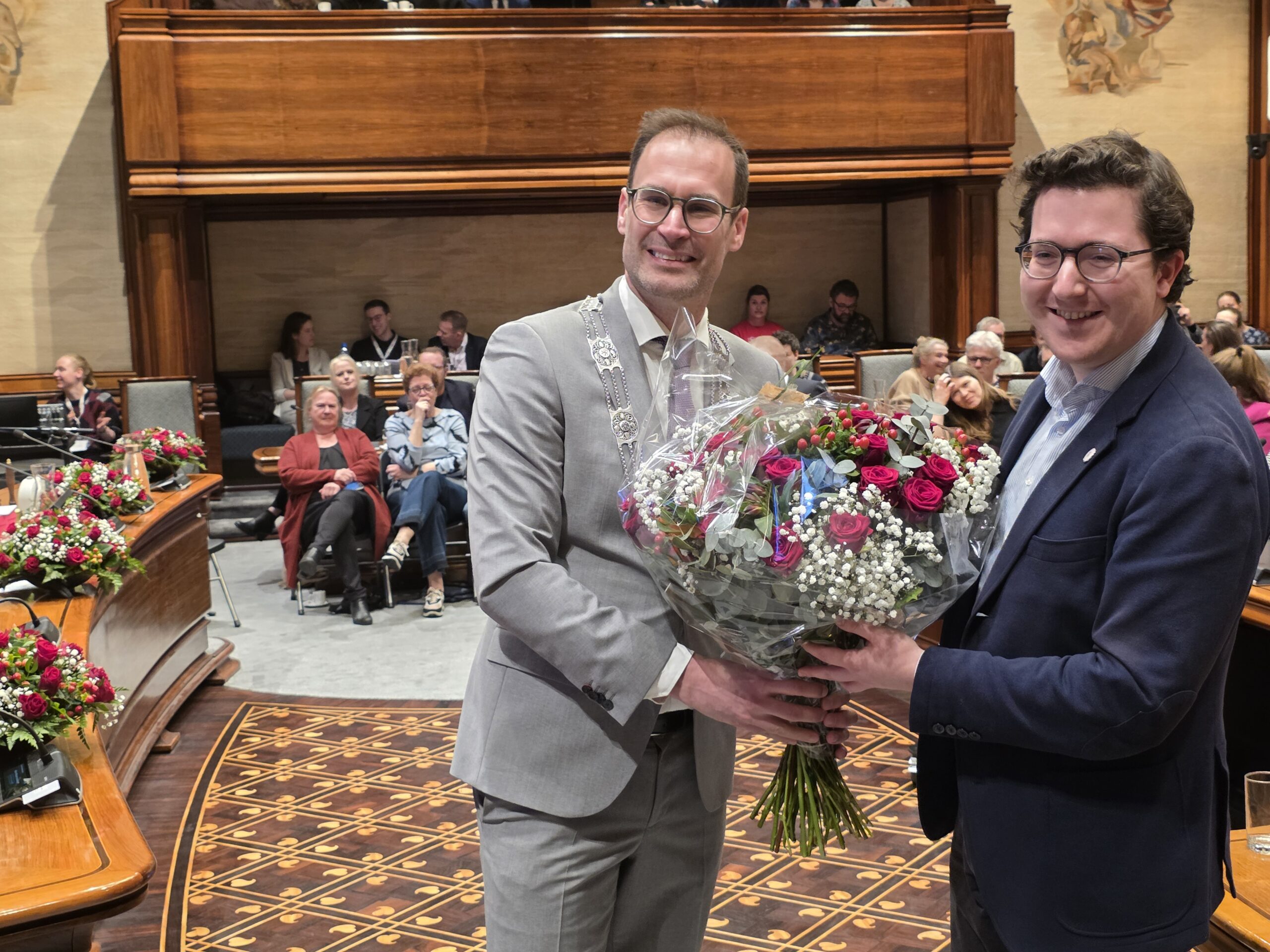 Twee avonden stond de raadzaal van het stadhuis in Leiden in het teken van afscheid nemen en verwelkomen. Woensdagavond namen maar liefst 27 raadsleden afscheid en donderdag werden alle 39 leden van de nieuwe gemeenteraad beëdigd.