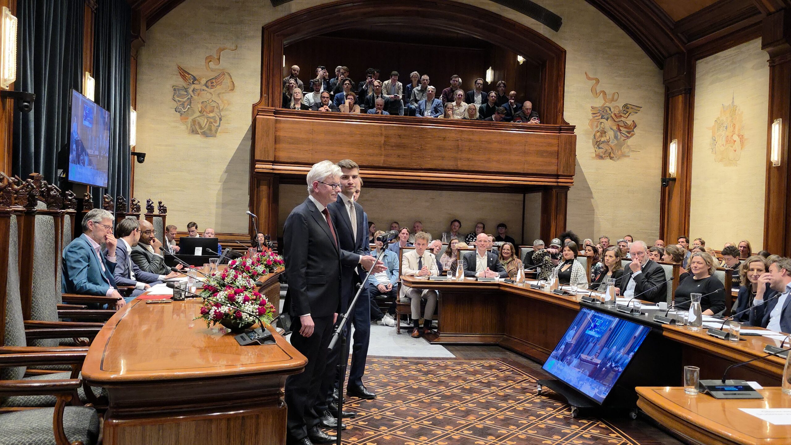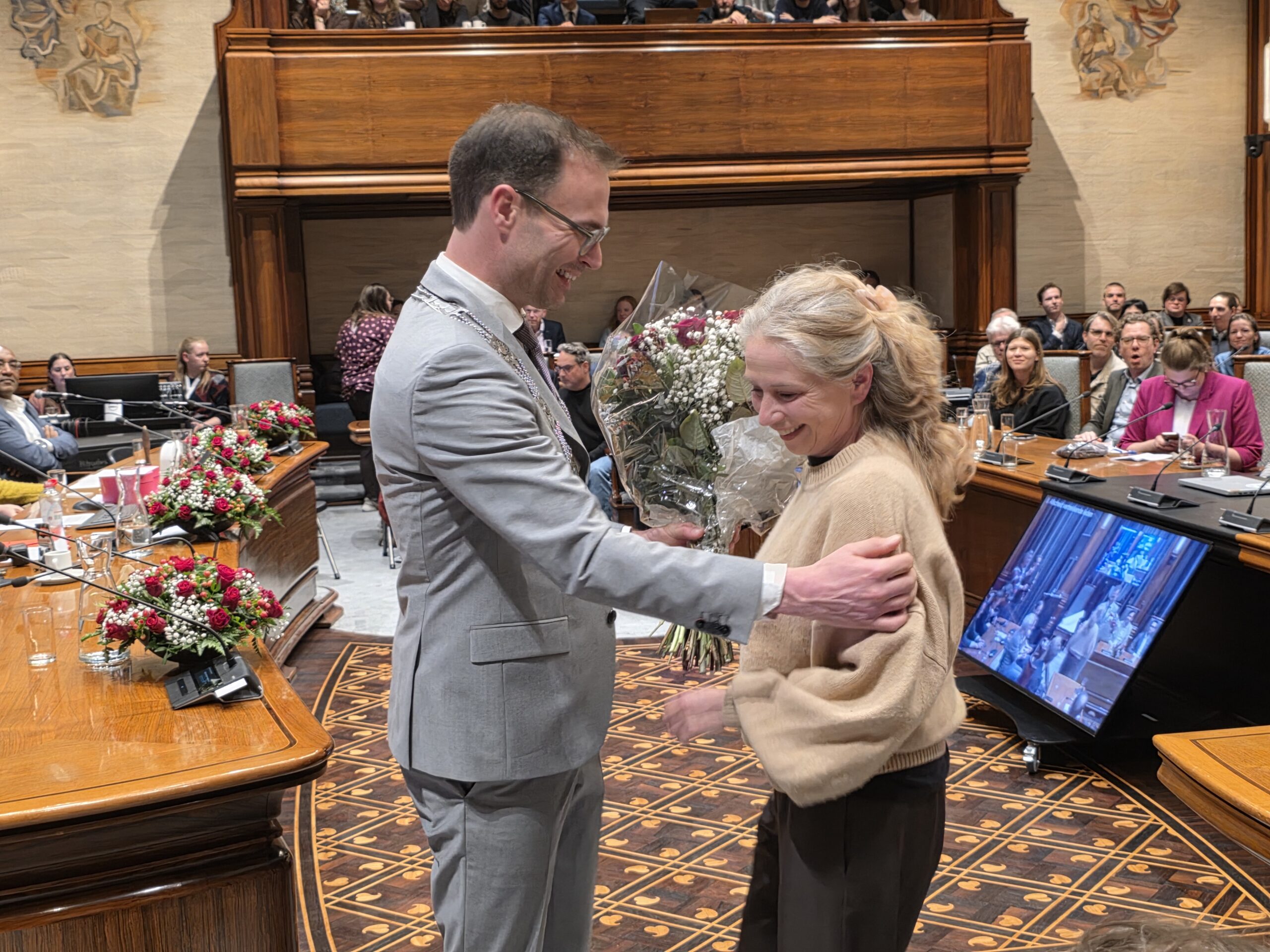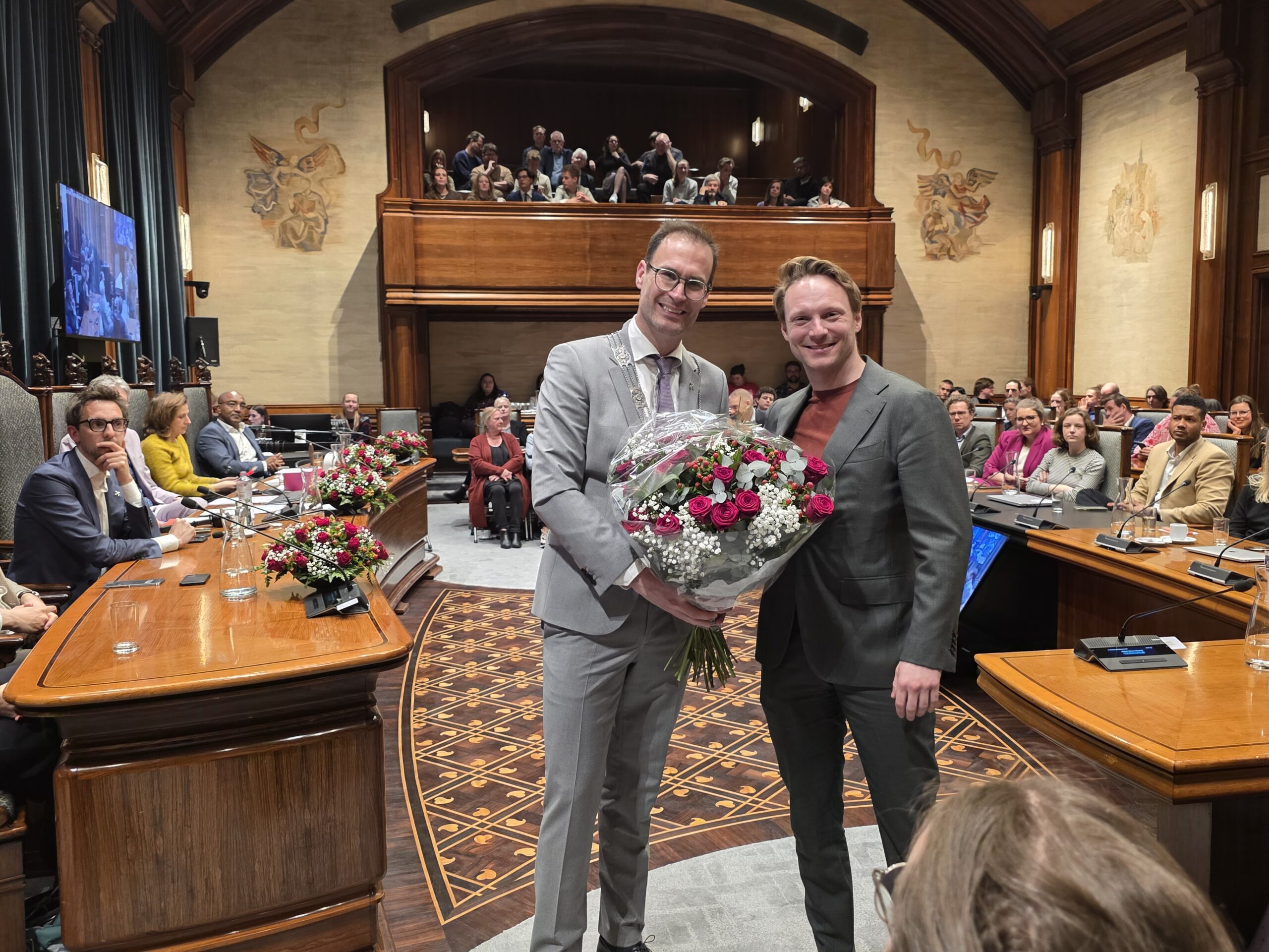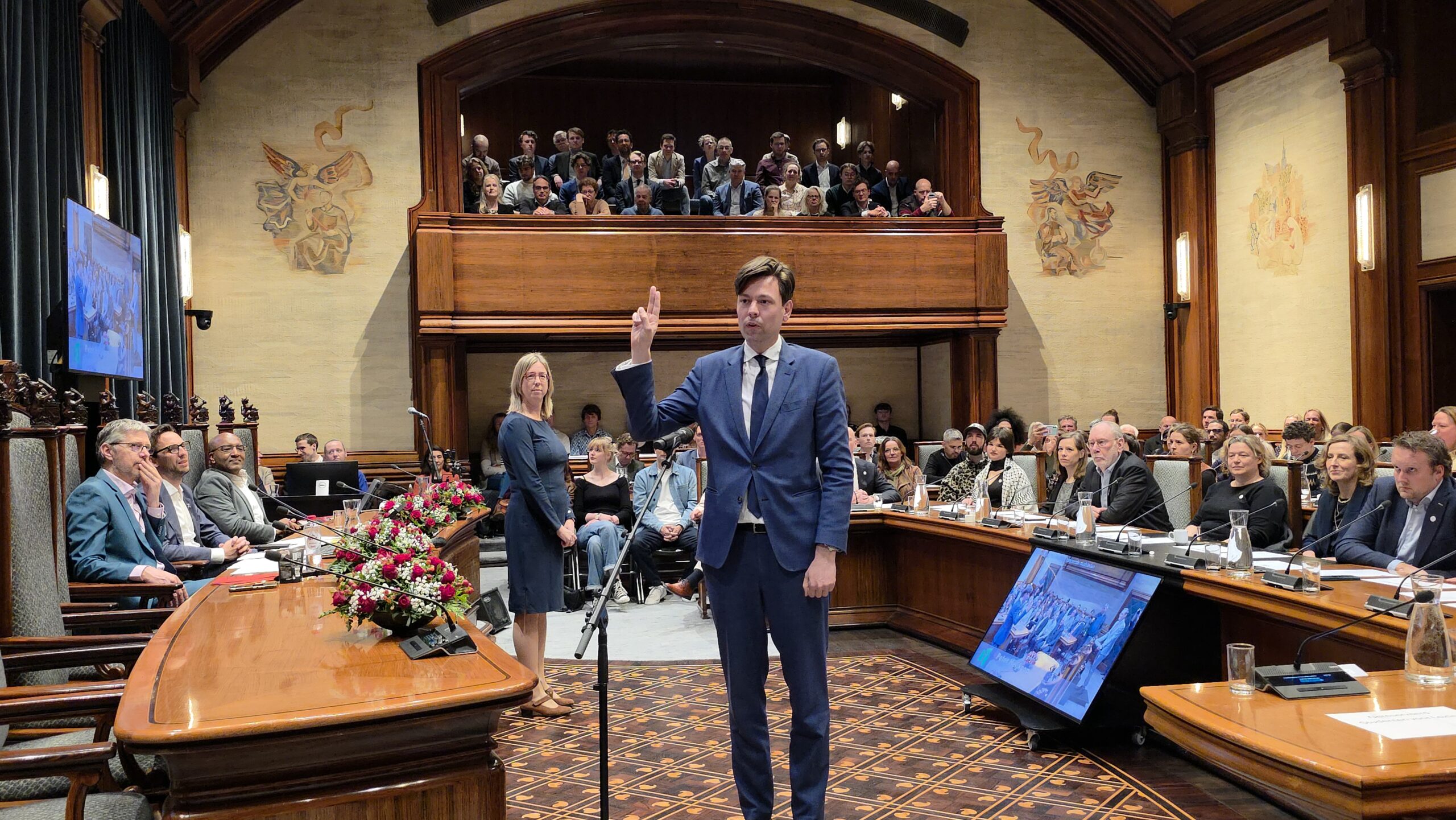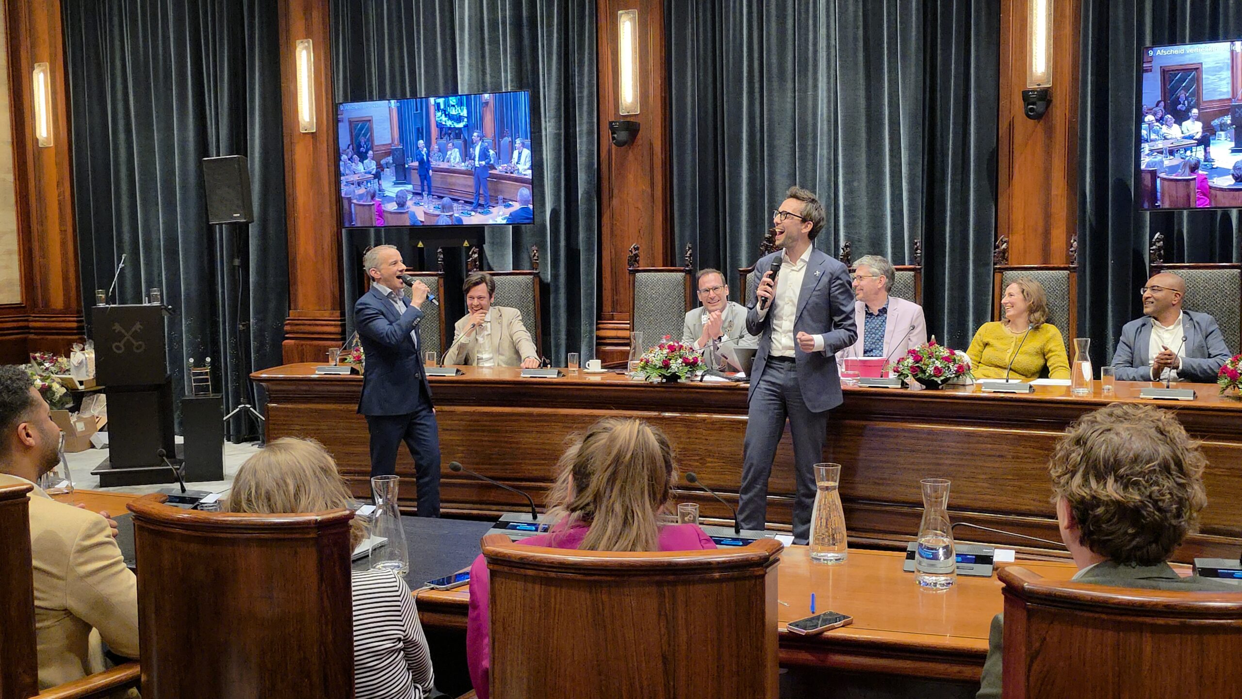 Twee avonden stond de raadzaal van het stadhuis in Leiden in het teken van afscheid nemen en verwelkomen. Woensdagavond namen maar liefst 27 raadsleden afscheid en donderdag werden alle 39 leden van de nieuwe gemeenteraad beëdigd.