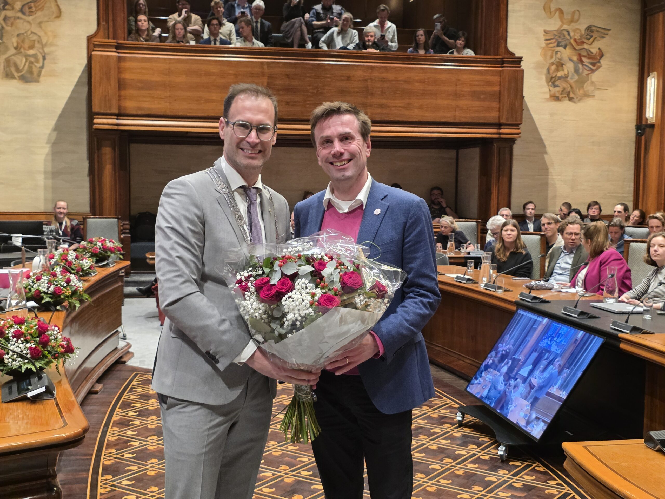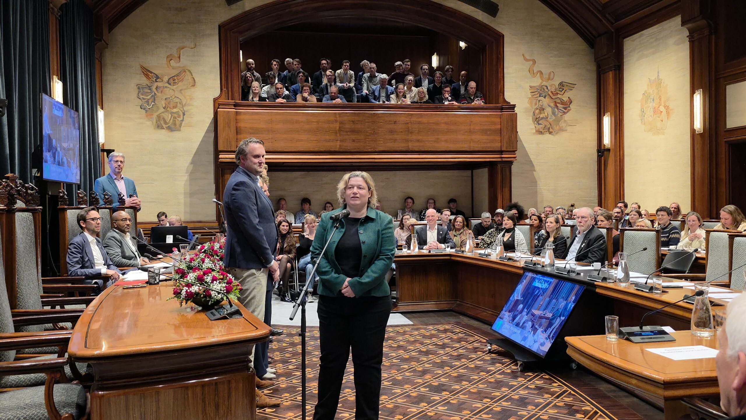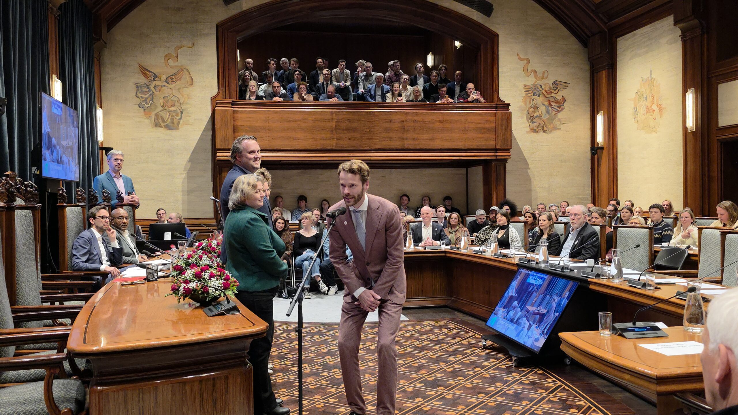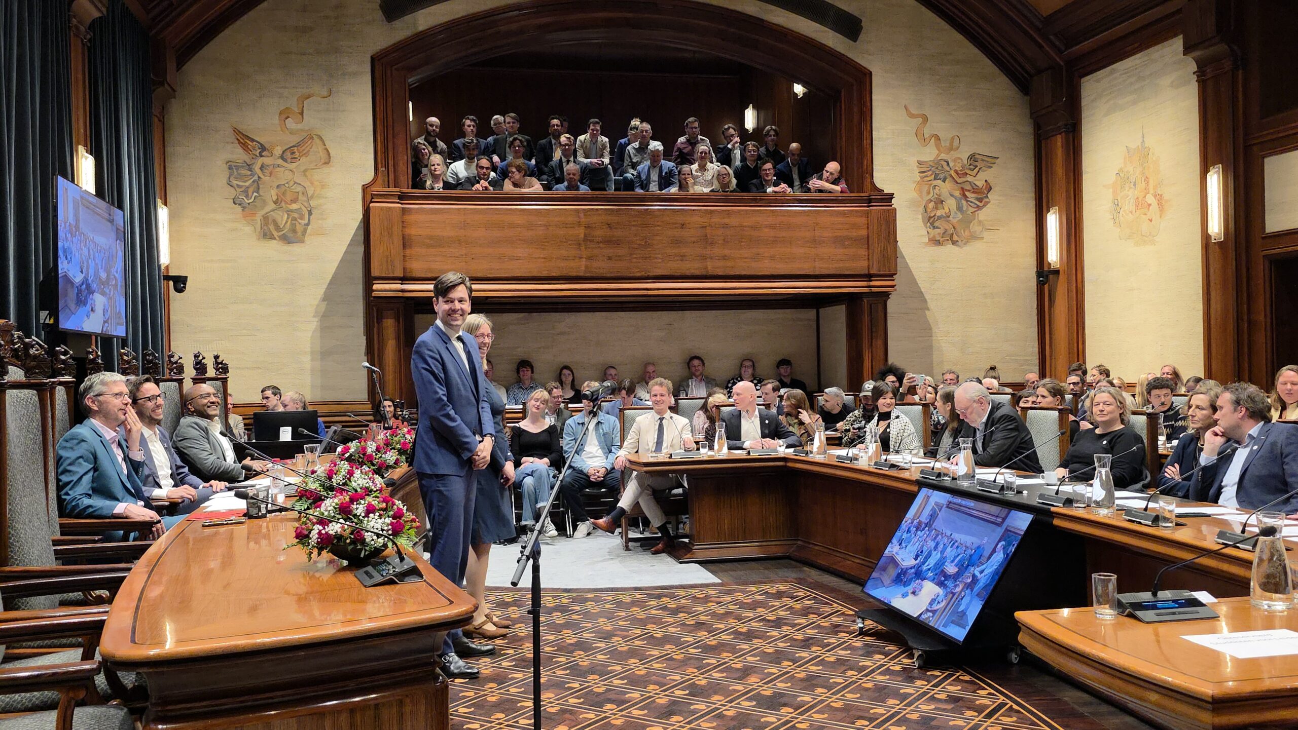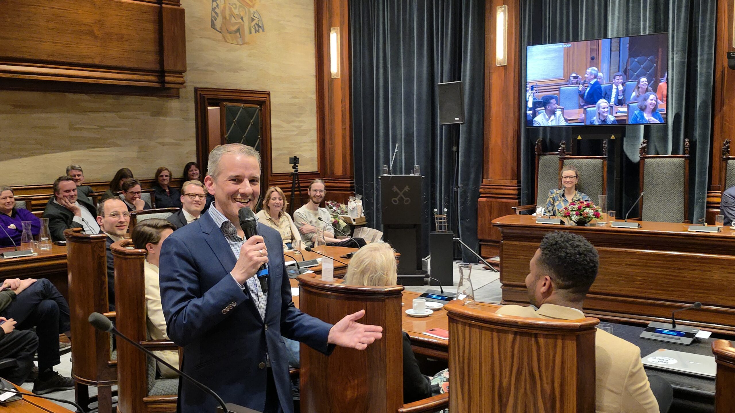 Twee avonden stond de raadzaal van het stadhuis in Leiden in het teken van afscheid nemen en verwelkomen. Woensdagavond namen maar liefst 27 raadsleden afscheid en donderdag werden alle 39 leden van de nieuwe gemeenteraad beëdigd.