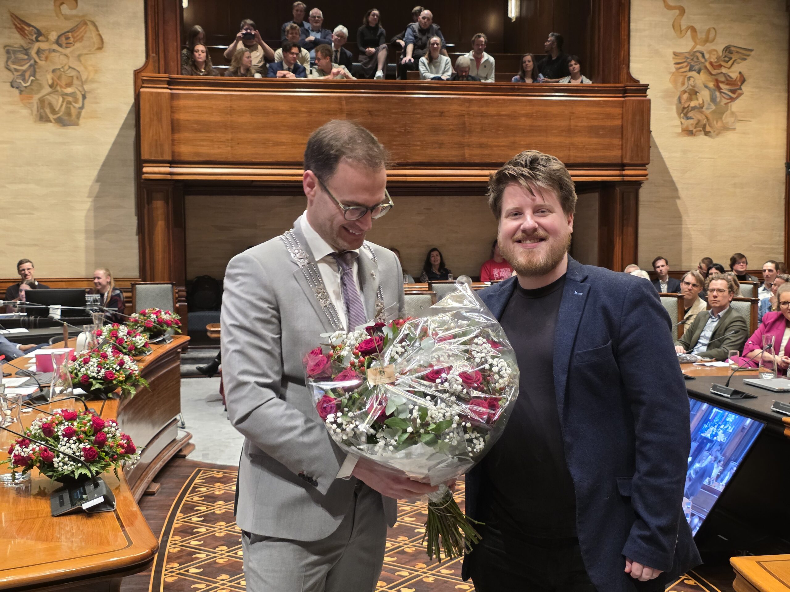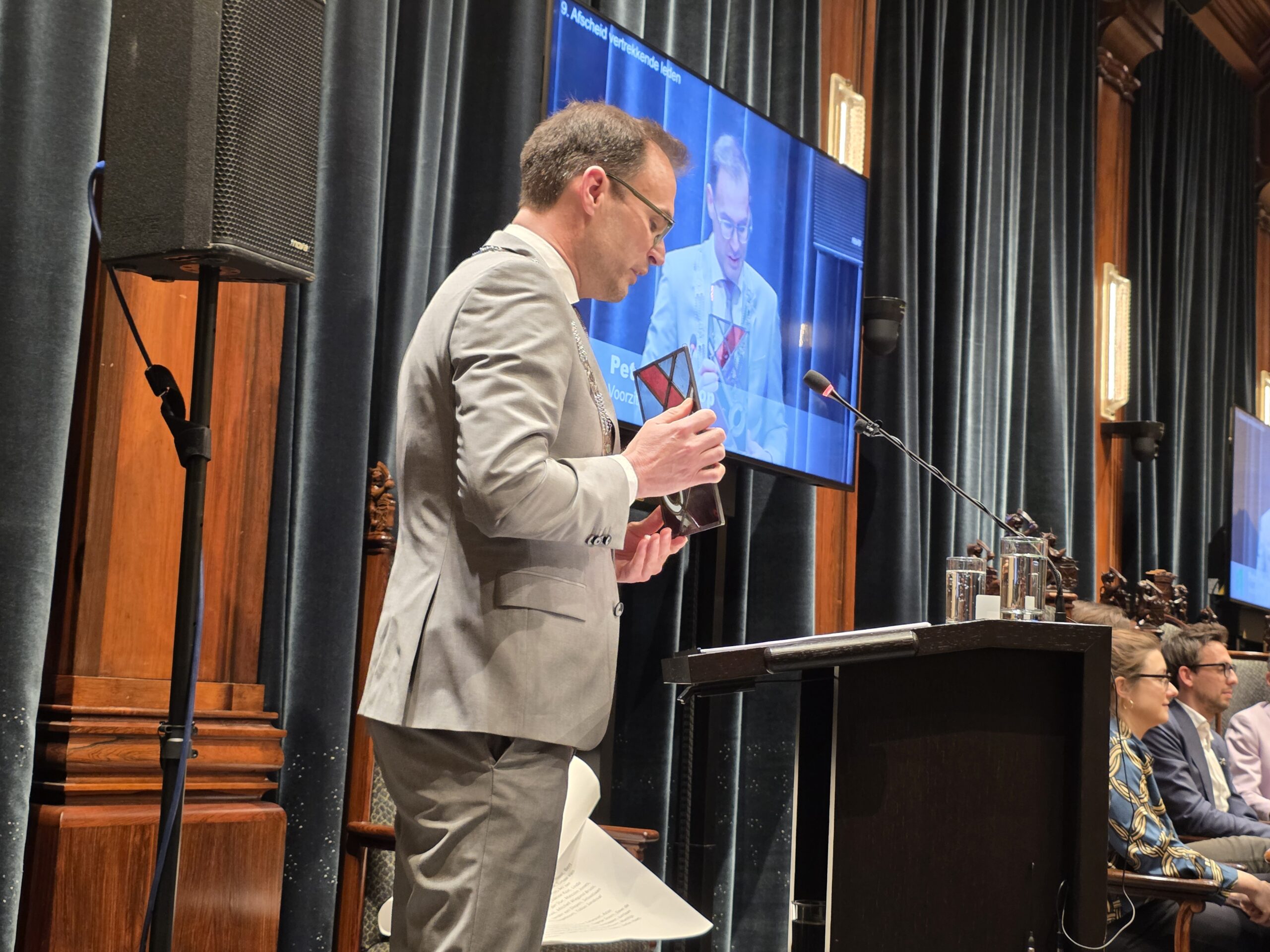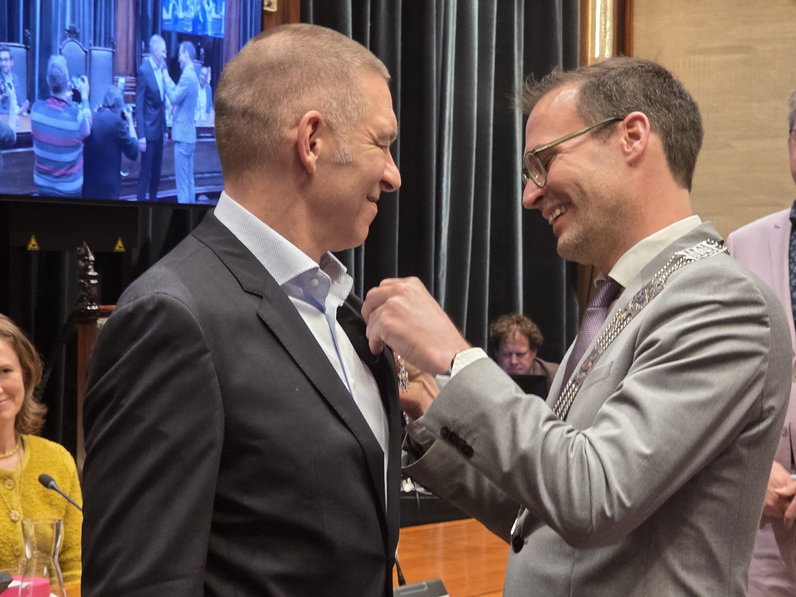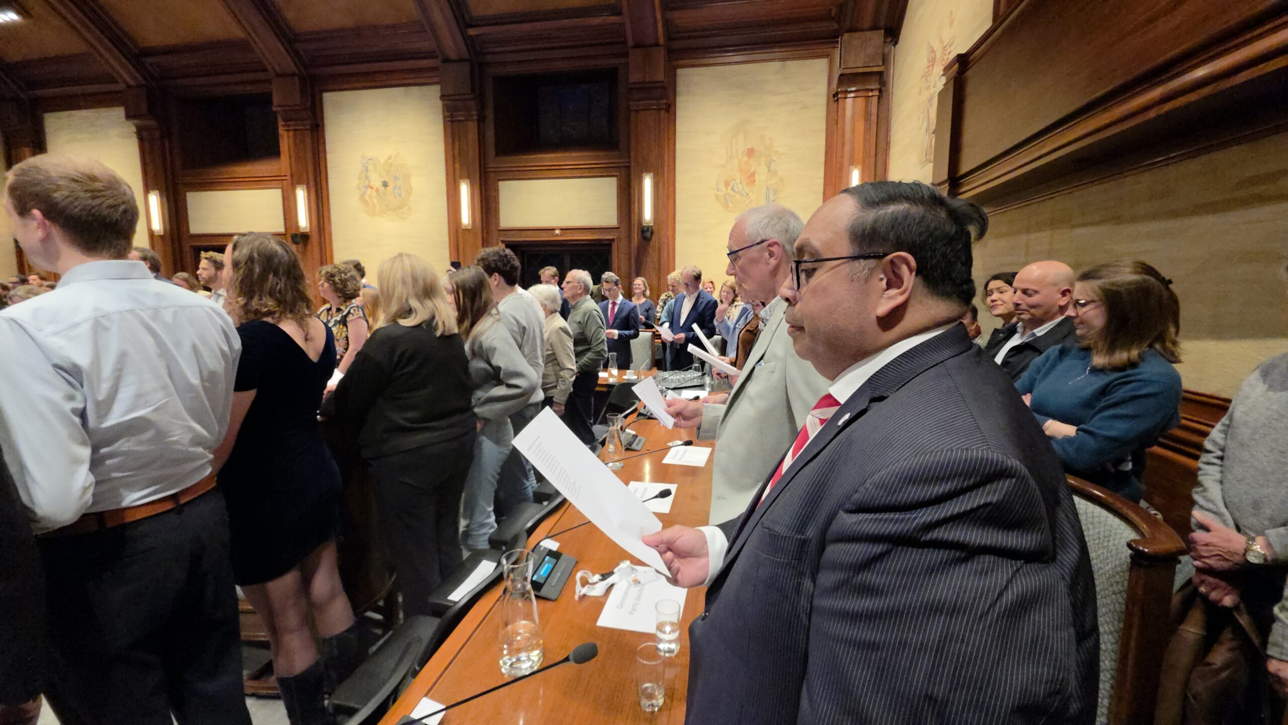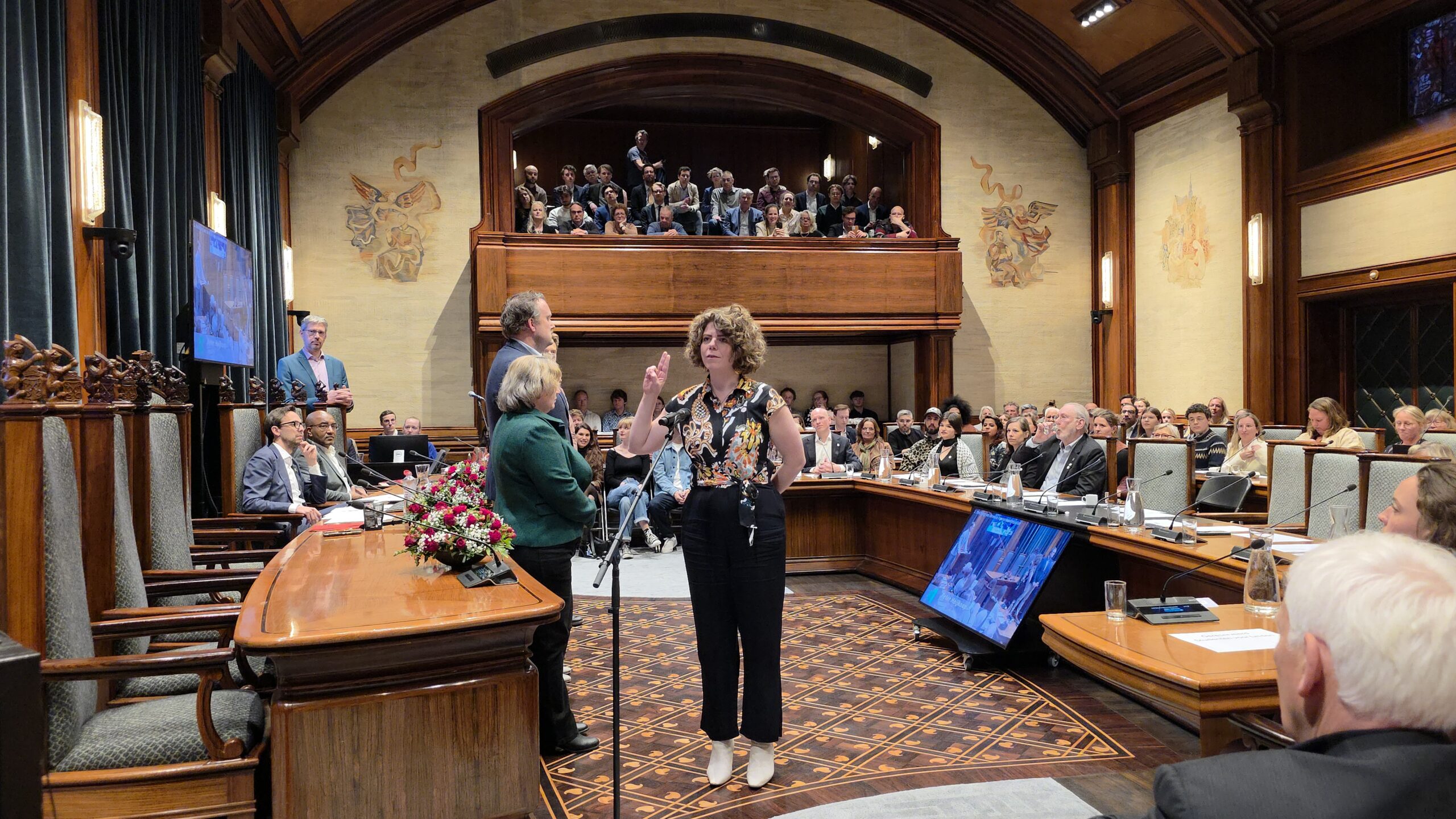 Twee avonden stond de raadzaal van het stadhuis in Leiden in het teken van afscheid nemen en verwelkomen. Woensdagavond namen maar liefst 27 raadsleden afscheid en donderdag werden alle 39 leden van de nieuwe gemeenteraad beëdigd.