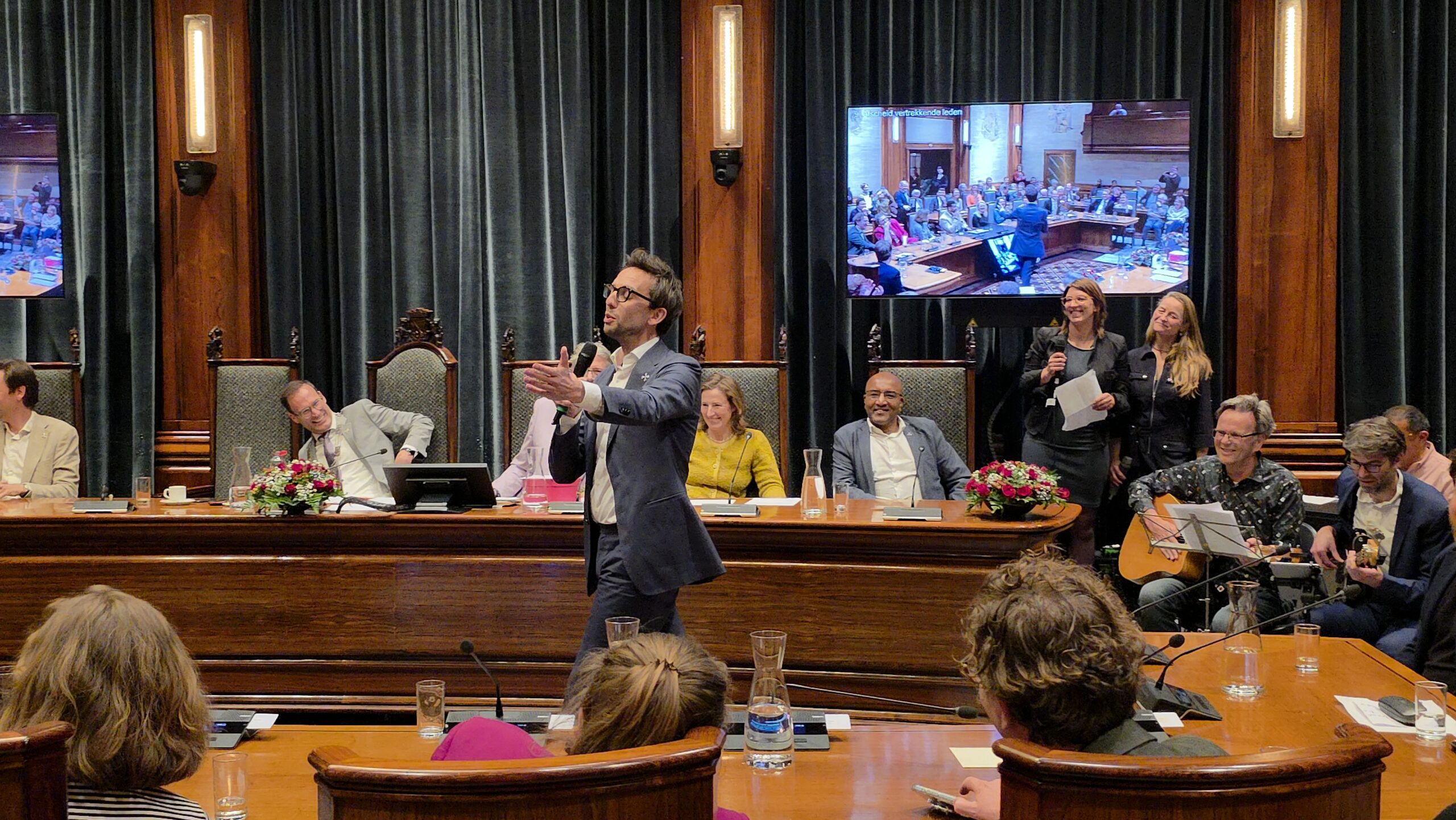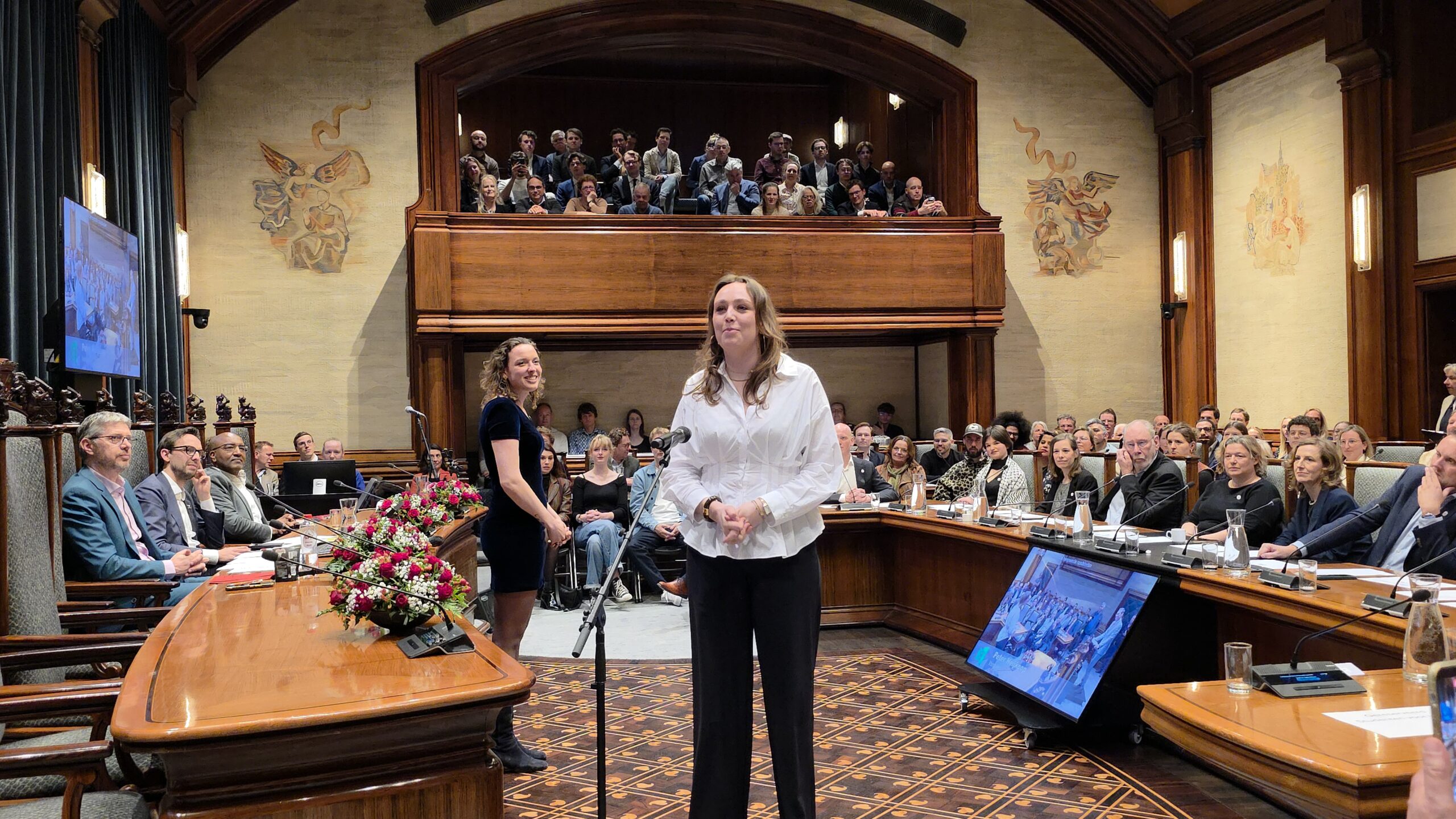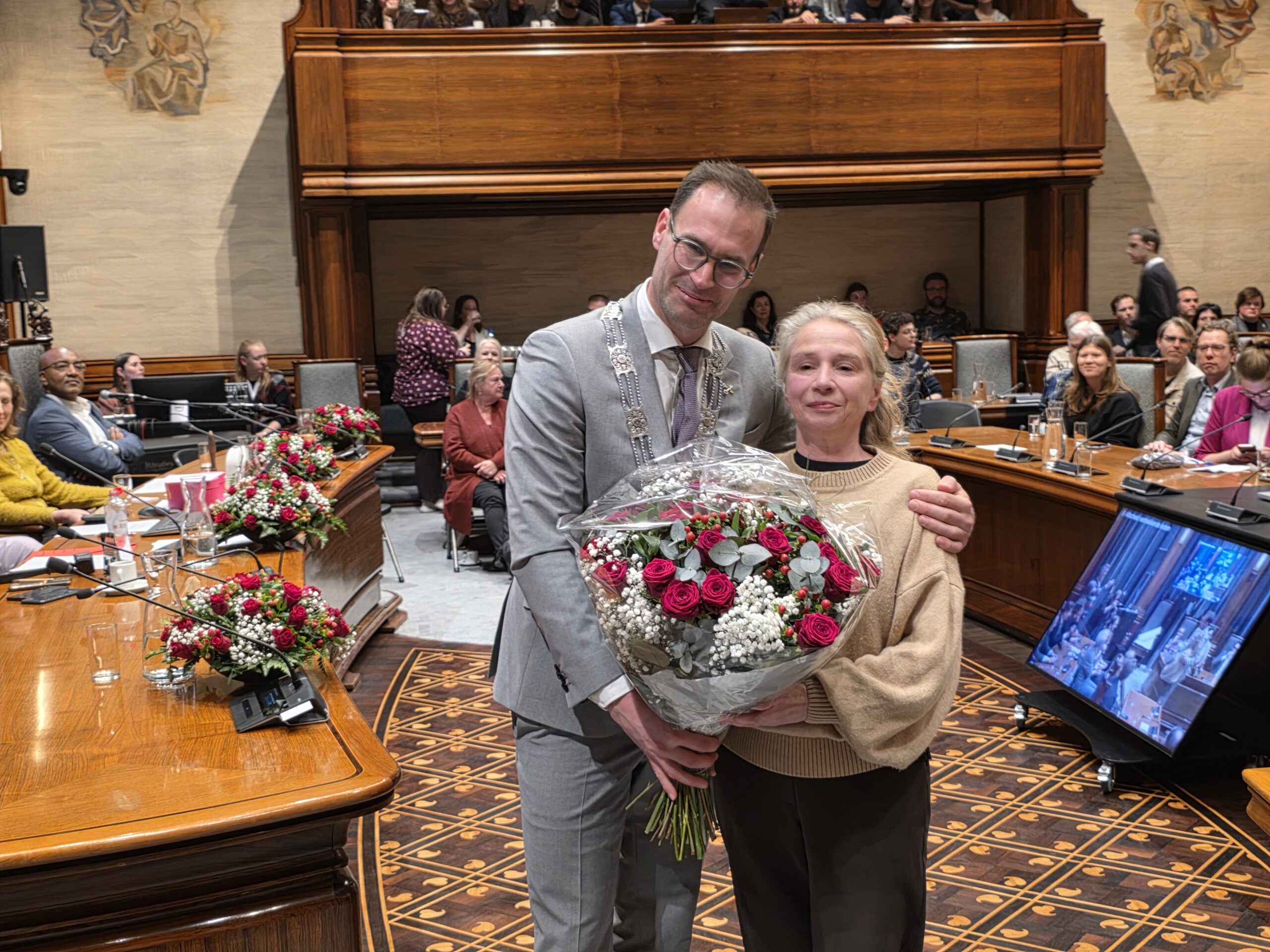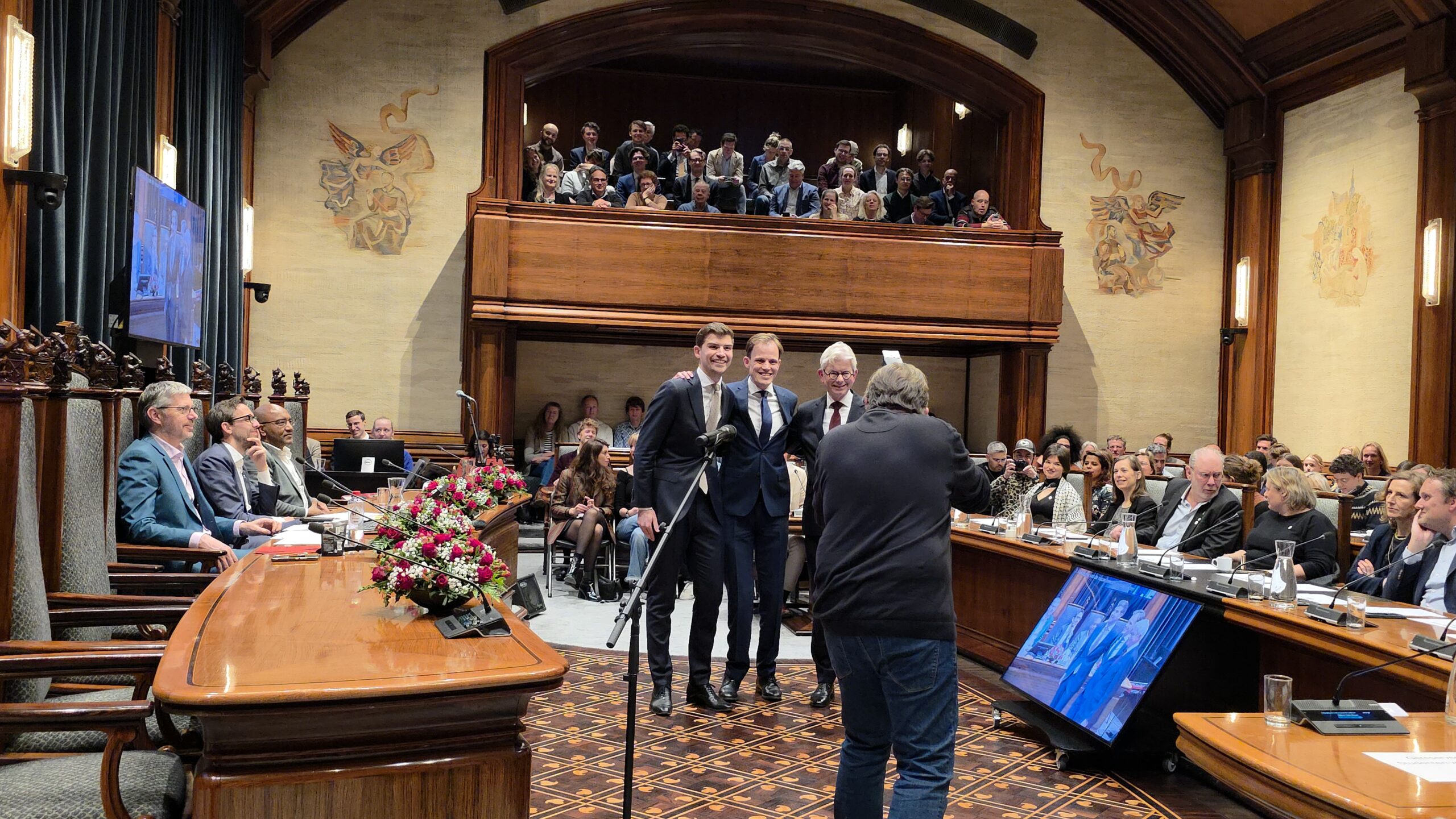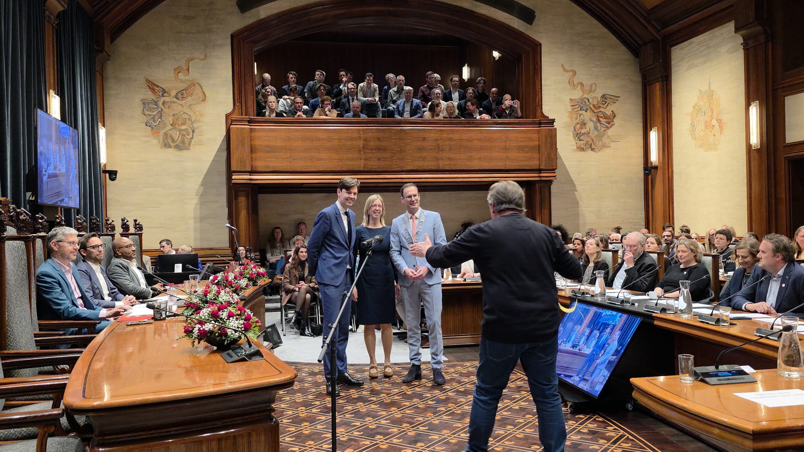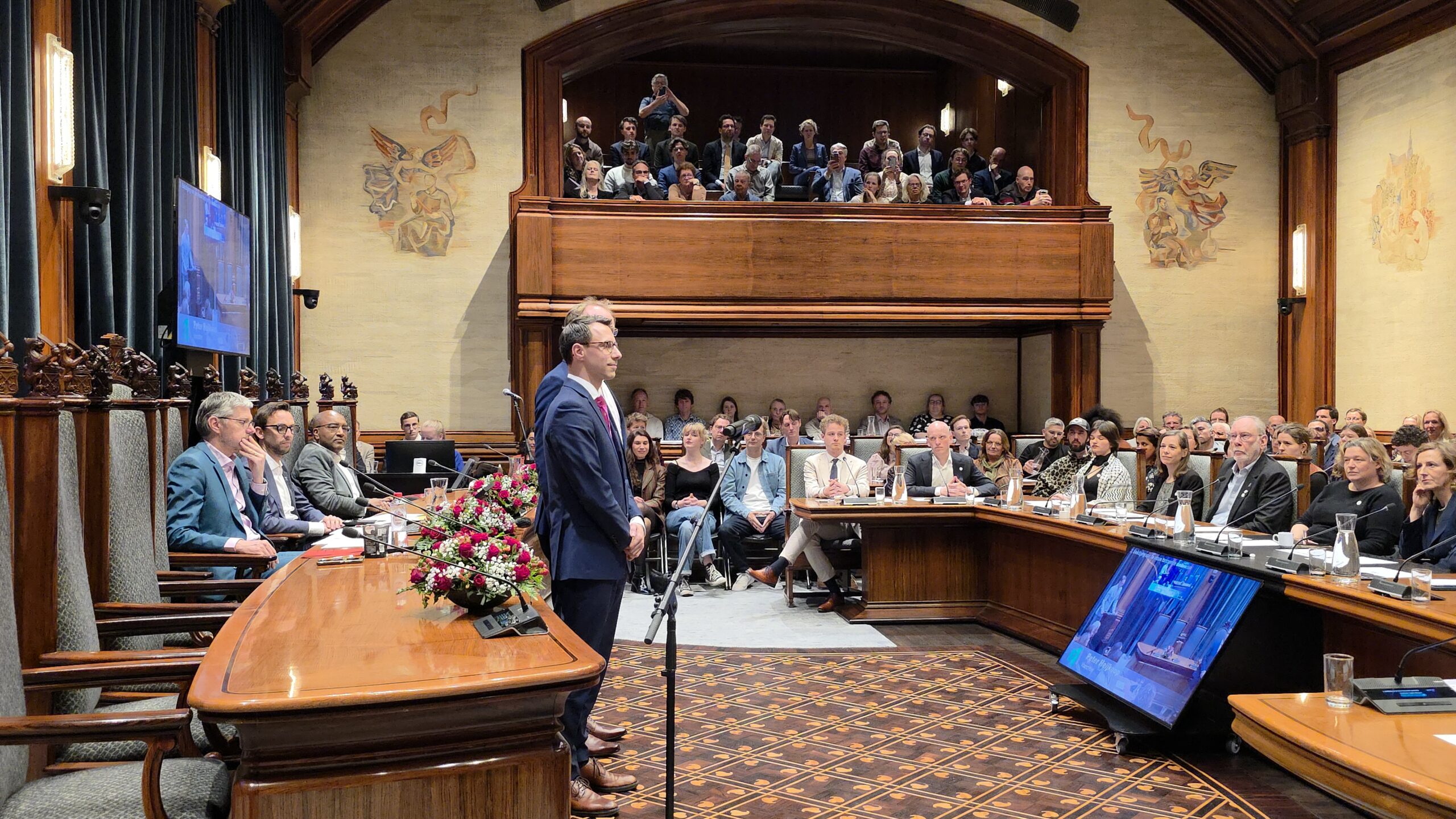 Twee avonden stond de raadzaal van het stadhuis in Leiden in het teken van afscheid nemen en verwelkomen. Woensdagavond namen maar liefst 27 raadsleden afscheid en donderdag werden alle 39 leden van de nieuwe gemeenteraad beëdigd.