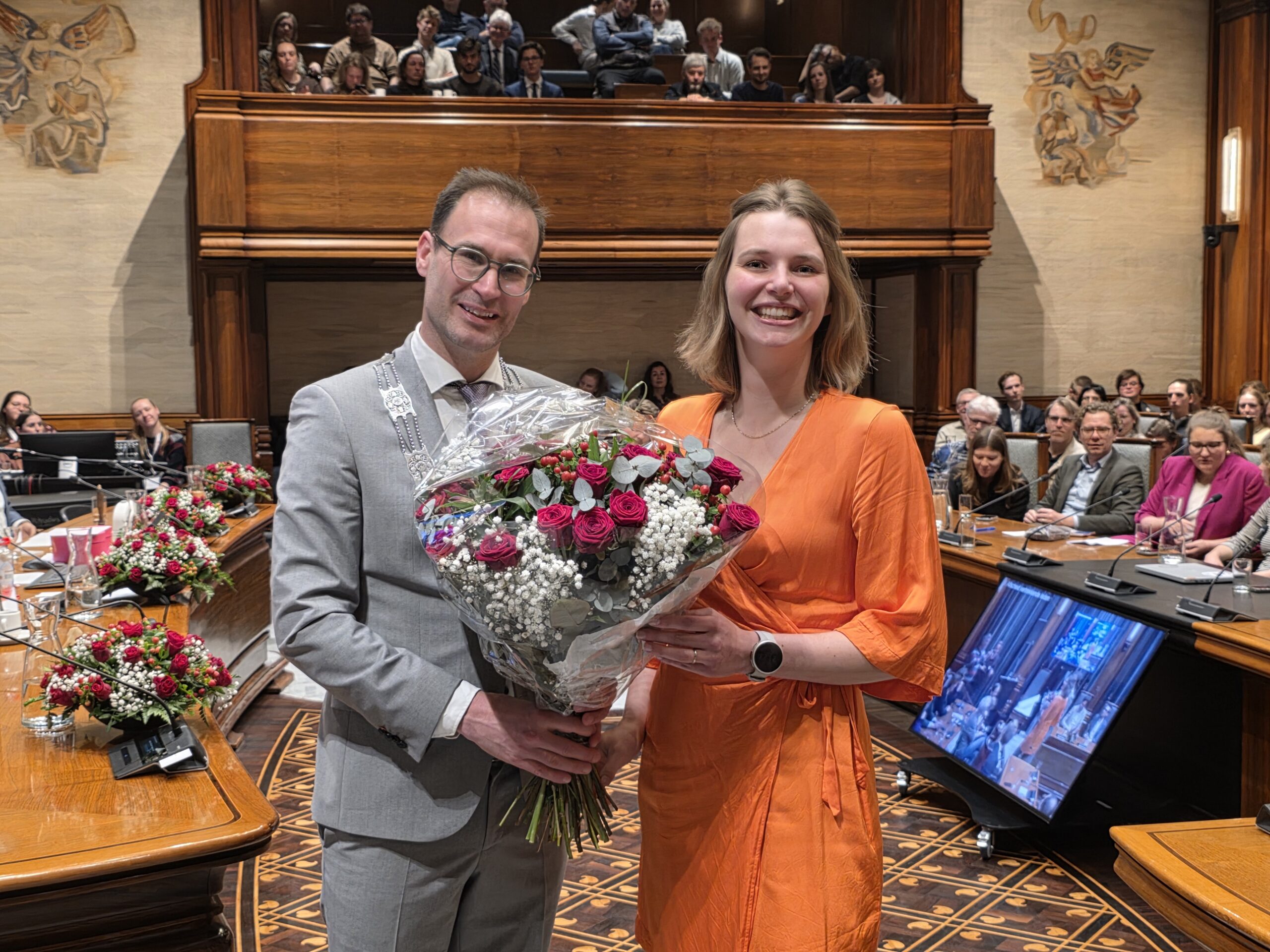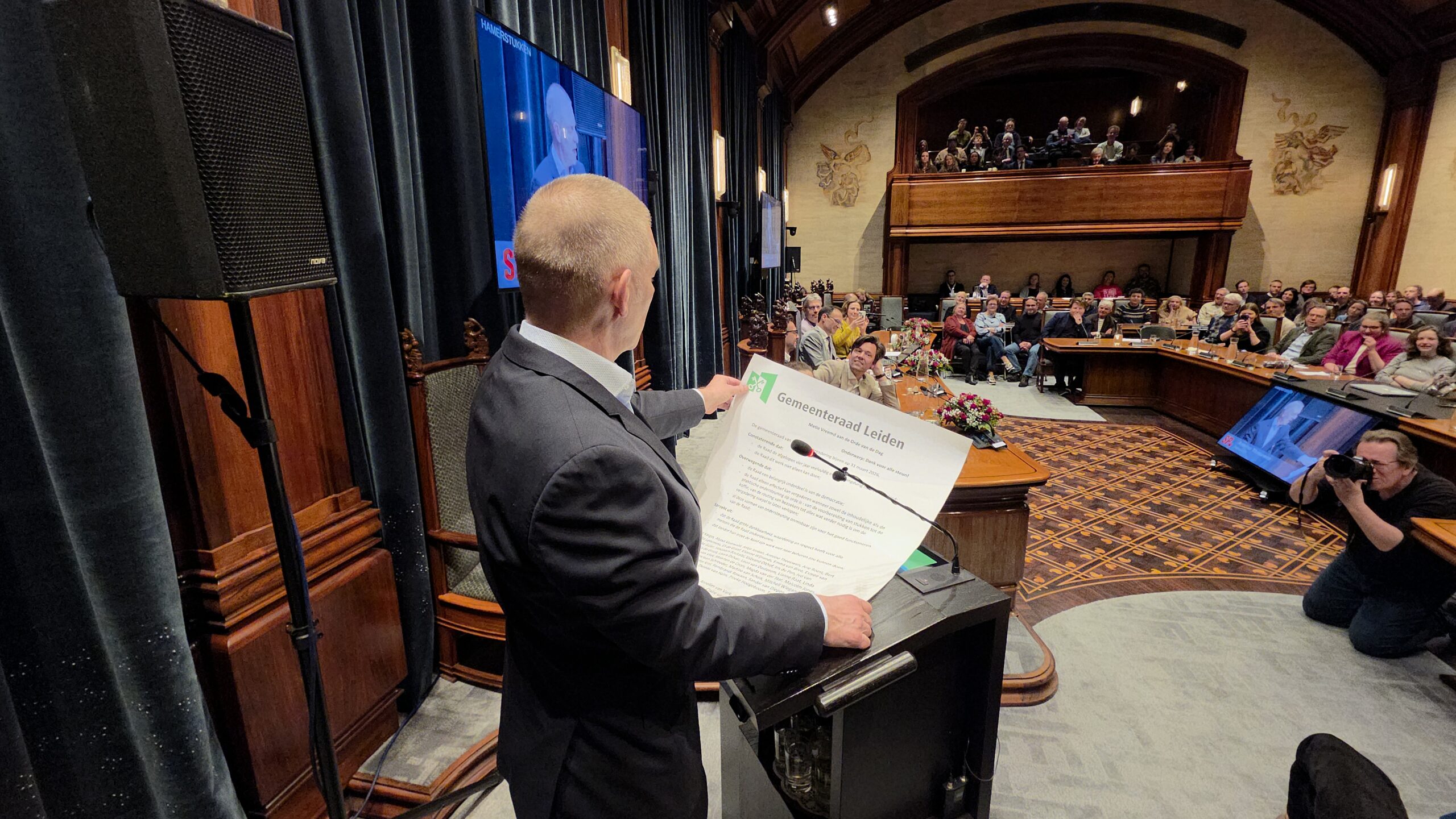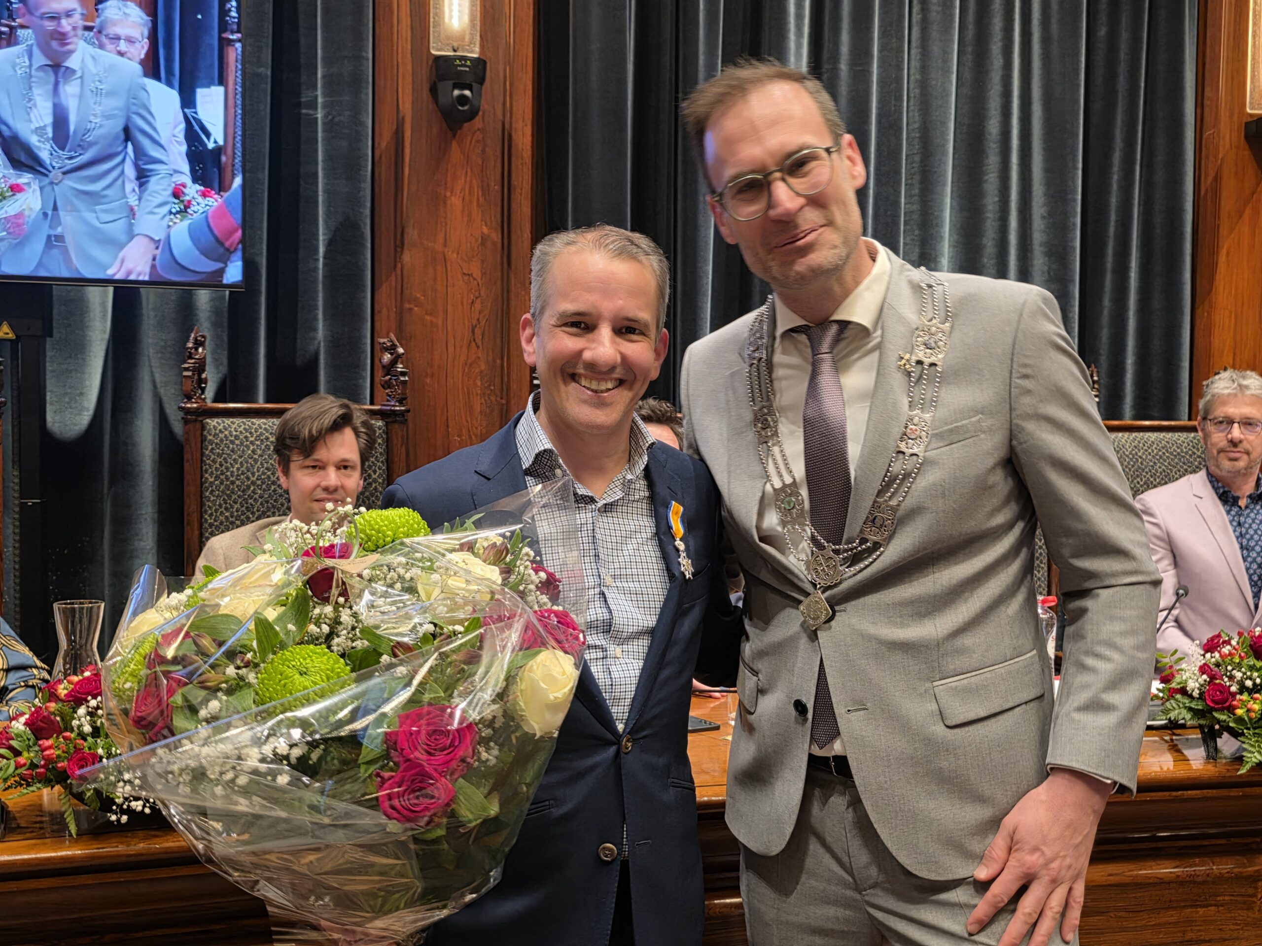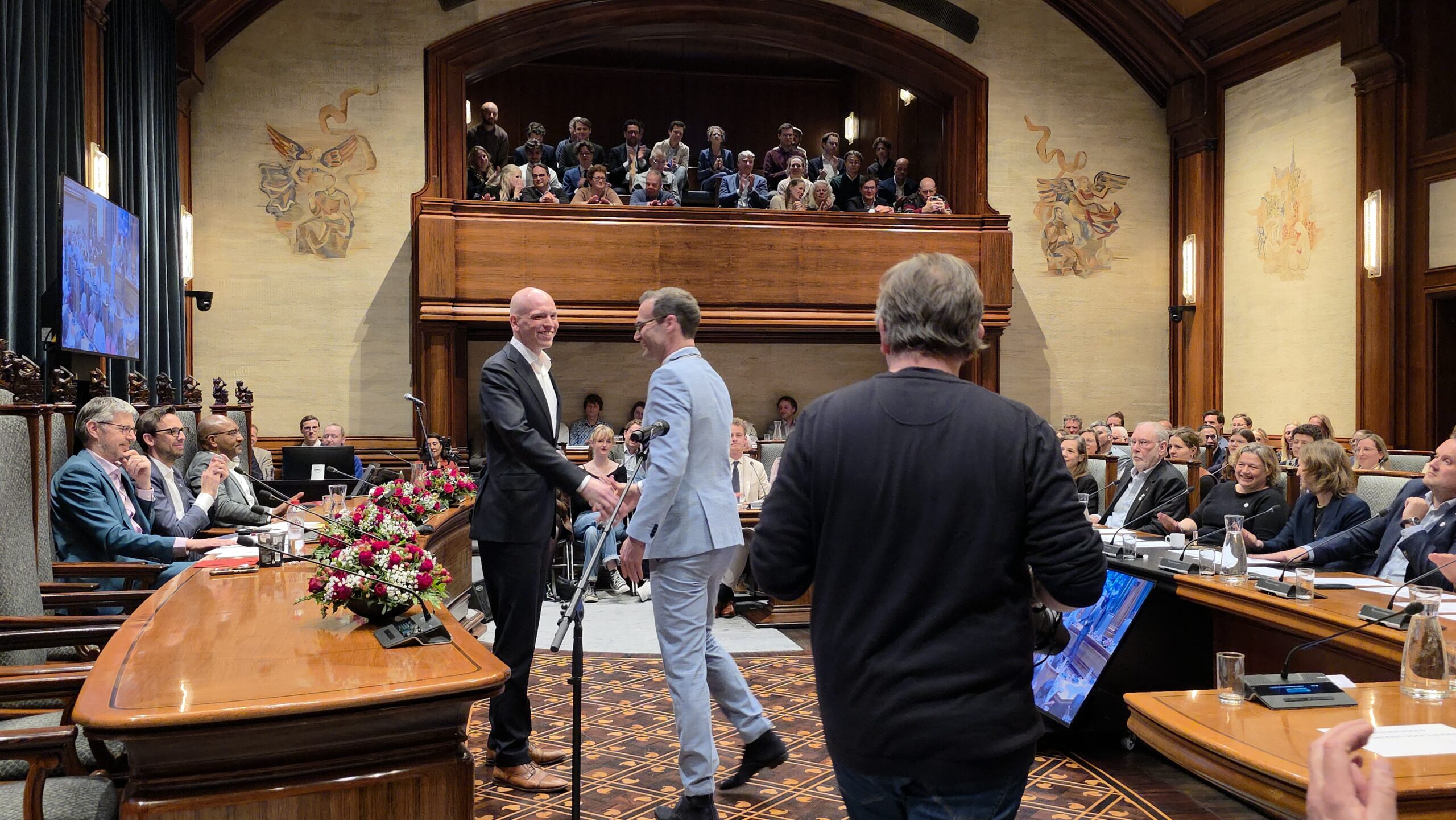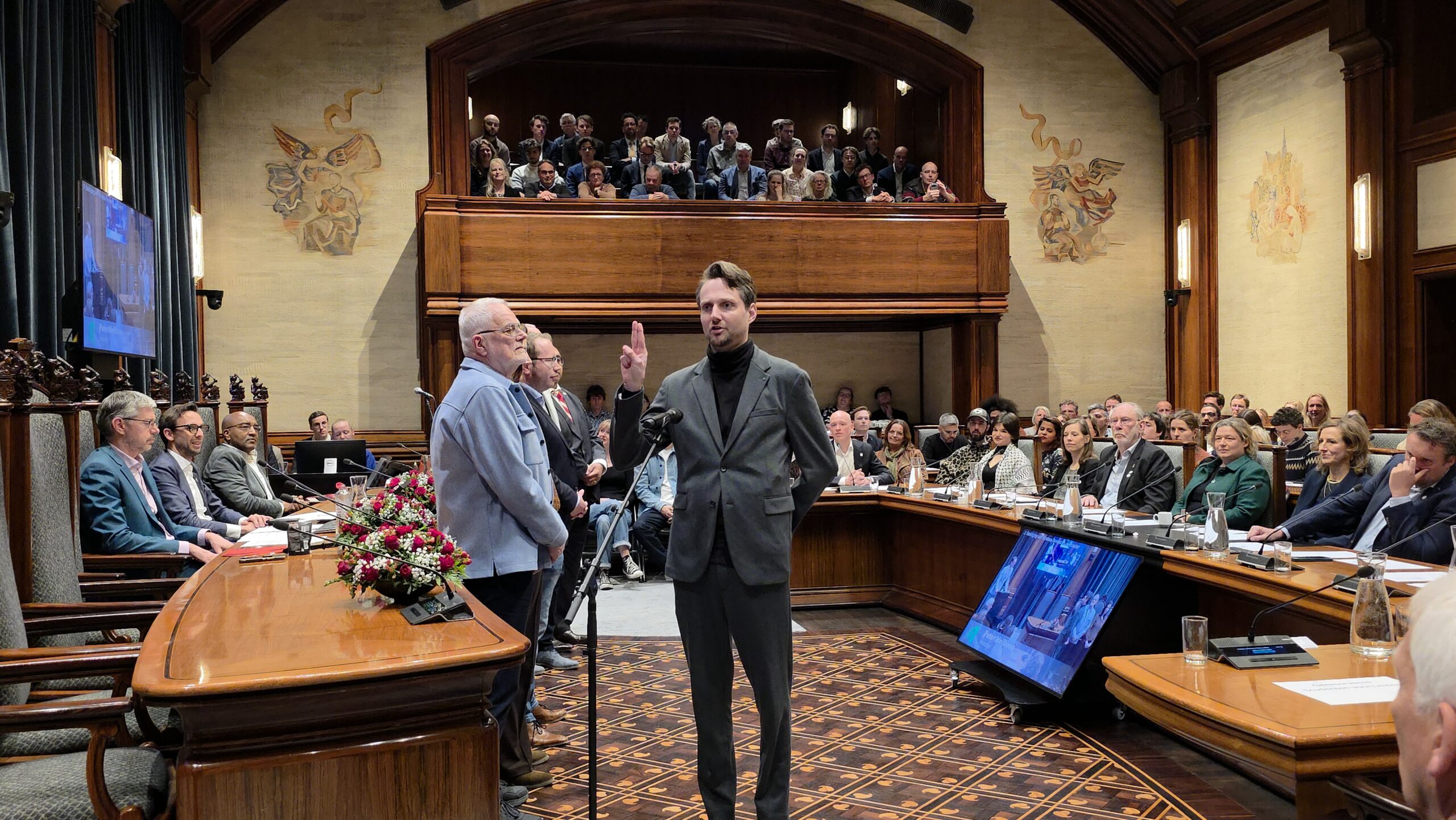 Twee avonden stond de raadzaal van het stadhuis in Leiden in het teken van afscheid nemen en verwelkomen. Woensdagavond namen maar liefst 27 raadsleden afscheid en donderdag werden alle 39 leden van de nieuwe gemeenteraad beëdigd.