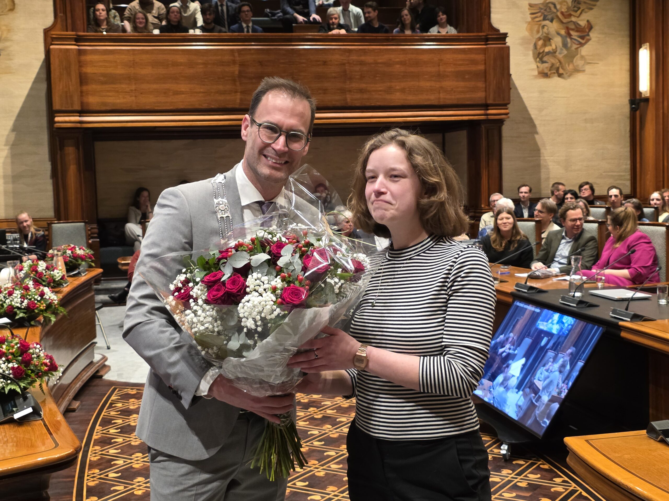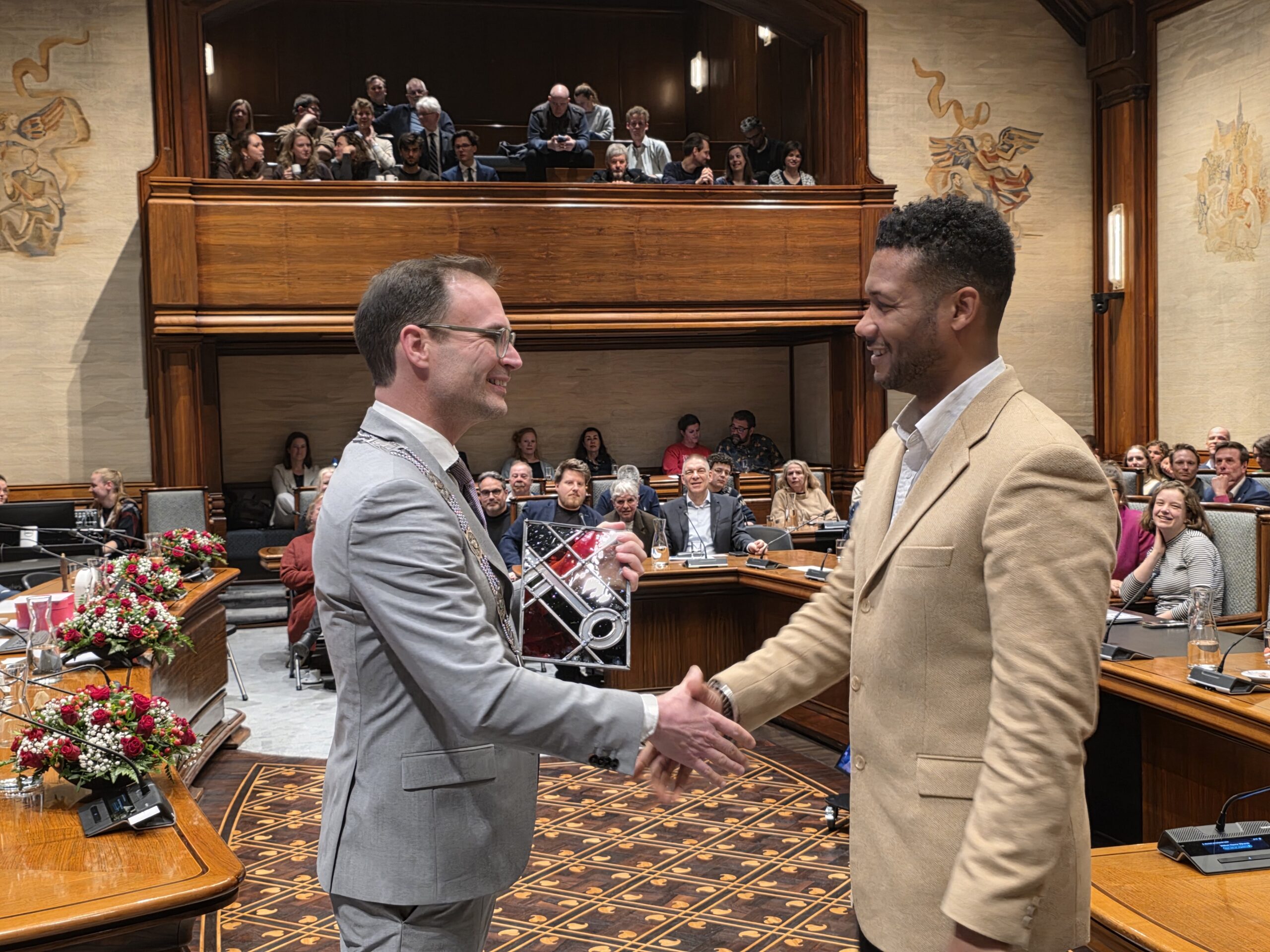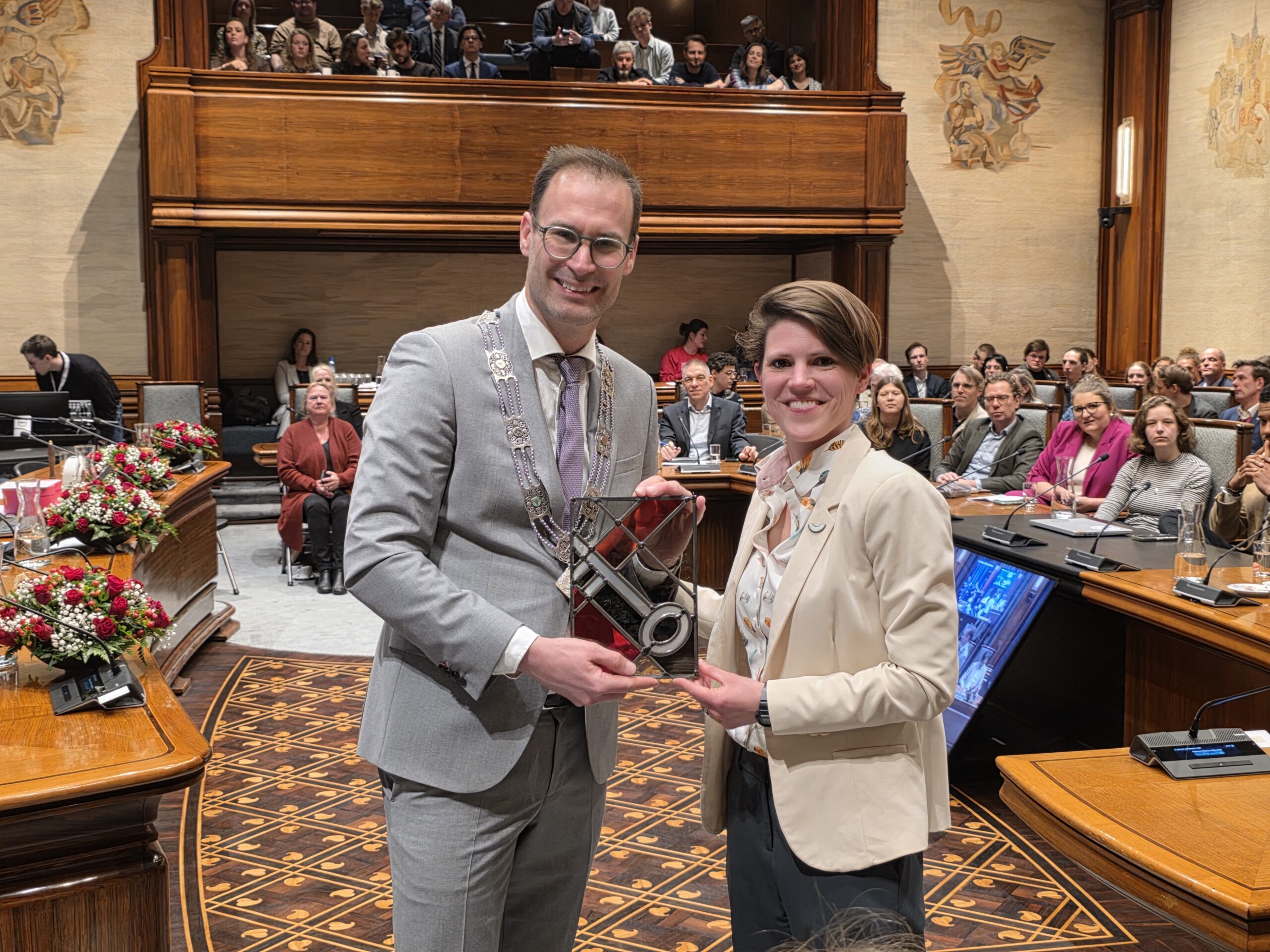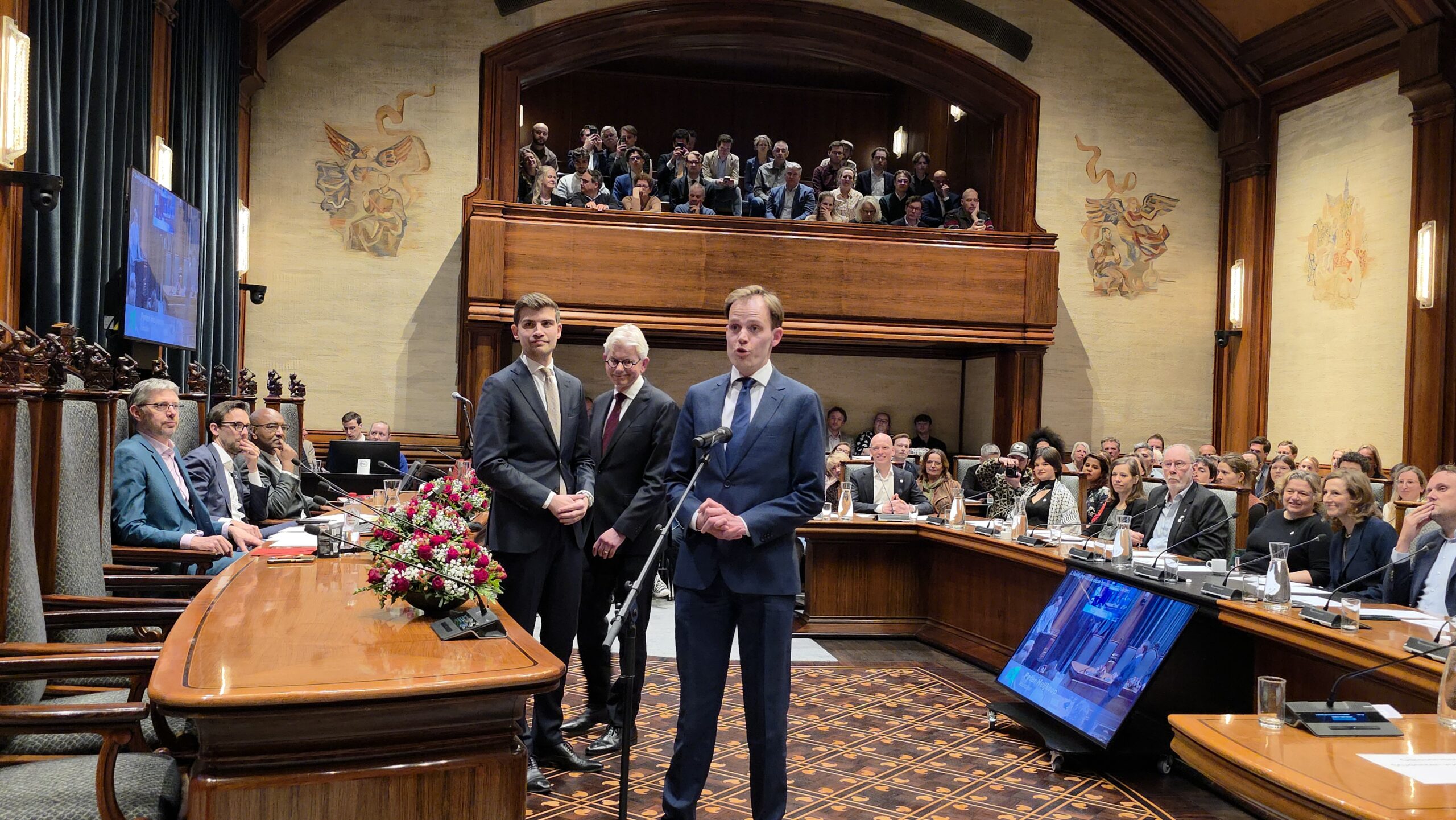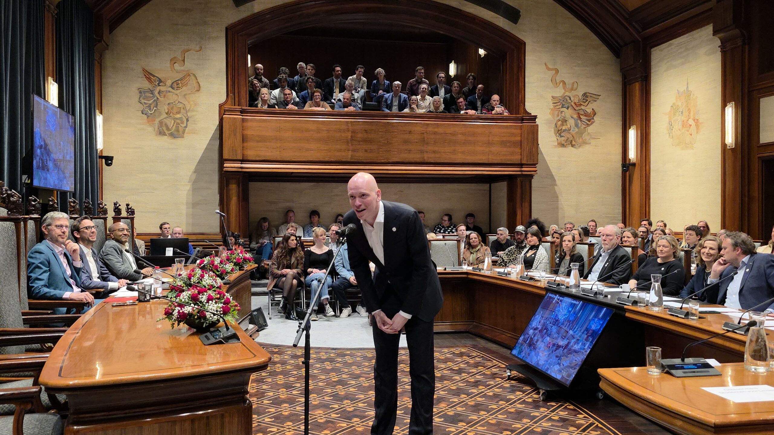 Twee avonden stond de raadzaal van het stadhuis in Leiden in het teken van afscheid nemen en verwelkomen. Woensdagavond namen maar liefst 27 raadsleden afscheid en donderdag werden alle 39 leden van de nieuwe gemeenteraad beëdigd.