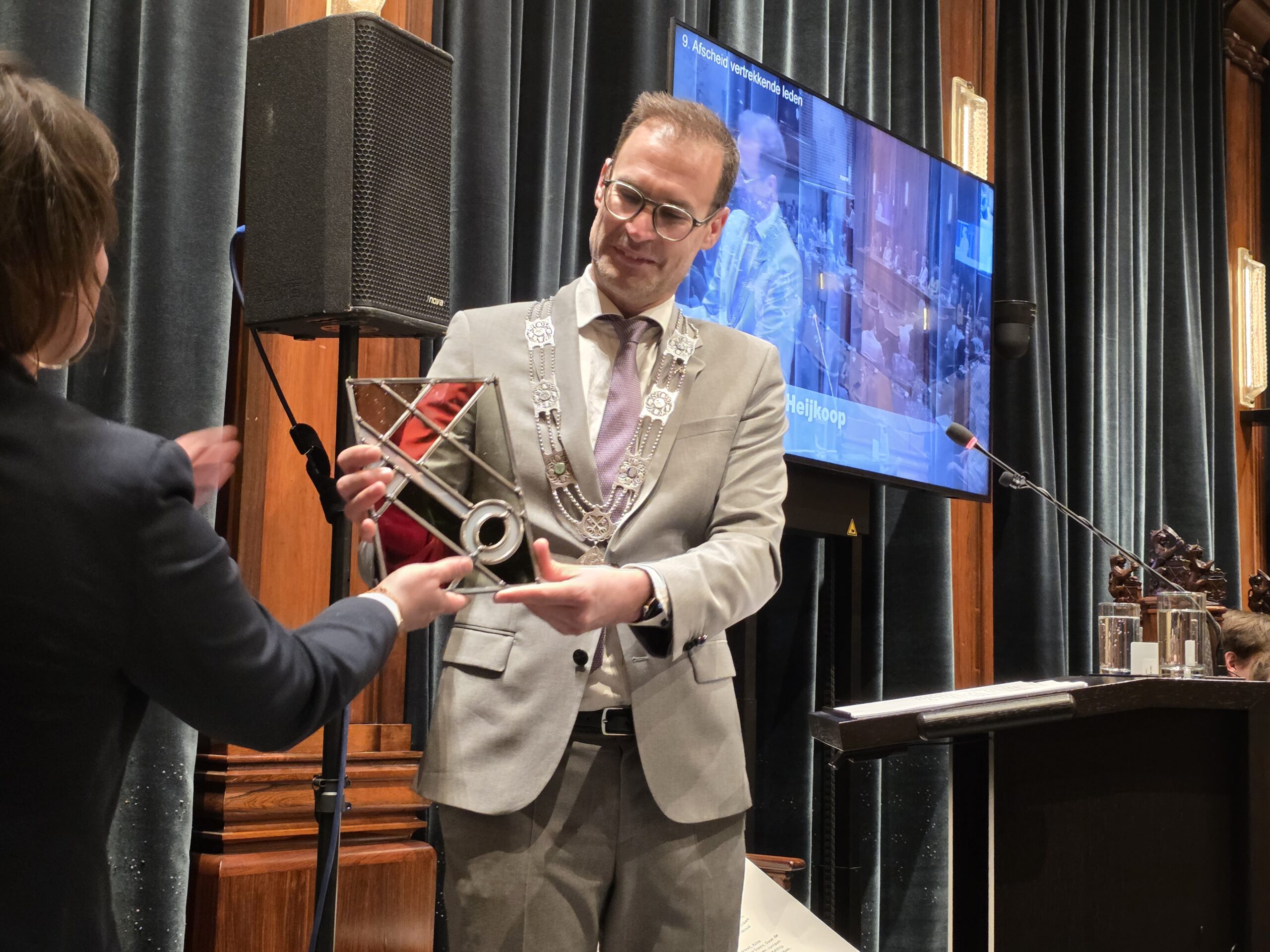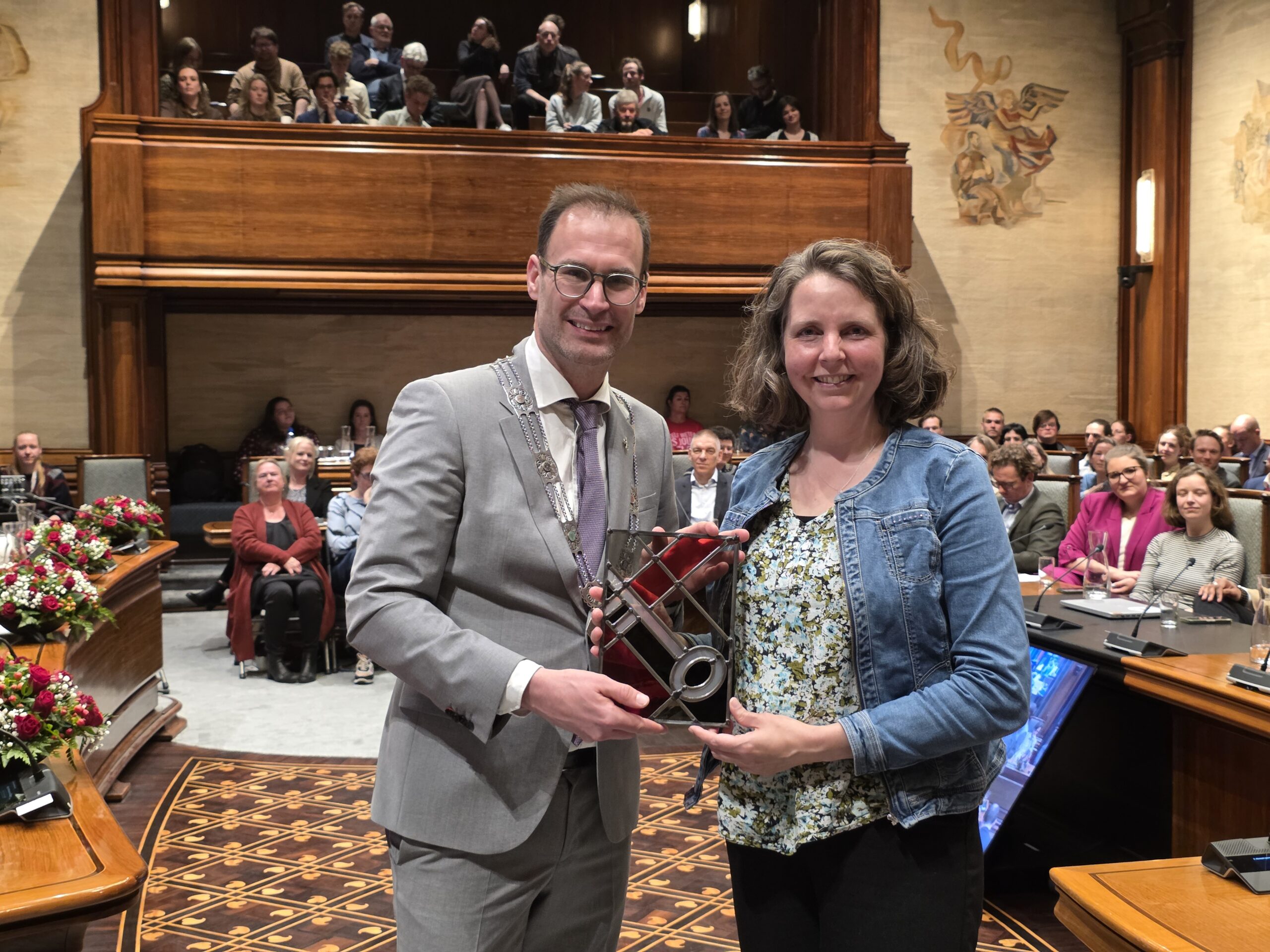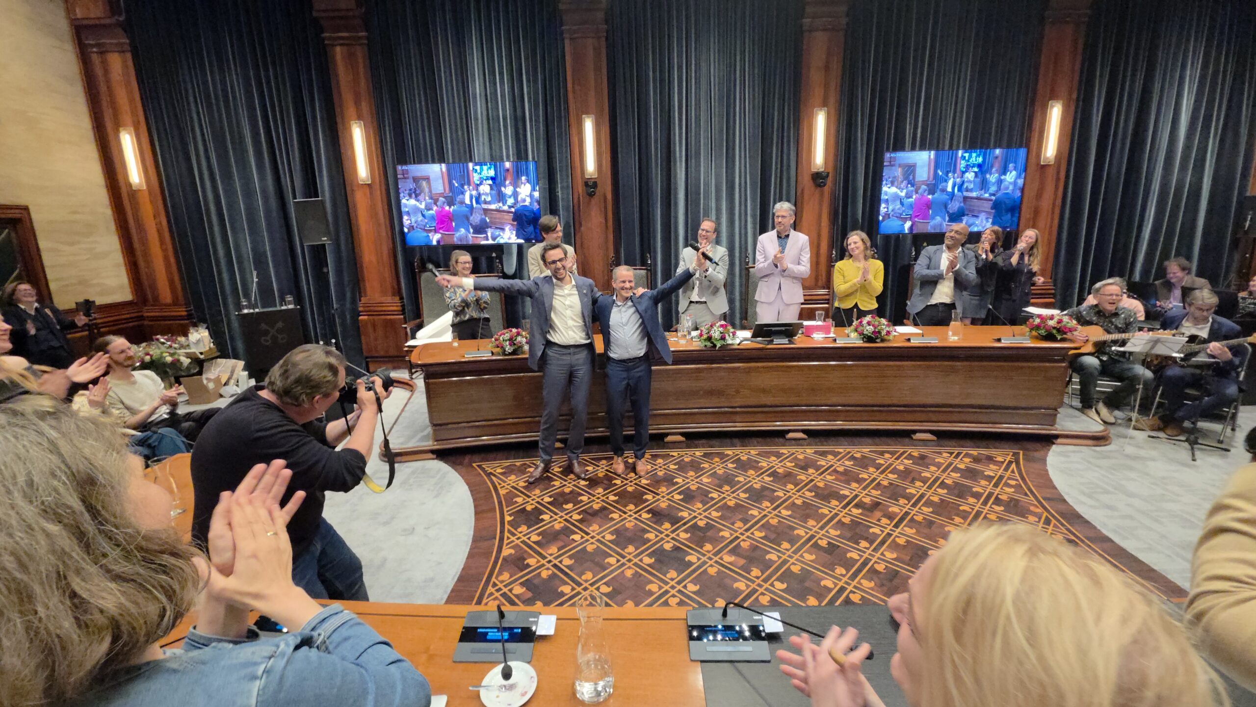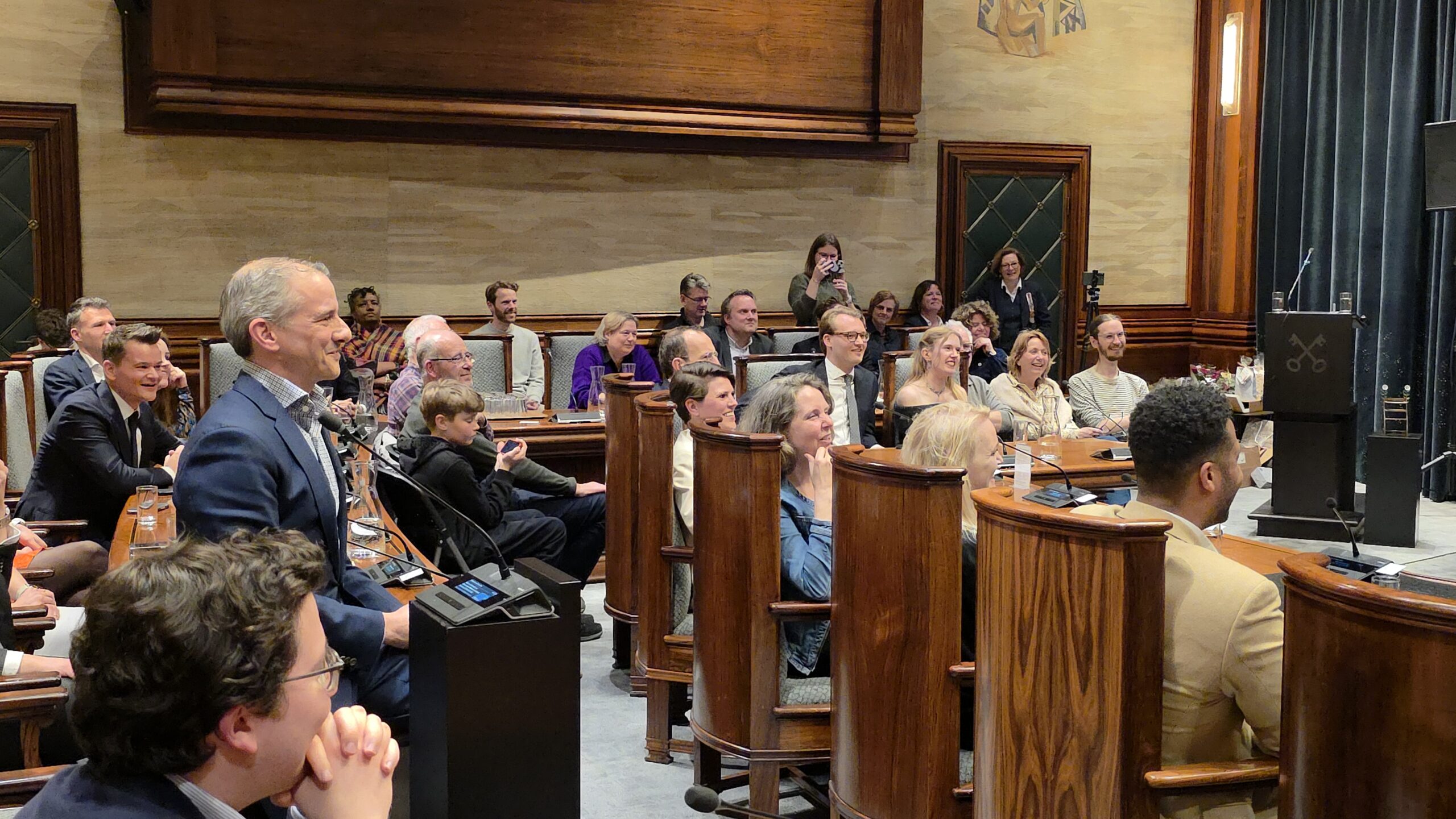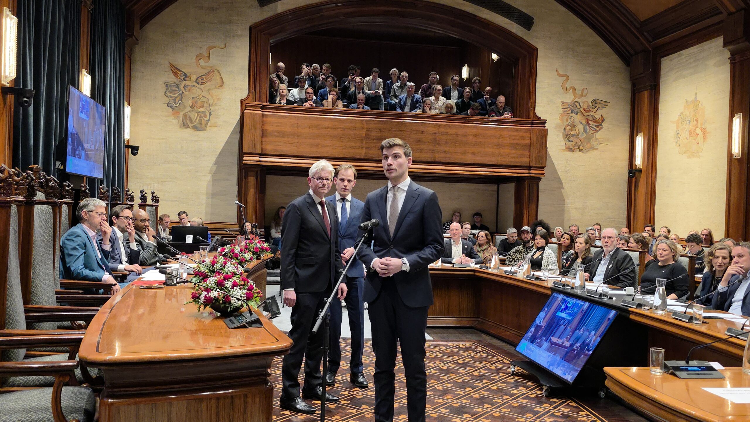 Twee avonden stond de raadzaal van het stadhuis in Leiden in het teken van afscheid nemen en verwelkomen. Woensdagavond namen maar liefst 27 raadsleden afscheid en donderdag werden alle 39 leden van de nieuwe gemeenteraad beëdigd.