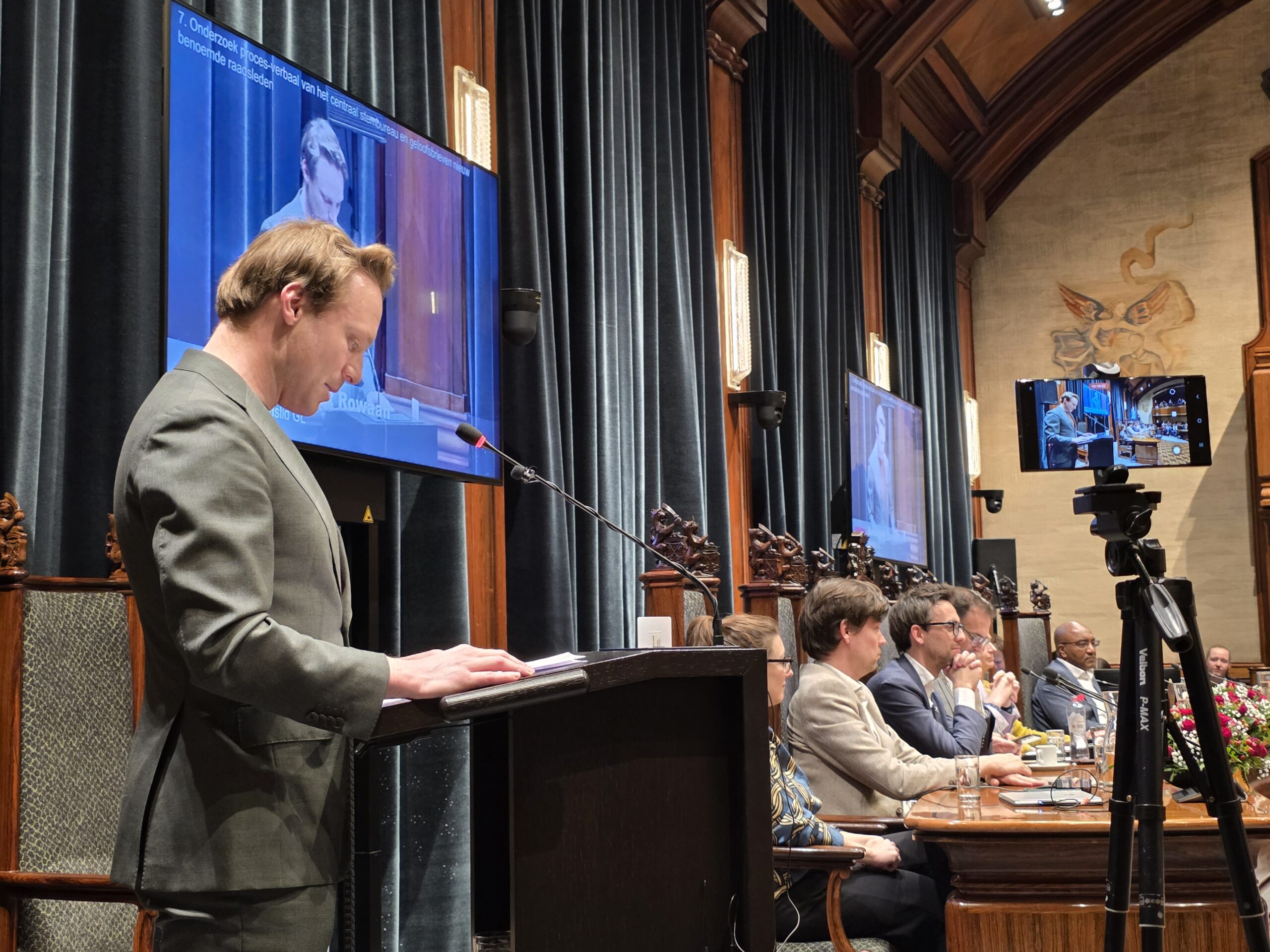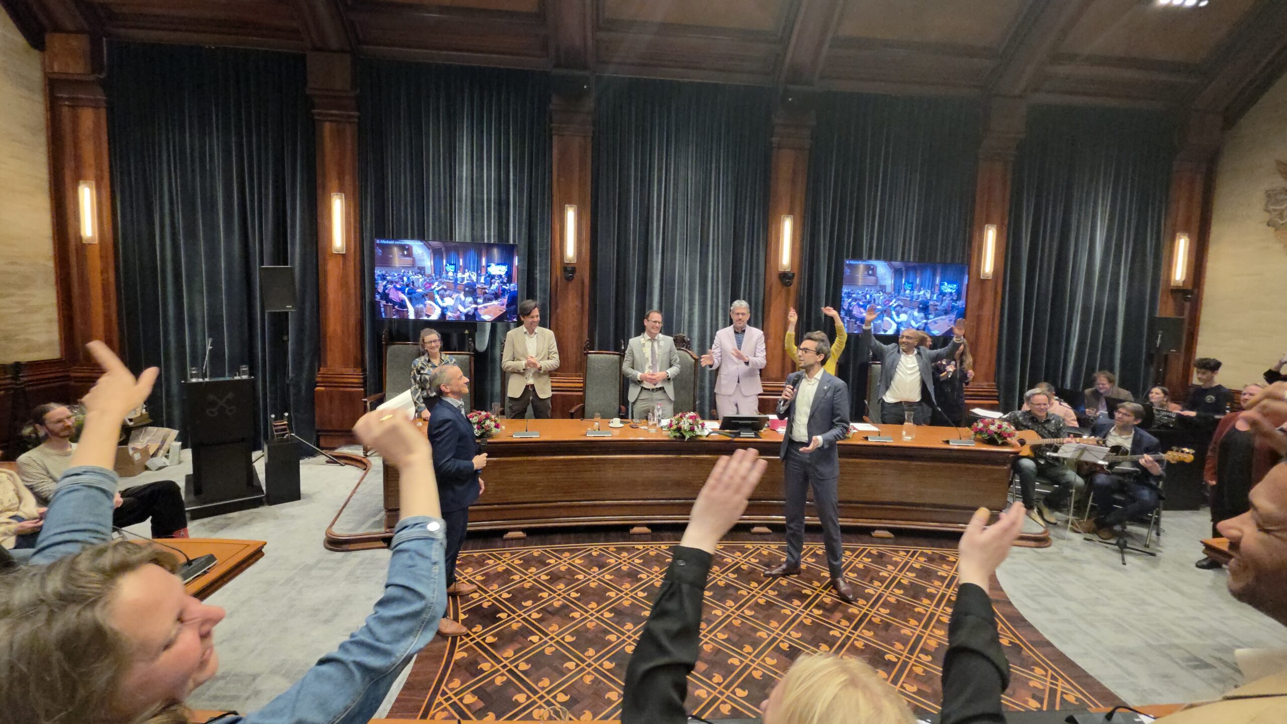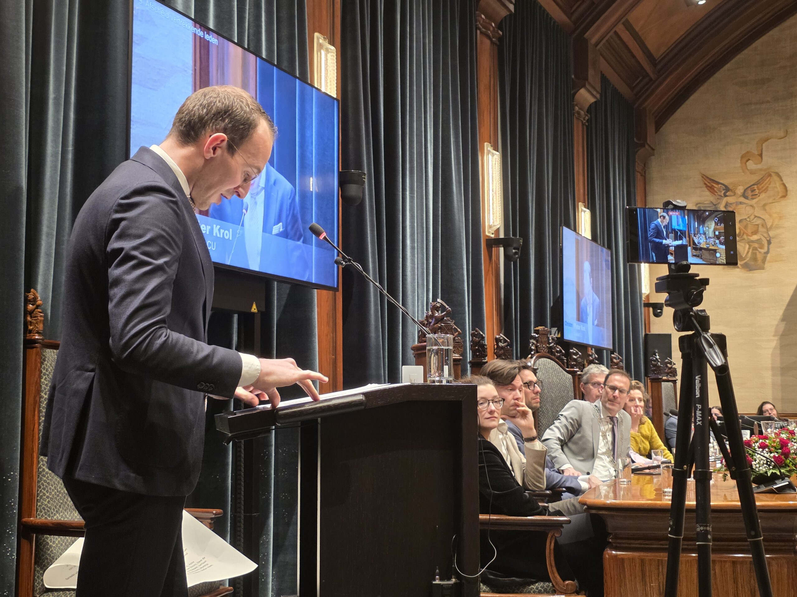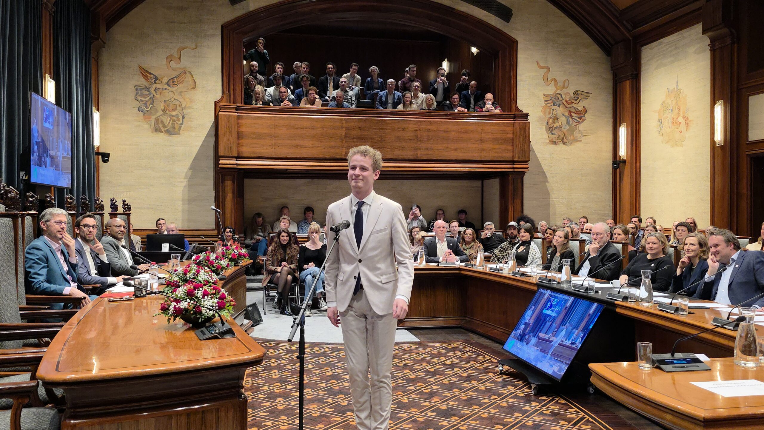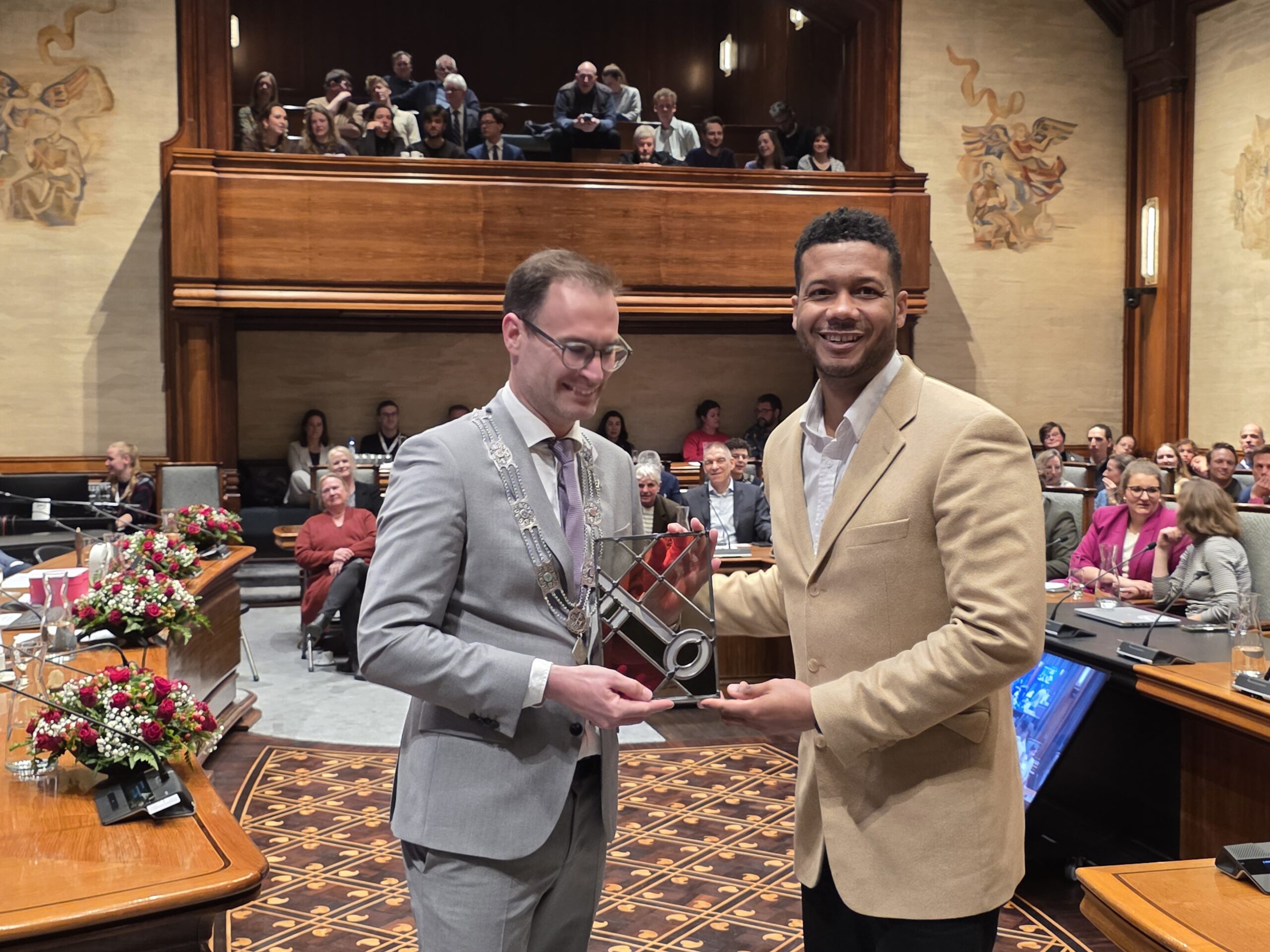 Twee avonden stond de raadzaal van het stadhuis in Leiden in het teken van afscheid nemen en verwelkomen. Woensdagavond namen maar liefst 27 raadsleden afscheid en donderdag werden alle 39 leden van de nieuwe gemeenteraad beëdigd.