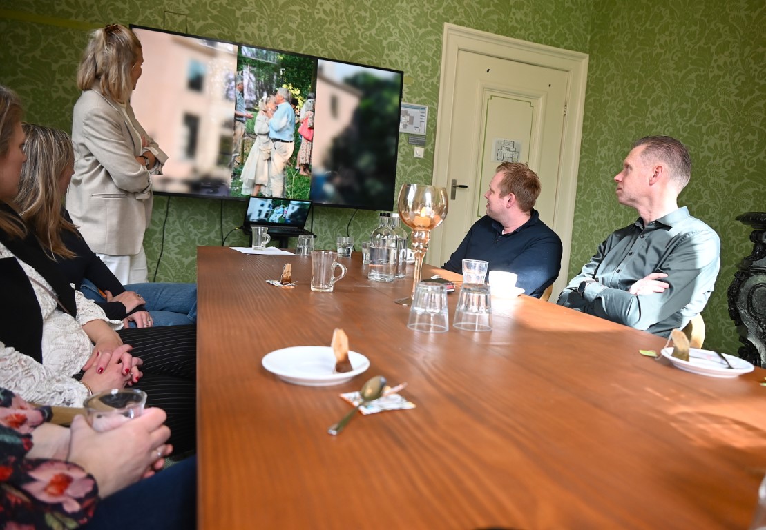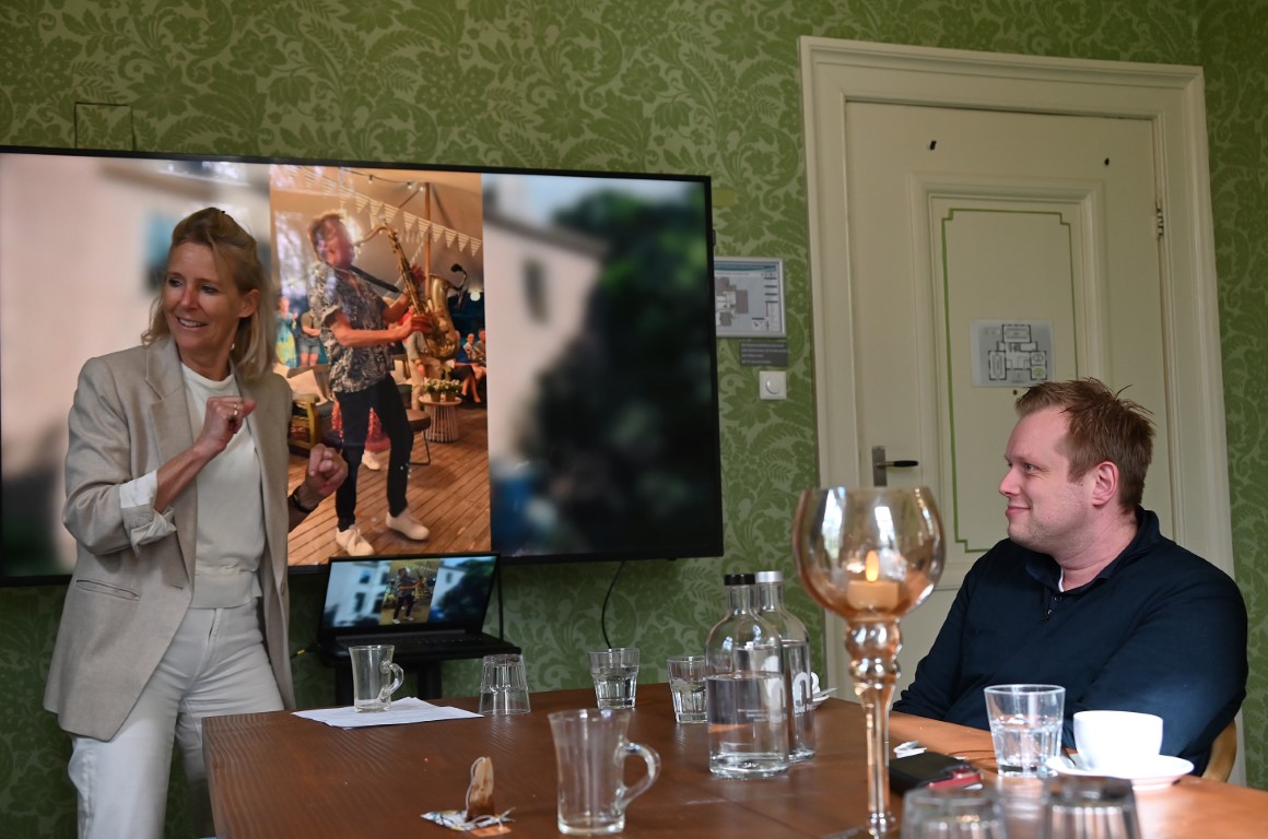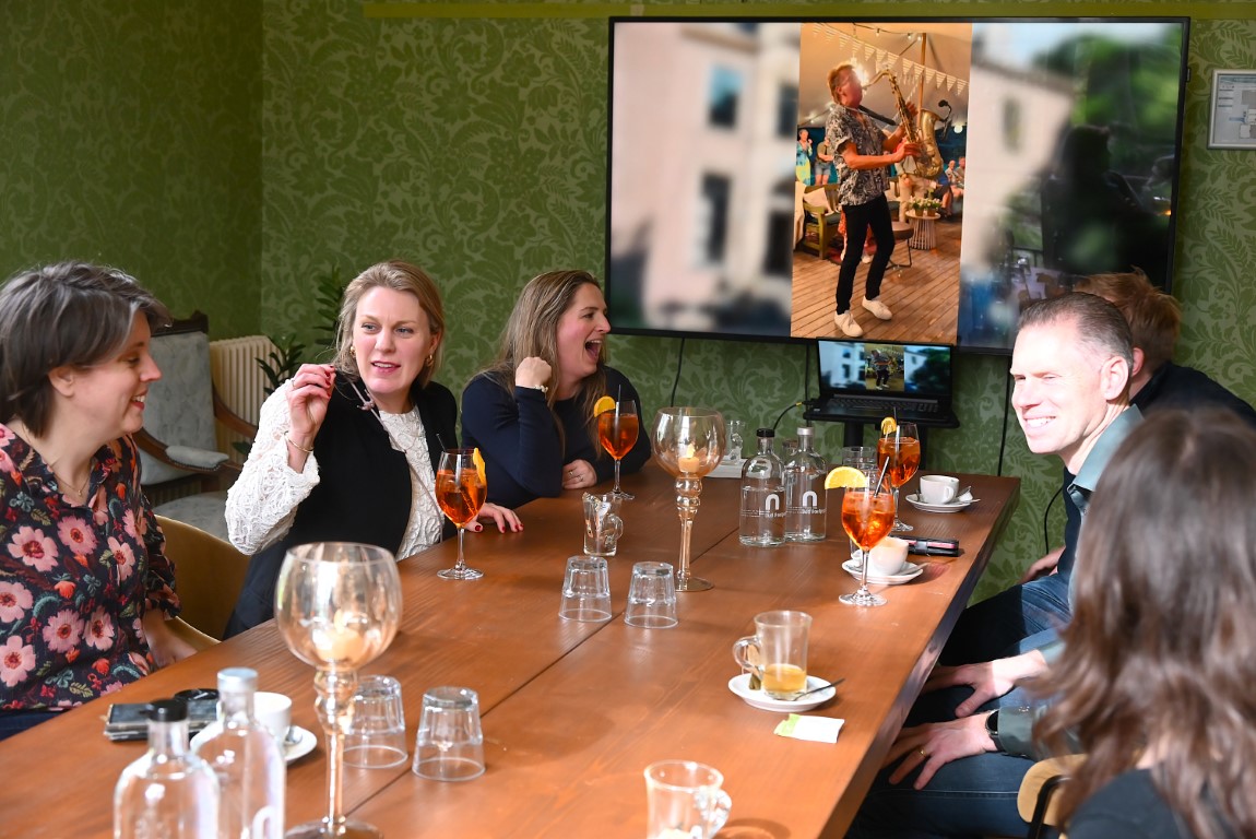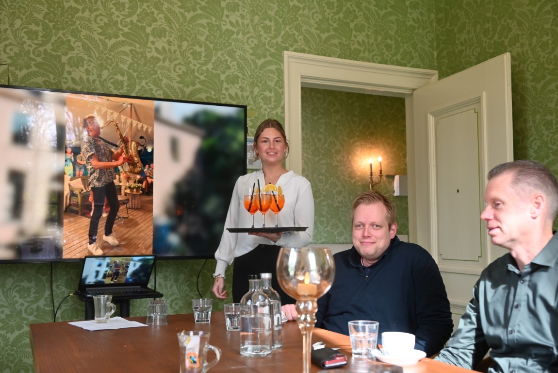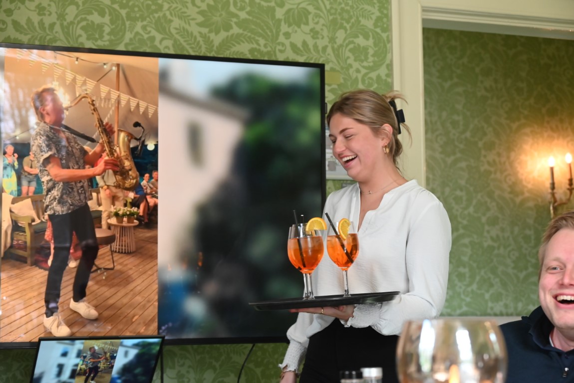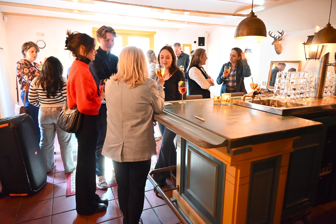 Na het maken van een groepsfoto op de trappen van het Kasteel werd in de kasteelbar geproost op een zonnige Midsummer Night 2026.