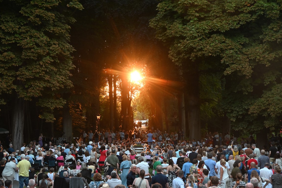 Op de tonen van ‘A Midsummer Night Dream van Mendelssohn, uitgevoerd door het Practicum Musicae Orkest, genoten het eerste jaar enkele honderden bezoekers van de ondergaande zon op de met bomen omzoomde oprijlaan. Na vier jaar is de avond uitgegroeid tot een evenement met meer dan duizend bezoekers die op stoeltjes of picknickkleedjes genieten van het concert en de muziek van de Wouter Kiers Band.
