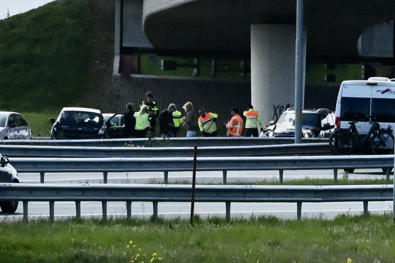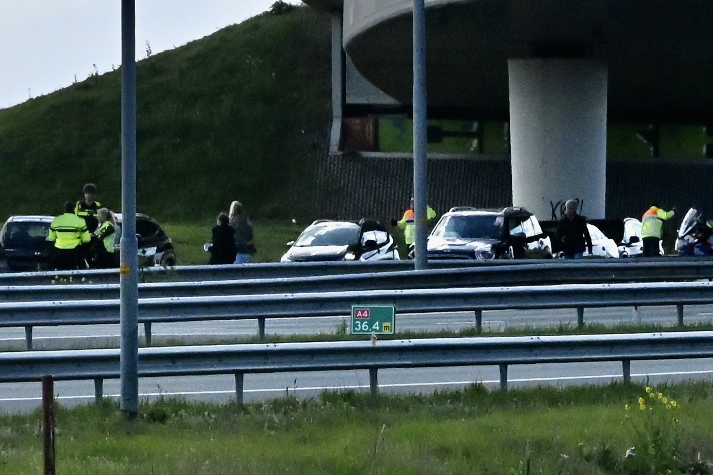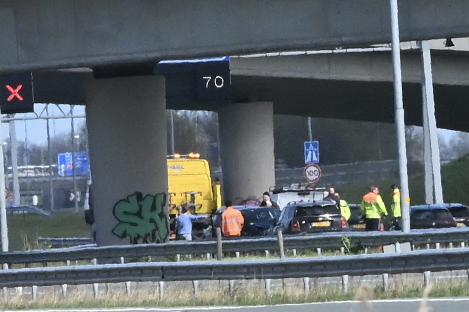 Meerdere voertuigen zijn zondagmiddag op elkaar gebotst op Rijksweg A4 richting Amsterdam. Het ongeluk gebeurde ter hoogte van Leiden.