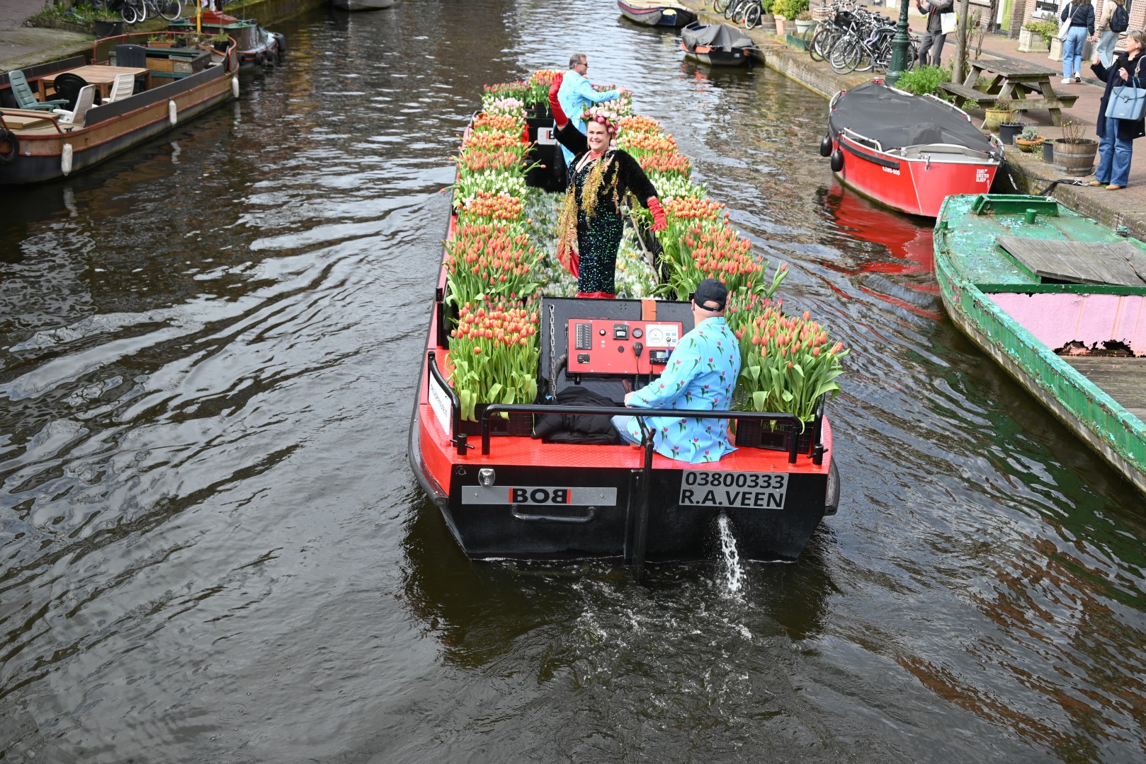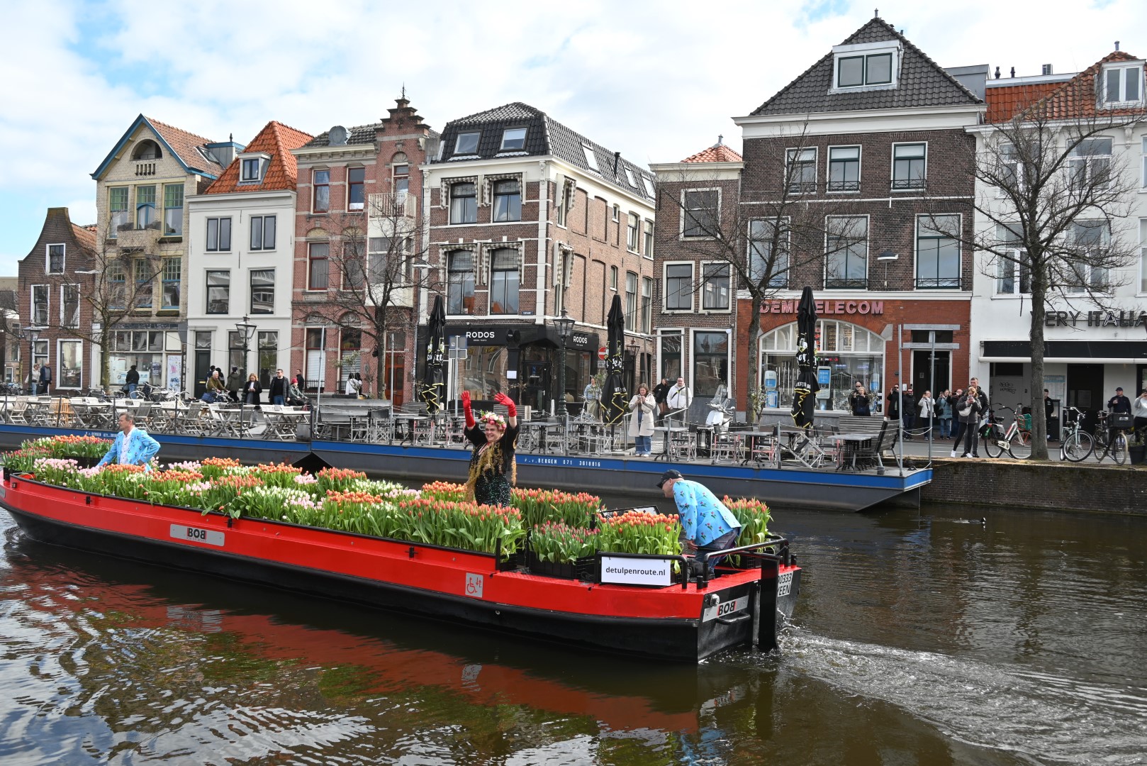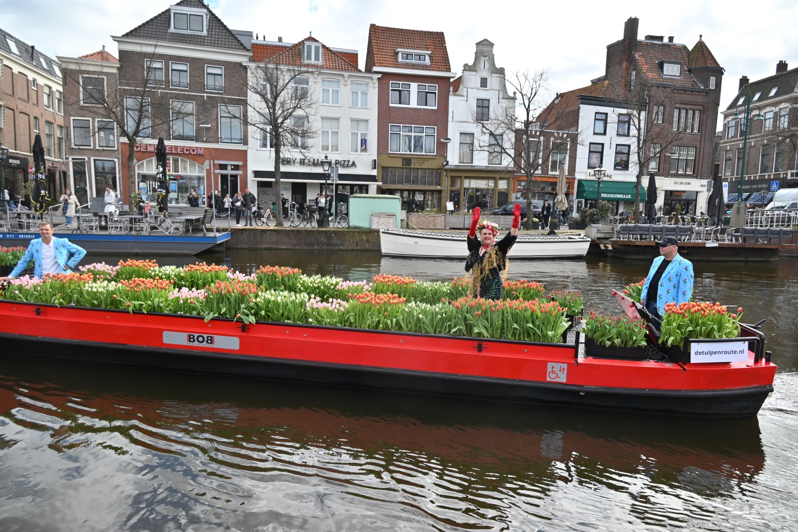 Deze zaterdag werden bezoekers van het Leidse centrum aangenaam verrast met een bosje tulpen uit Roelofarendsveen. Ruim 25 procent van de Nederlandse tulpen wordt in Roelofarendsveen geteeld. Sinds 2018 vaart de Tulpenboot op de eerste zaterdag van april naar Leiden. Het idee was destijds afkomstig van John Willemsen en Joost Wesselman, voor het vervoer sloot Bob Hoogenboom zich aan om met zijn rondvaartboot ‘Bob On Board’ de tulpen te varen.