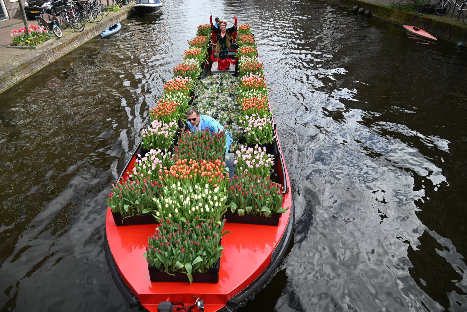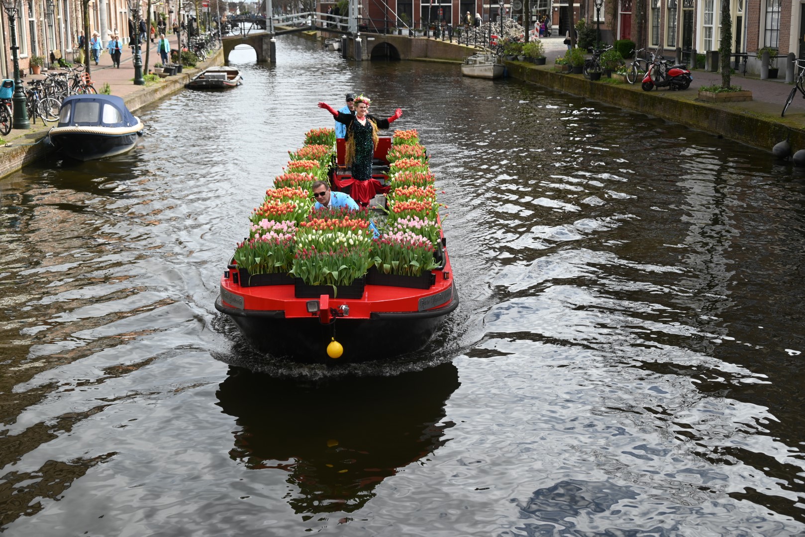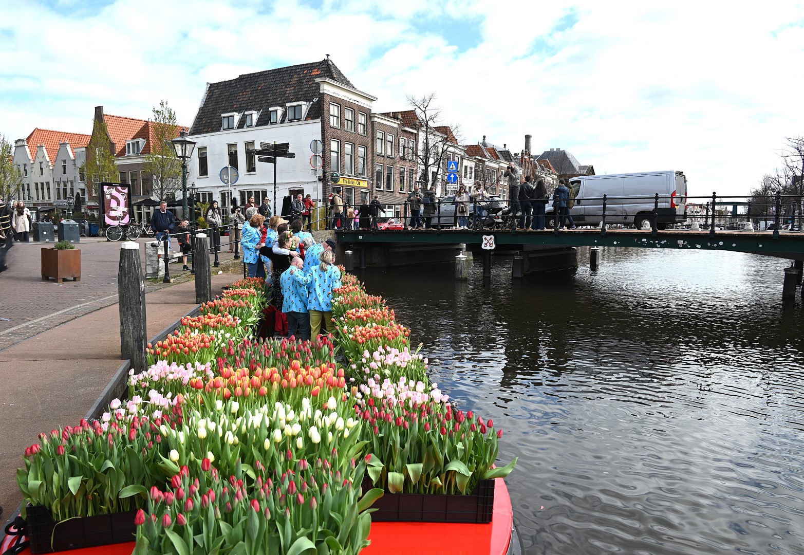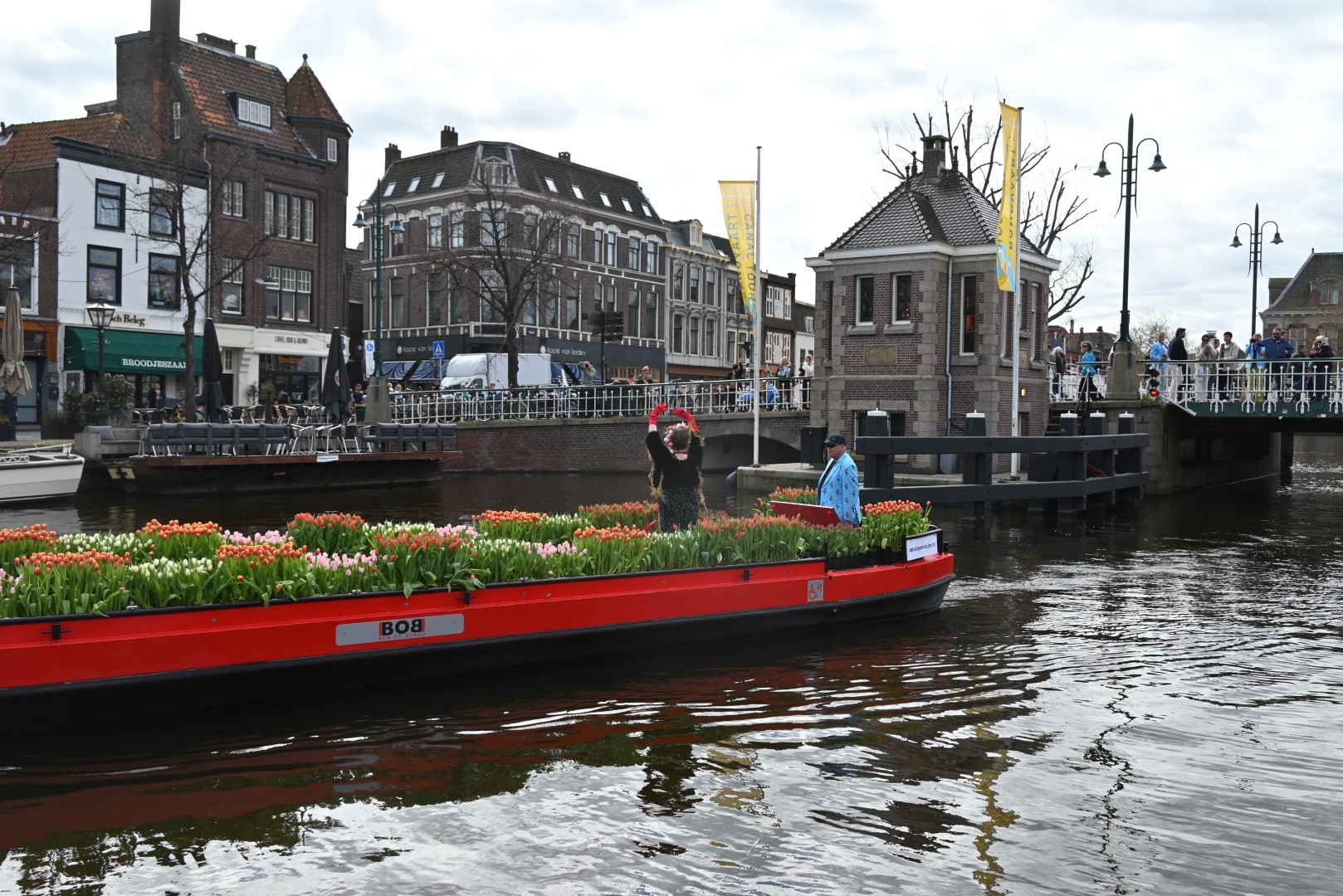 Deze zaterdag werden bezoekers van het Leidse centrum aangenaam verrast met een bosje tulpen uit Roelofarendsveen. Ruim 25 procent van de Nederlandse tulpen wordt in Roelofarendsveen geteeld. Sinds 2018 vaart de Tulpenboot op de eerste zaterdag van april naar Leiden. Het idee was destijds afkomstig van John Willemsen en Joost Wesselman, voor het vervoer sloot Bob Hoogenboom zich aan om met zijn rondvaartboot ‘Bob On Board’ de tulpen te varen.
