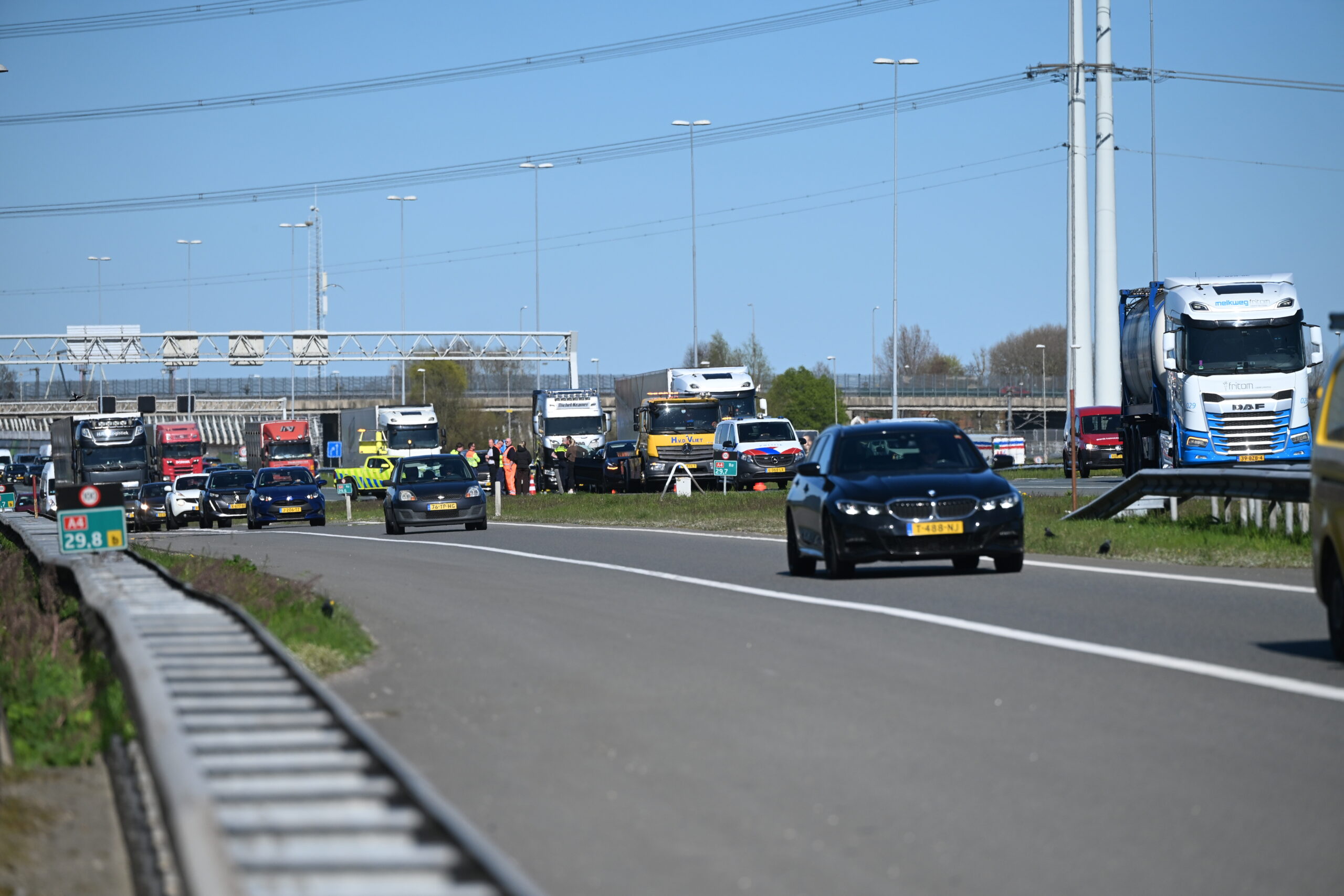 Veel ongemak voor automobilisten op de A4. Door meerdere ongelukken staat het verkeer rond Leiden helemaal vast.