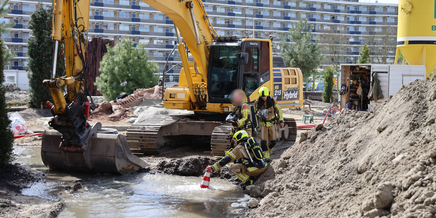 Bij werkzaamheden op een terrein bij Naturalis zijn woensdagmiddag een gas- en een waterleiding geraakt. Op de bouwplaats is een sterke gaslucht te ruiken en in een kuil gevuld met water ‘borrelt’ het.