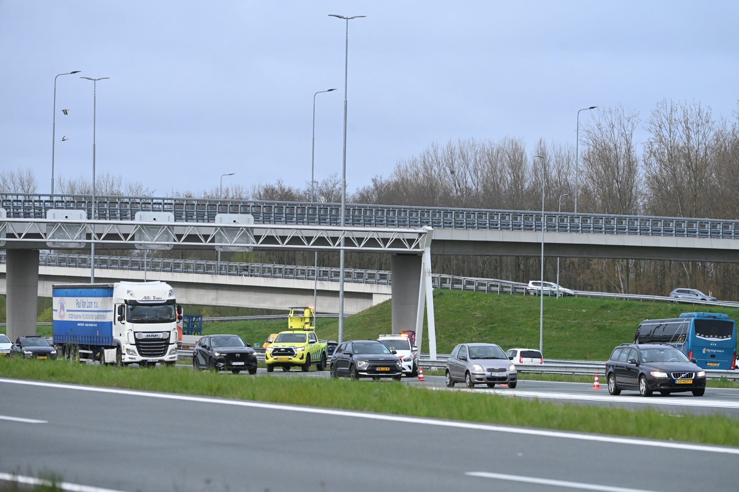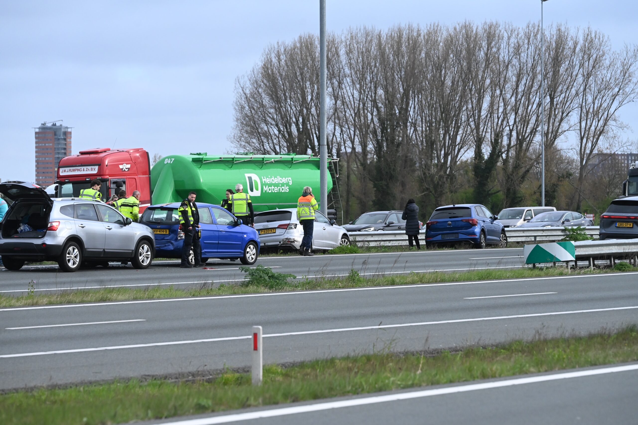 Voor zover bekend raakte niemand gewond. Het overige verkeer liep door het ongeval veel vertraging op.