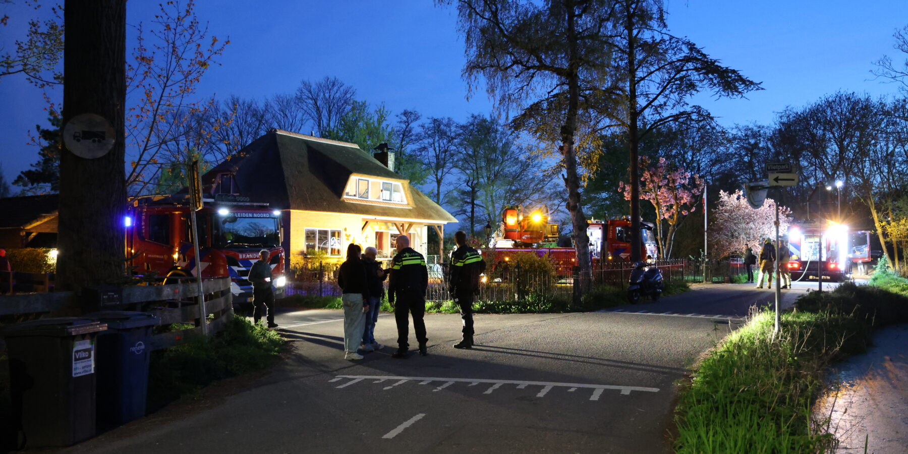 De brandweer is maandagavond rond 21.00 uur massaal uitgerukt voor een brand in de schoorsteen van een woning met rieten kap aan de Vlietweg in Leiden.