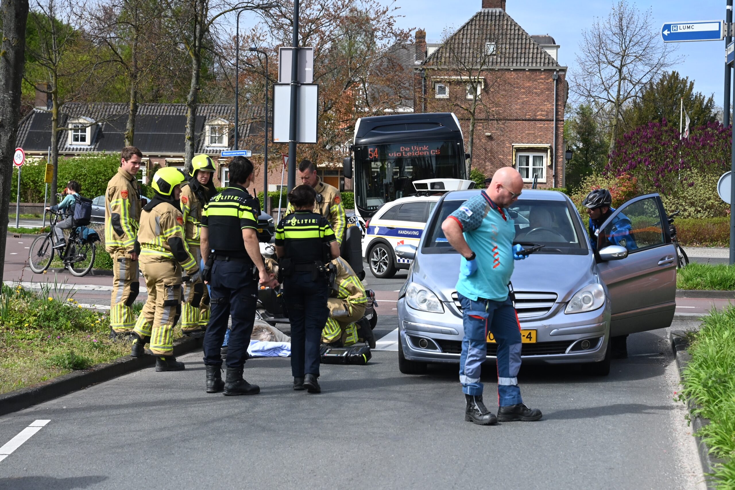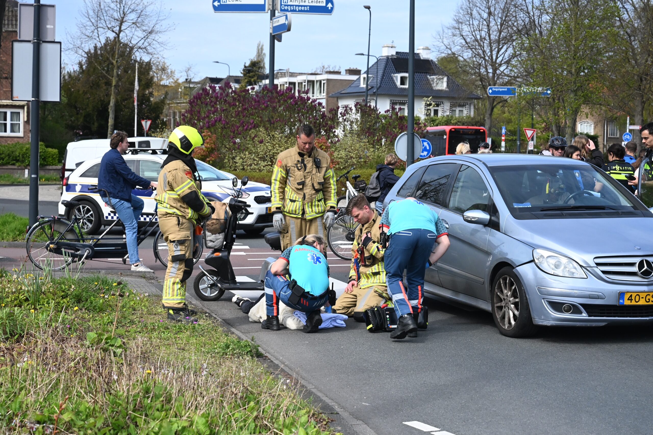 Vlak nadat woensdagmiddag rond 14.00 uur bij wegwerkzaamheden aan de Rijnsburgerweg een gaslek ontstond, ging het ook mis op de nabijgelegen Posthofrotonde. Terwijl de brandweer probeert het lek te dichten, werd daar een vrouw in een scootmobiel geschept door een auto.
