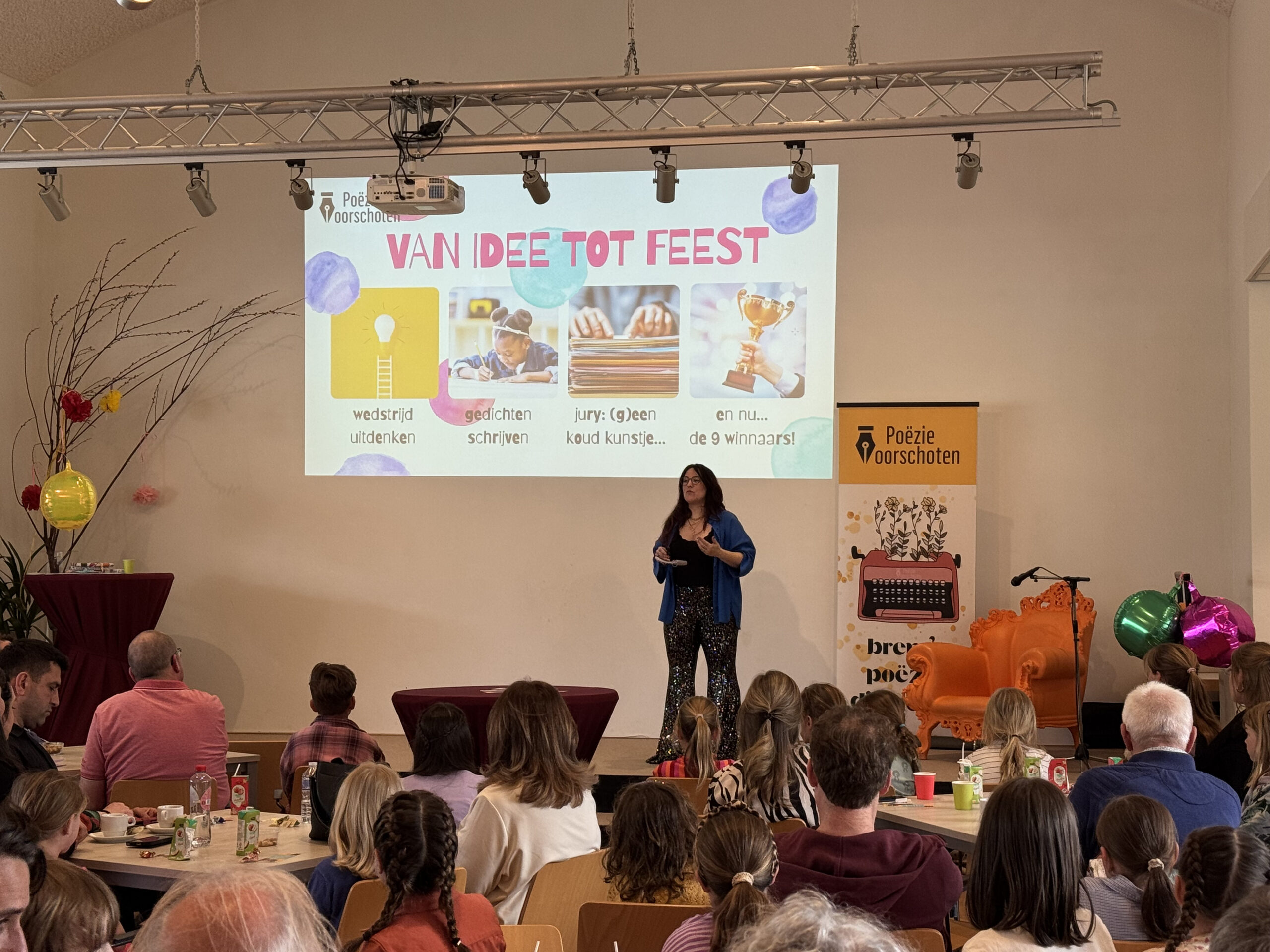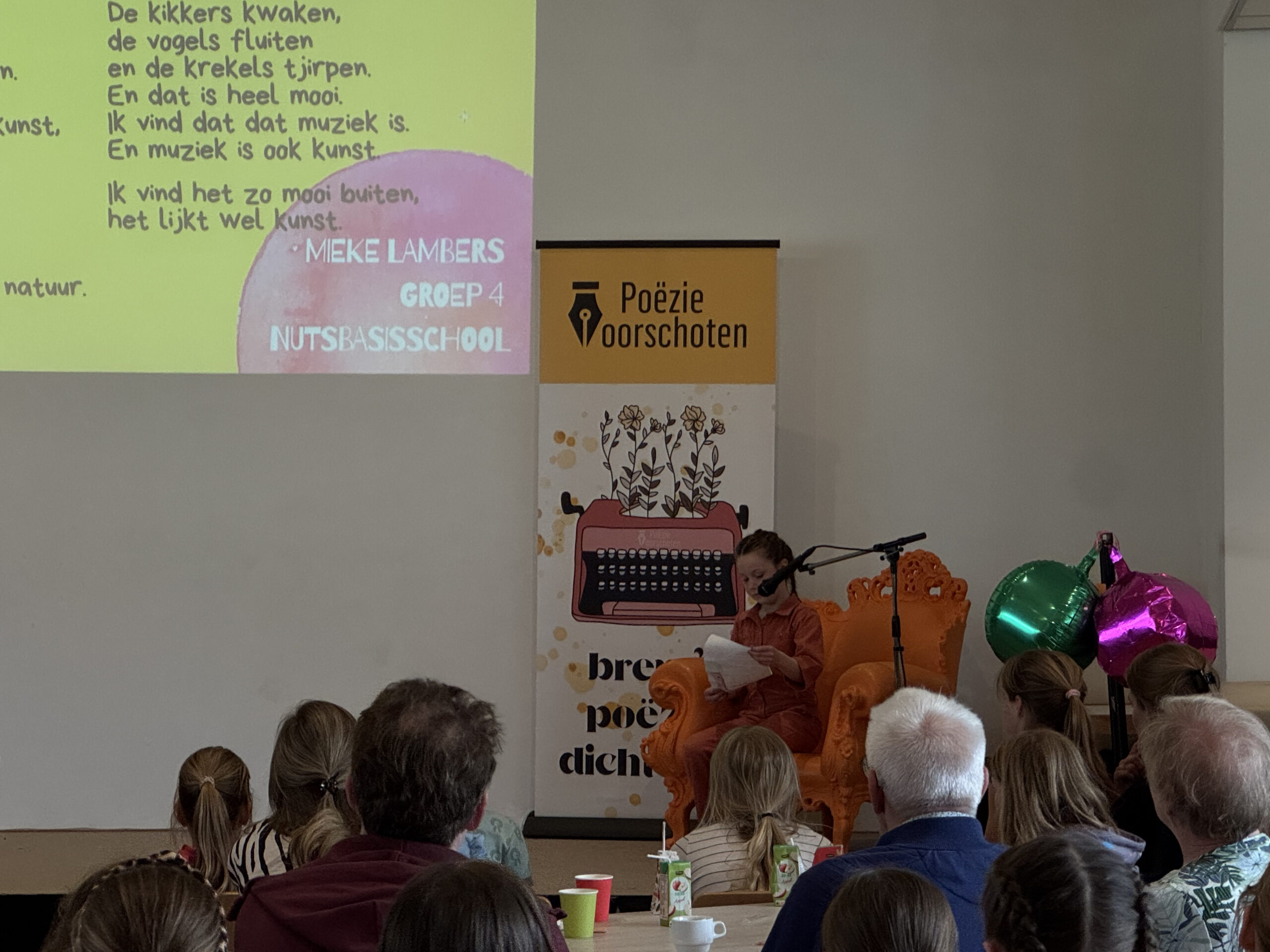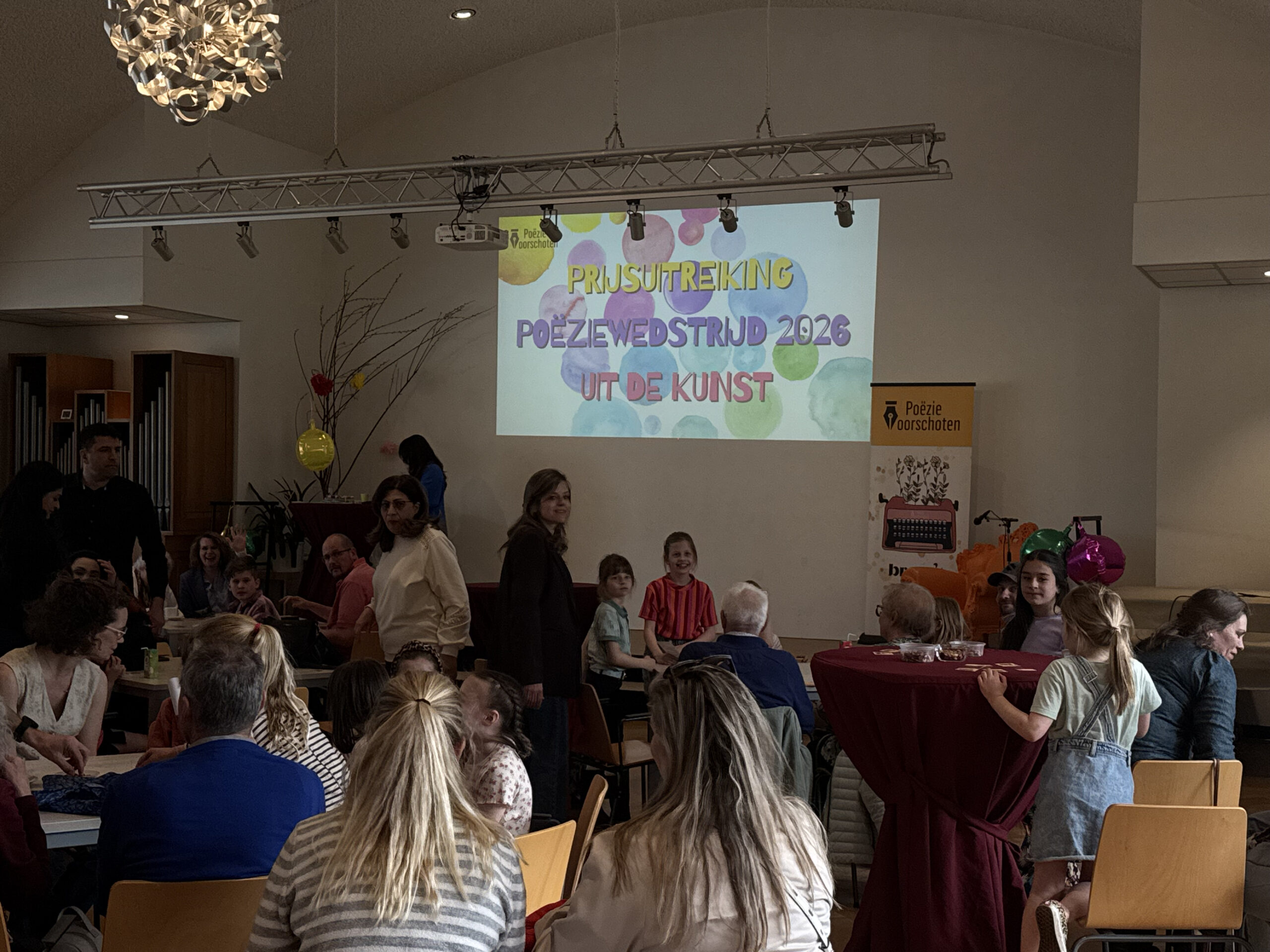 Het was dit jaar de tweede editie van Poëzie Voorschoten. Wat anders was dan vorig jaar is onder andere het thema. In 2025 was dat vrijheid. Dit keer was het onderwerp ‘Uit de Kunst’ en moesten de kinderen dus een gedicht schrijven over kunst.