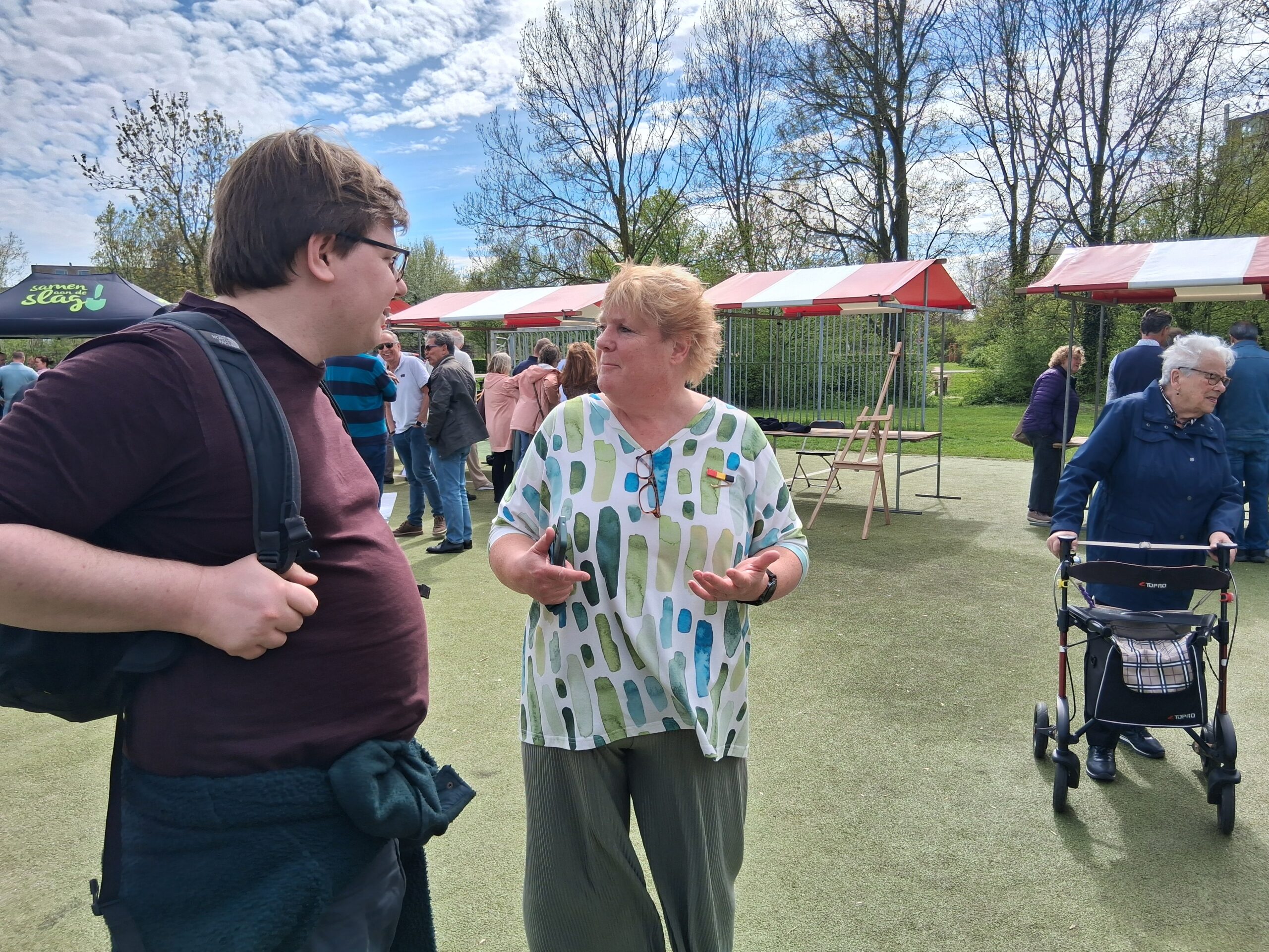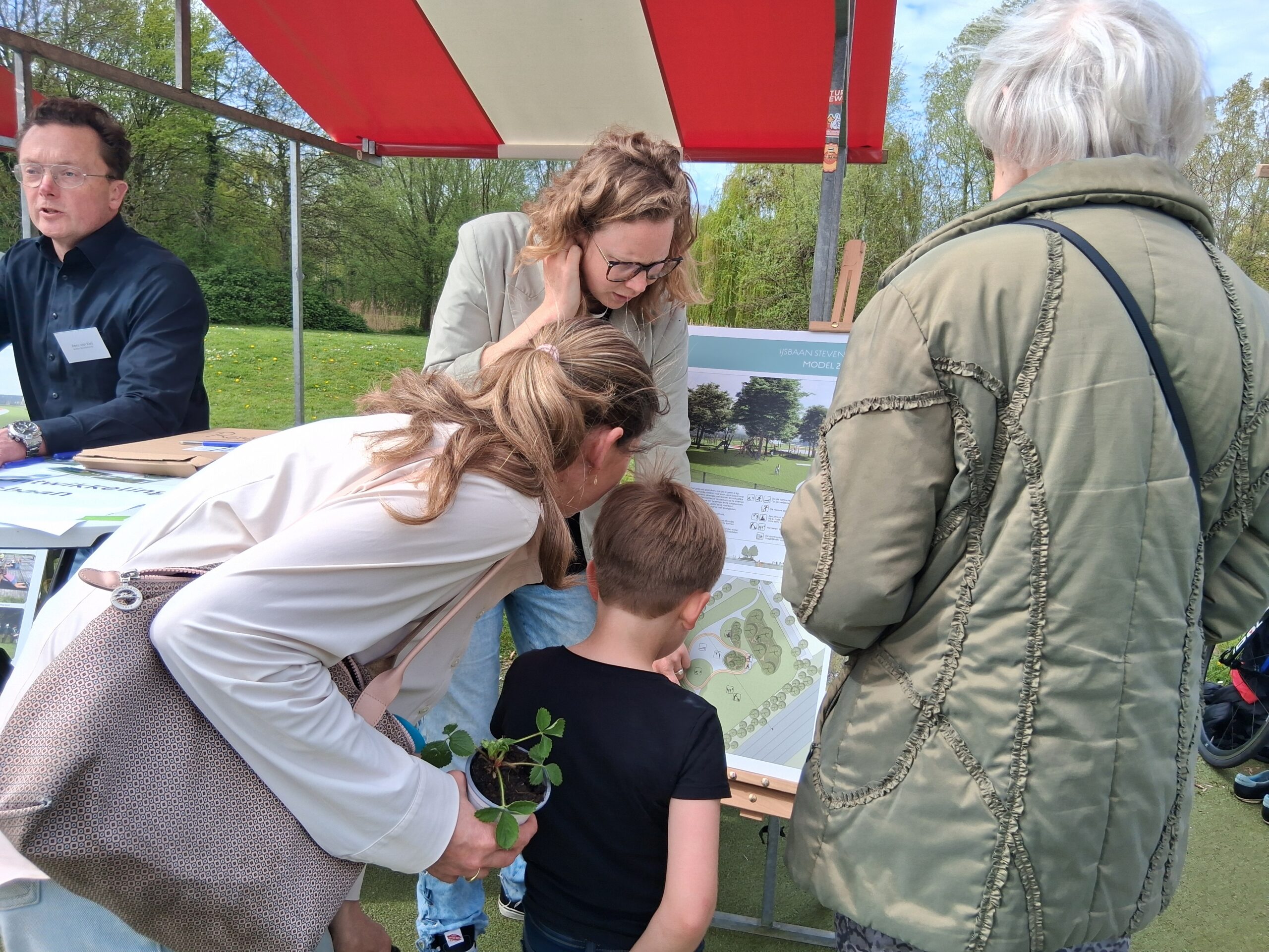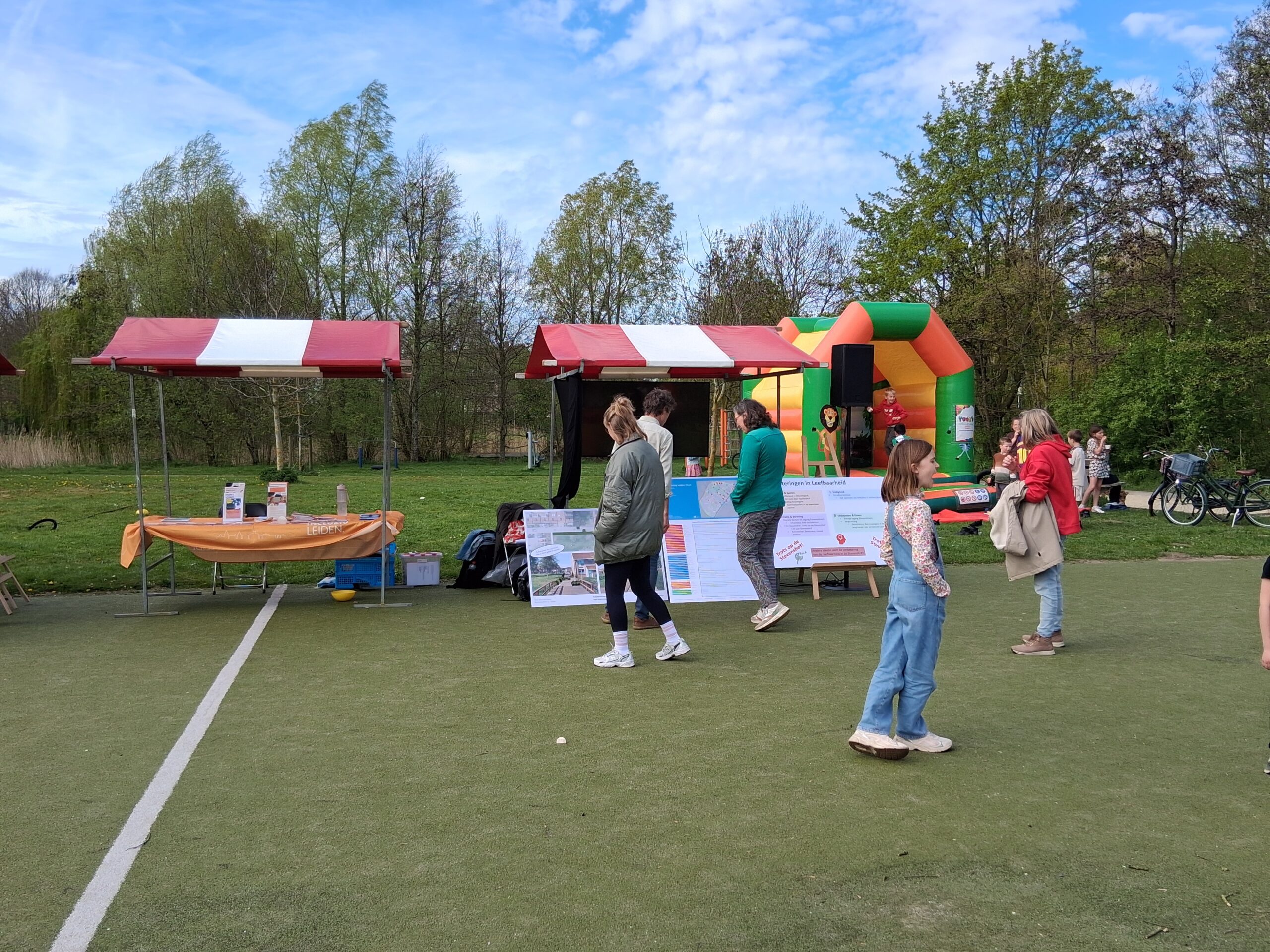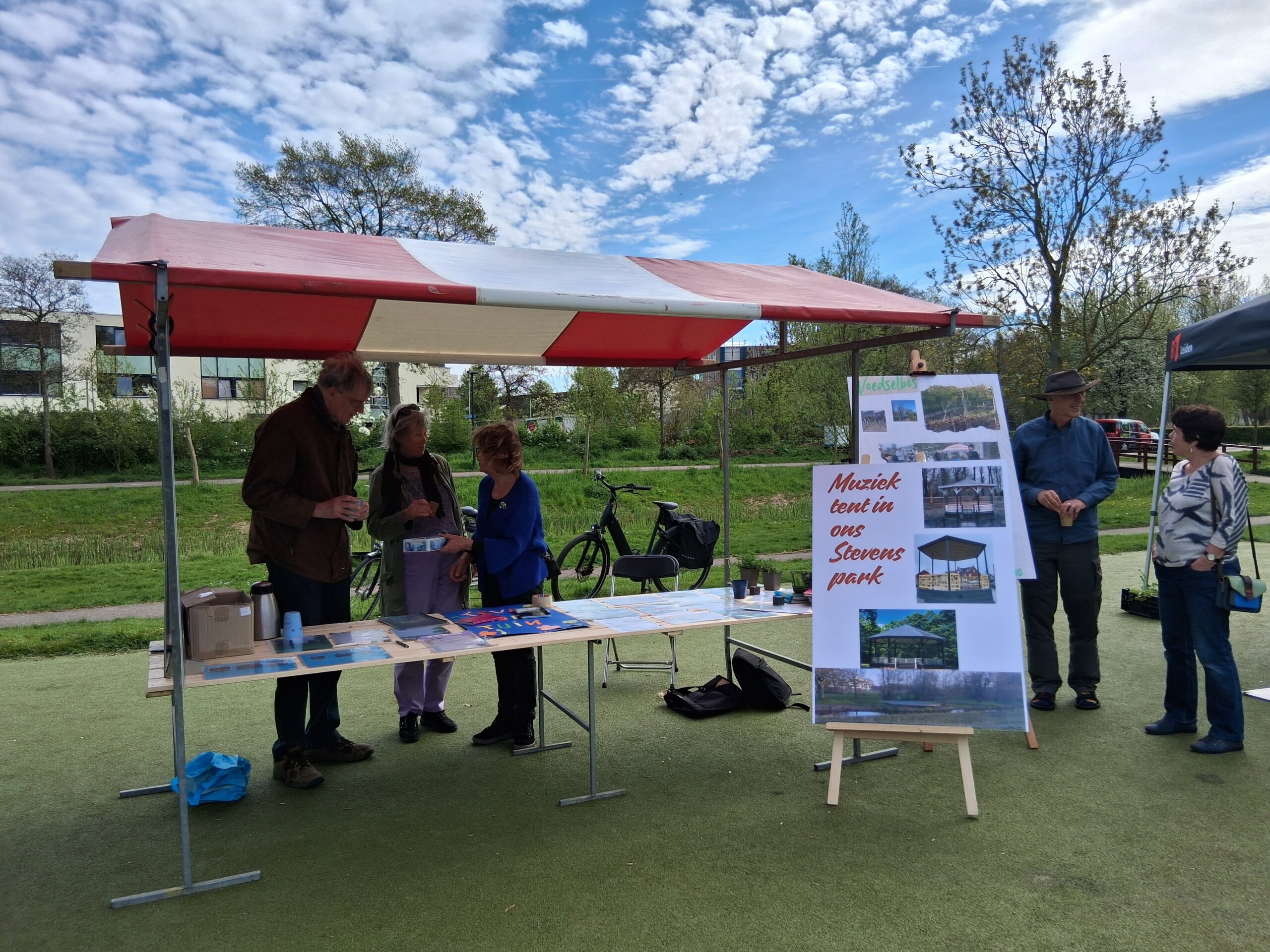 Die vond woensdagmiddag plaats in het Stevenspark. Een zonnige maar winderige dag zorgde voor een gezellige sfeer, én wegwaaiende informatieborden. Voor kinderen was er gratis ijs en een springkussen, voor anderen gratis koffie.