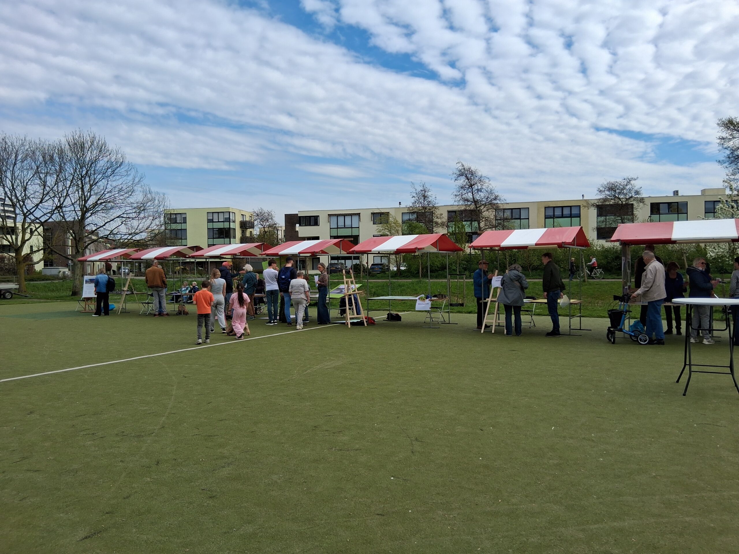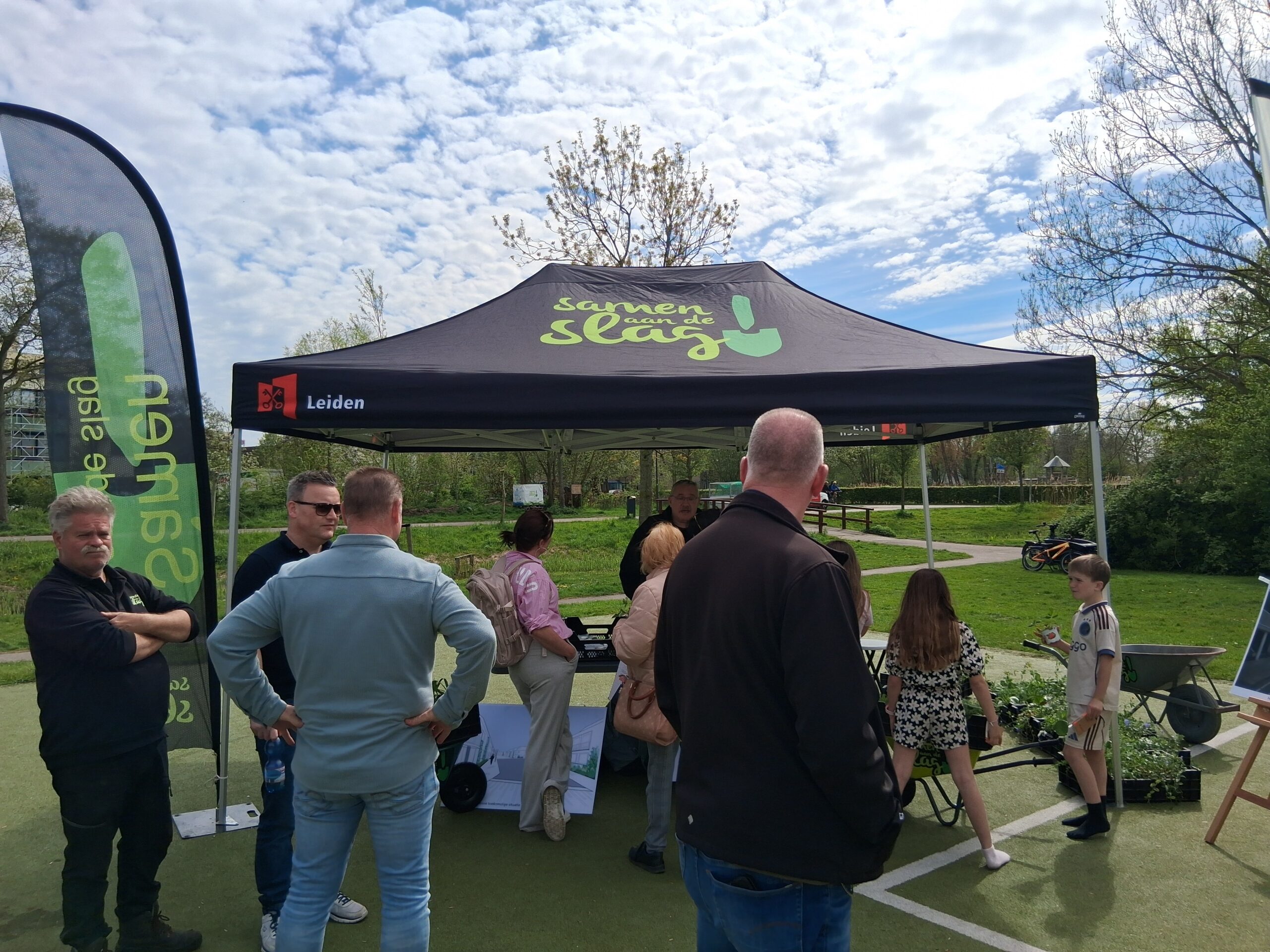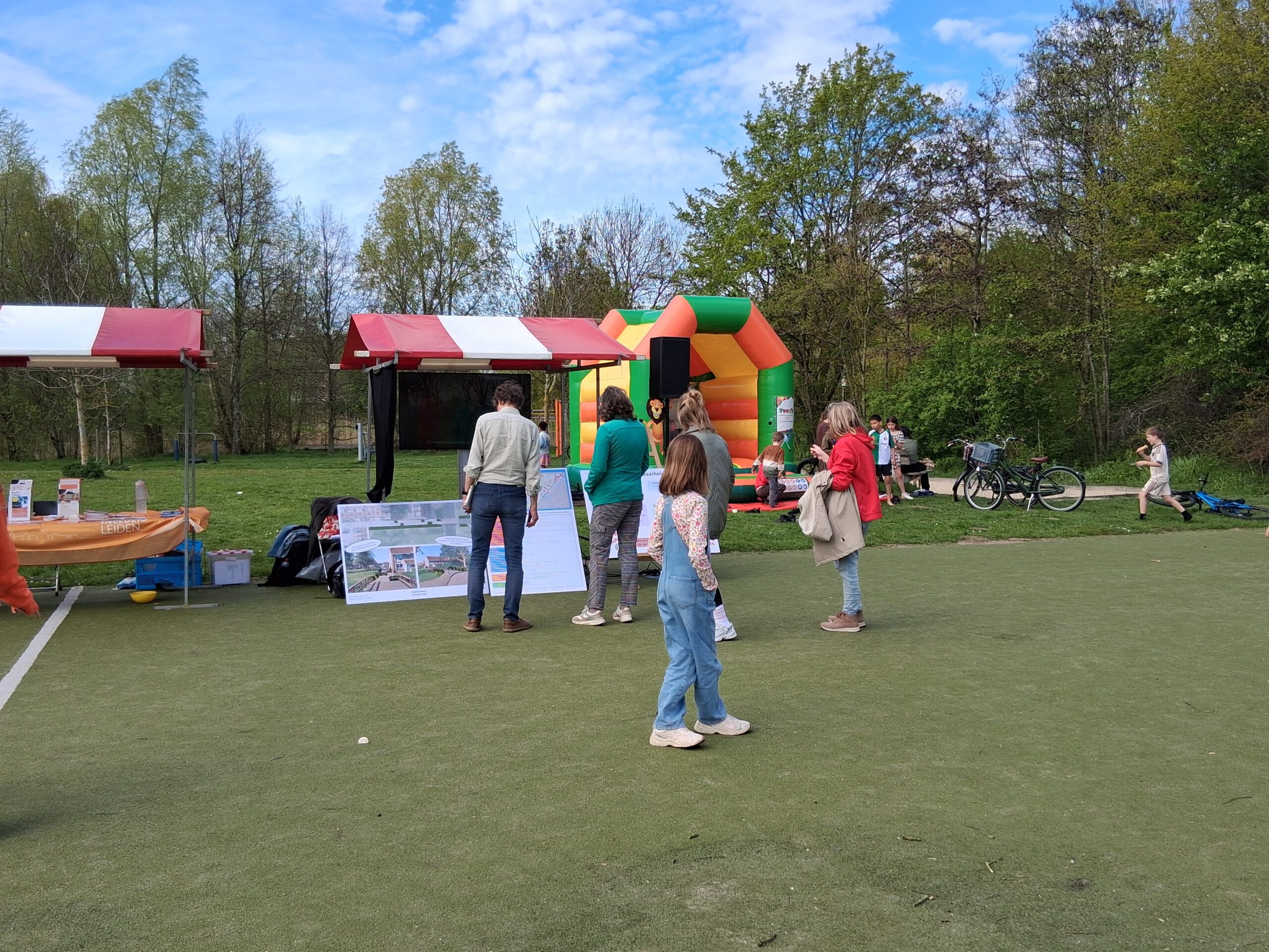 Die vond woensdagmiddag plaats in het Stevenspark. Een zonnige maar winderige dag zorgde voor een gezellige sfeer, én wegwaaiende informatieborden. Voor kinderen was er gratis ijs en een springkussen, voor anderen gratis koffie.